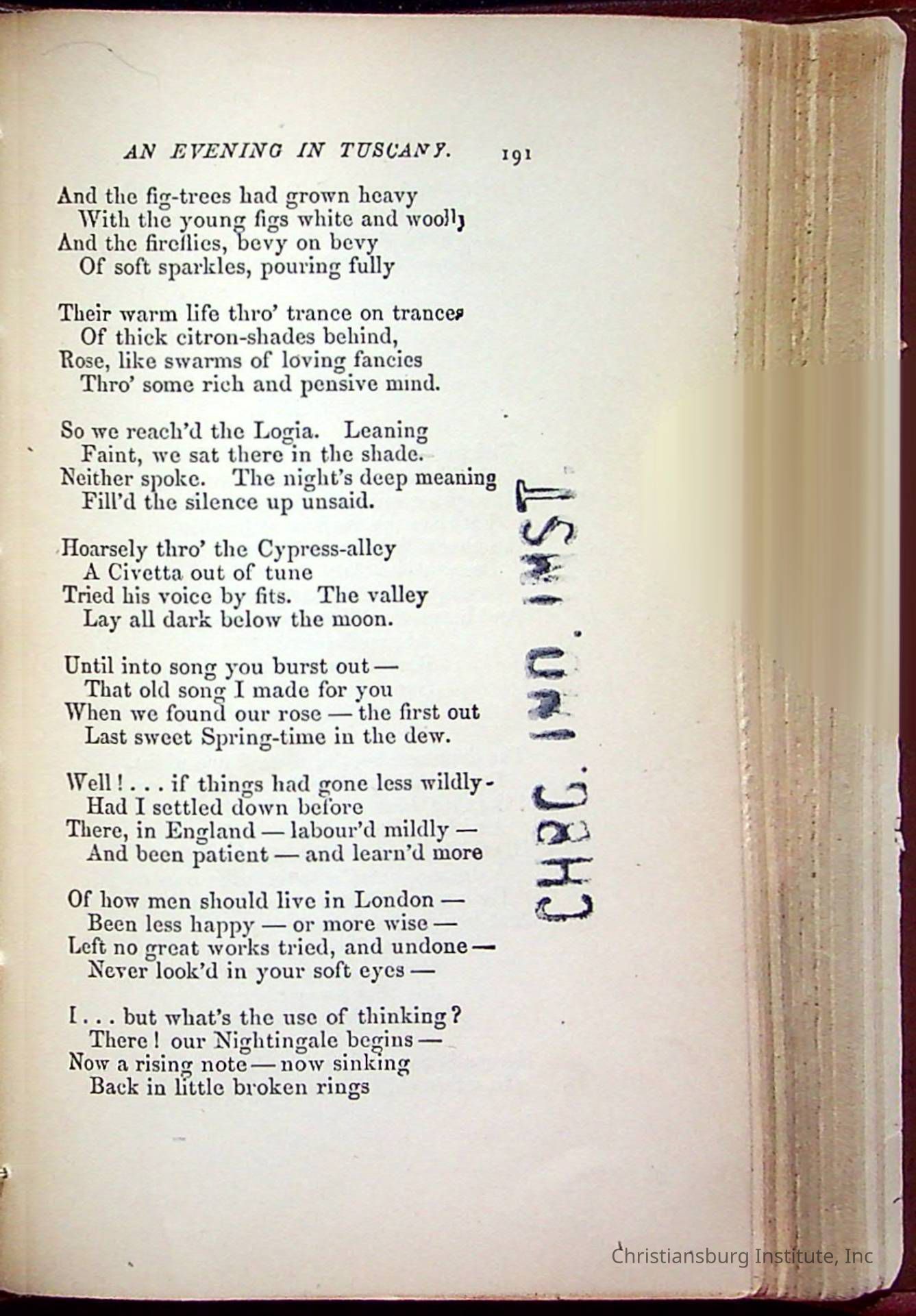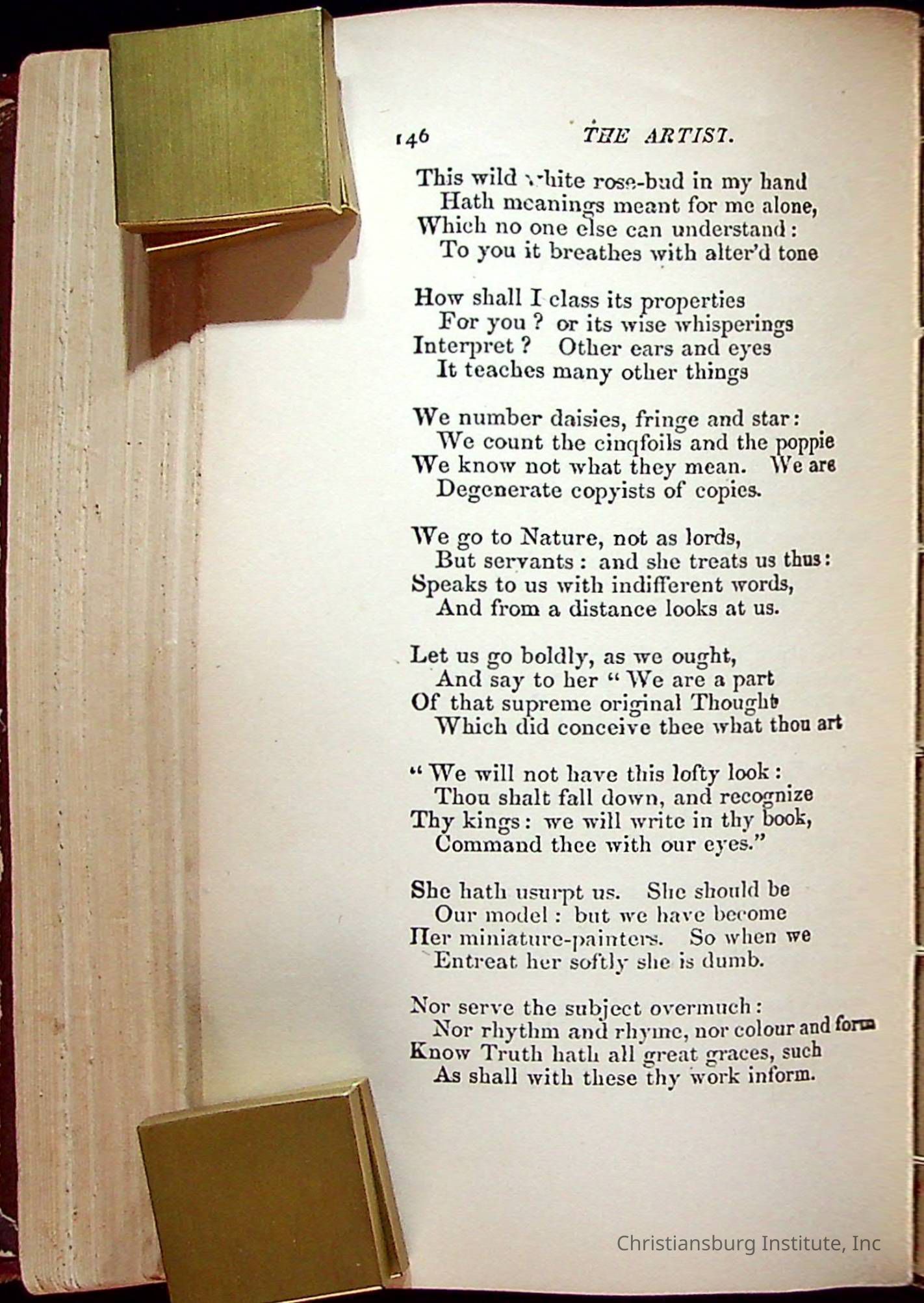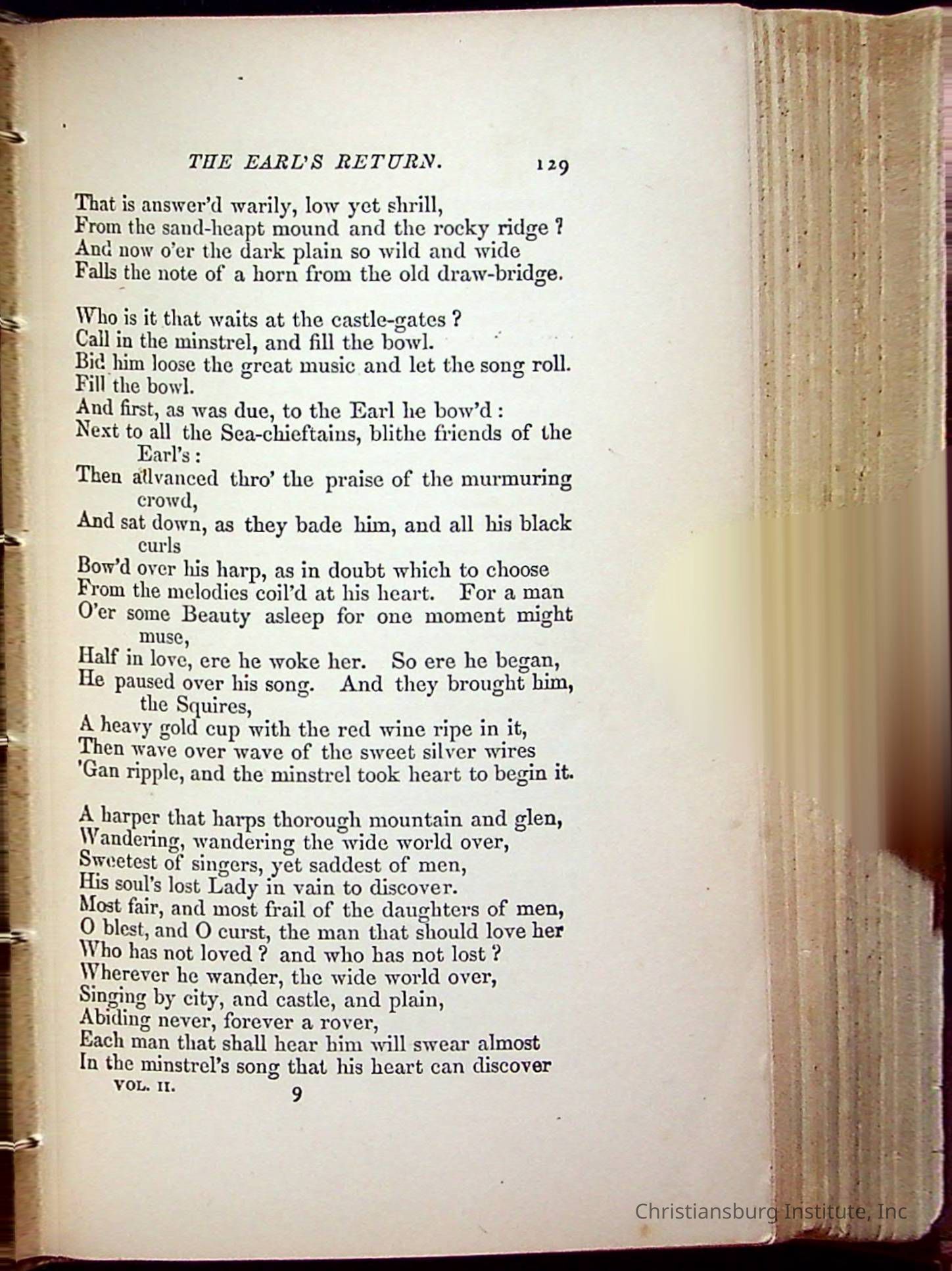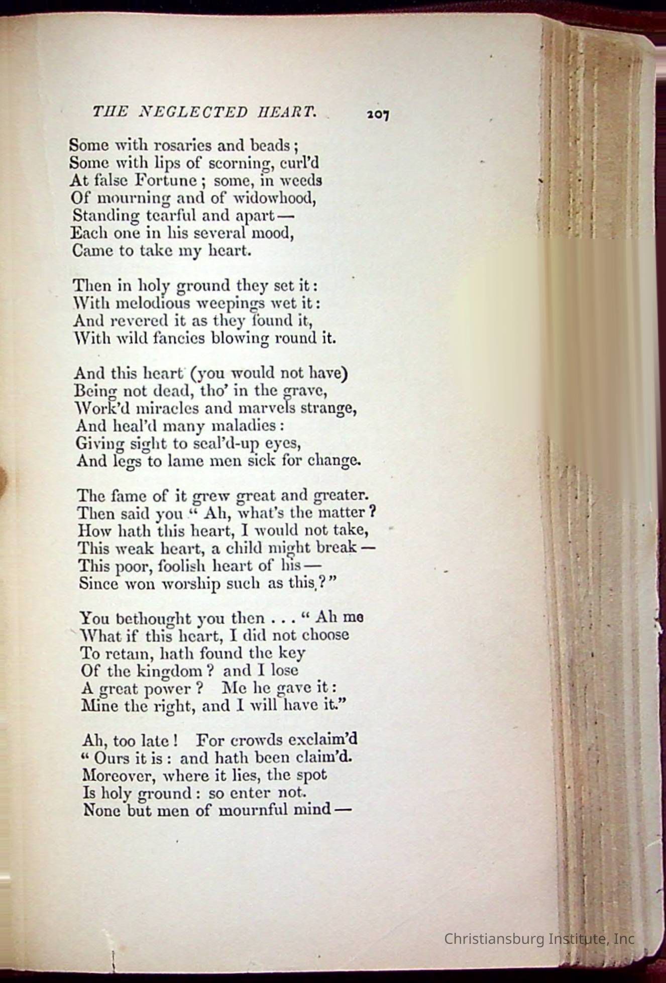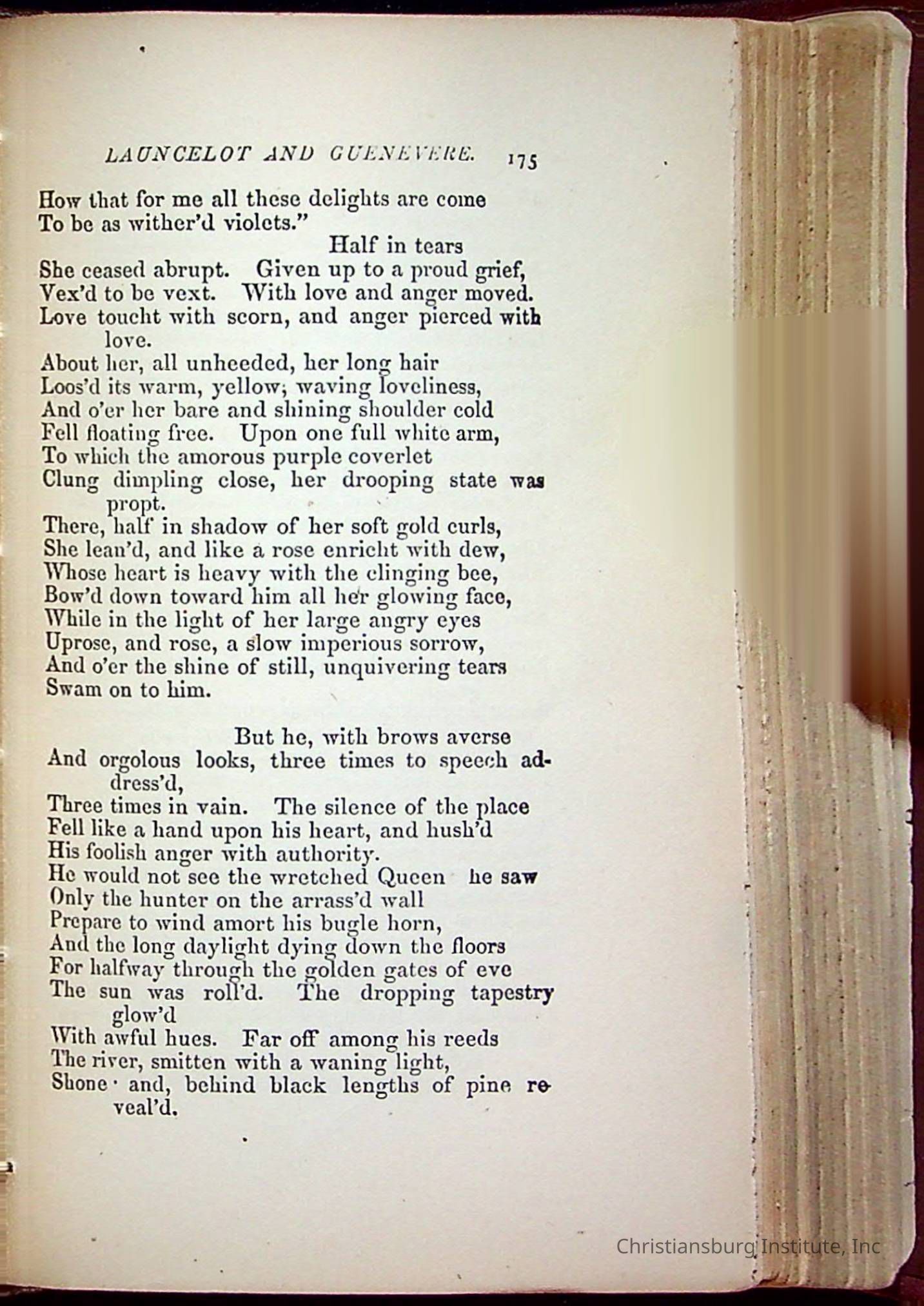 "Poems" written by Owen Meredith and published by James R. Osgood and Company in the year 1875. This book was in the Christiansburg Institute library.