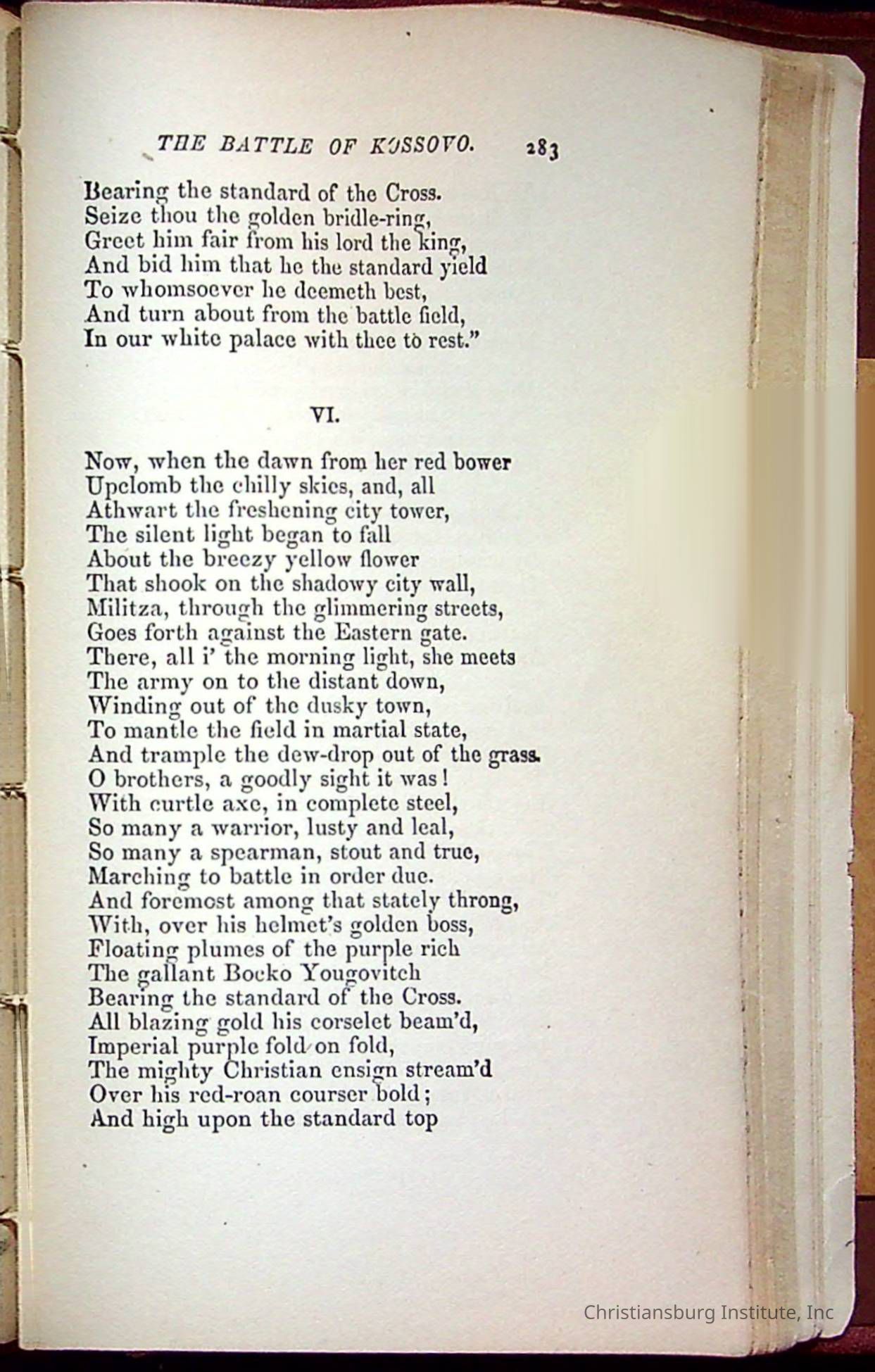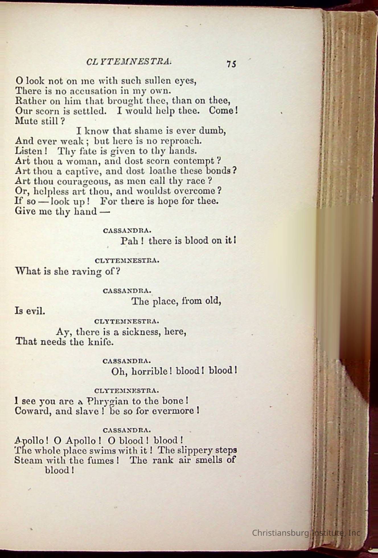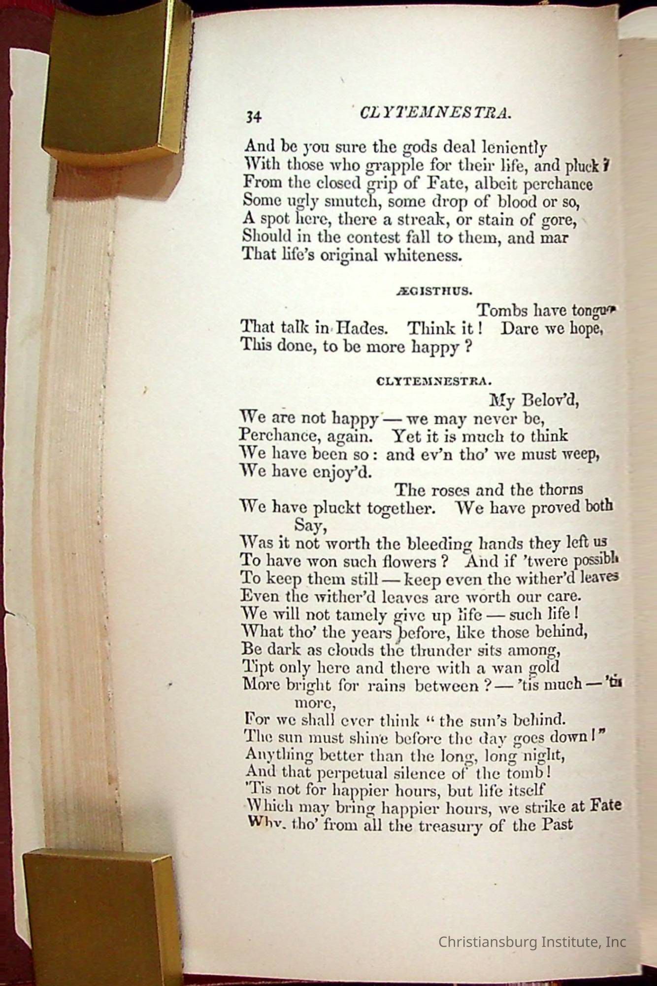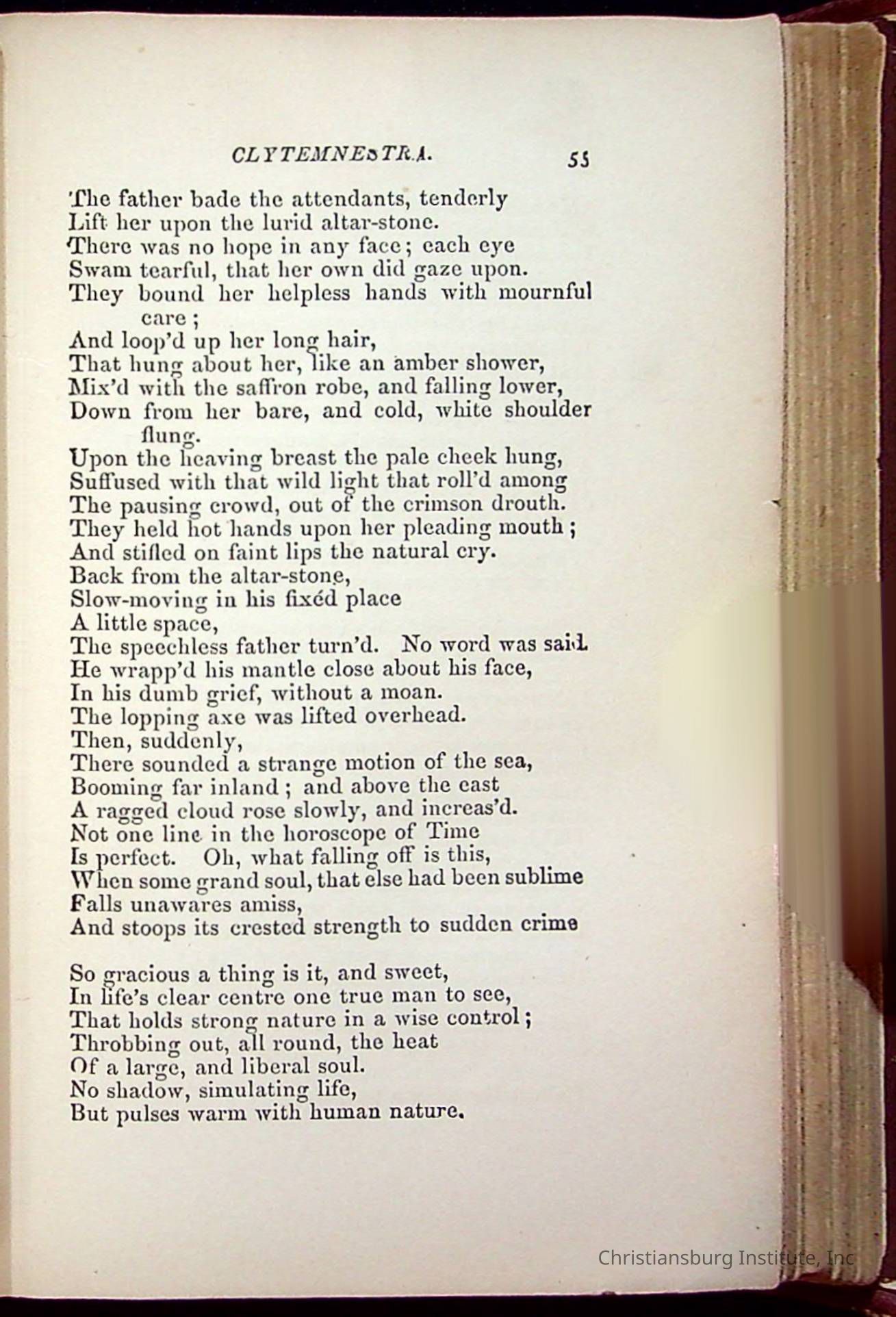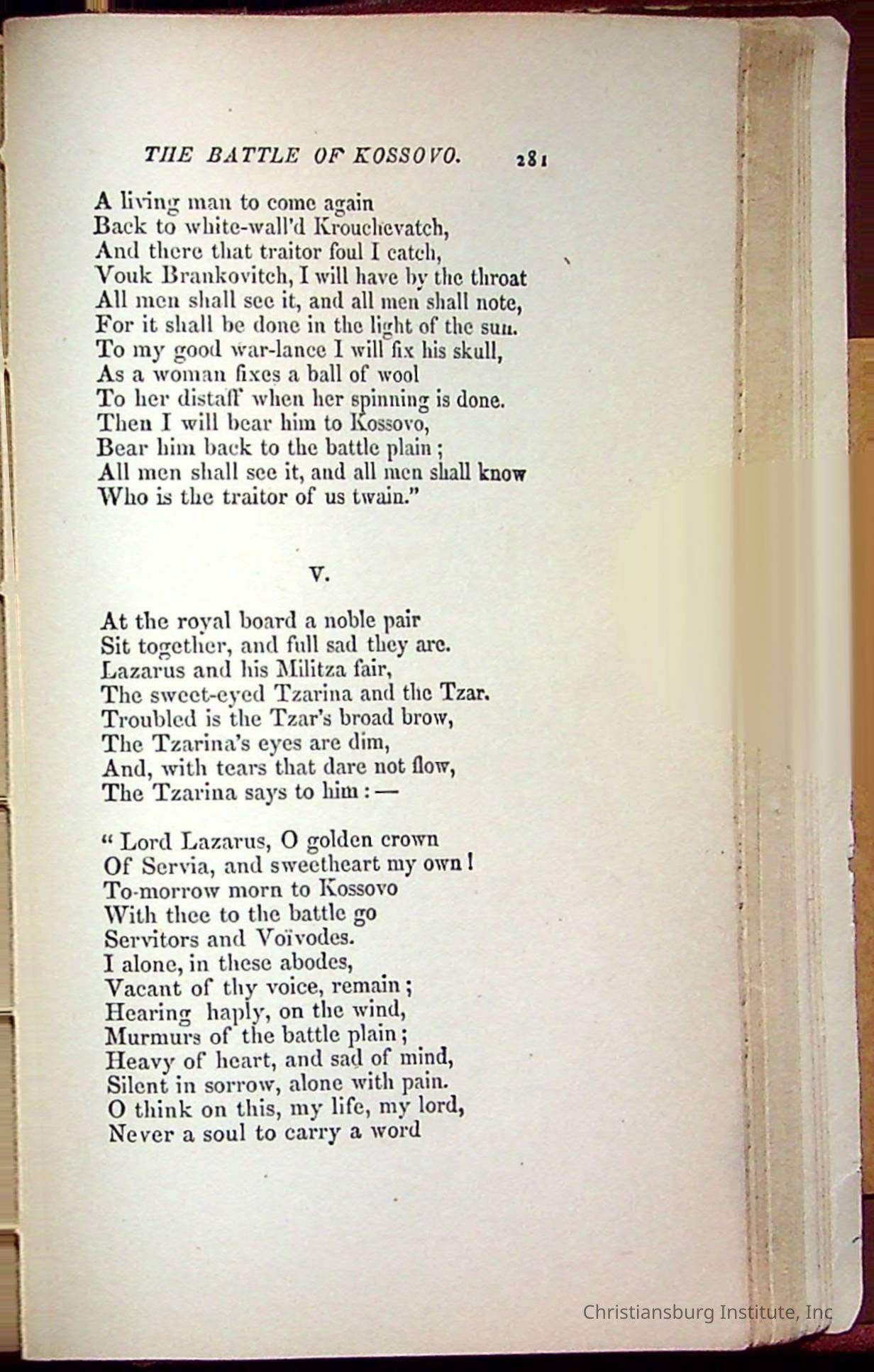 "Poems" written by Owen Meredith and published by James R. Osgood and Company in the year 1875. This book was in the Christiansburg Institute library.