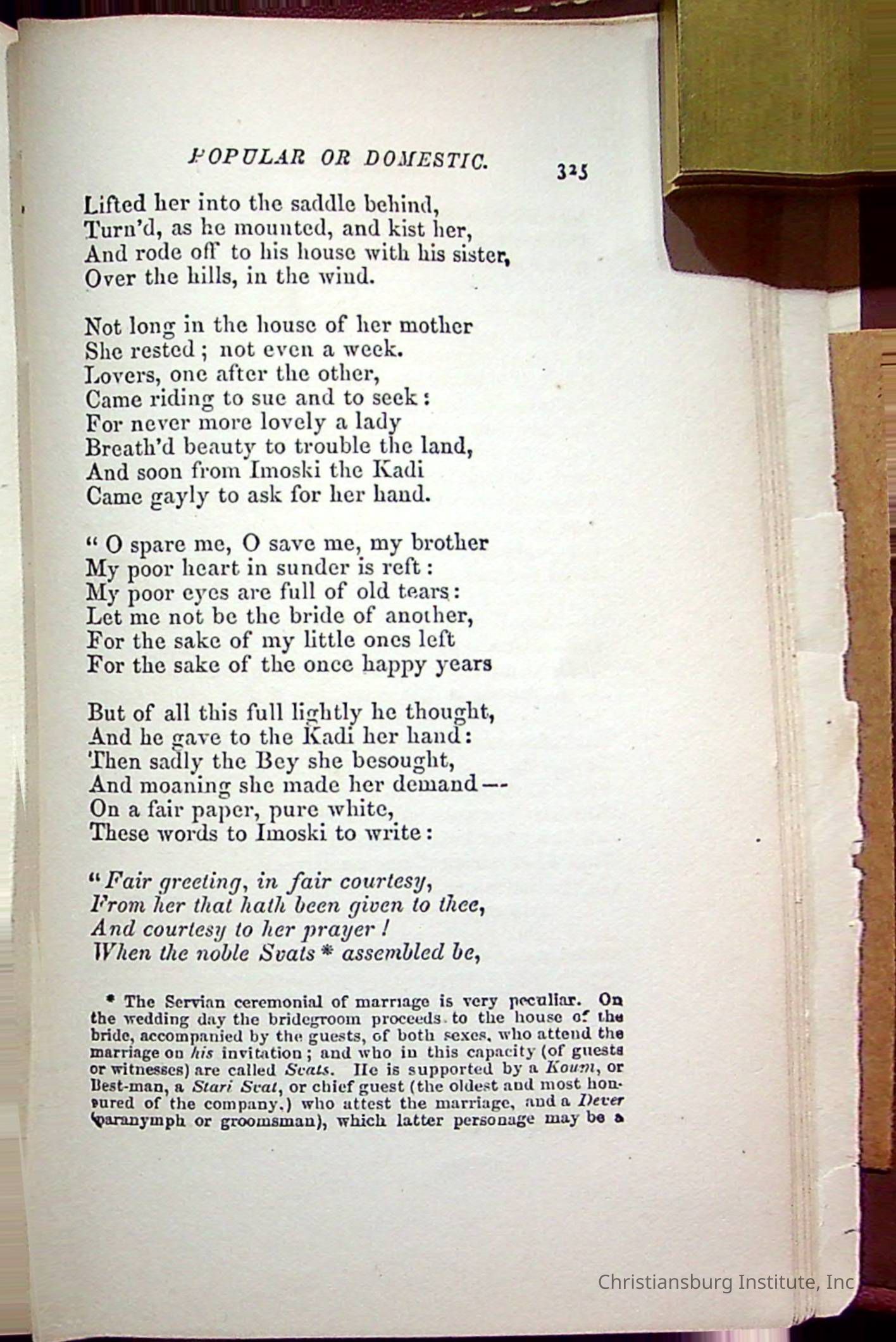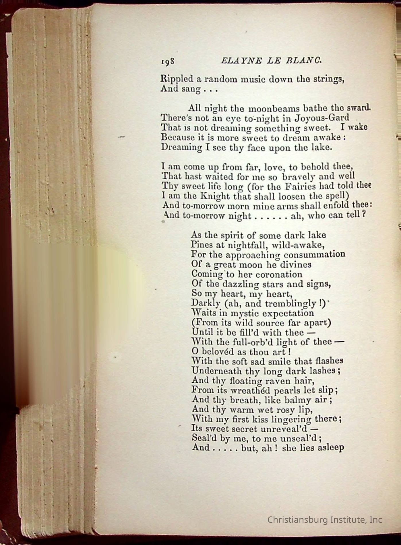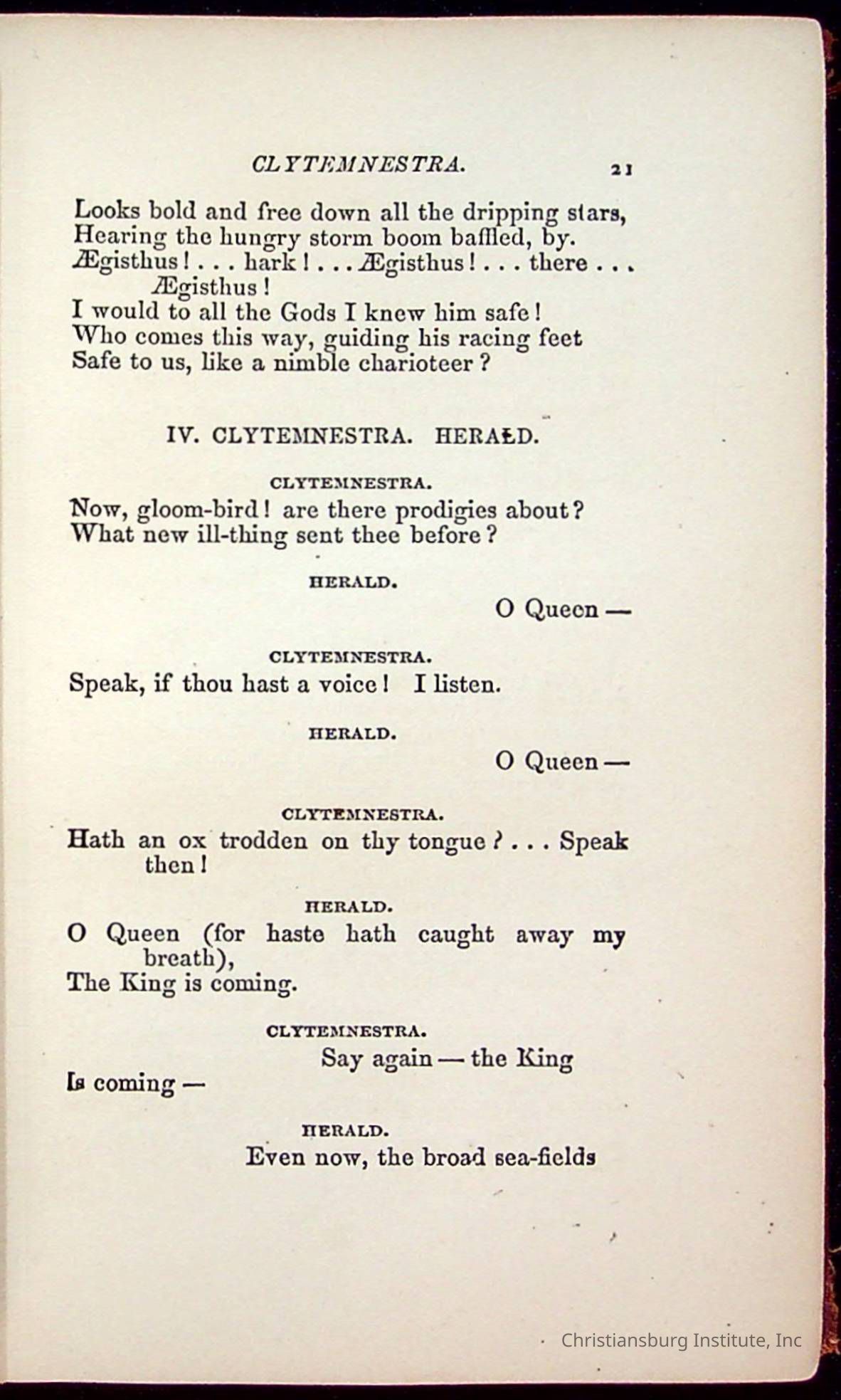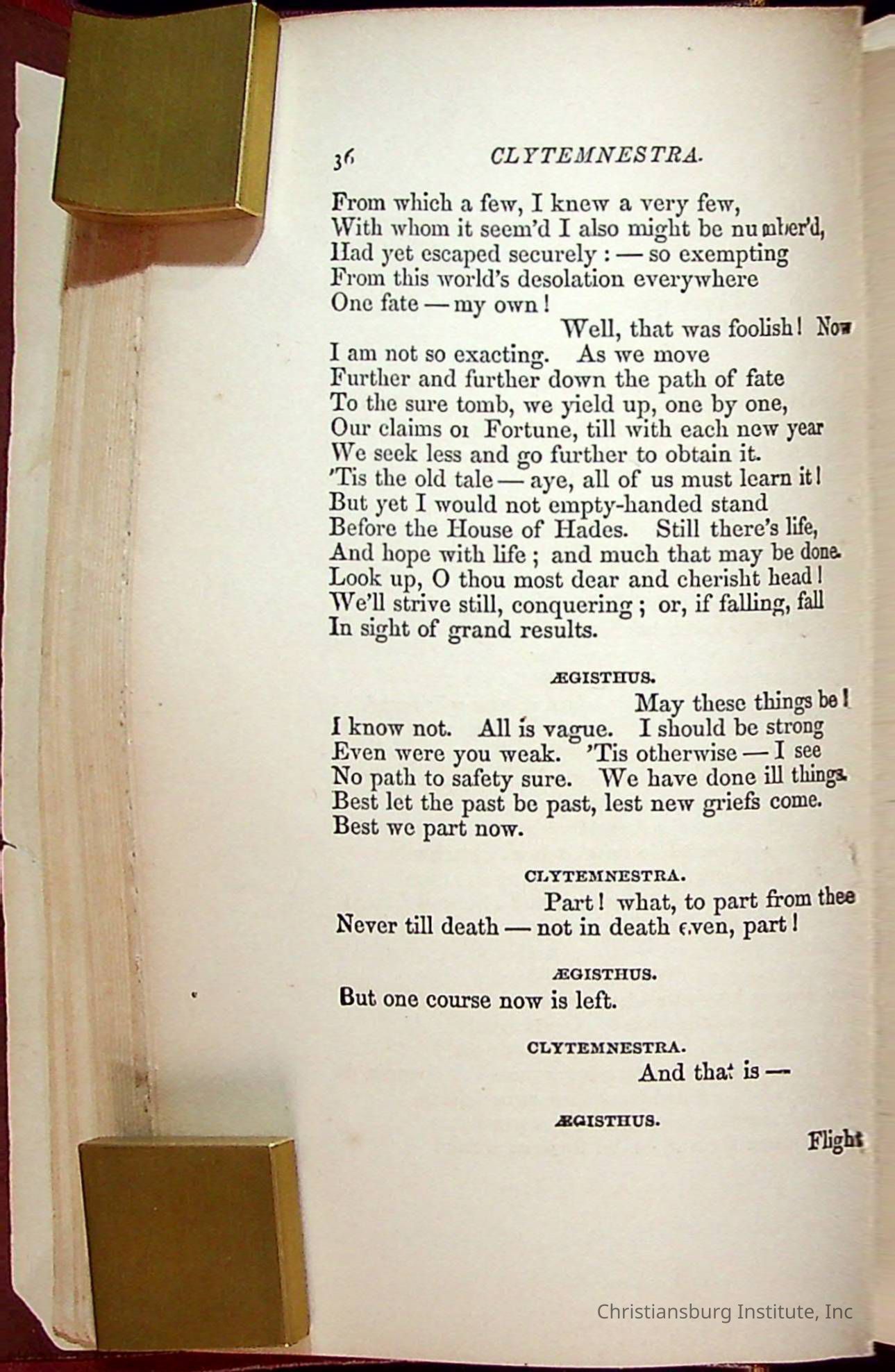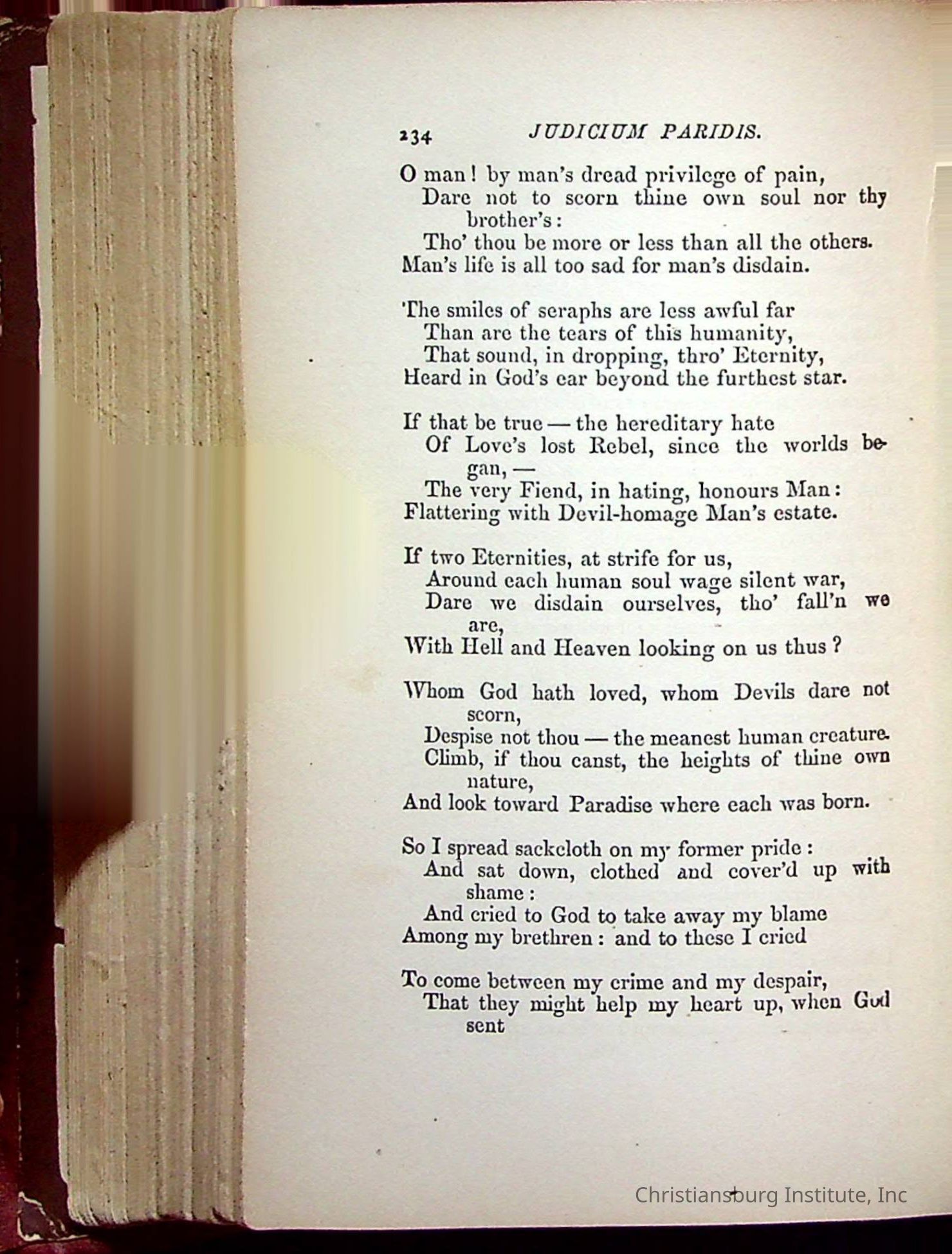 "Poems" written by Owen Meredith and published by James R. Osgood and Company in the year 1875. This book was in the Christiansburg Institute library.