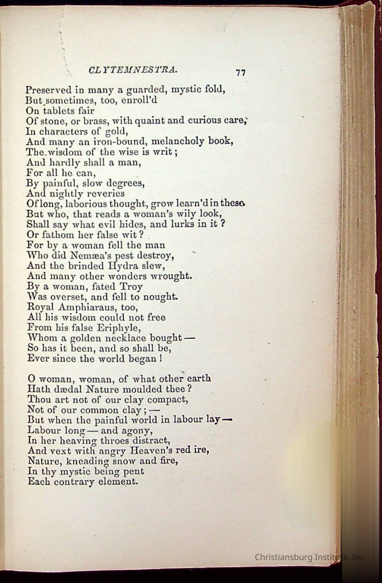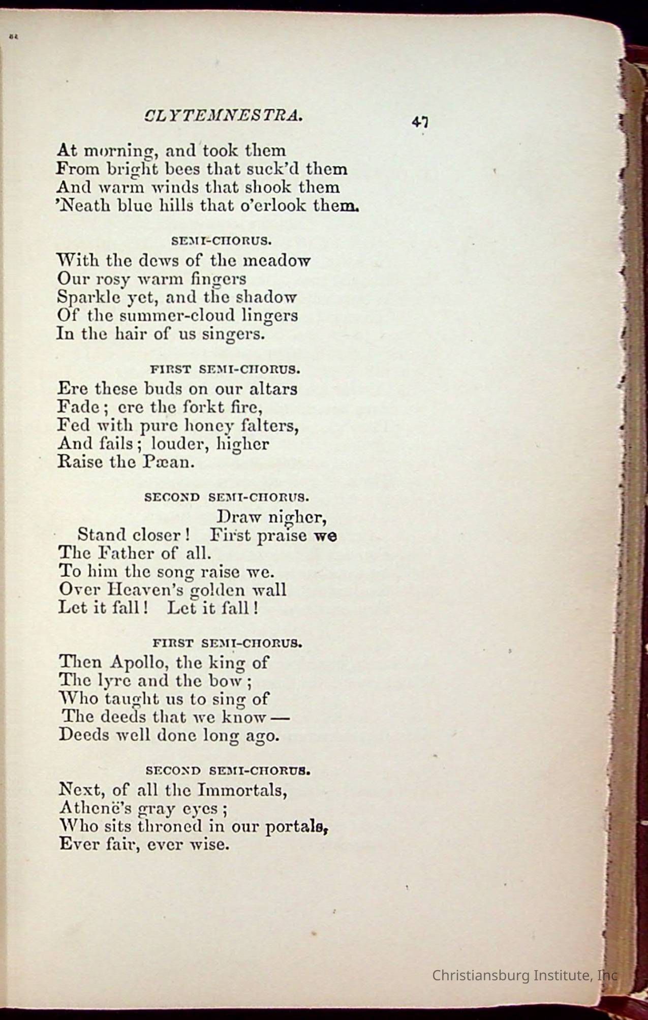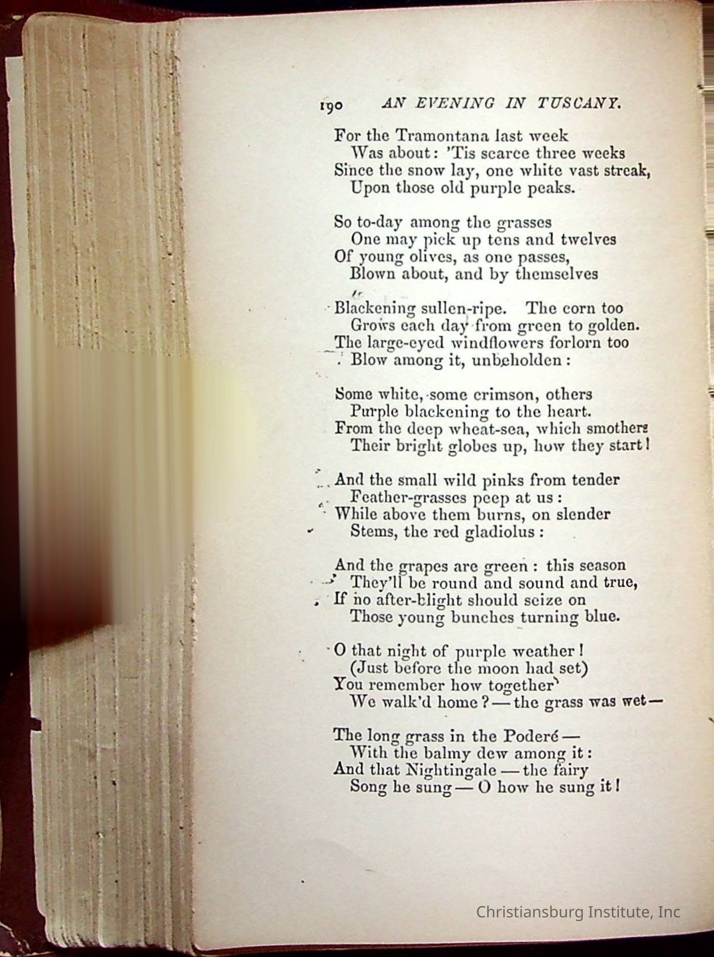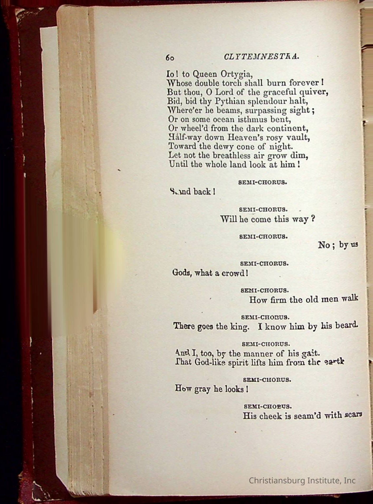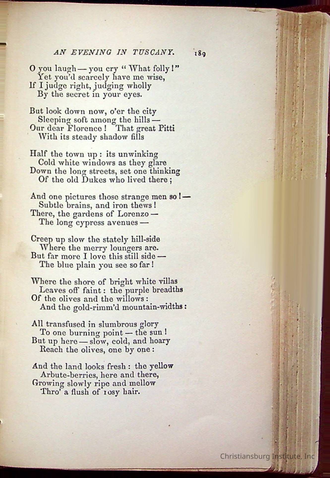 "Poems" written by Owen Meredith and published by James R. Osgood and Company in the year 1875. This book was in the Christiansburg Institute library.
