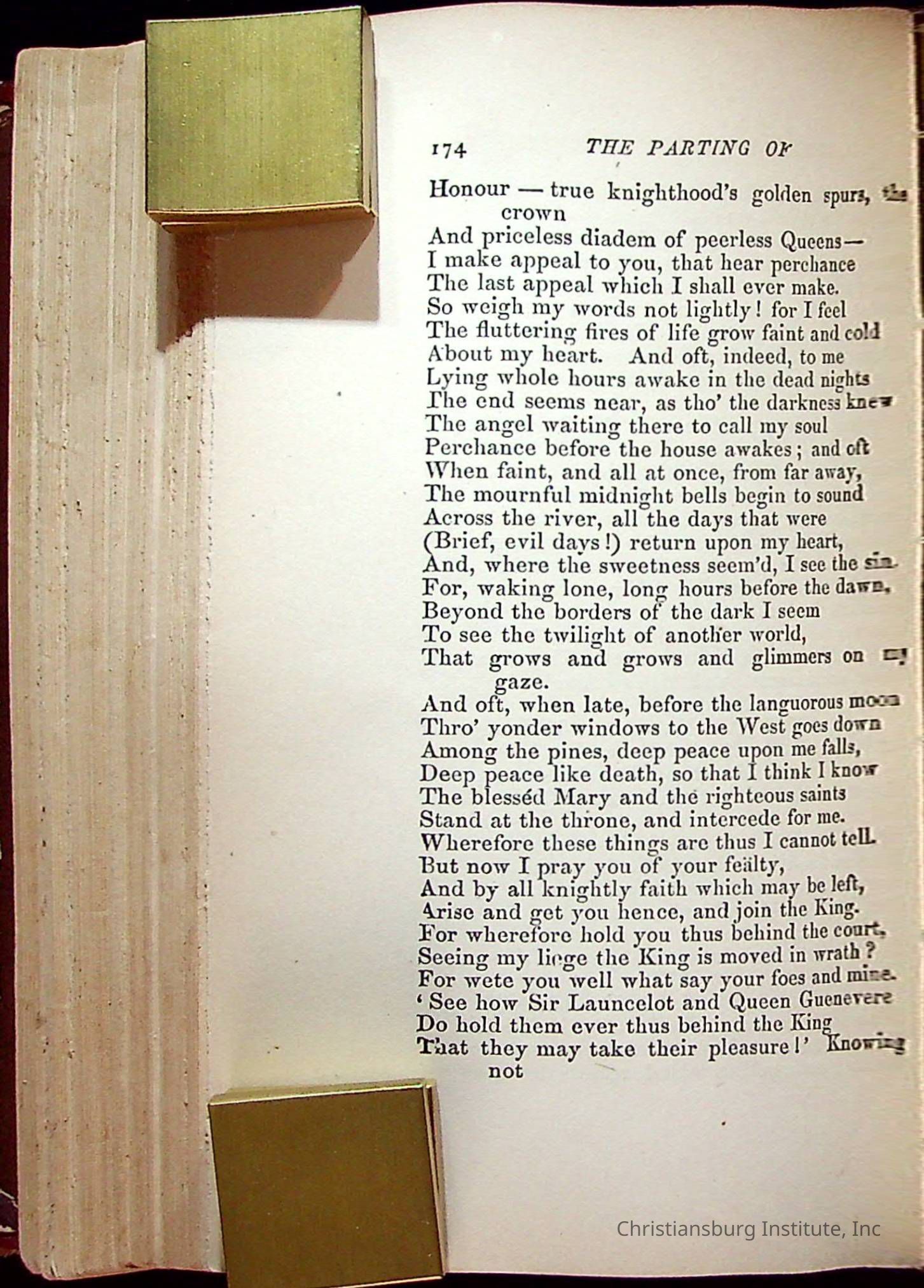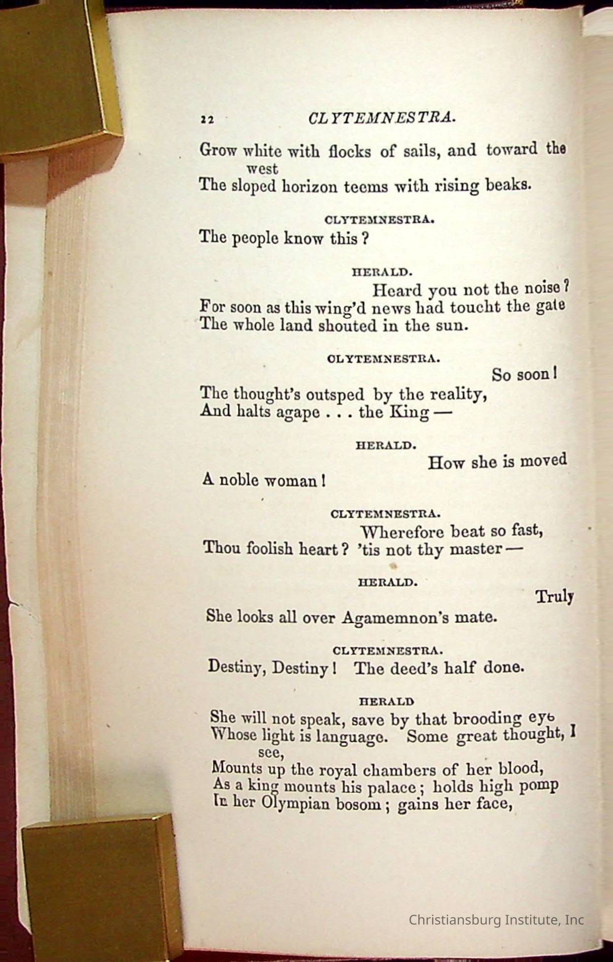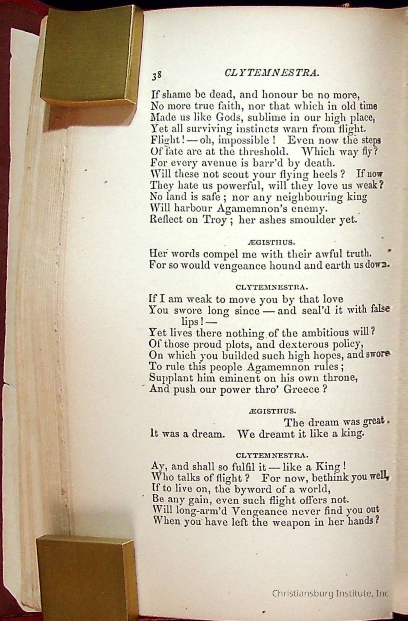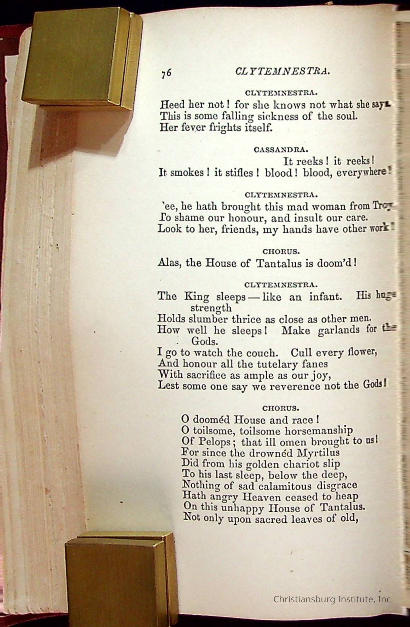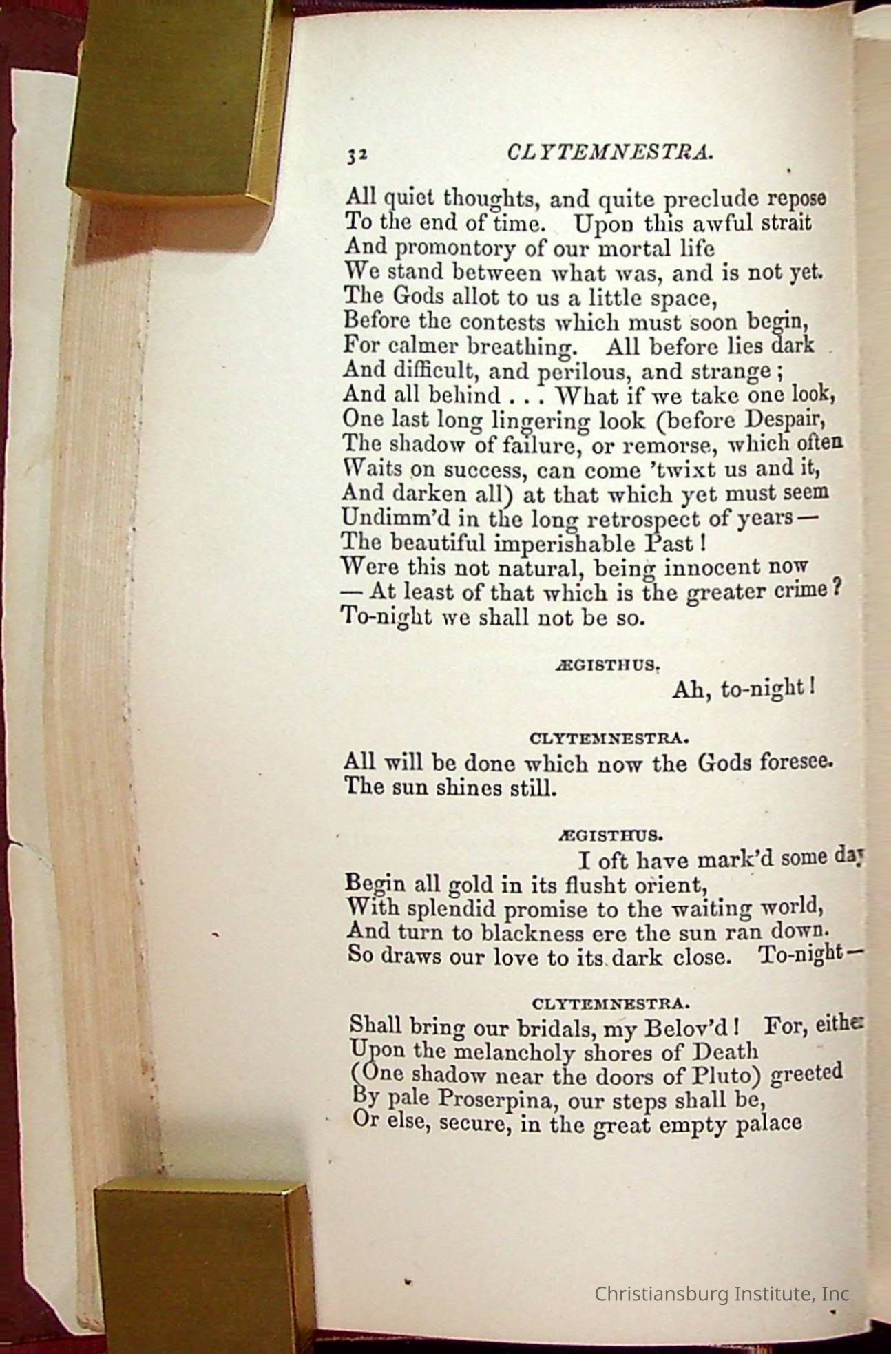 "Poems" written by Owen Meredith and published by James R. Osgood and Company in the year 1875. This book was in the Christiansburg Institute library.