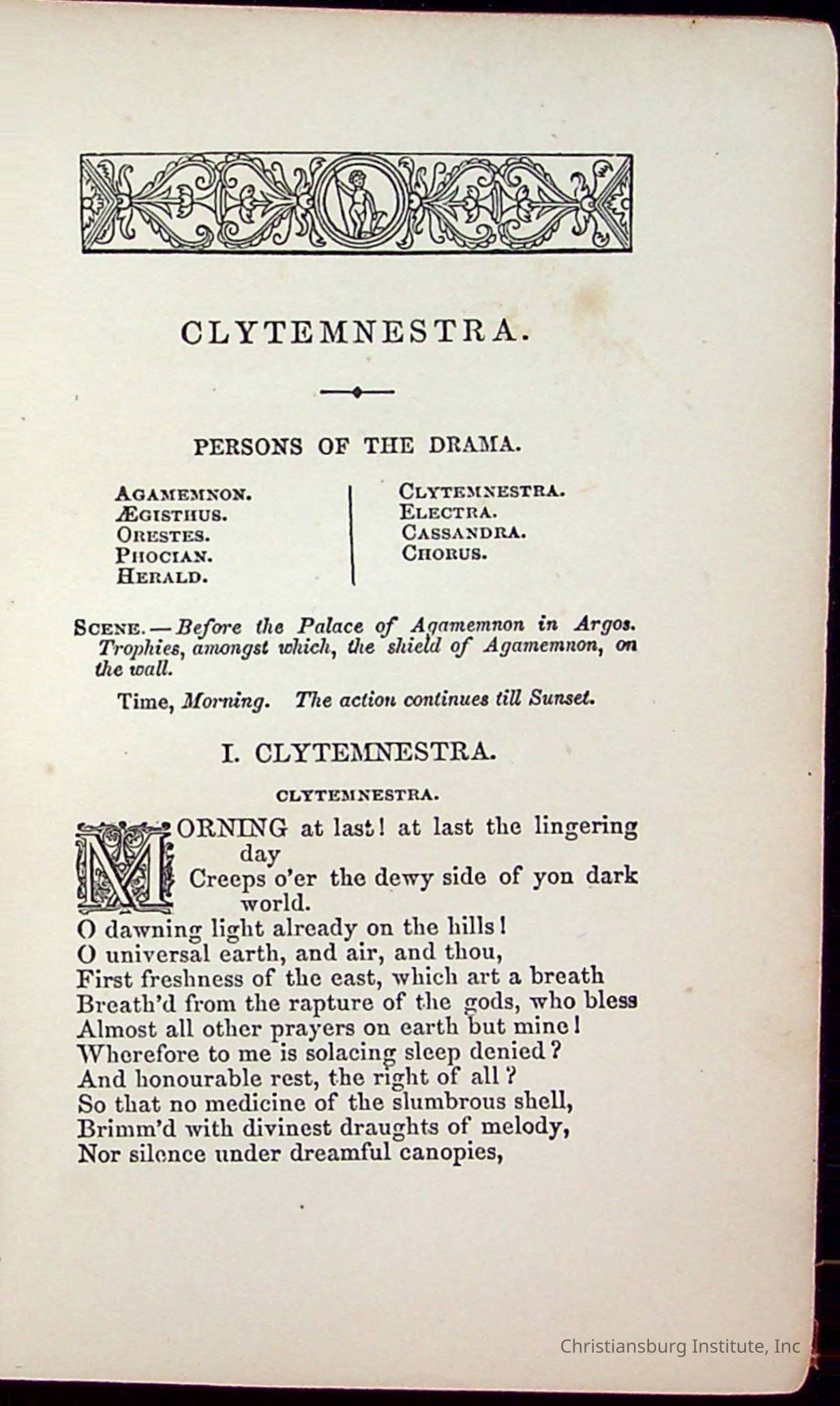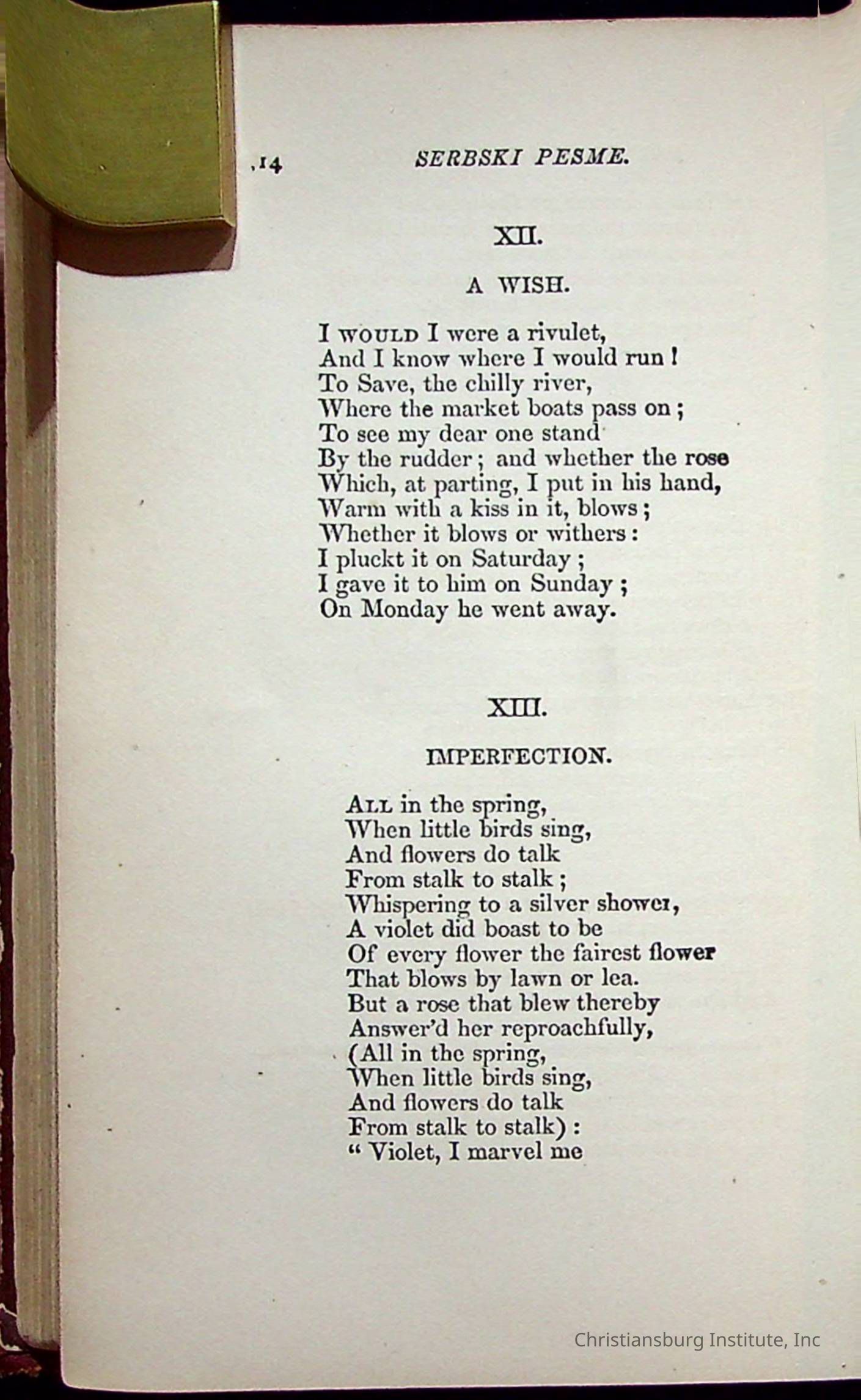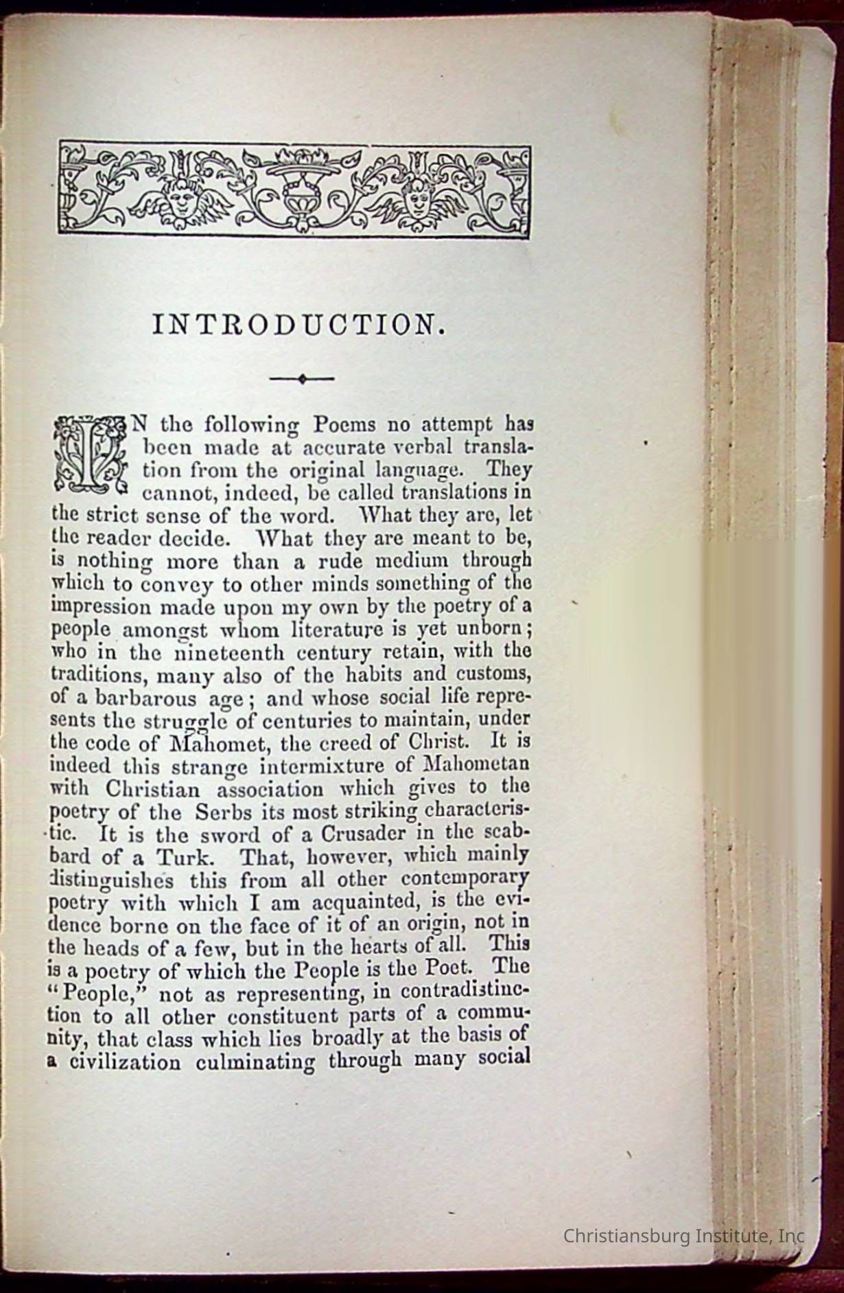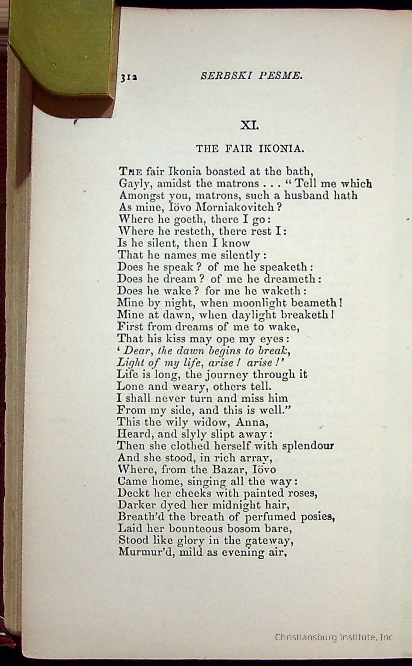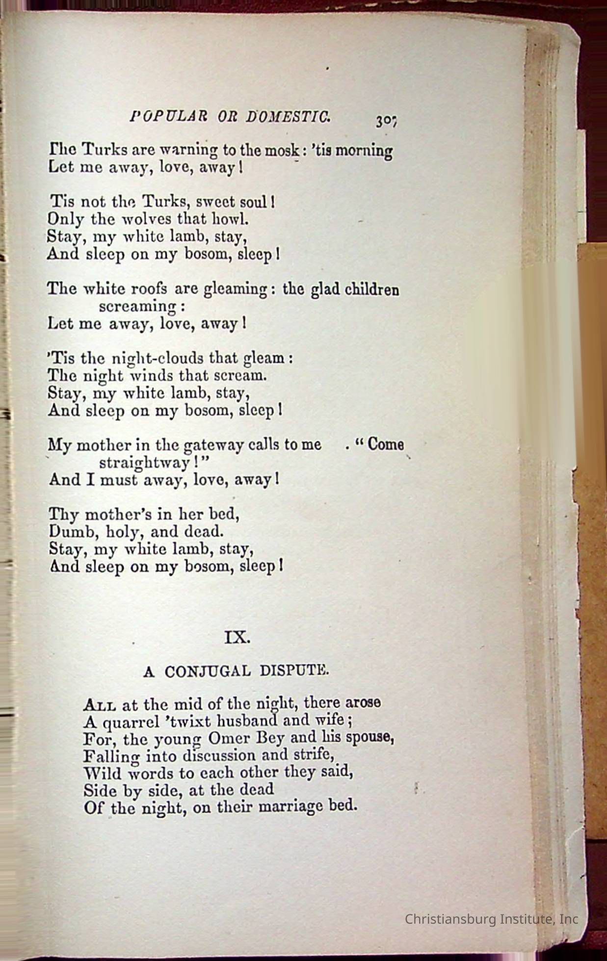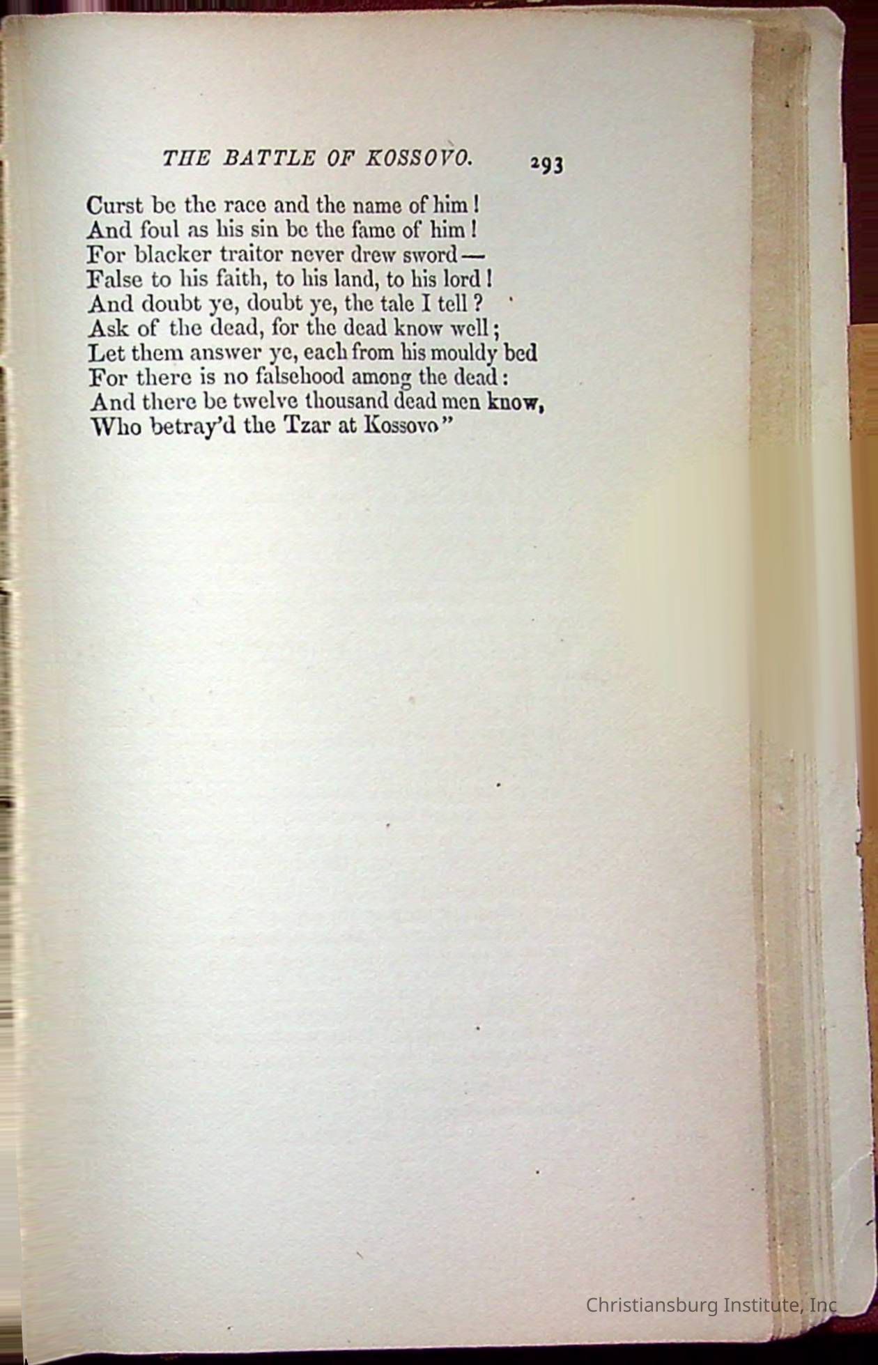 "Poems" written by Owen Meredith and published by James R. Osgood and Company in the year 1875. This book was in the Christiansburg Institute library.