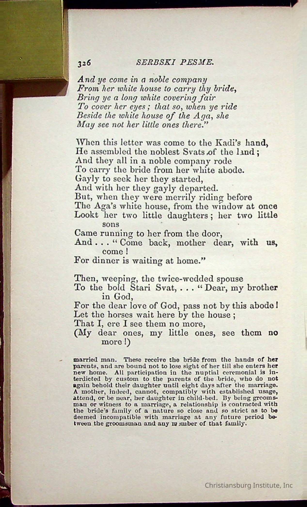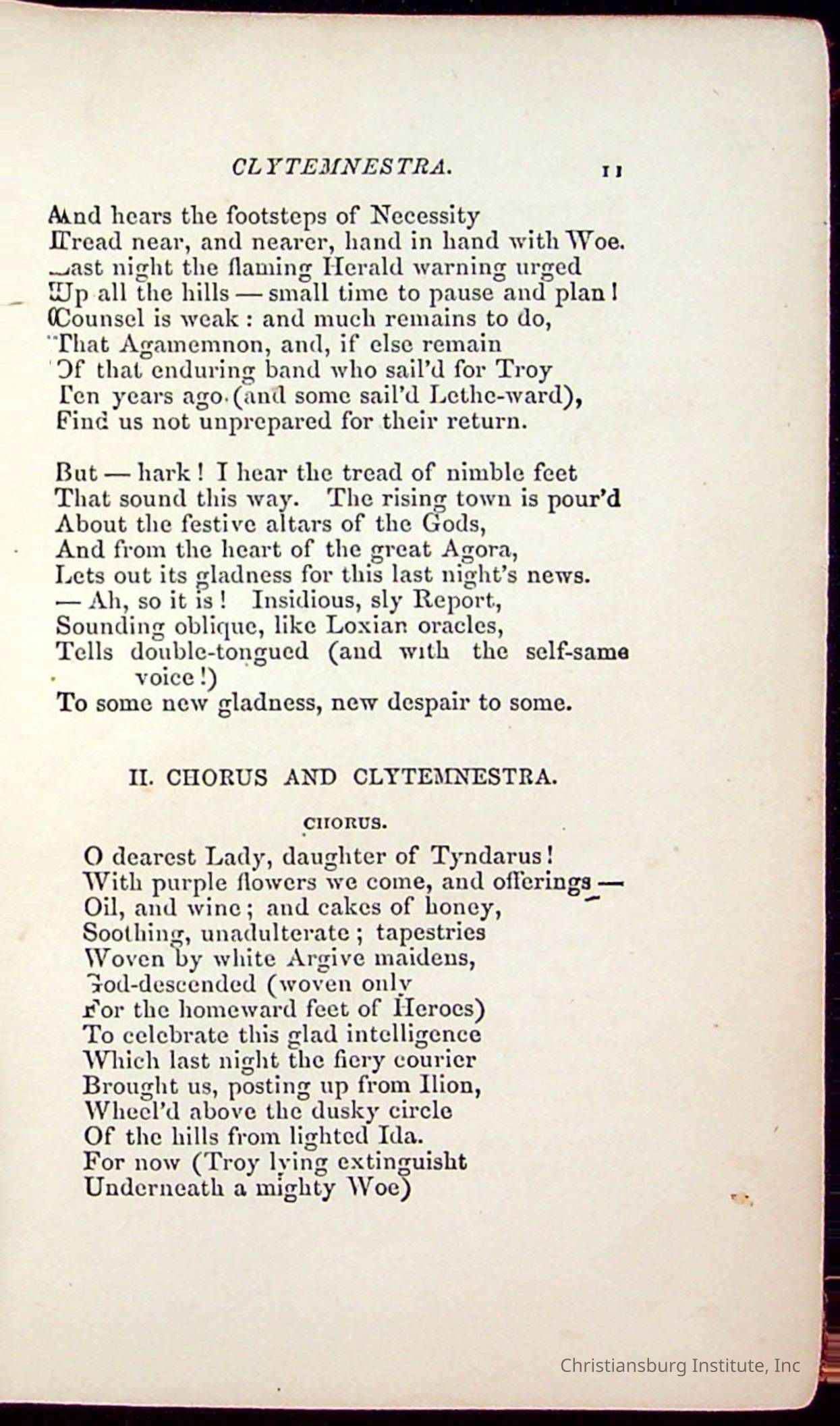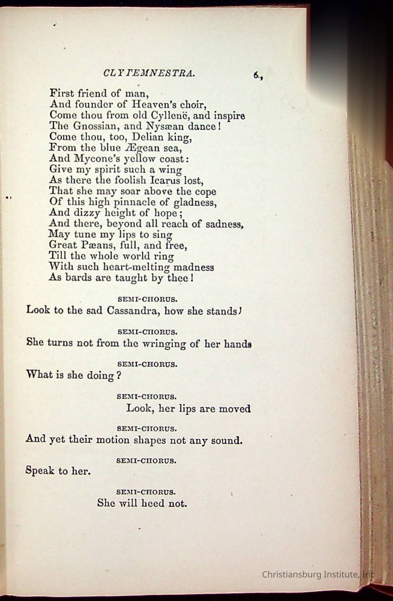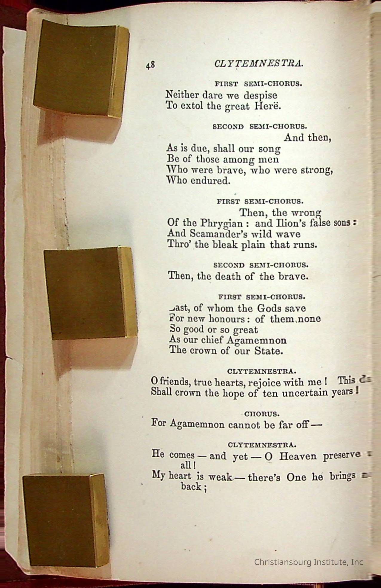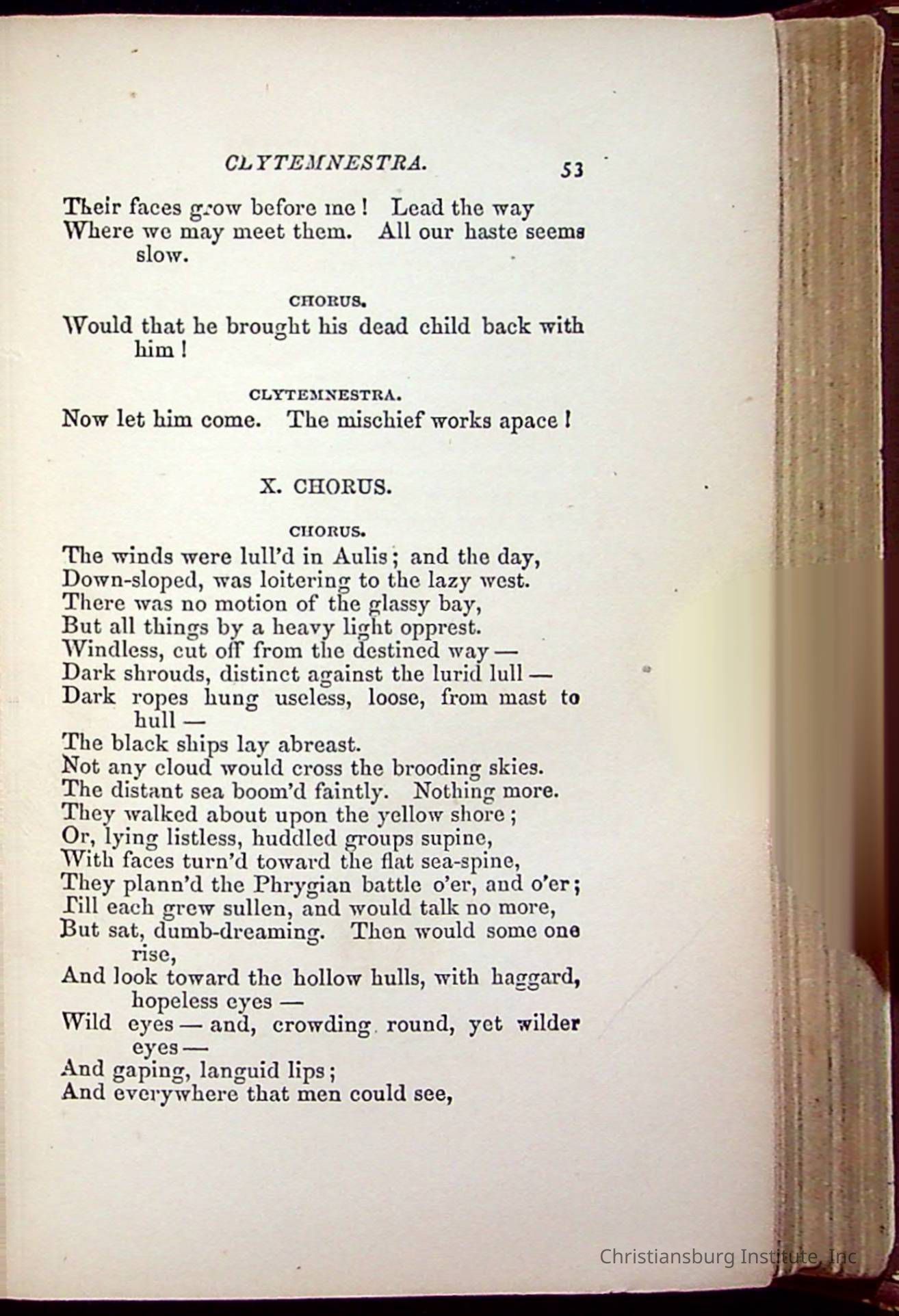 "Poems" written by Owen Meredith and published by James R. Osgood and Company in the year 1875. This book was in the Christiansburg Institute library.