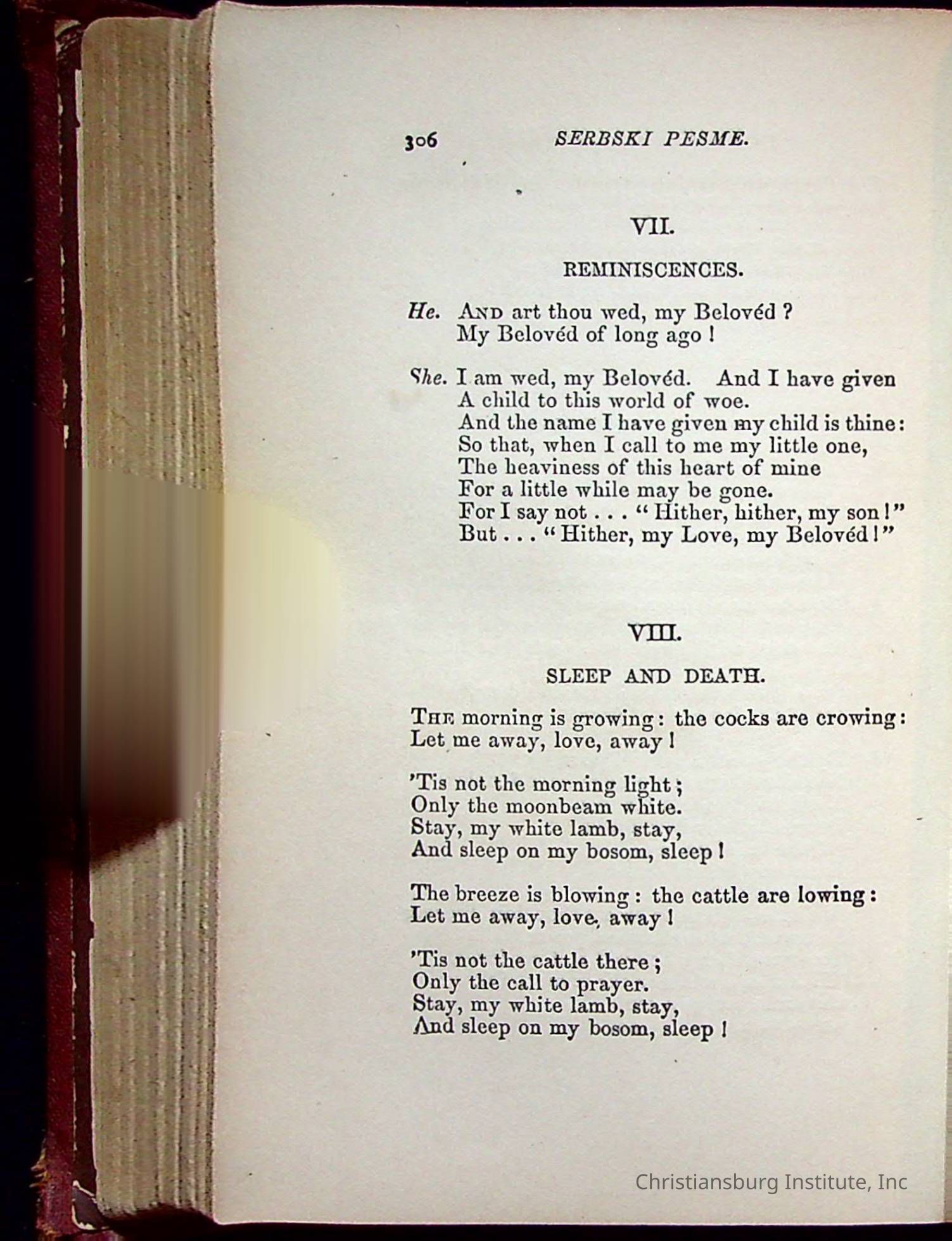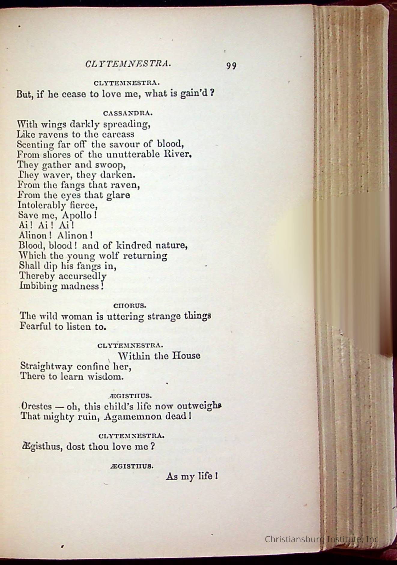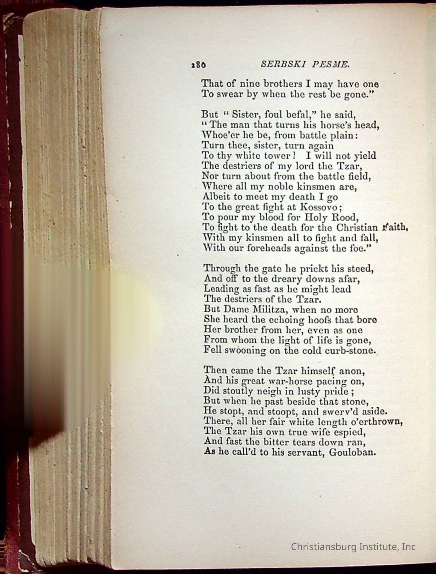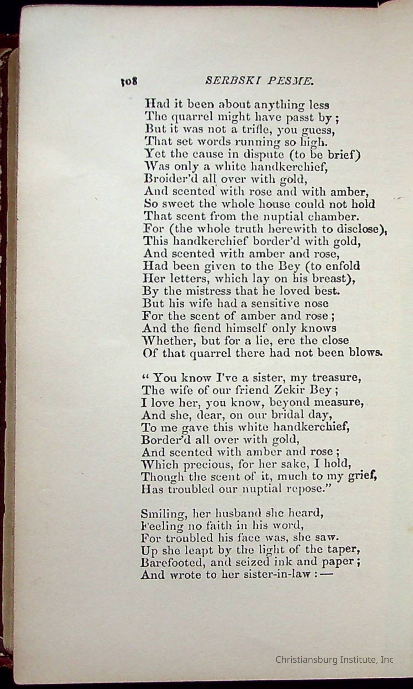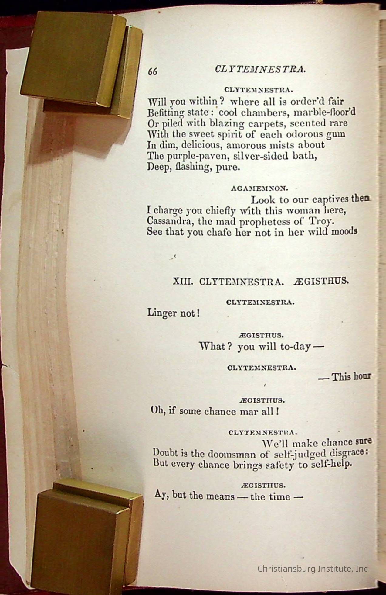 "Poems" written by Owen Meredith and published by James R. Osgood and Company in the year 1875. This book was in the Christiansburg Institute library.