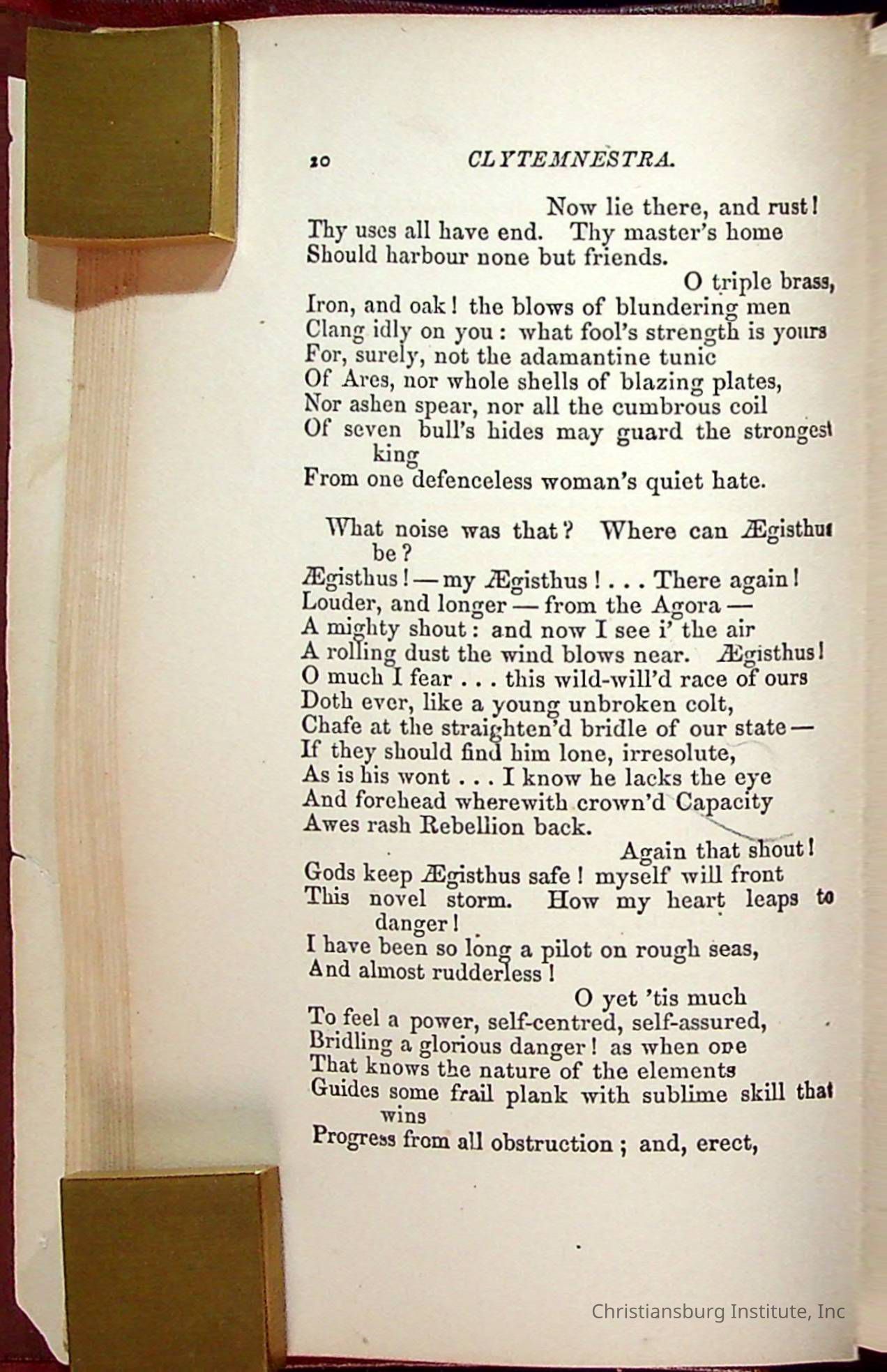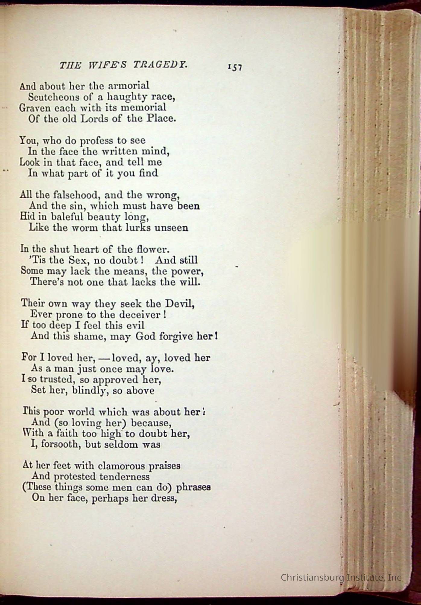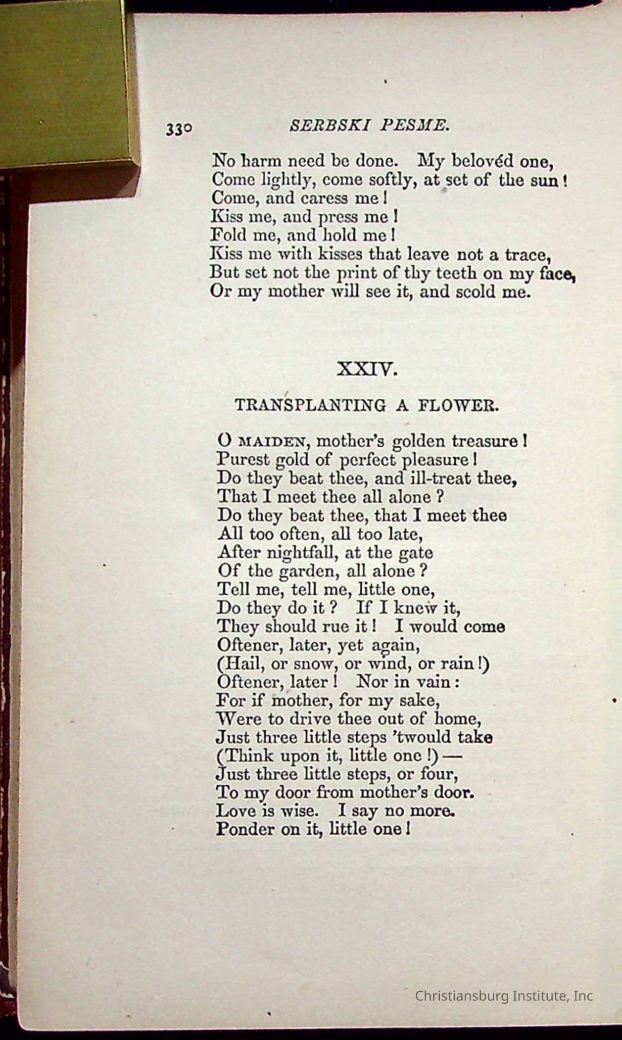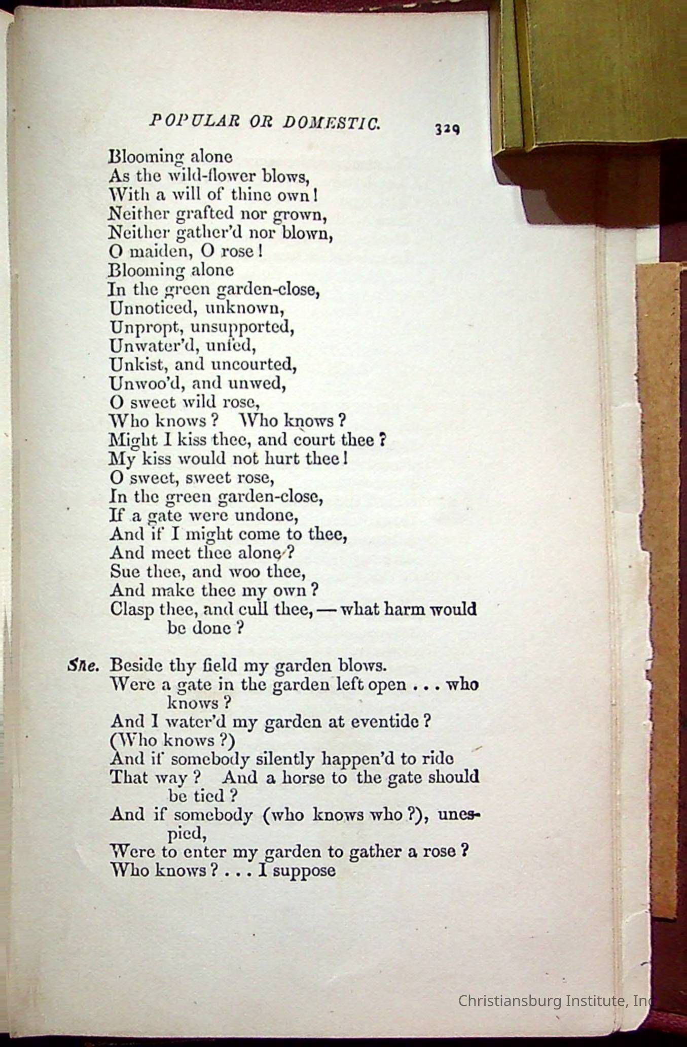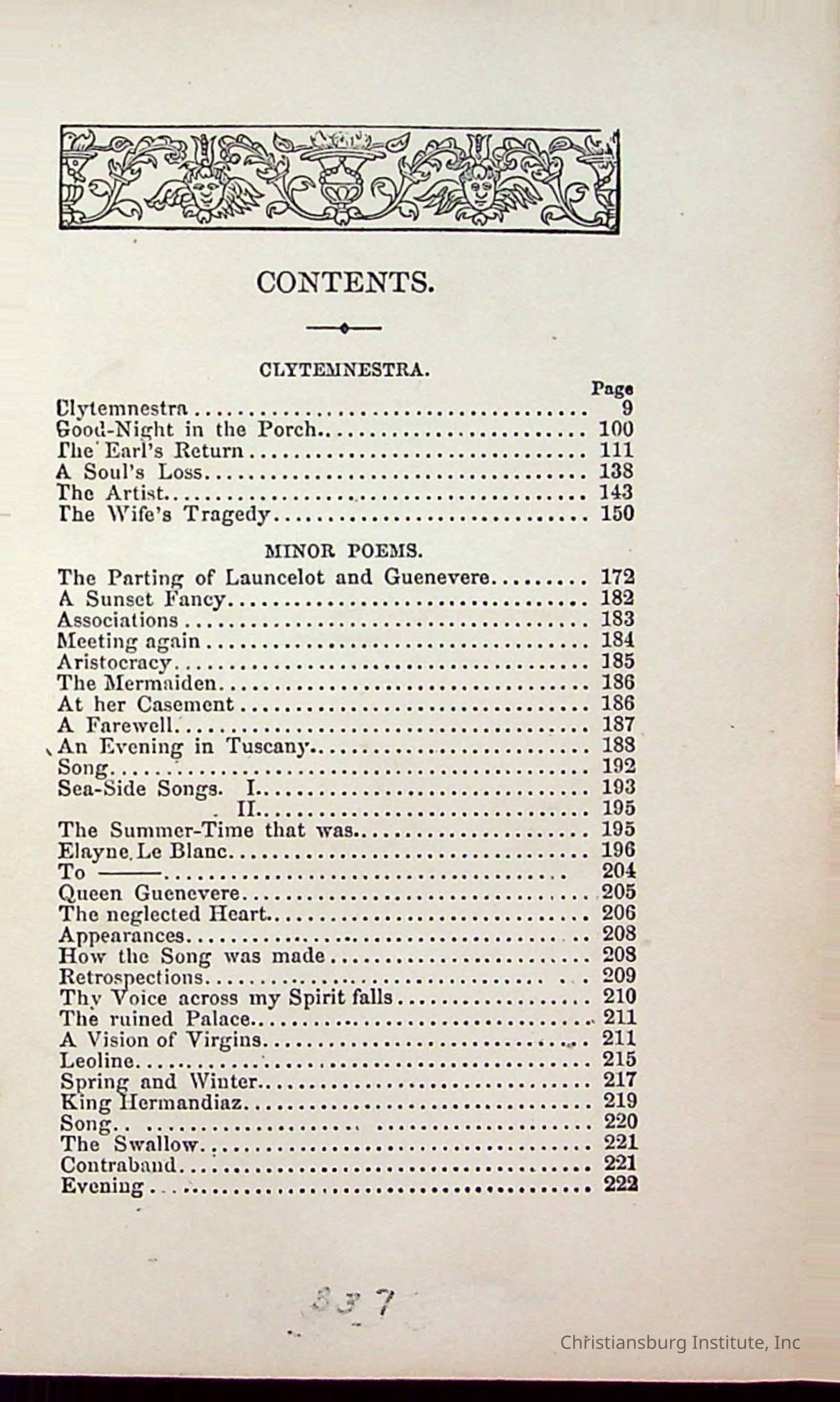 "Poems" written by Owen Meredith and published by James R. Osgood and Company in the year 1875. This book was in the Christiansburg Institute library.