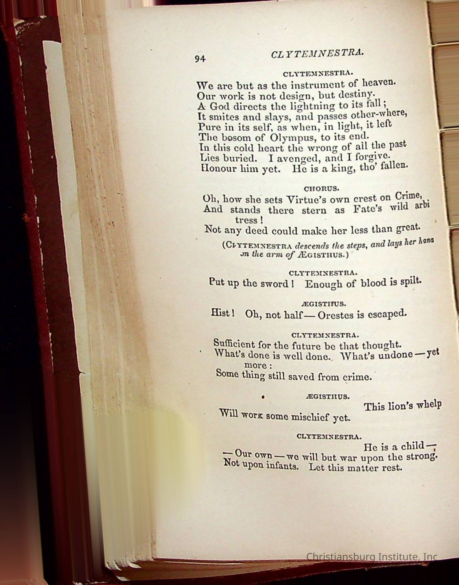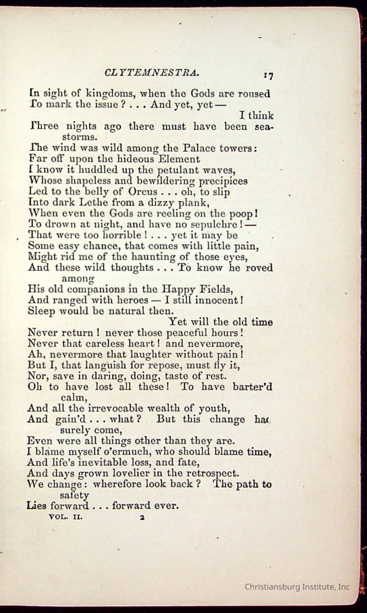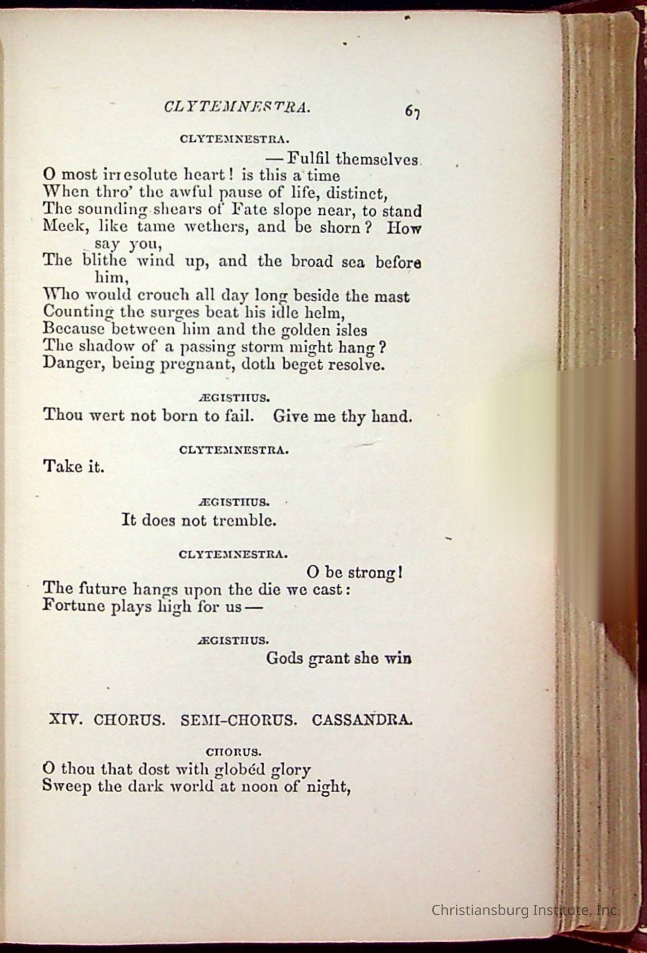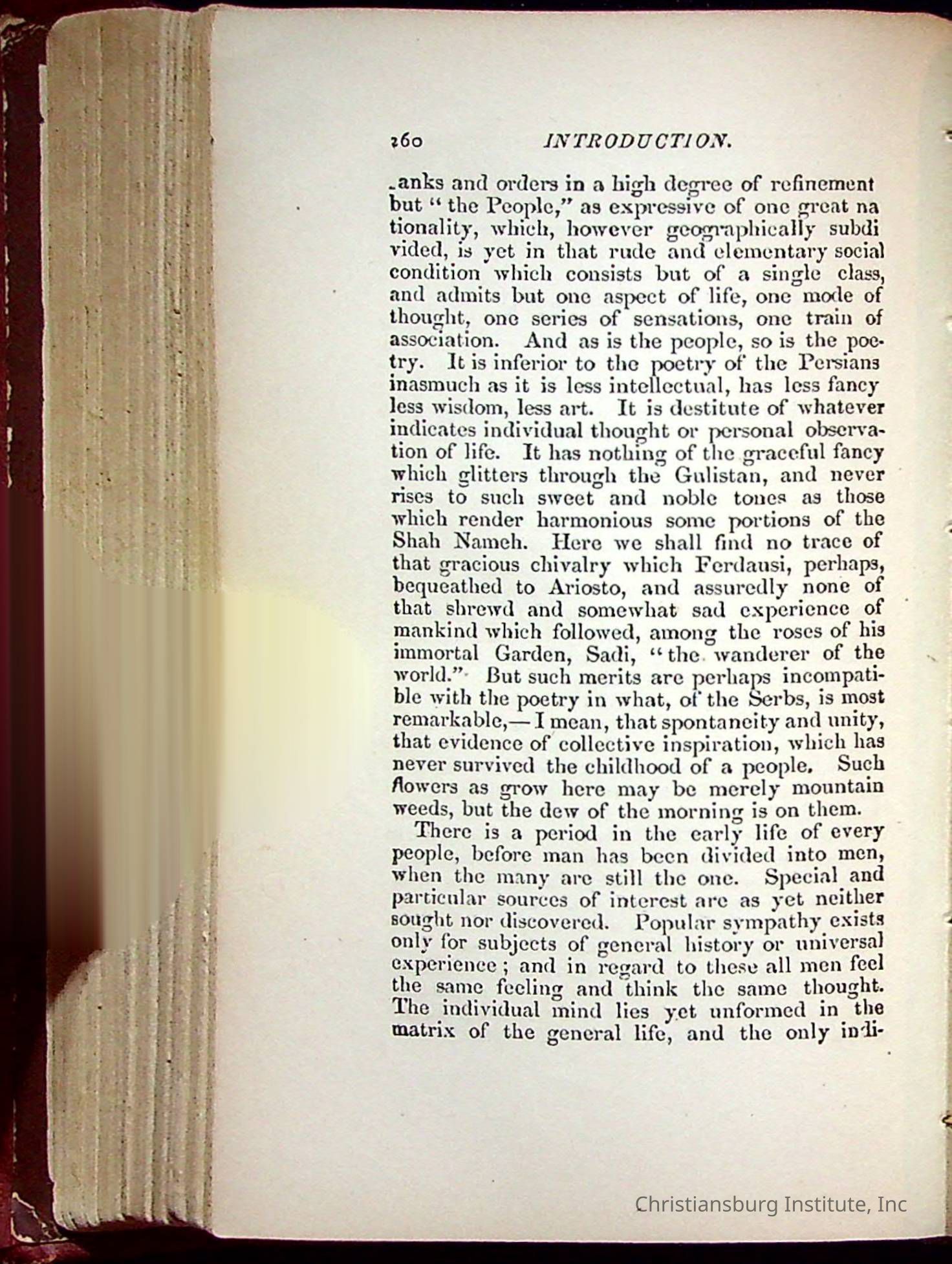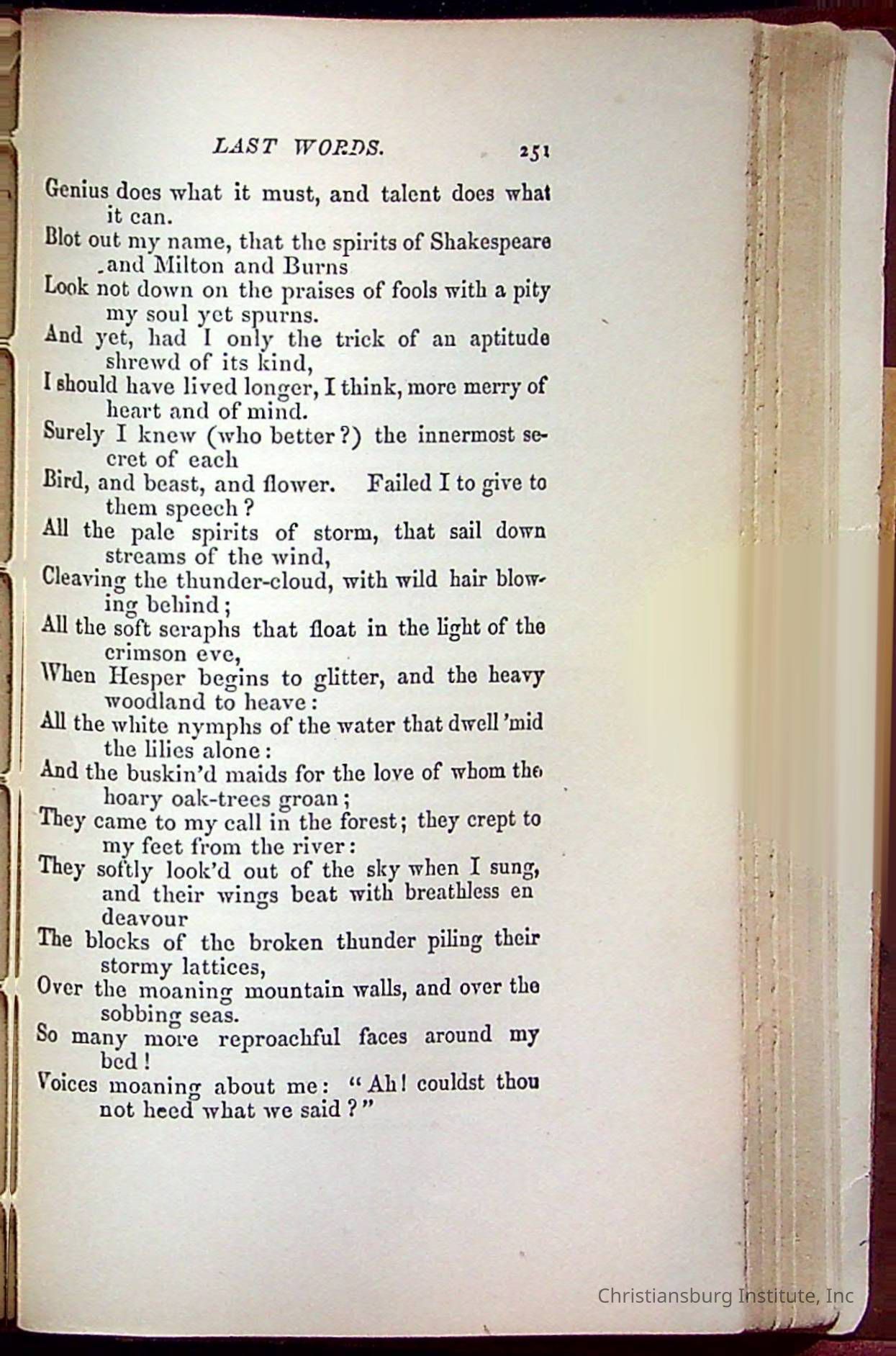 "Poems" written by Owen Meredith and published by James R. Osgood and Company in the year 1875. This book was in the Christiansburg Institute library.
