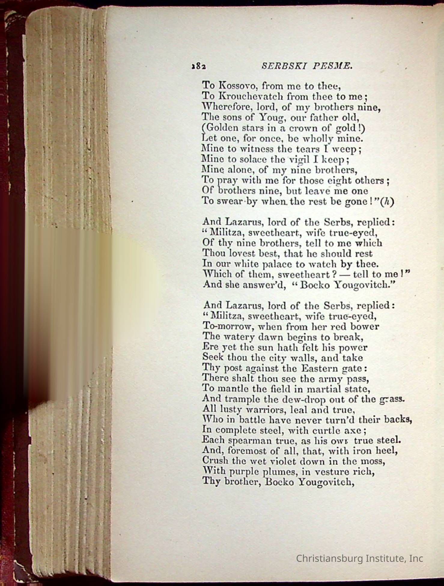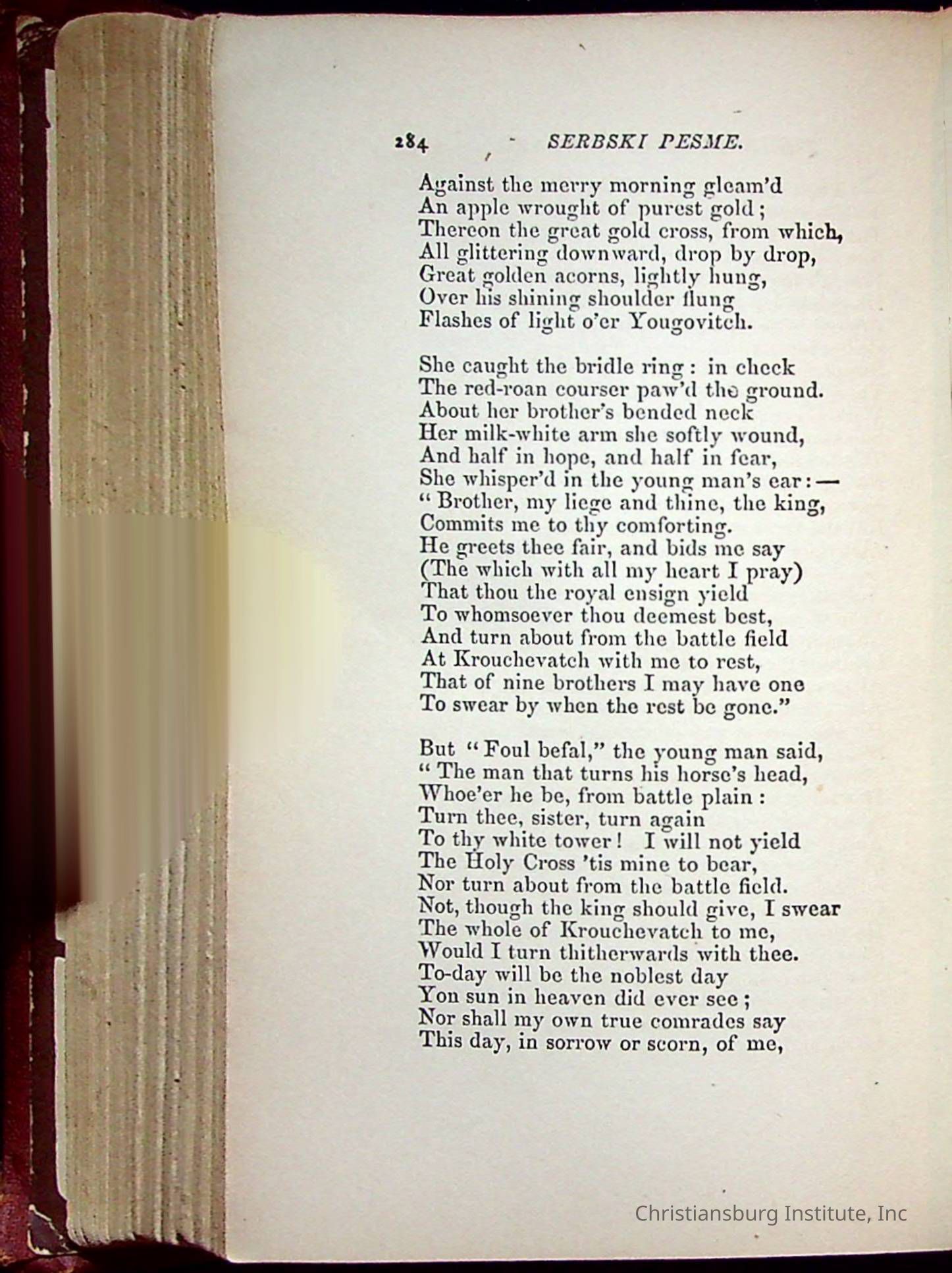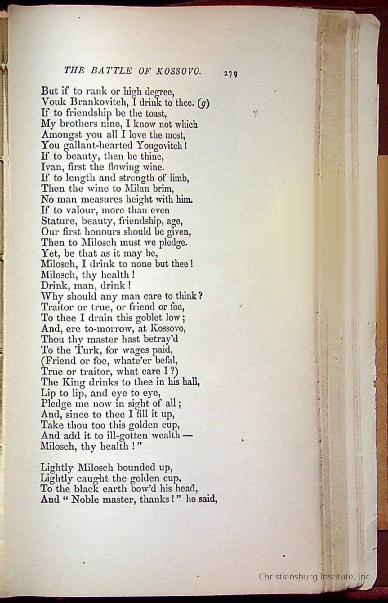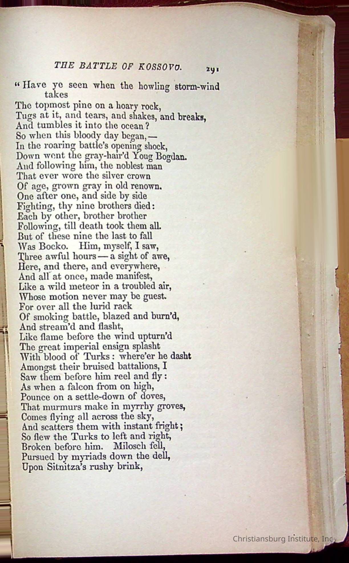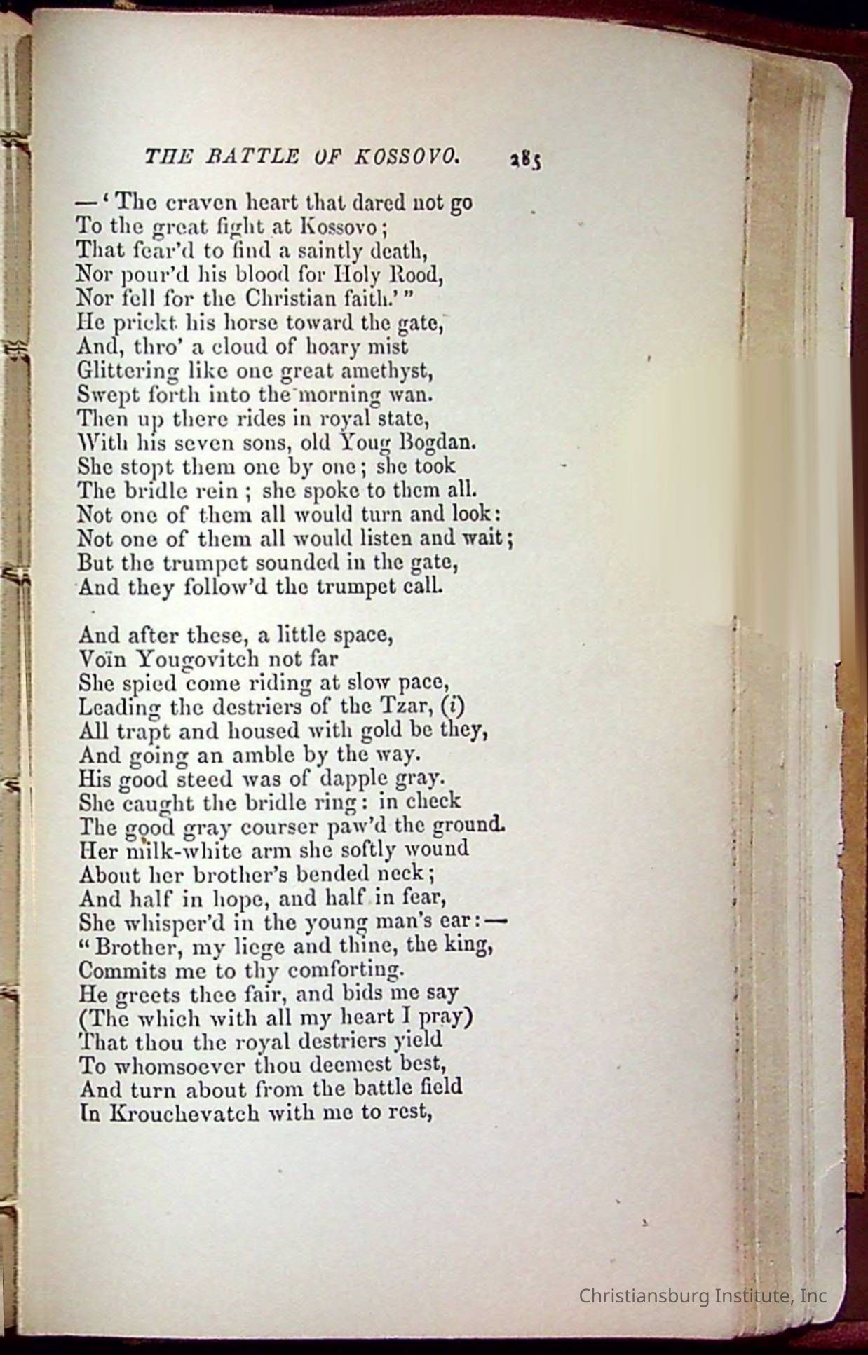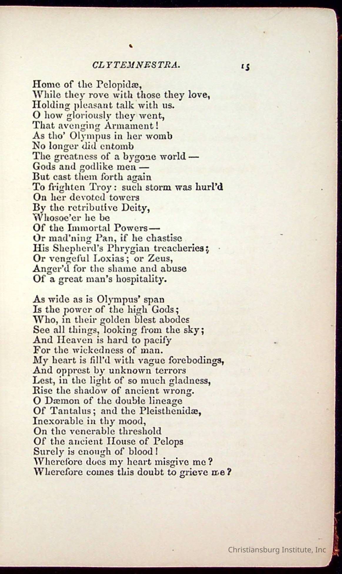 "Poems" written by Owen Meredith and published by James R. Osgood and Company in the year 1875. This book was in the Christiansburg Institute library.