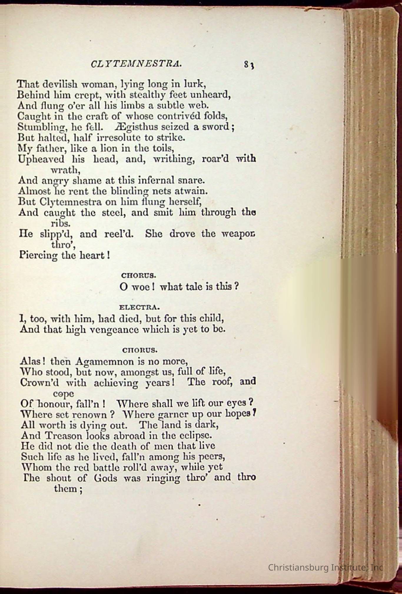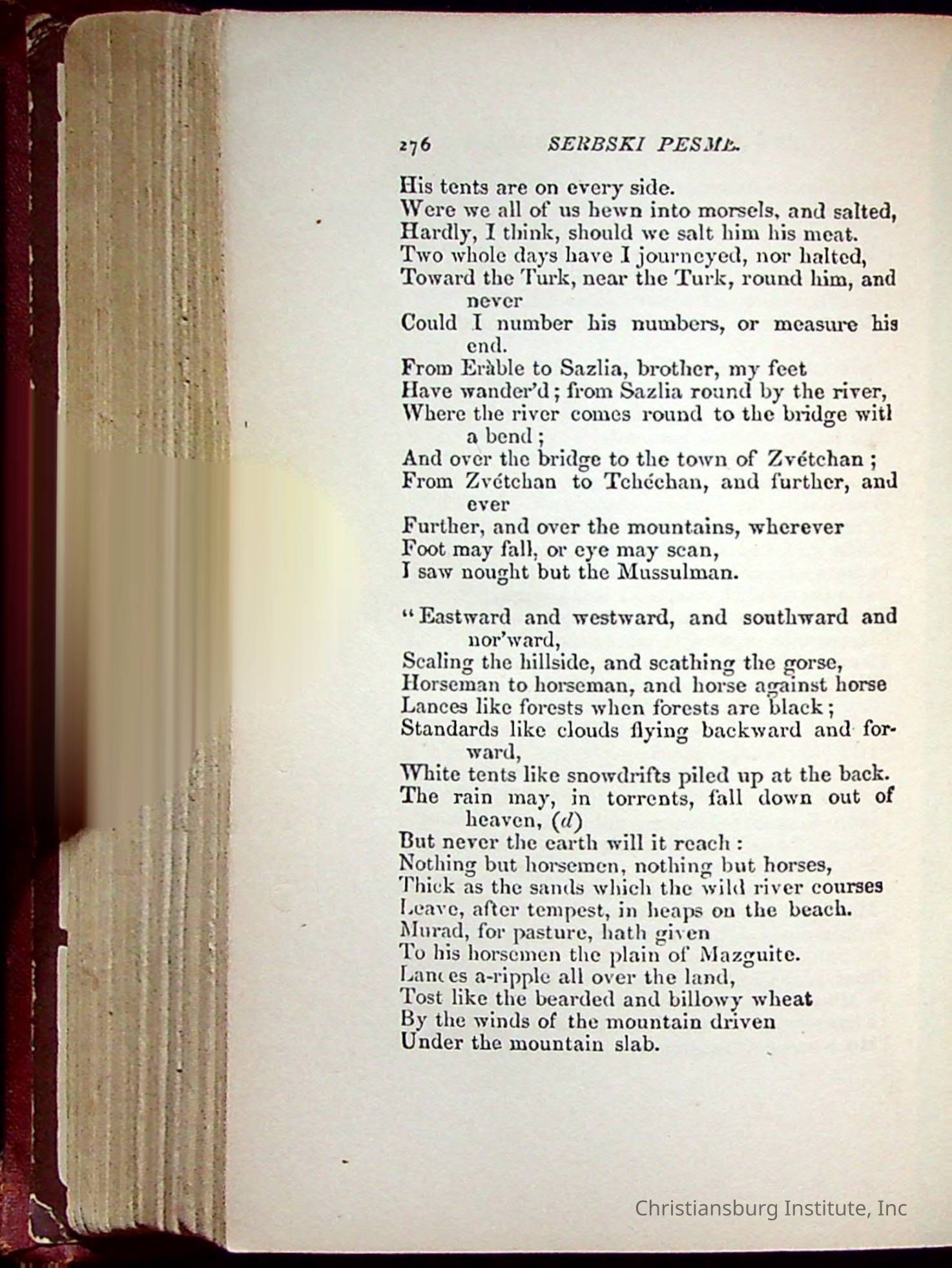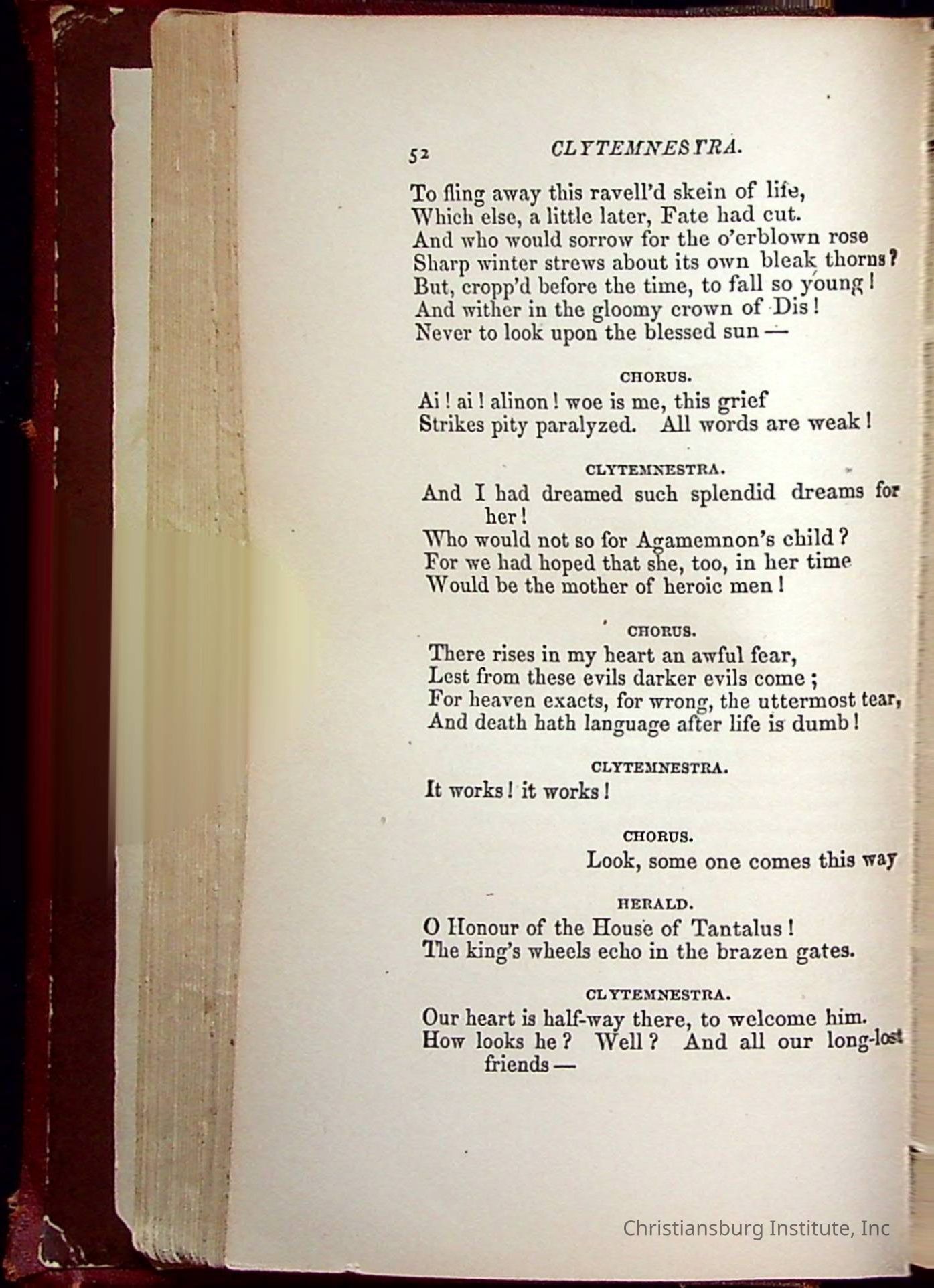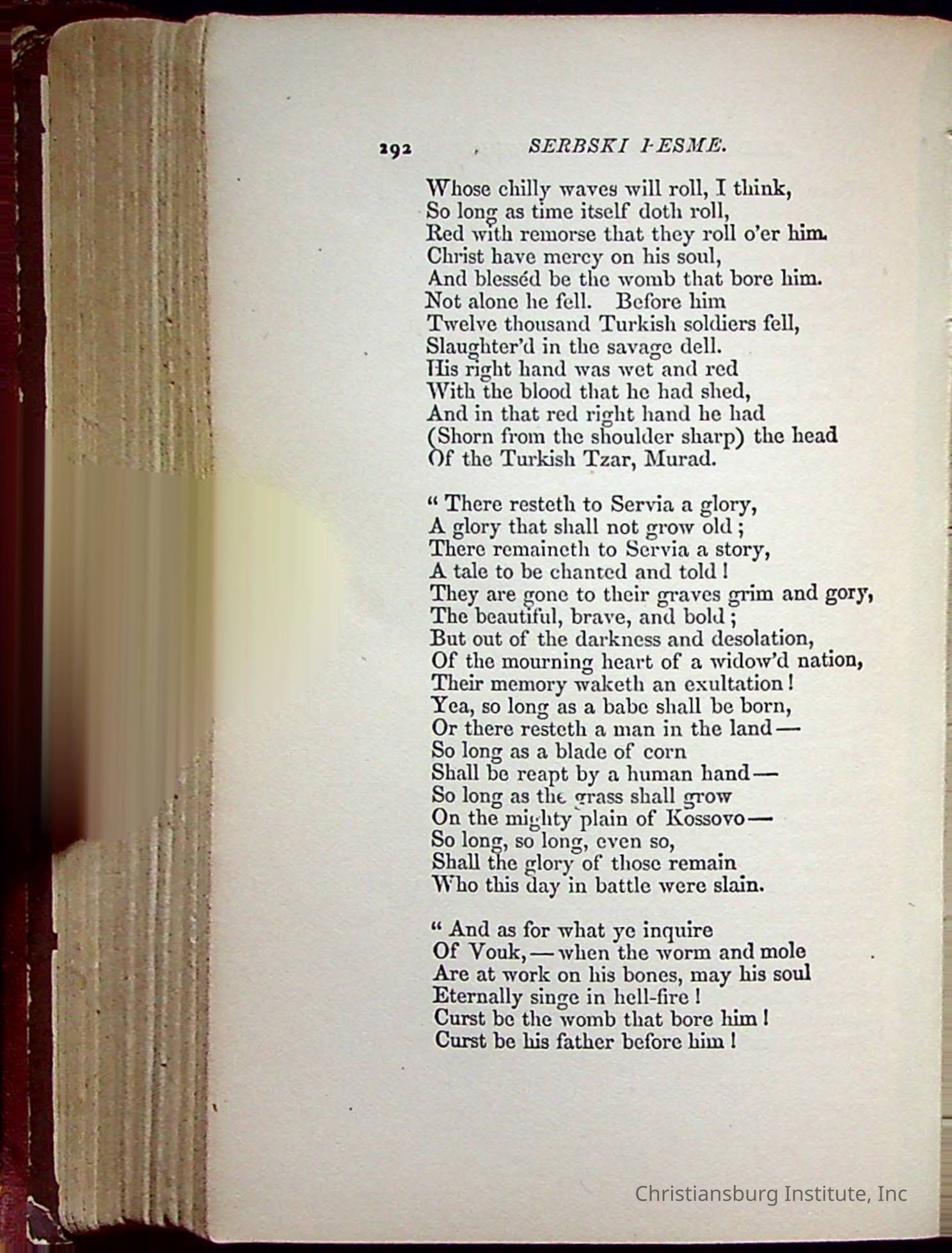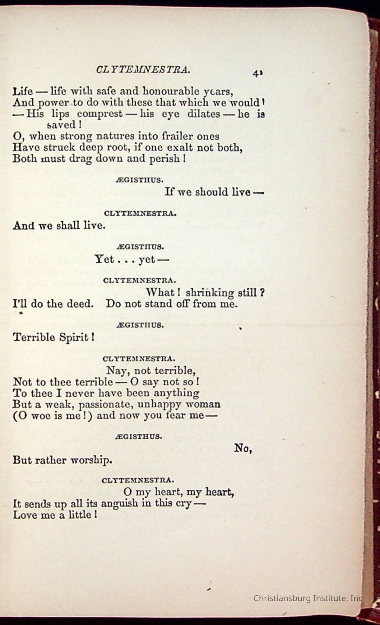 "Poems" written by Owen Meredith and published by James R. Osgood and Company in the year 1875. This book was in the Christiansburg Institute library.