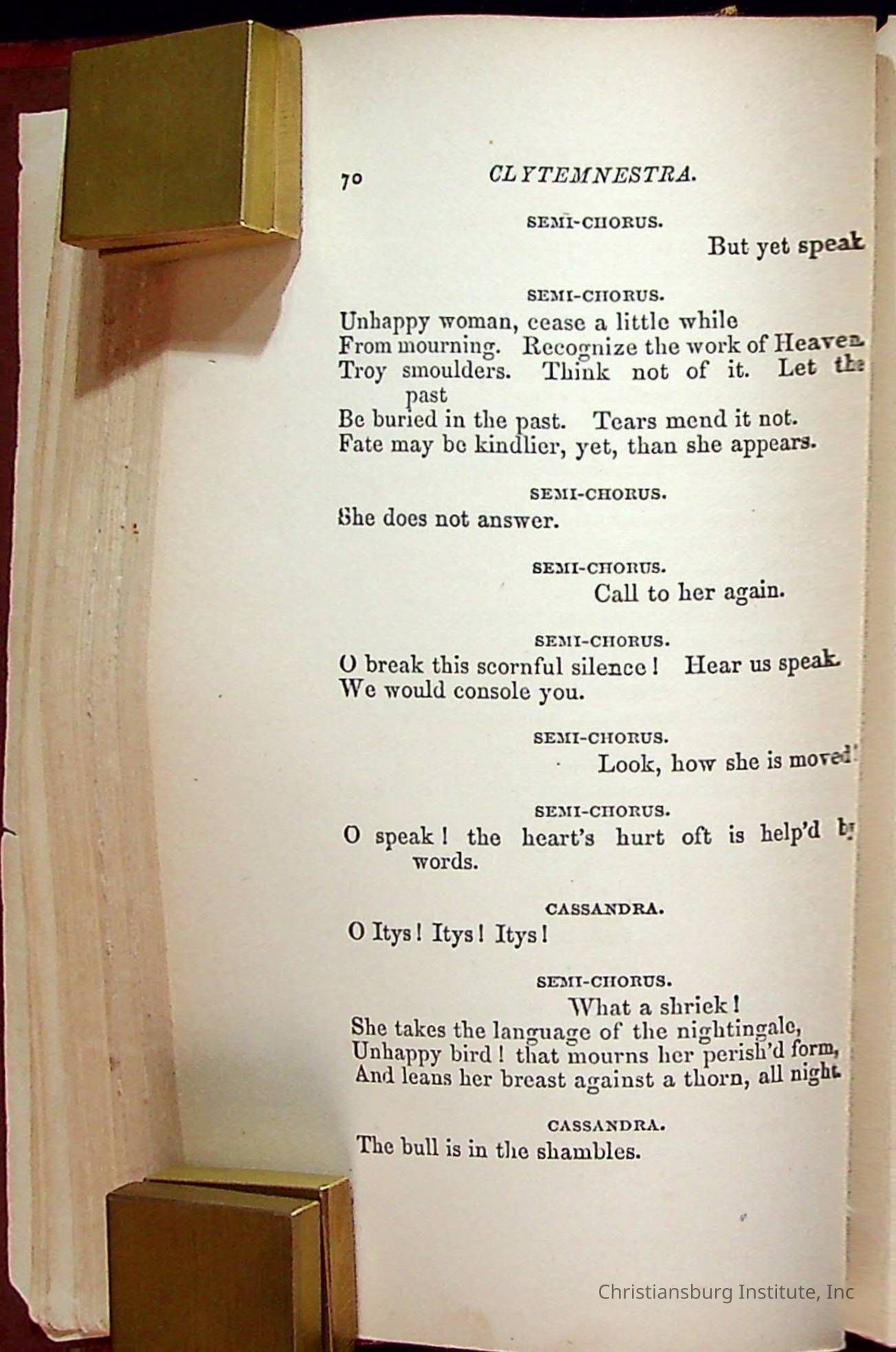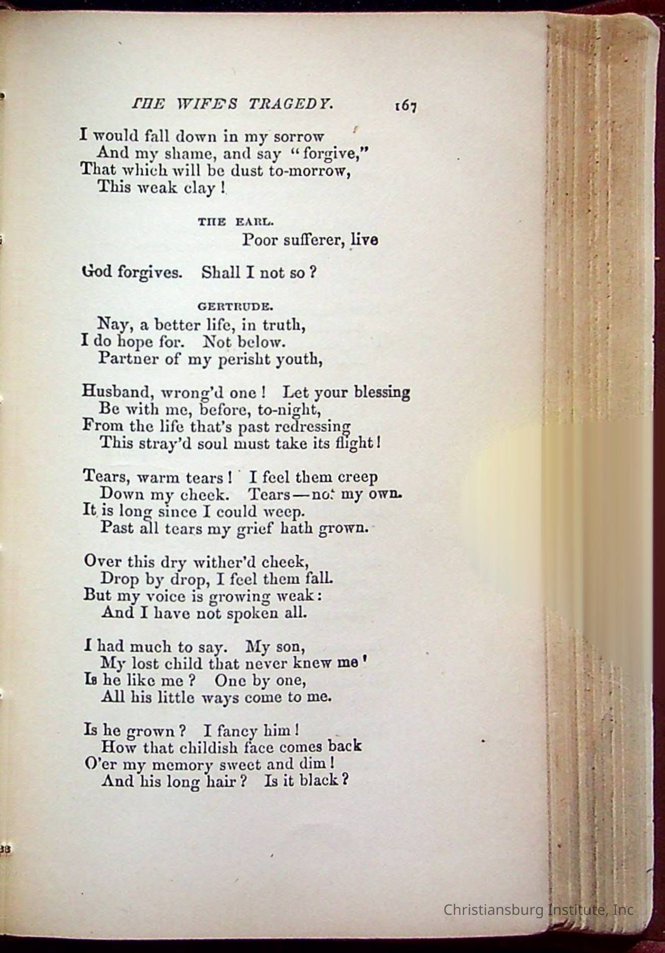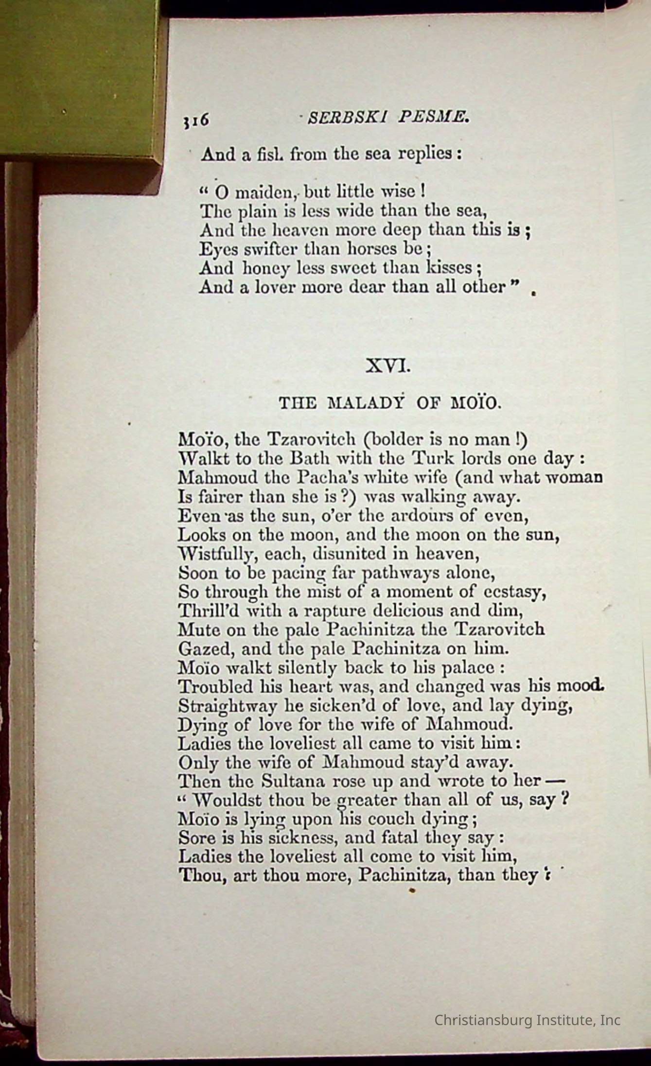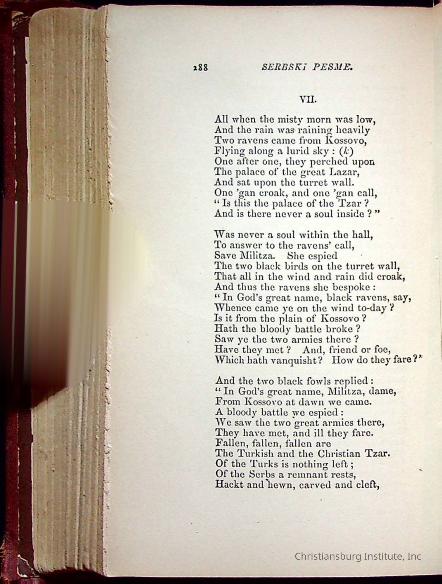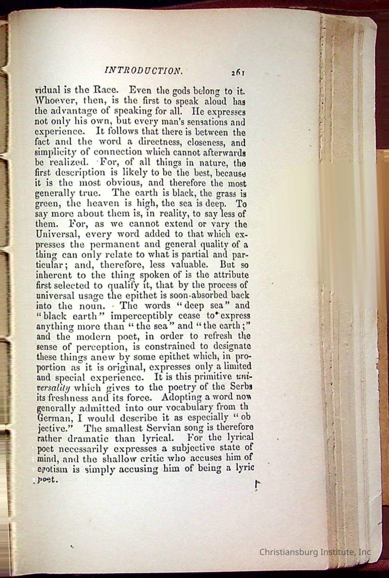 "Poems" written by Owen Meredith and published by James R. Osgood and Company in the year 1875. This book was in the Christiansburg Institute library.