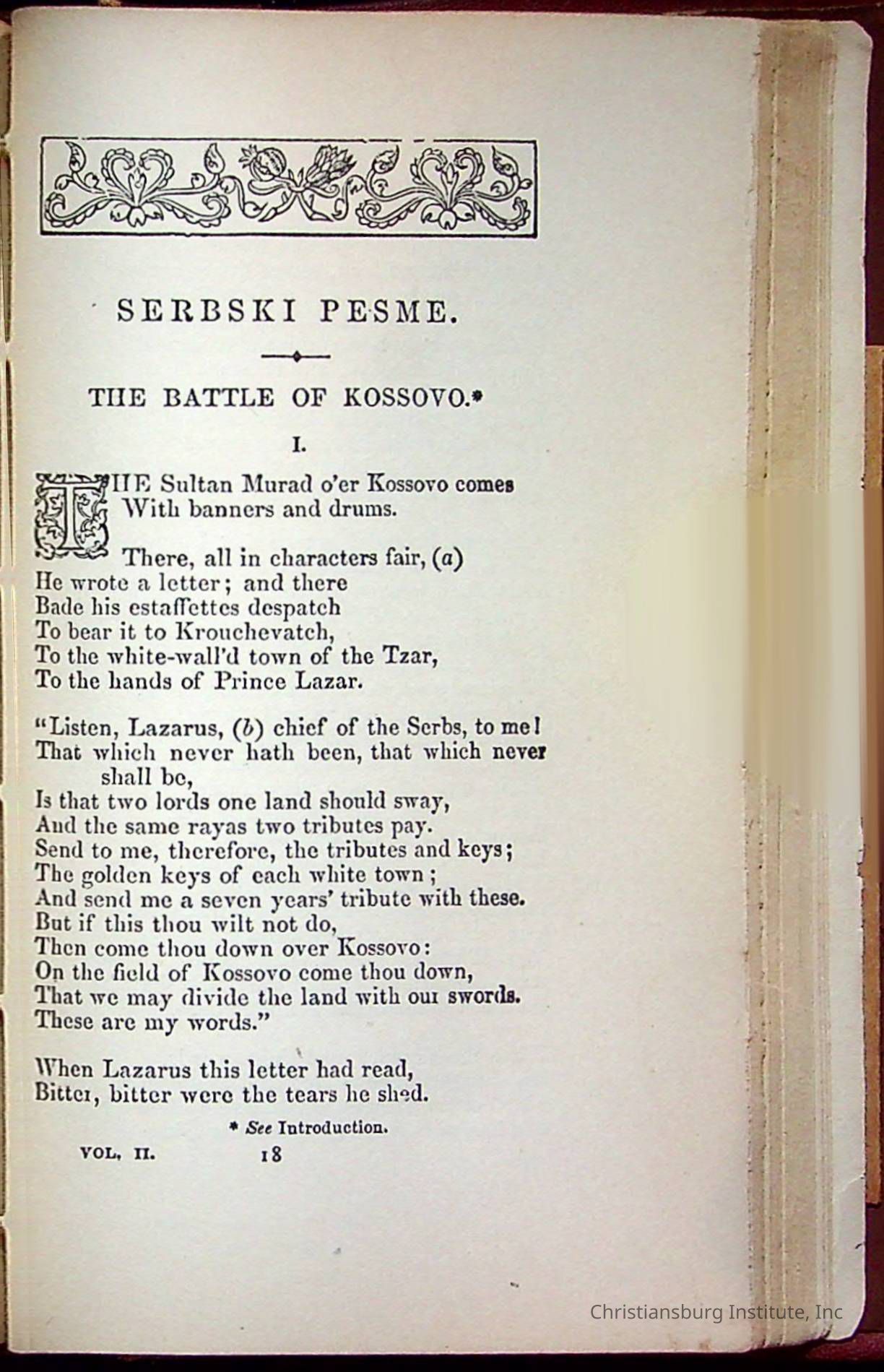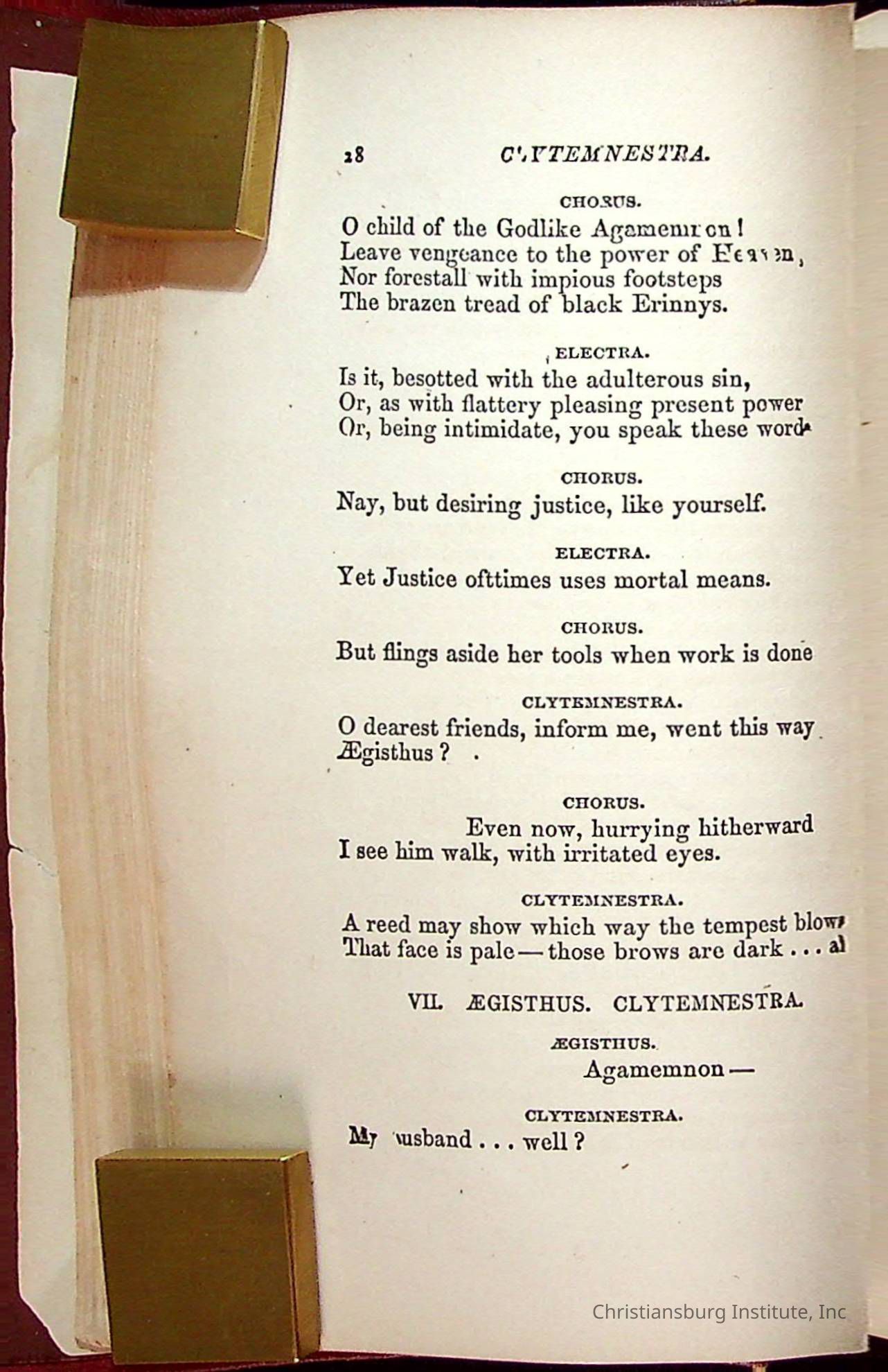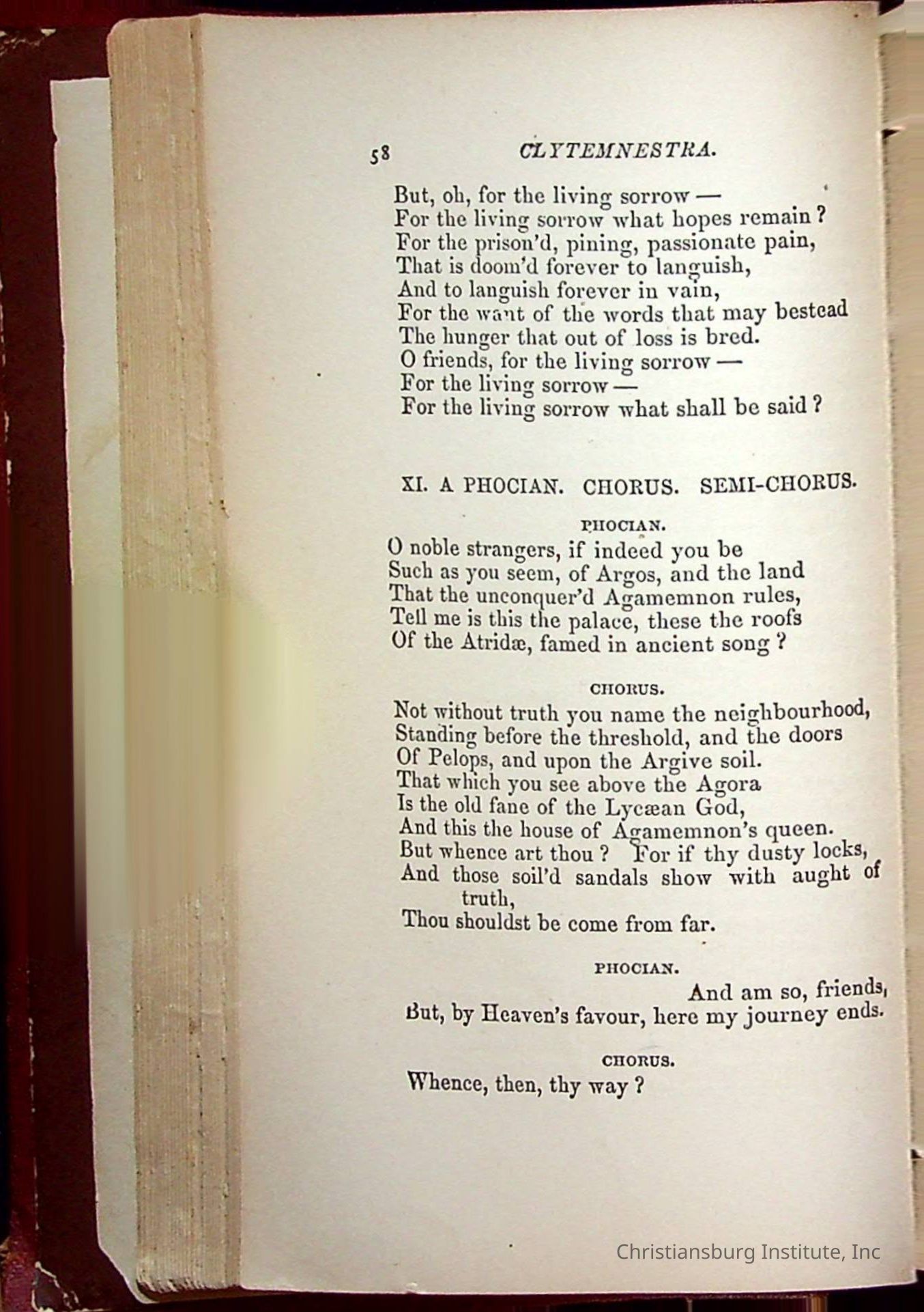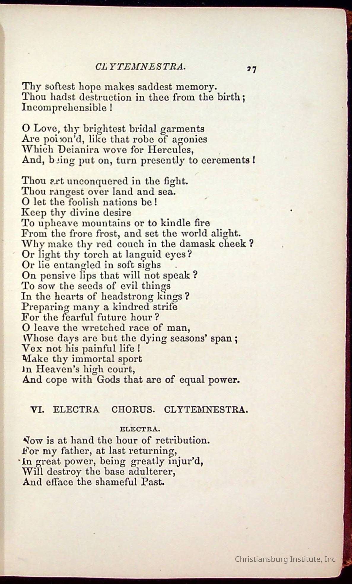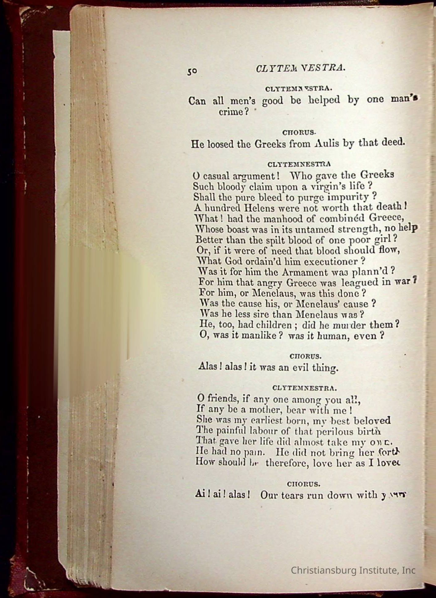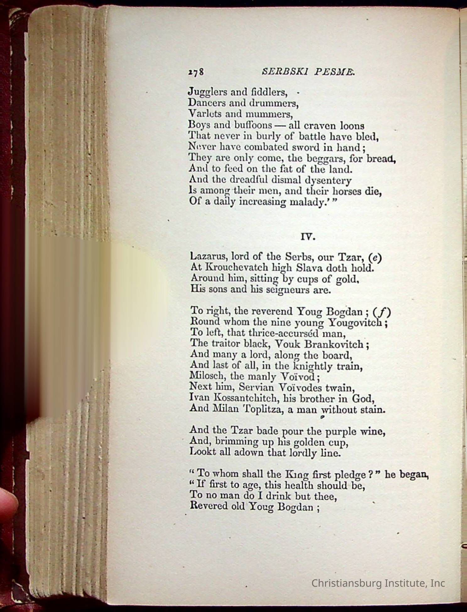 "Poems" written by Owen Meredith and published by James R. Osgood and Company in the year 1875. This book was in the Christiansburg Institute library.