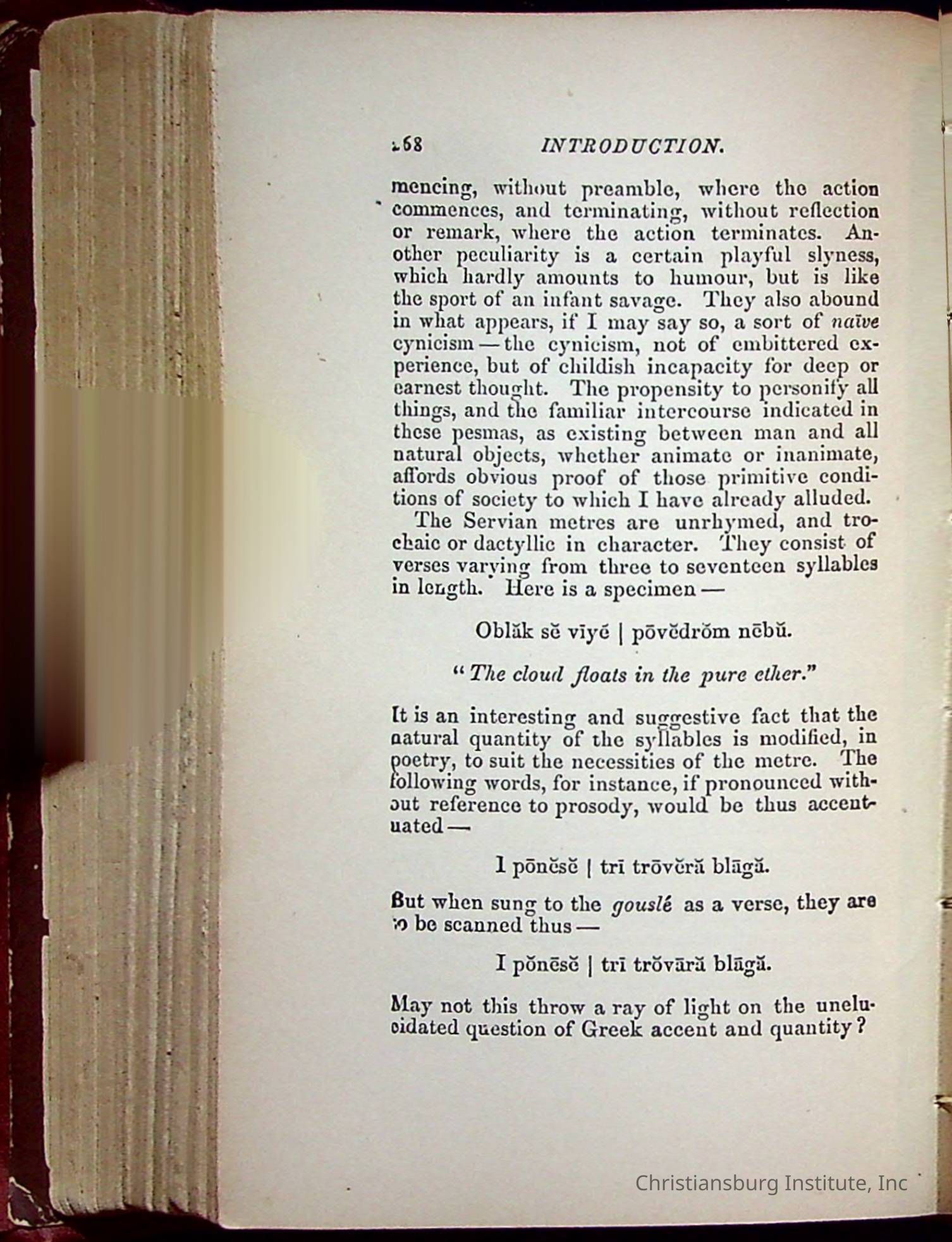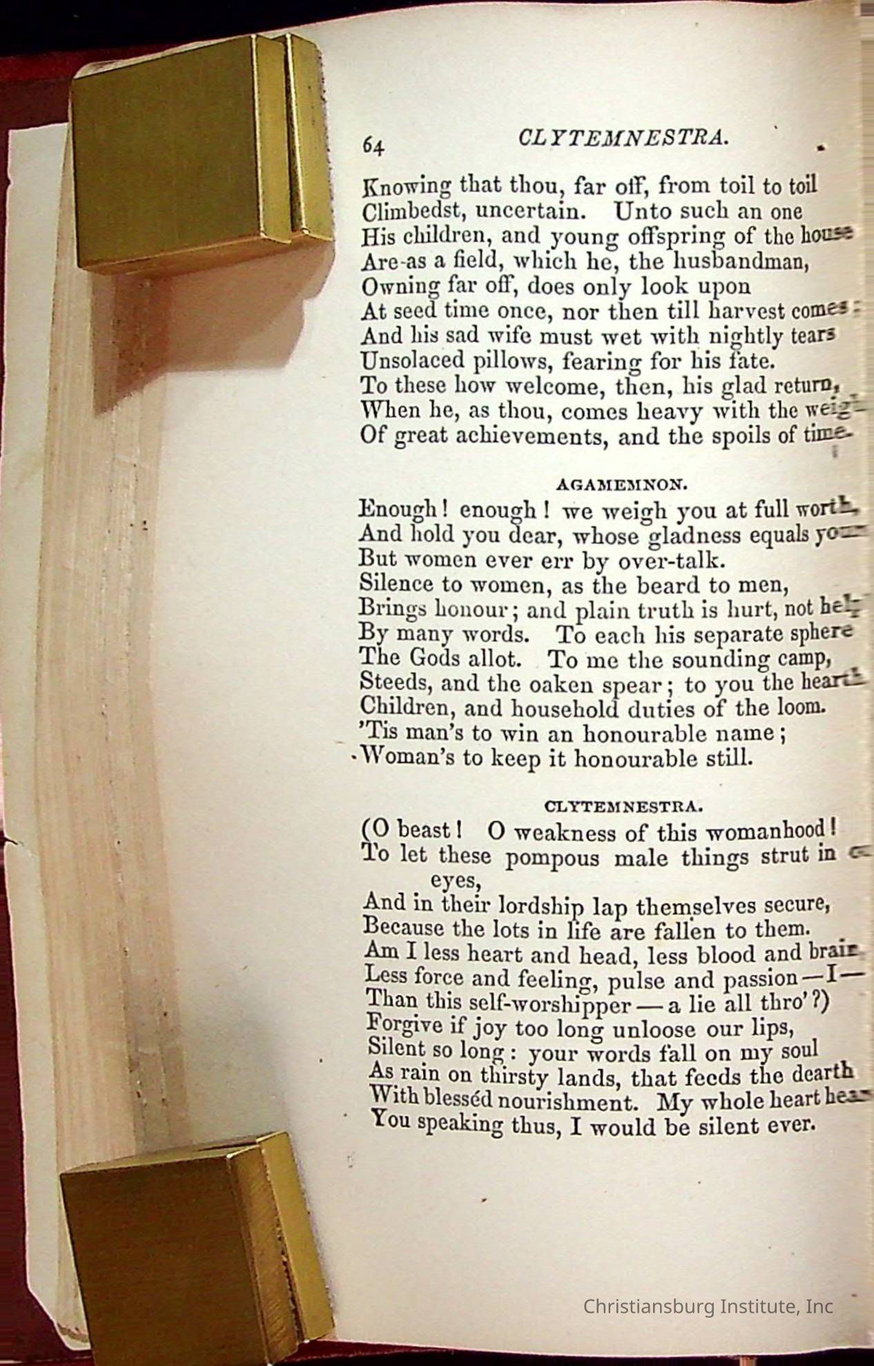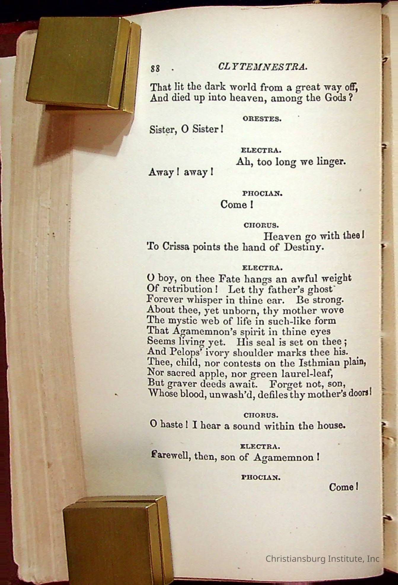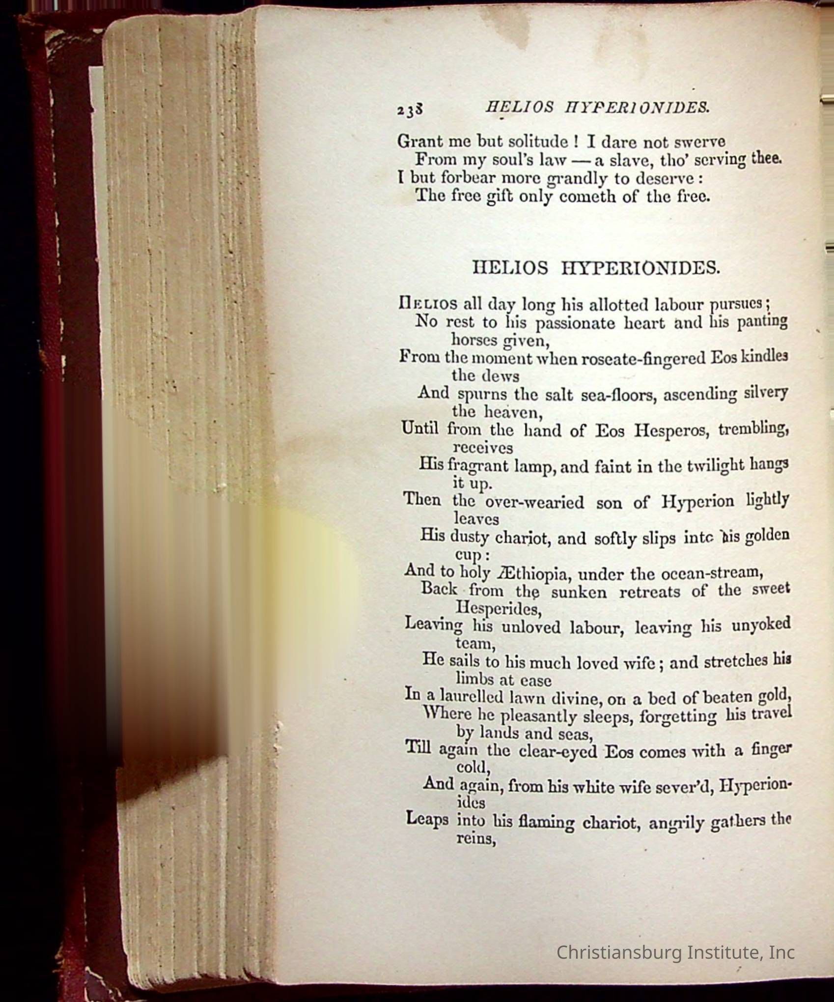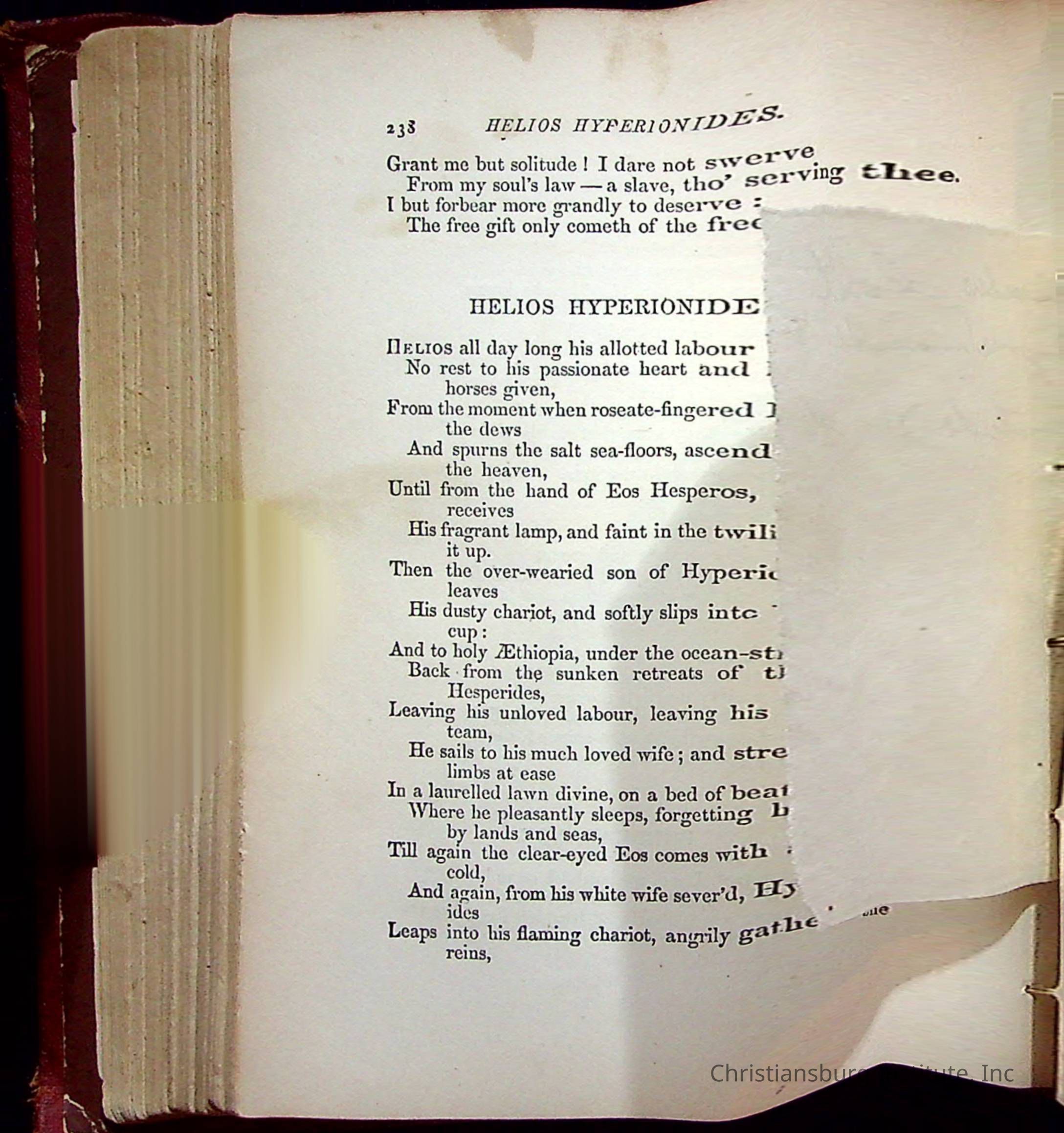 "Poems" written by Owen Meredith and published by James R. Osgood and Company in the year 1875. This book was in the Christiansburg Institute library.