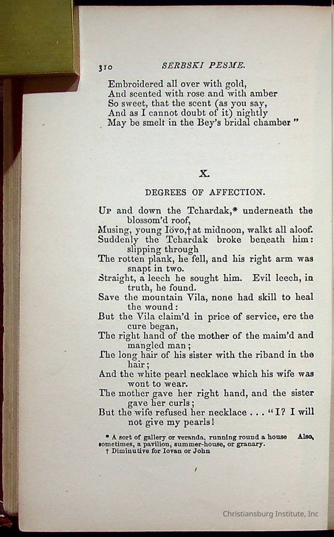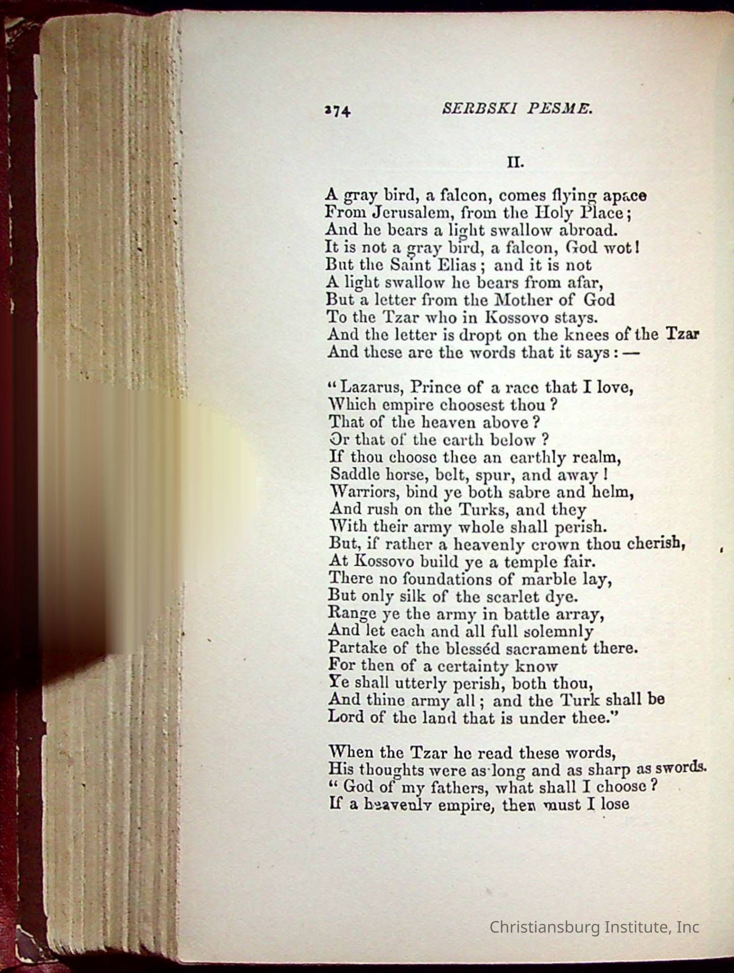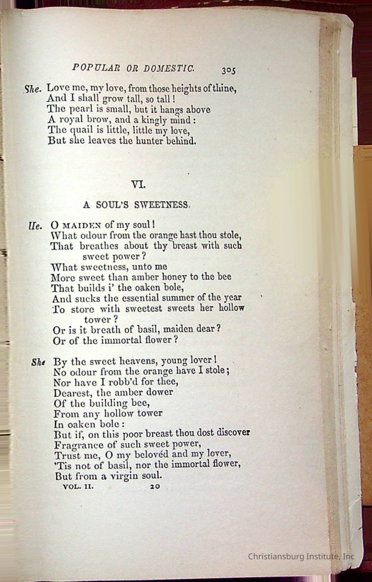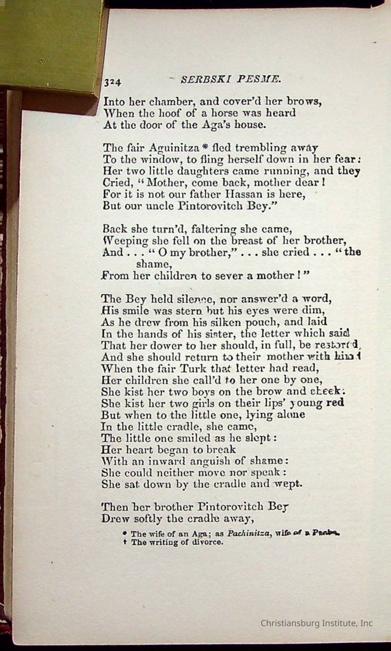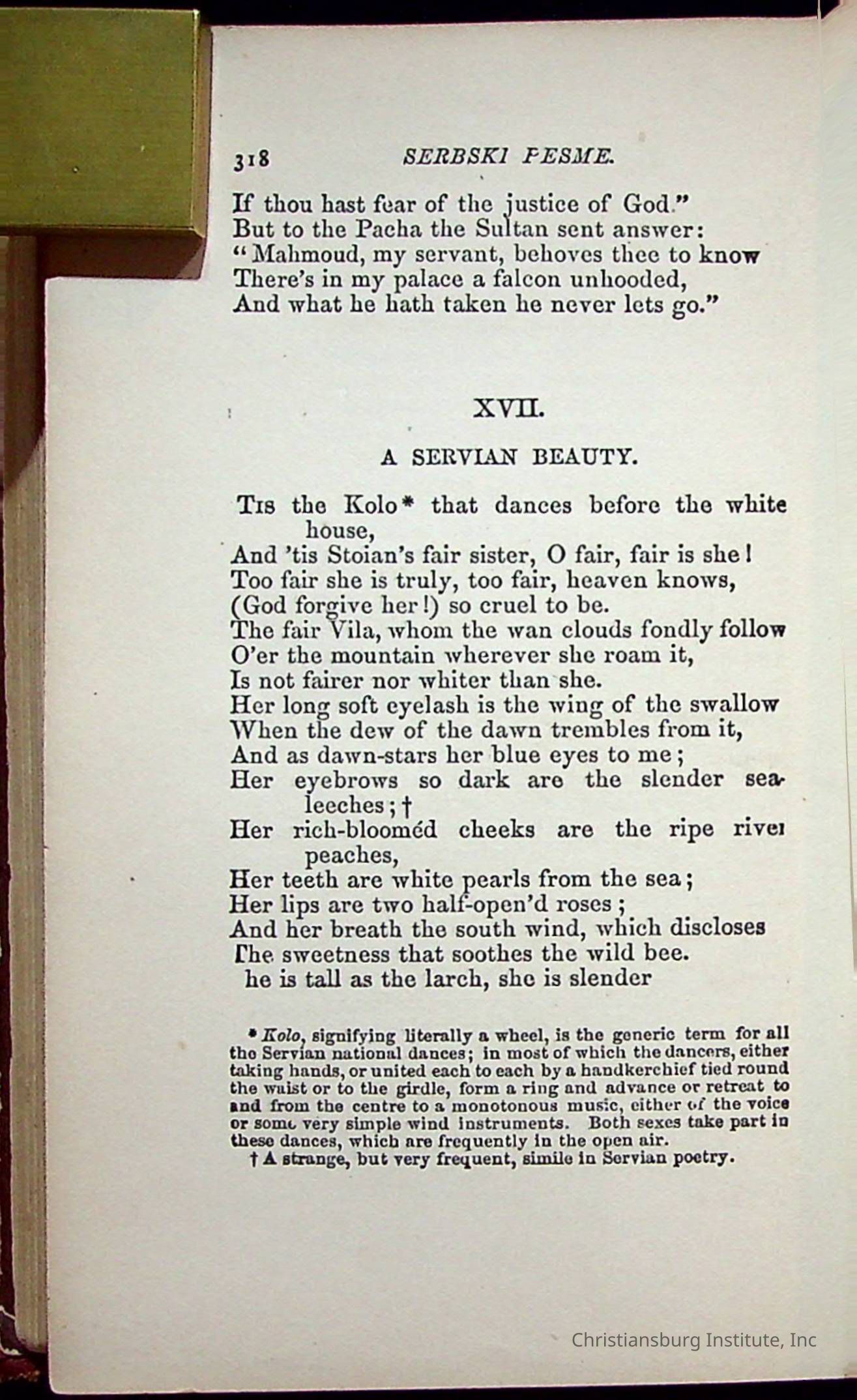 "Poems" written by Owen Meredith and published by James R. Osgood and Company in the year 1875. This book was in the Christiansburg Institute library.