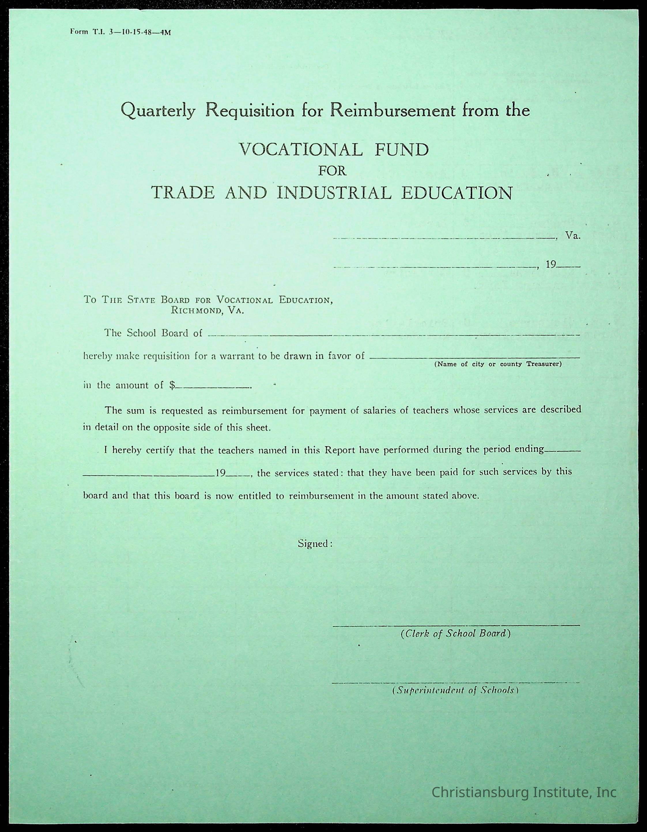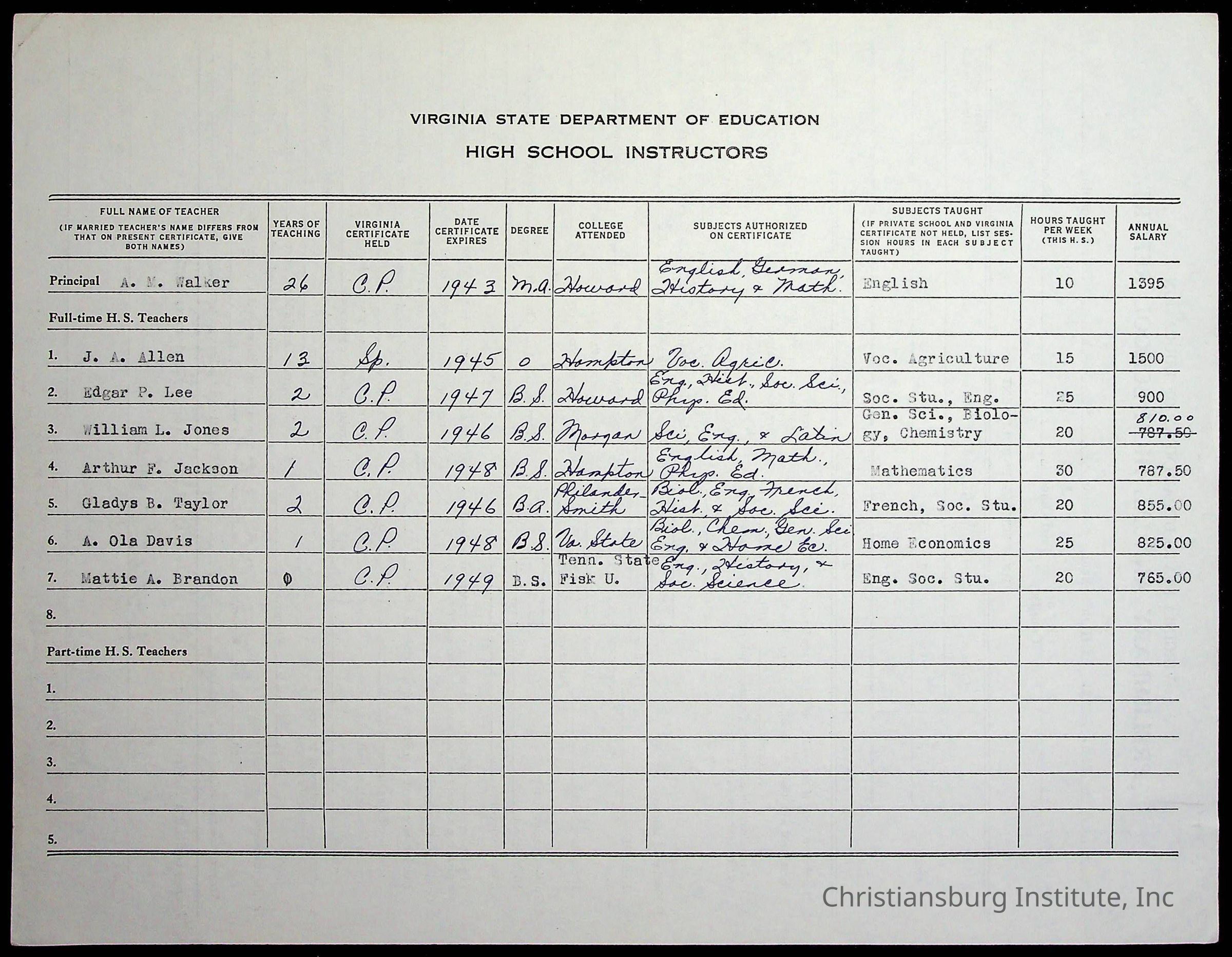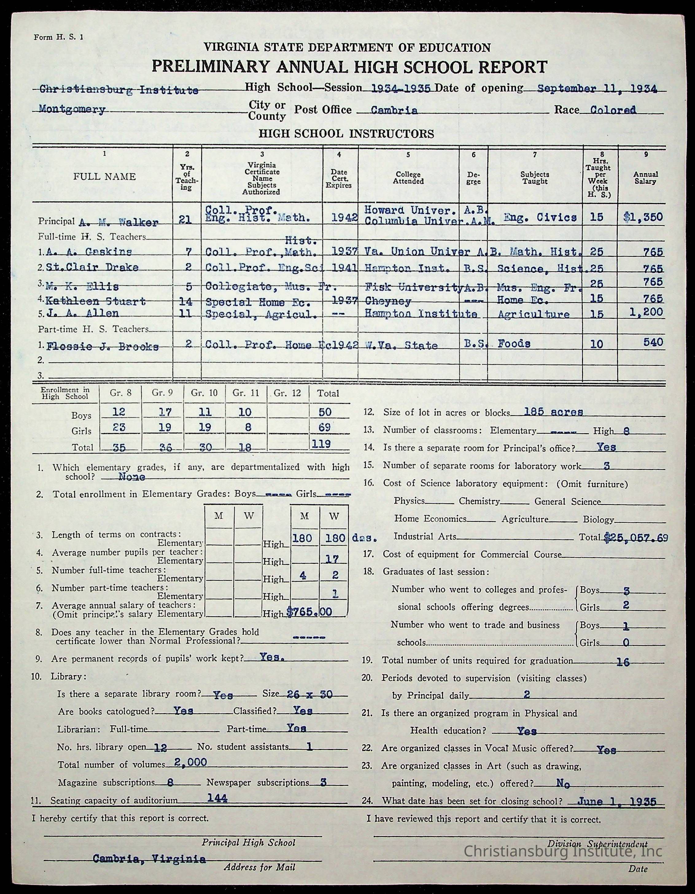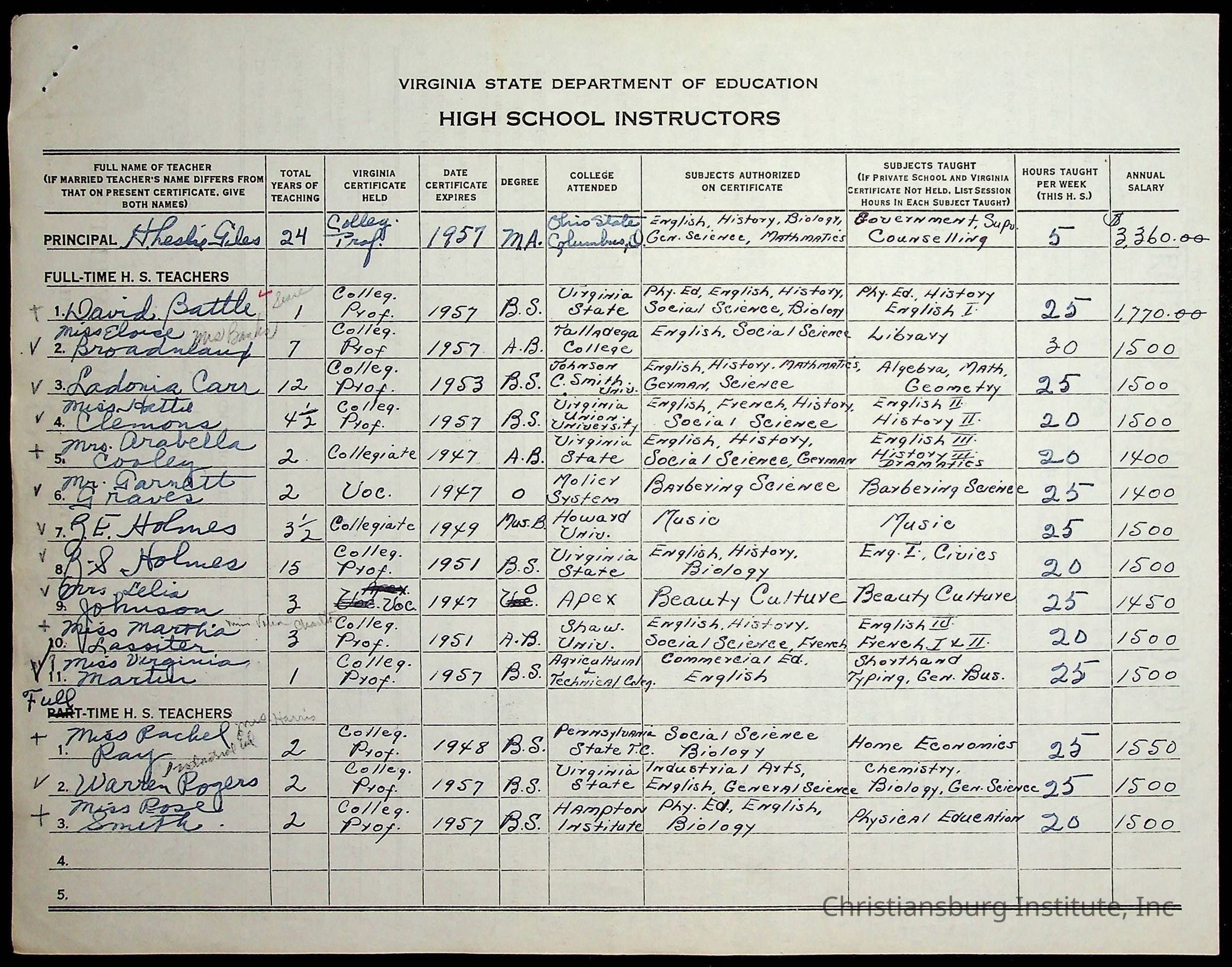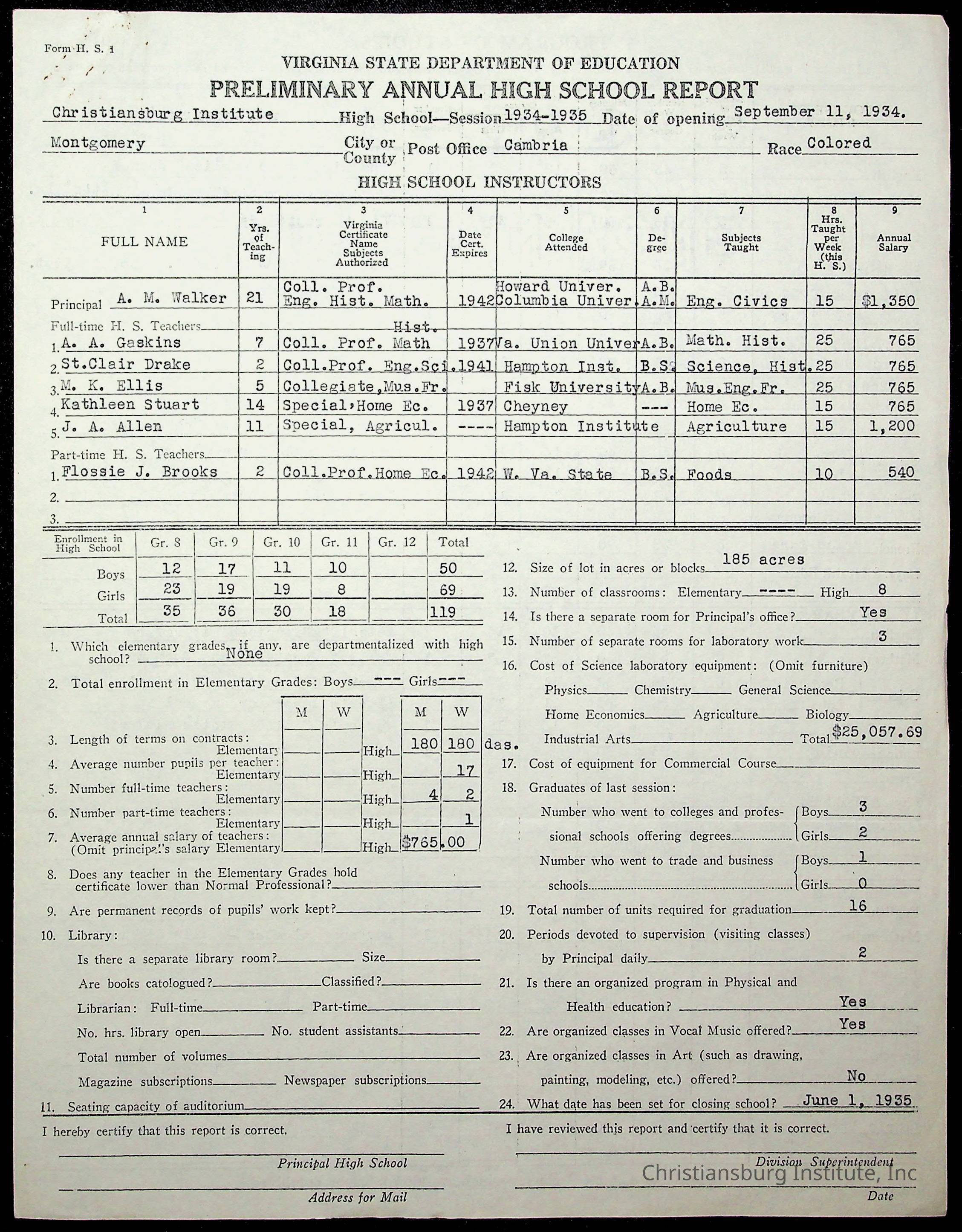 Christiansburg Institute, Commonwealth of Virginia