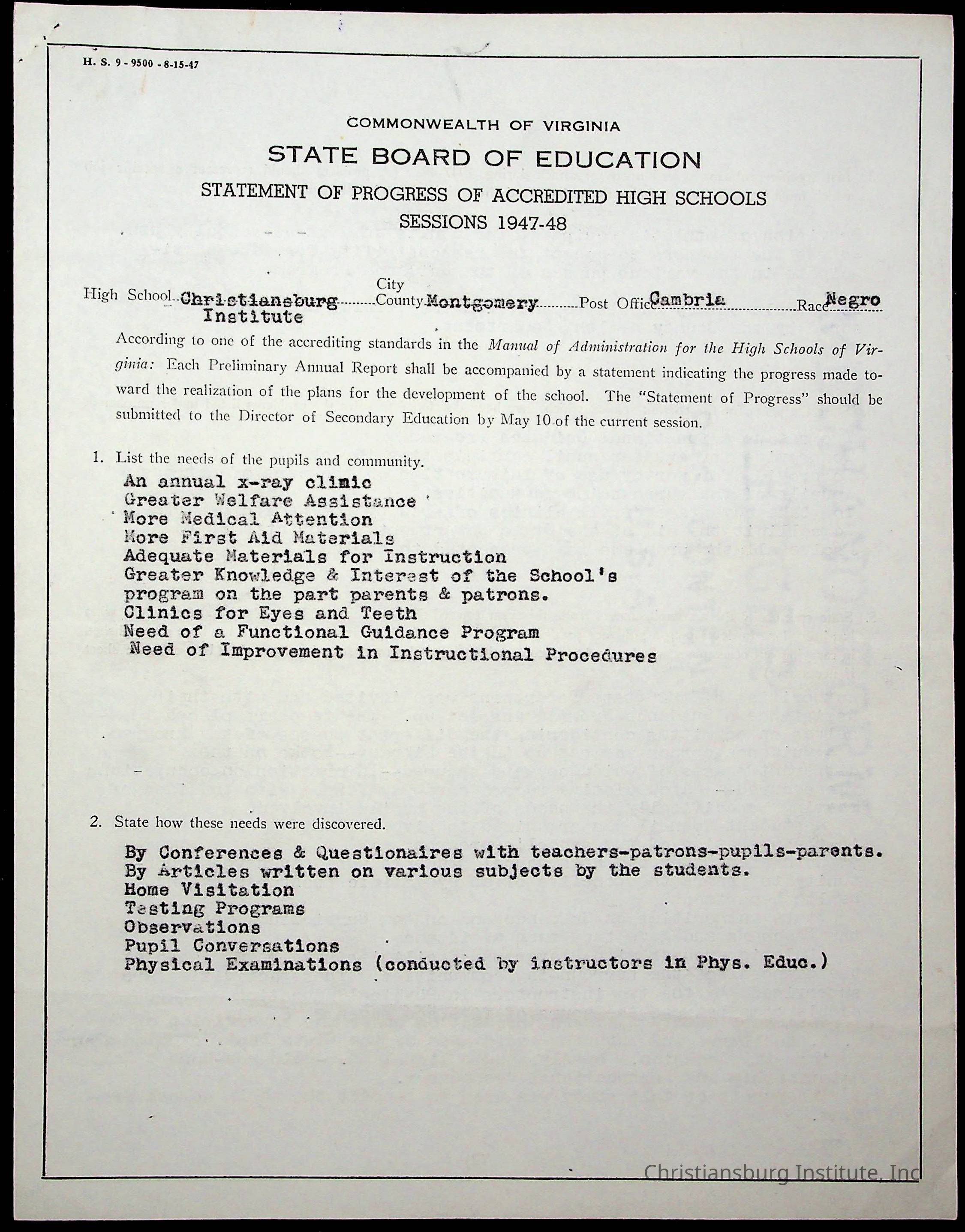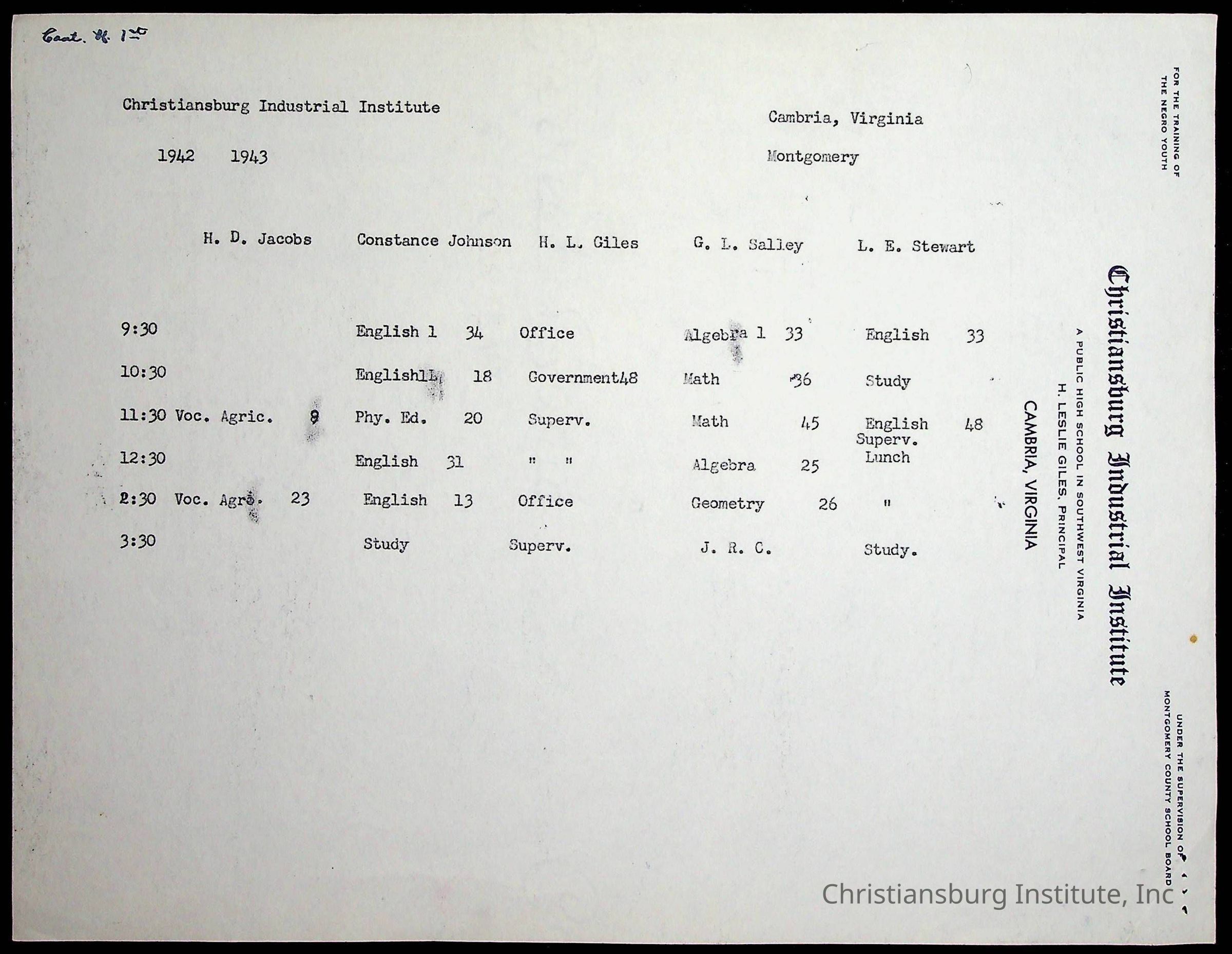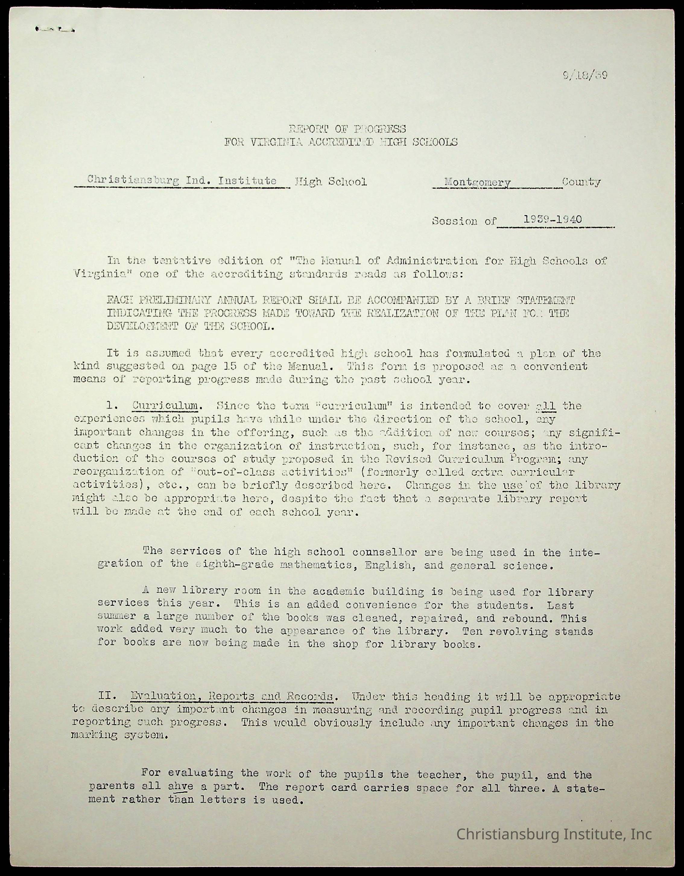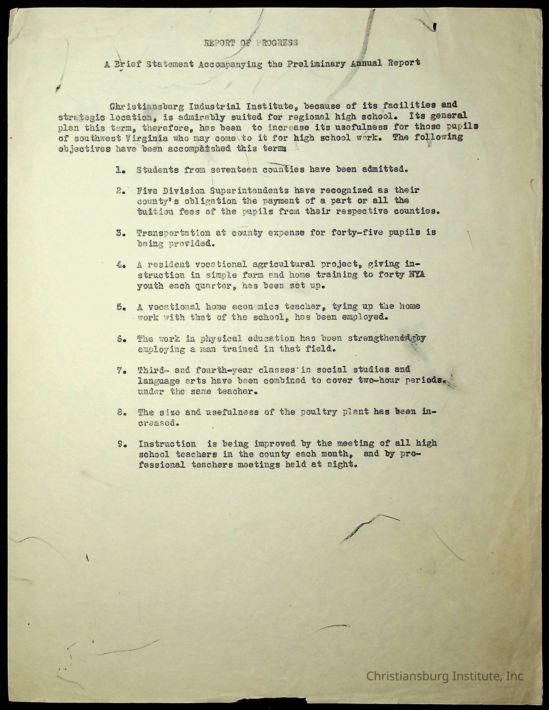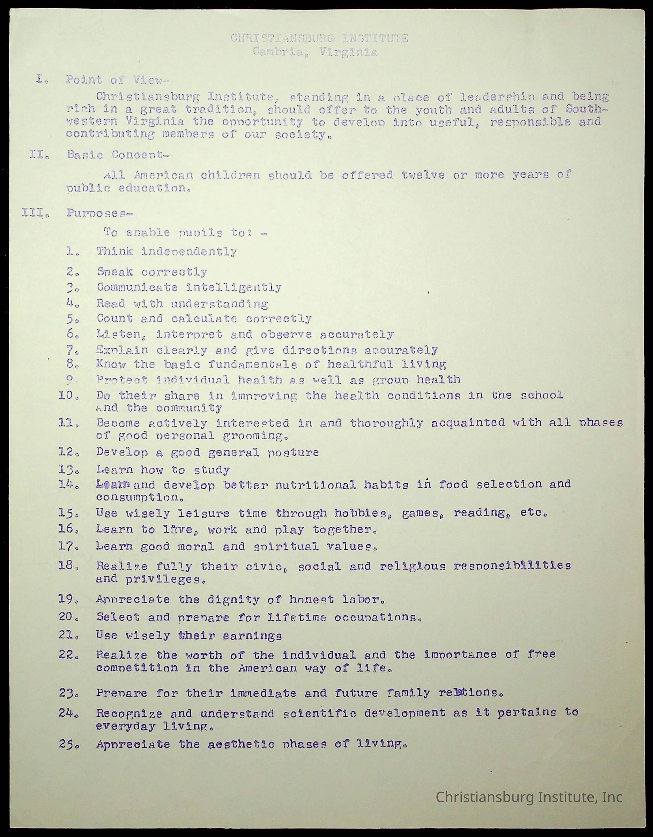 Copyright has been assigned to Christiansburg Institute Museum & Archives by Montgomery County Public Schools. For permission to publish materials created by the donor, contact CIMA@christiansburginstitute.com. Materials not created by Christiansburg Industrial Institute may still be under copyright.