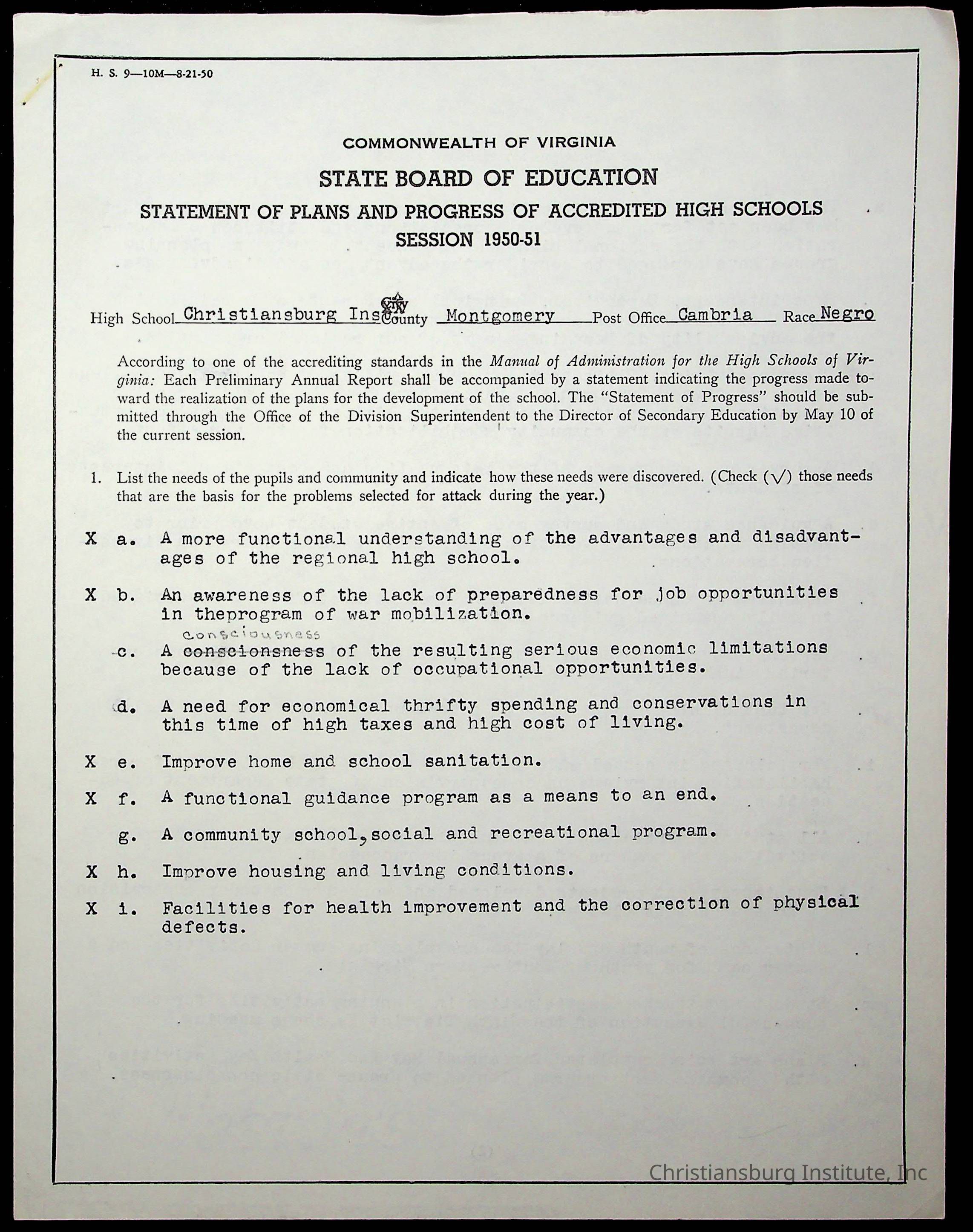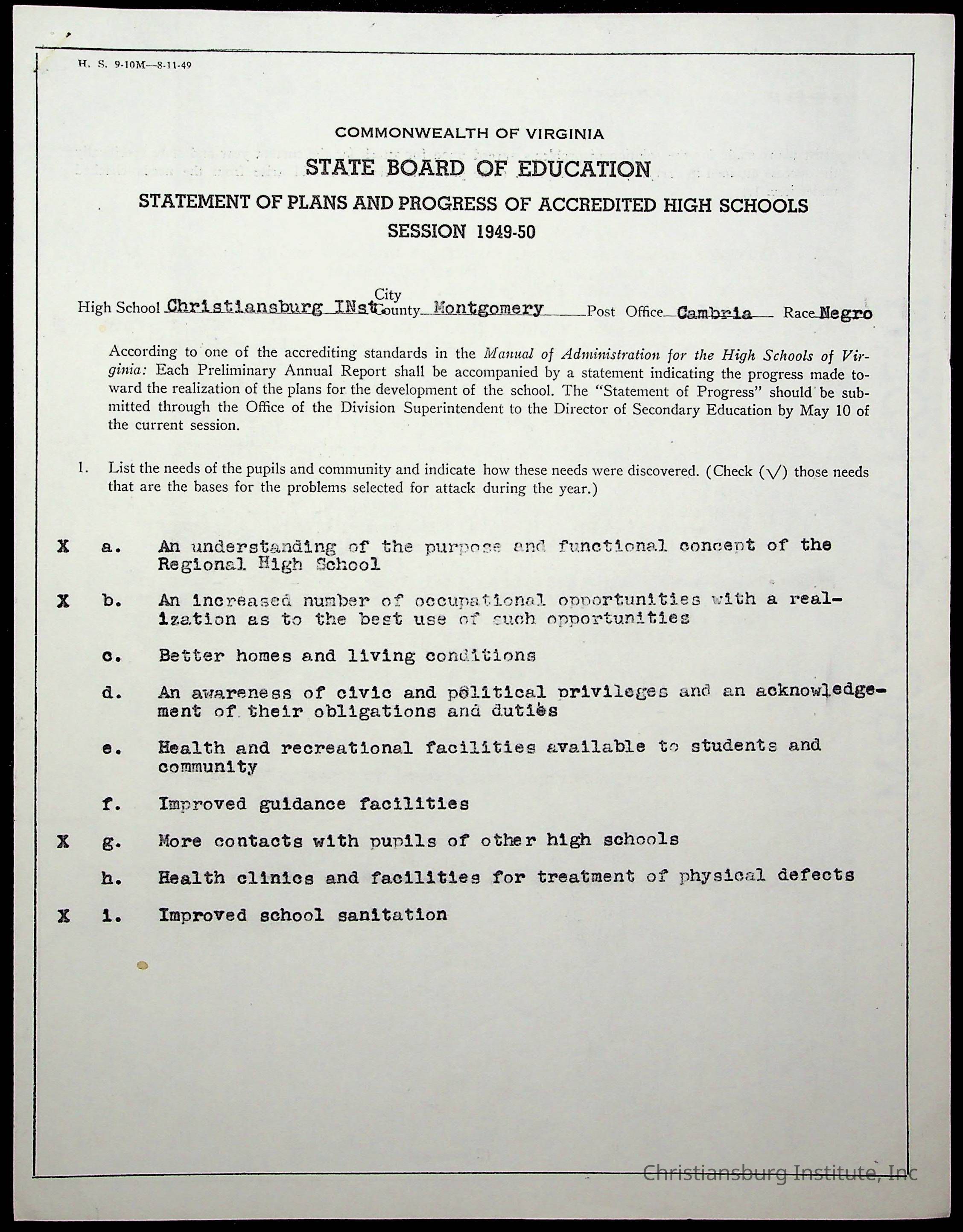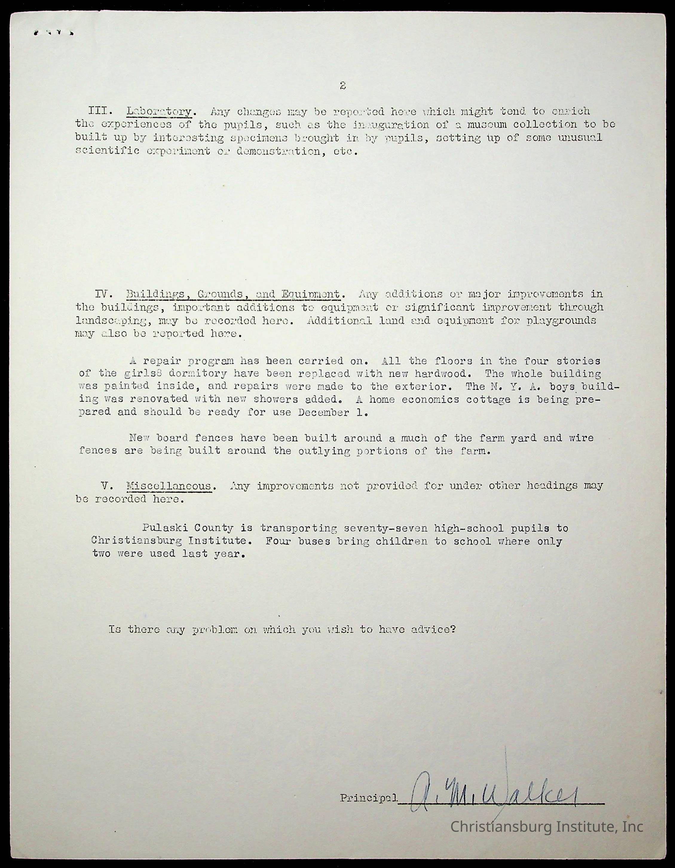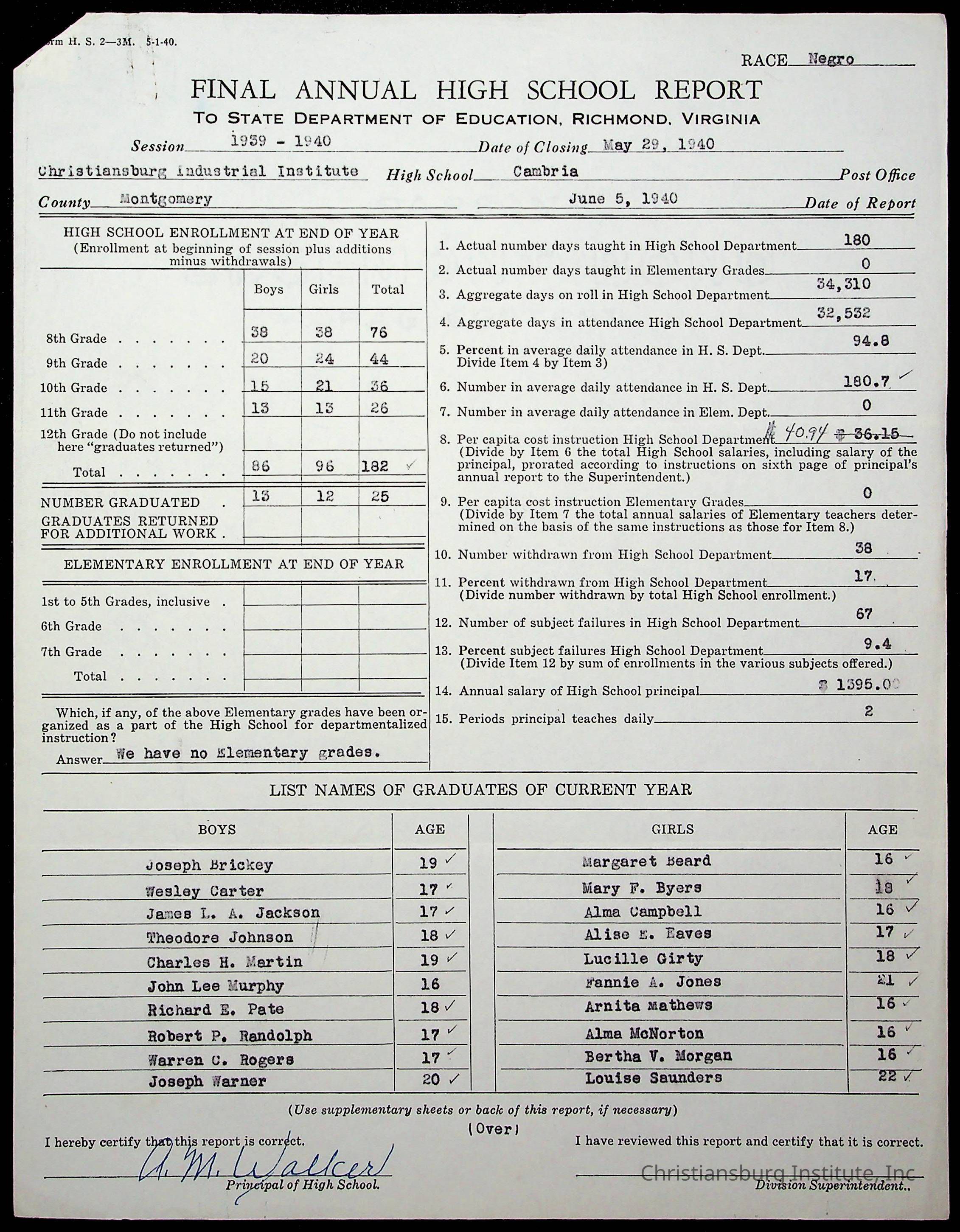 Copyright has been assigned to Christiansburg Institute Museum & Archives by Montgomery County Public Schools. For permission to publish materials created by the donor, contact CIMA@christiansburginstitute.com. Materials not created by Christiansburg Industrial Institute may still be under copyright.