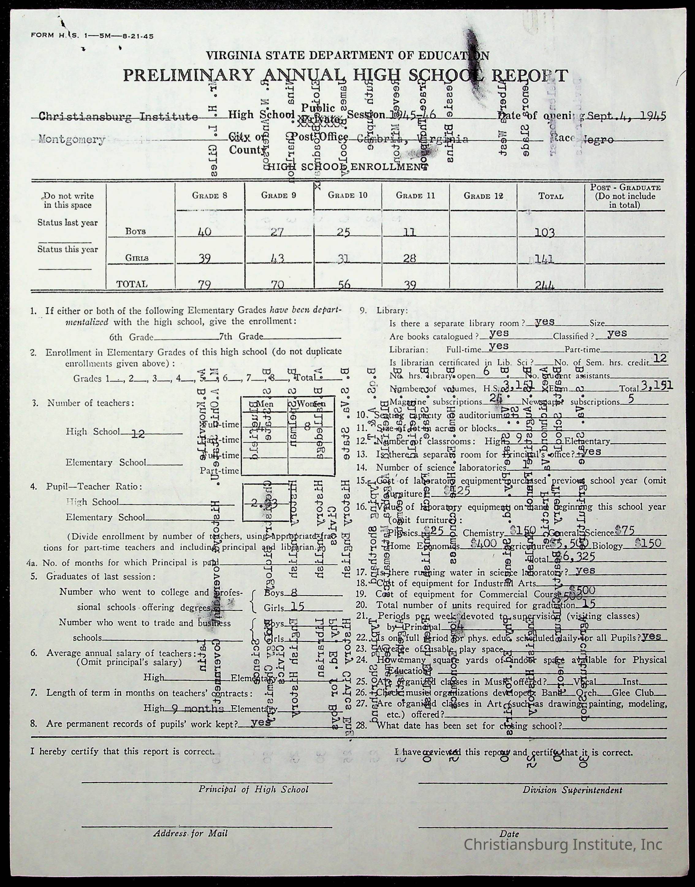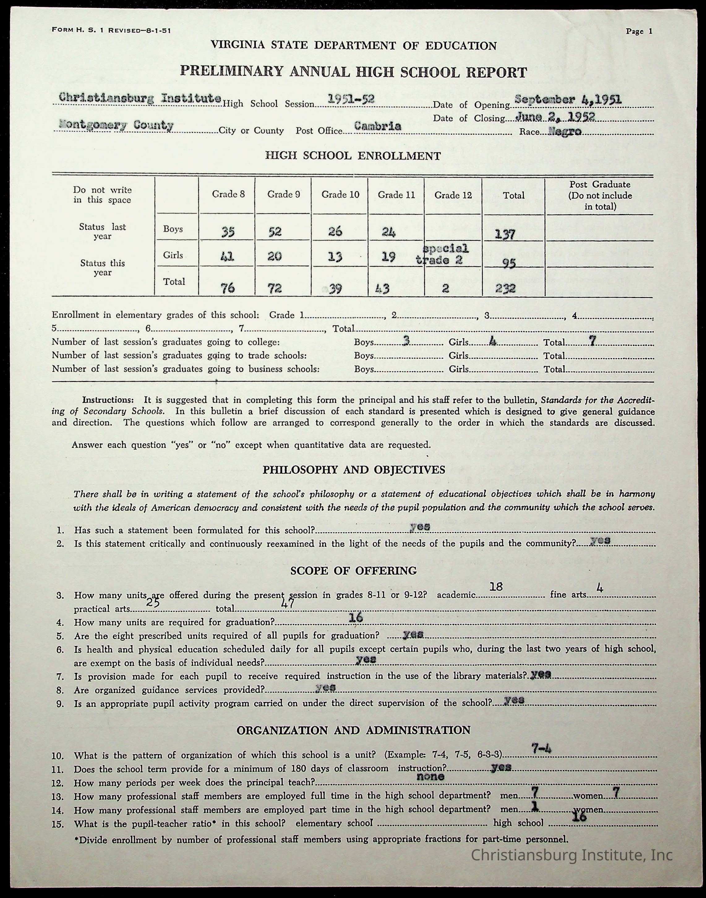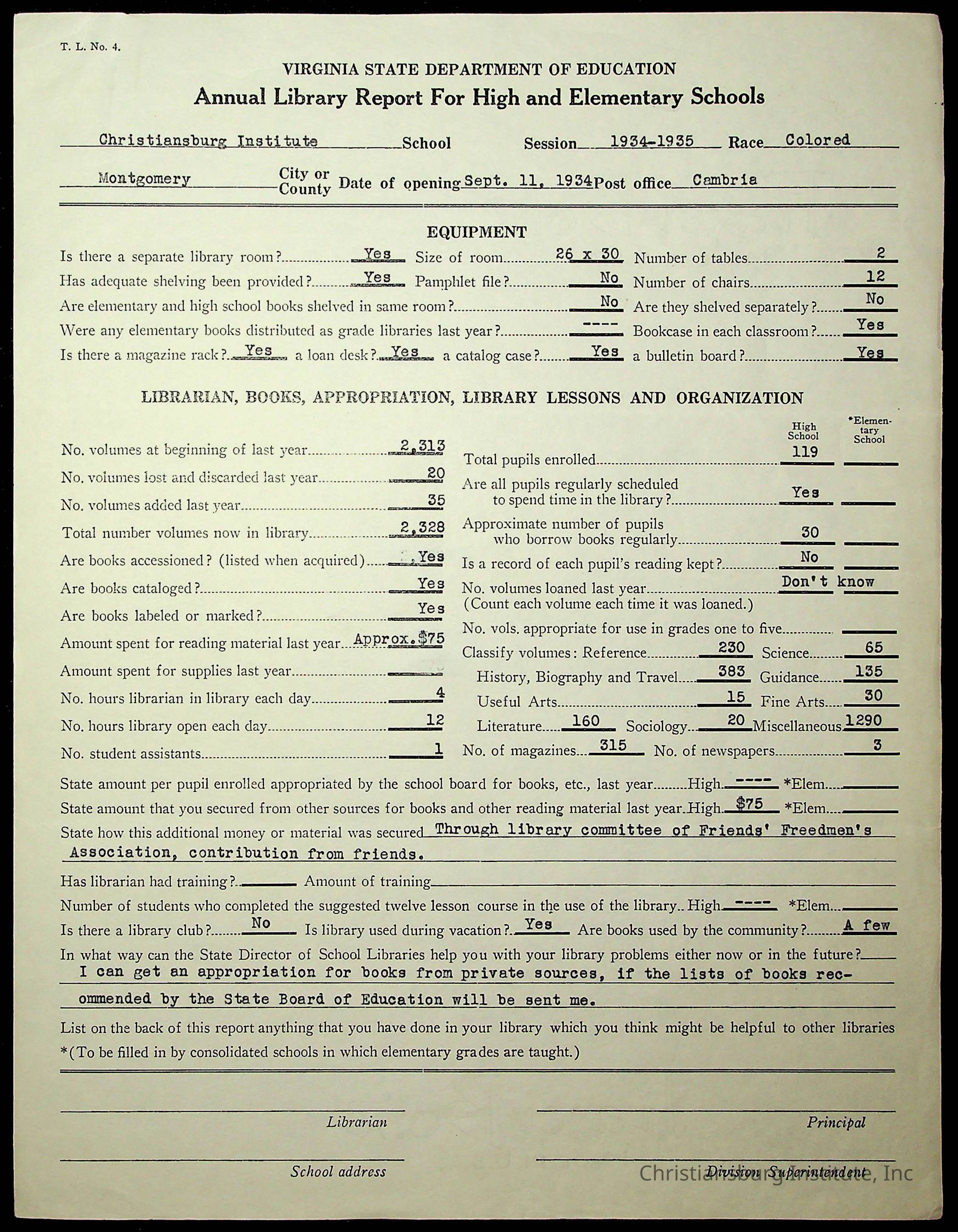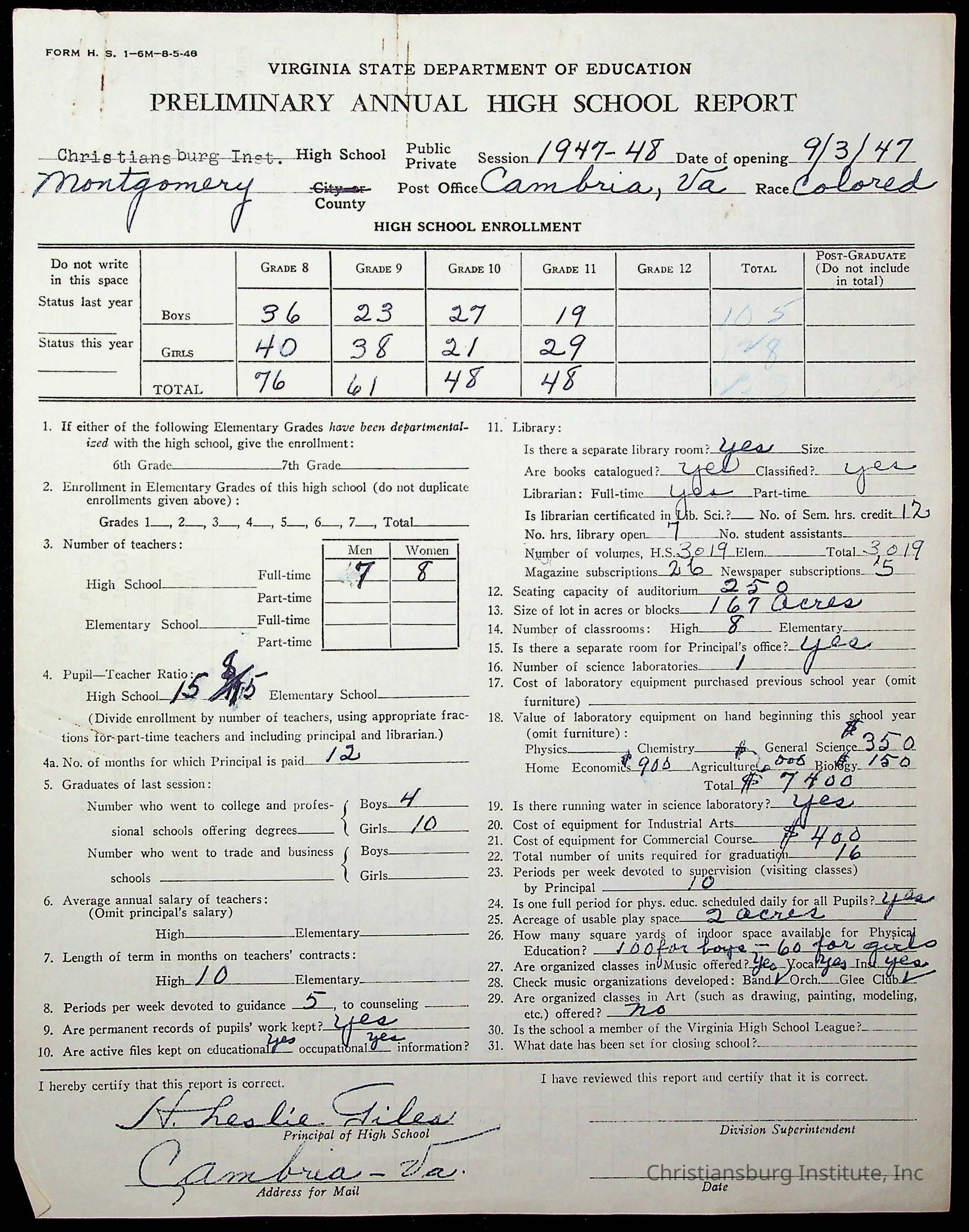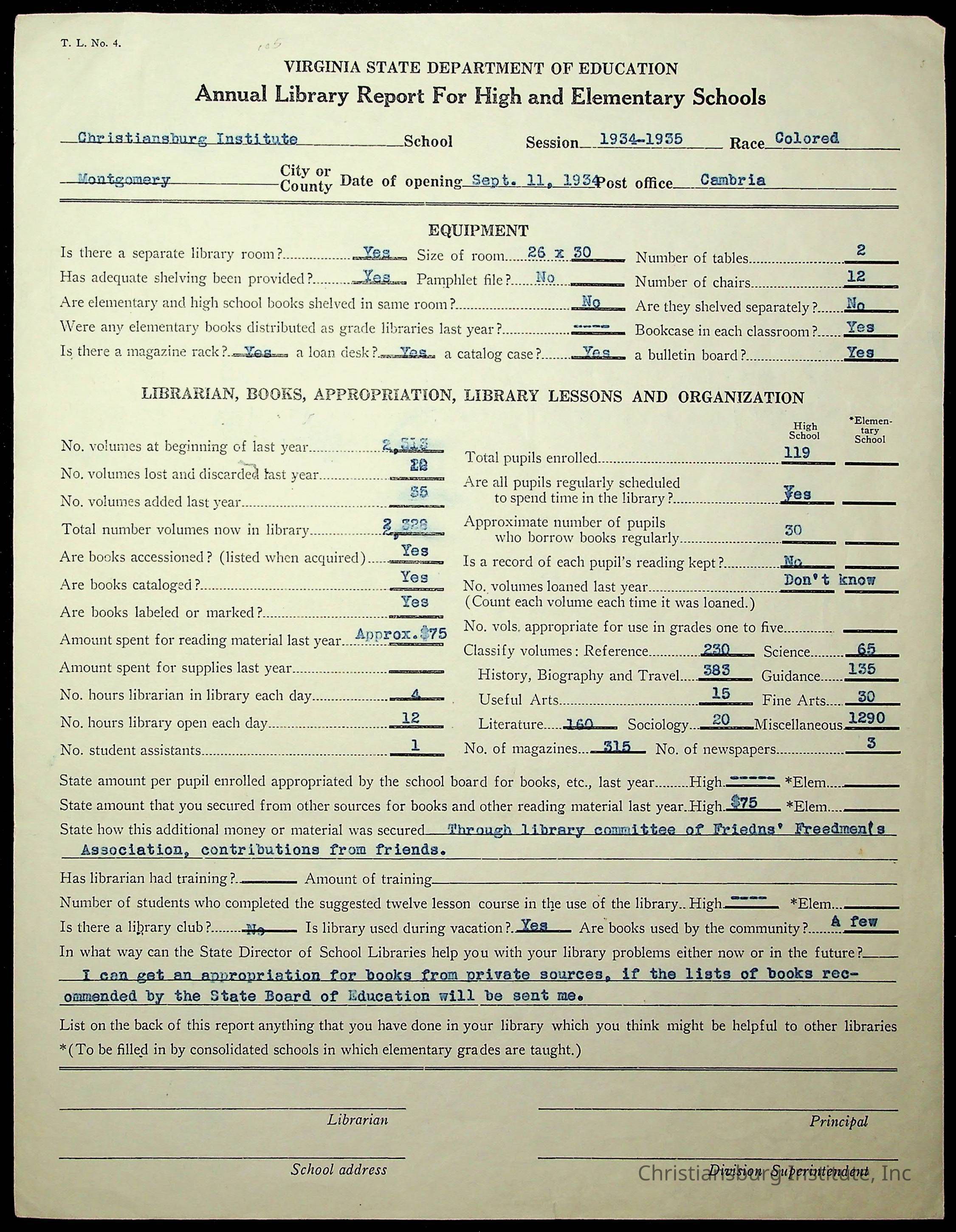 Copyright has been assigned to Christiansburg Institute Museum & Archives by Montgomery County Public Schools. For permission to publish materials created by the donor, contact CIMA@christiansburginstitute.com. Materials not created by Christiansburg Industrial Institute may still be under copyright.