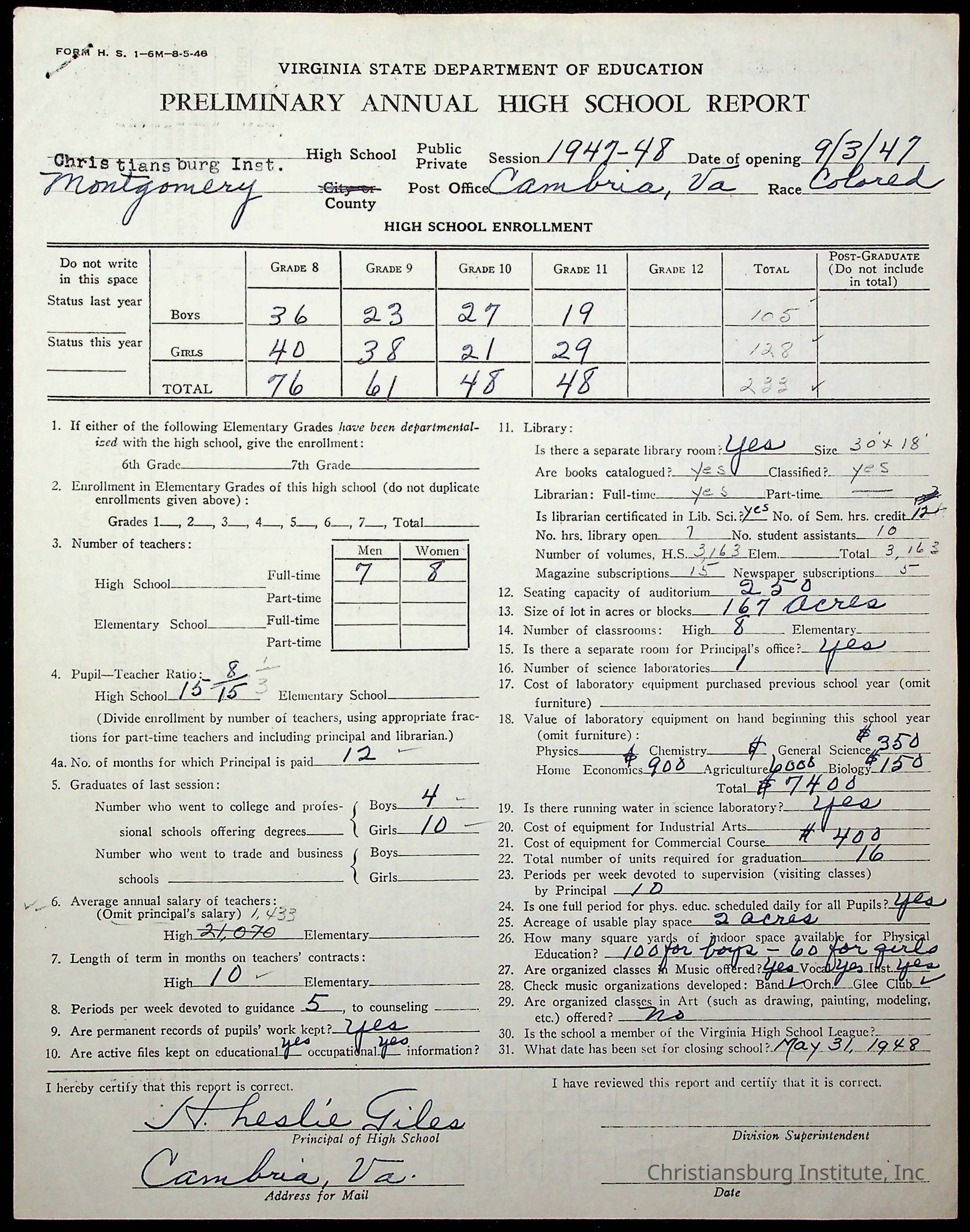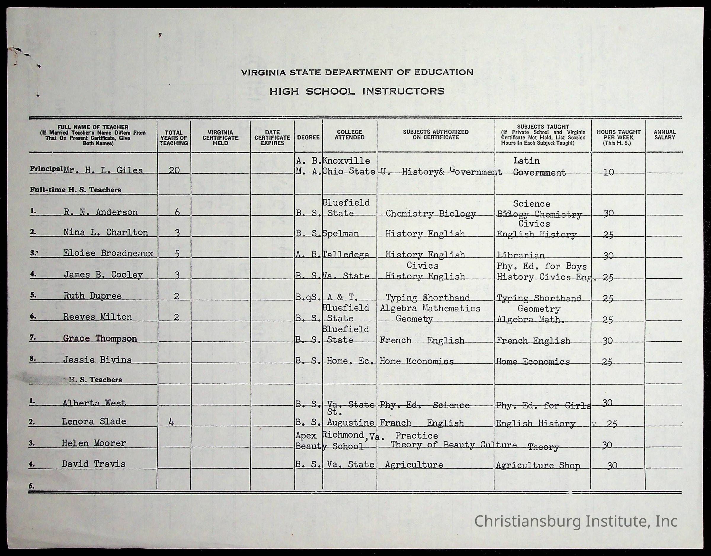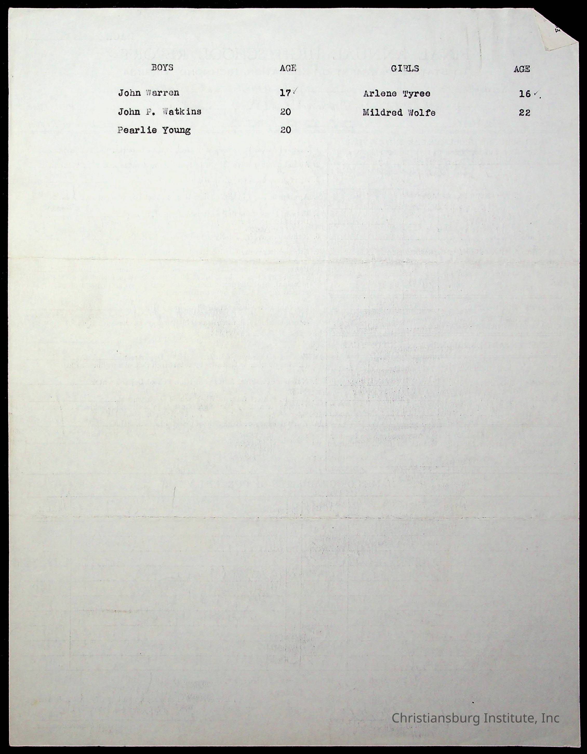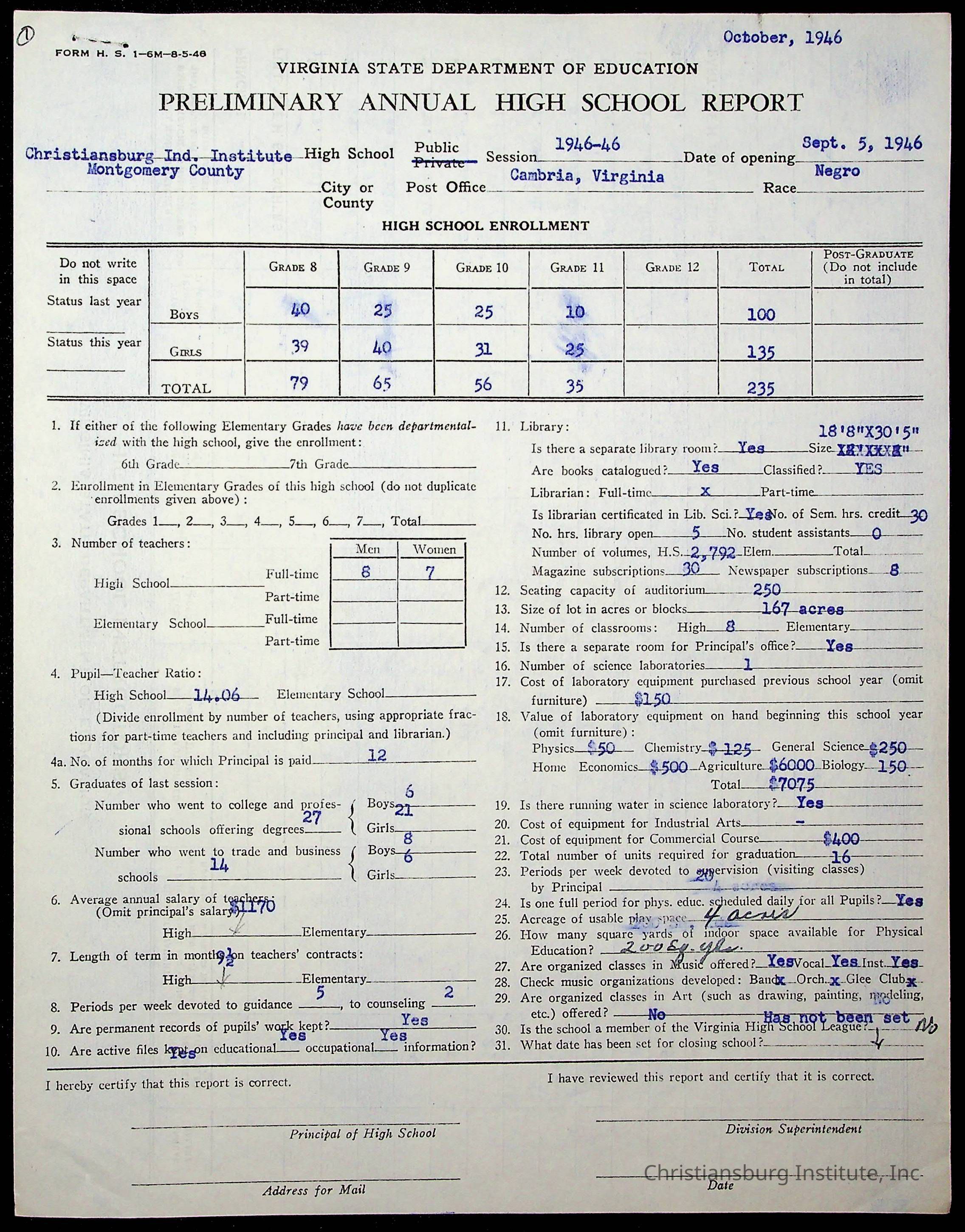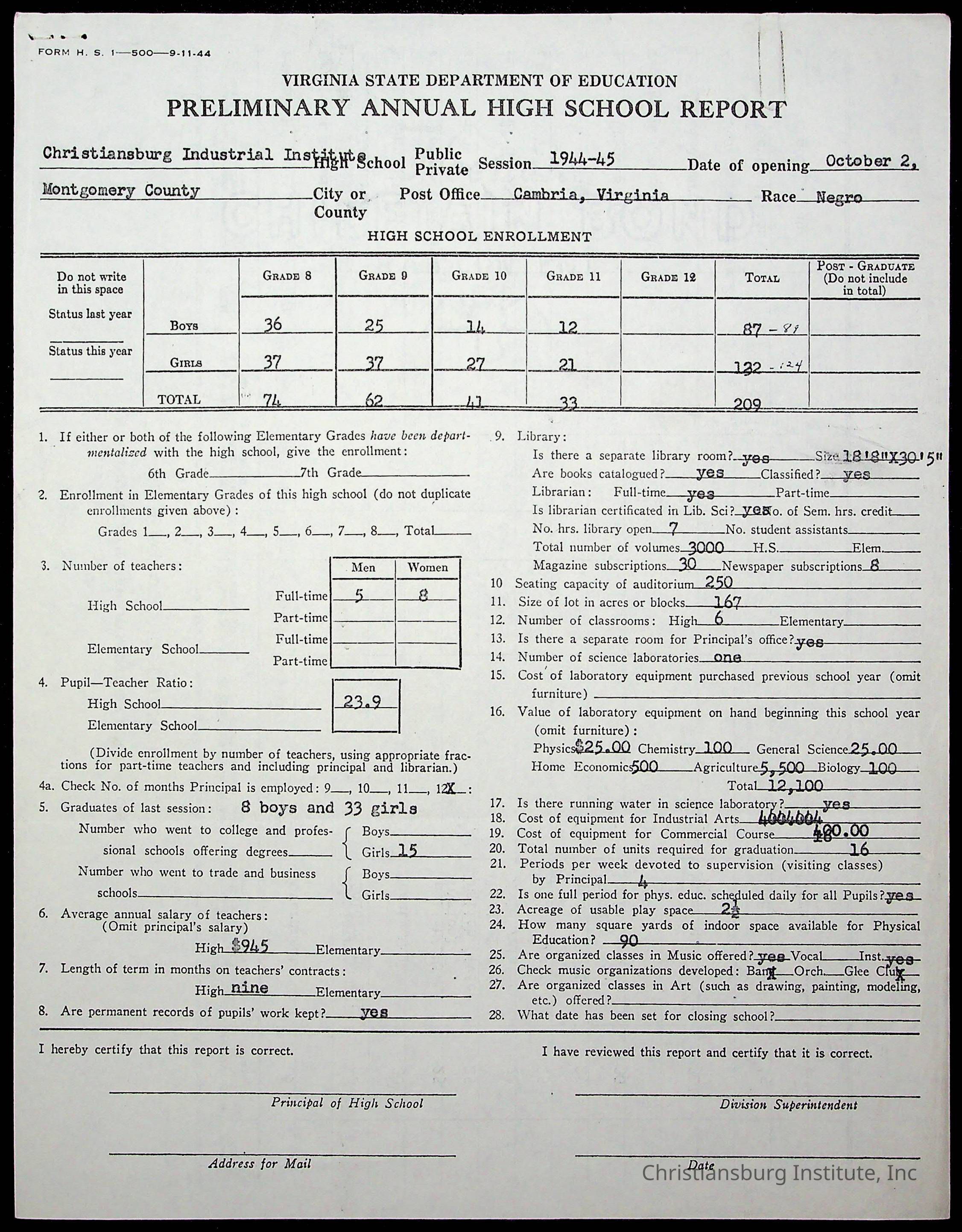 Copyright has been assigned to Christiansburg Institute Museum & Archives by Montgomery County Public Schools. For permission to publish materials created by the donor, contact CIMA@christiansburginstitute.com. Materials not created by Christiansburg Industrial Institute may still be under copyright.