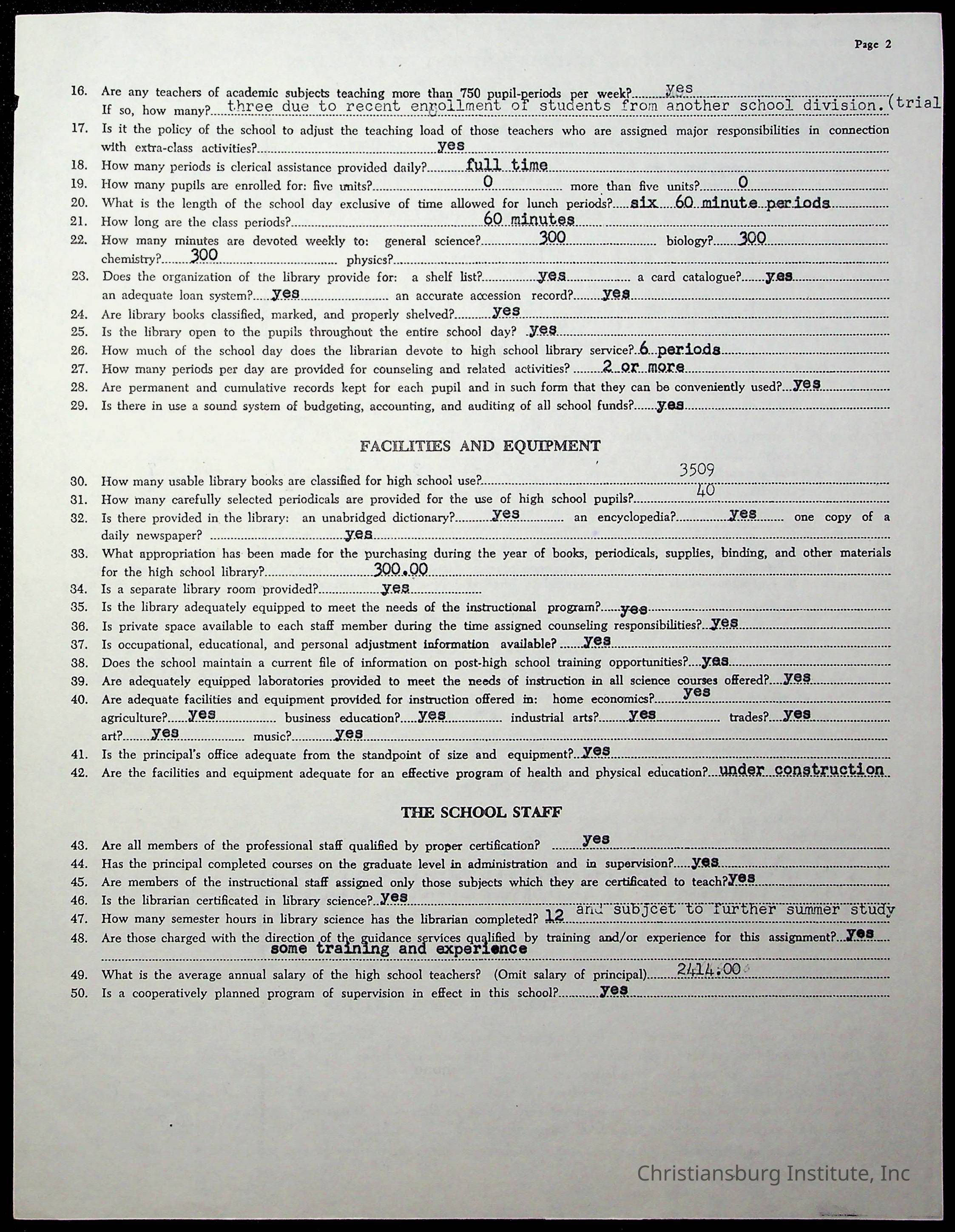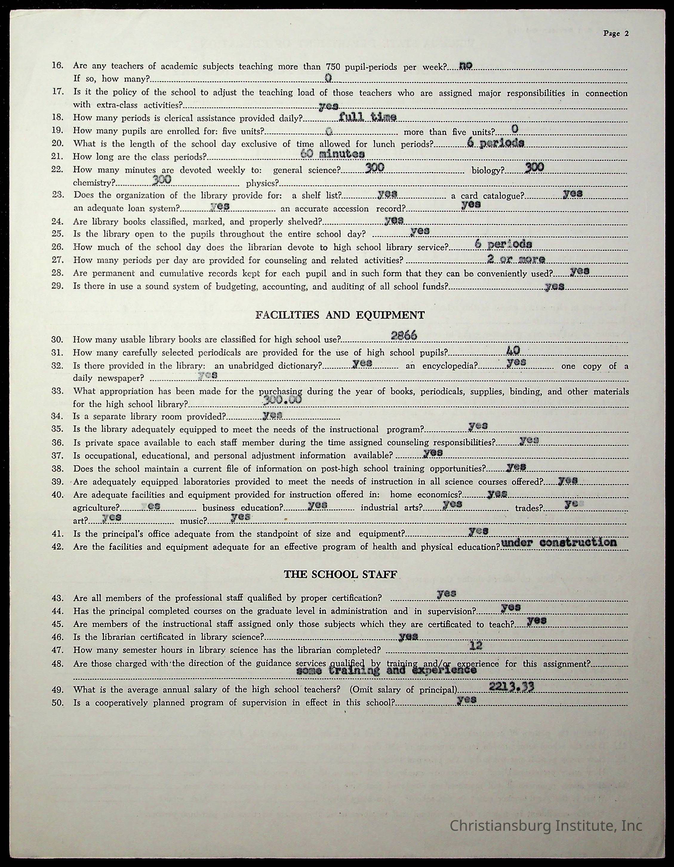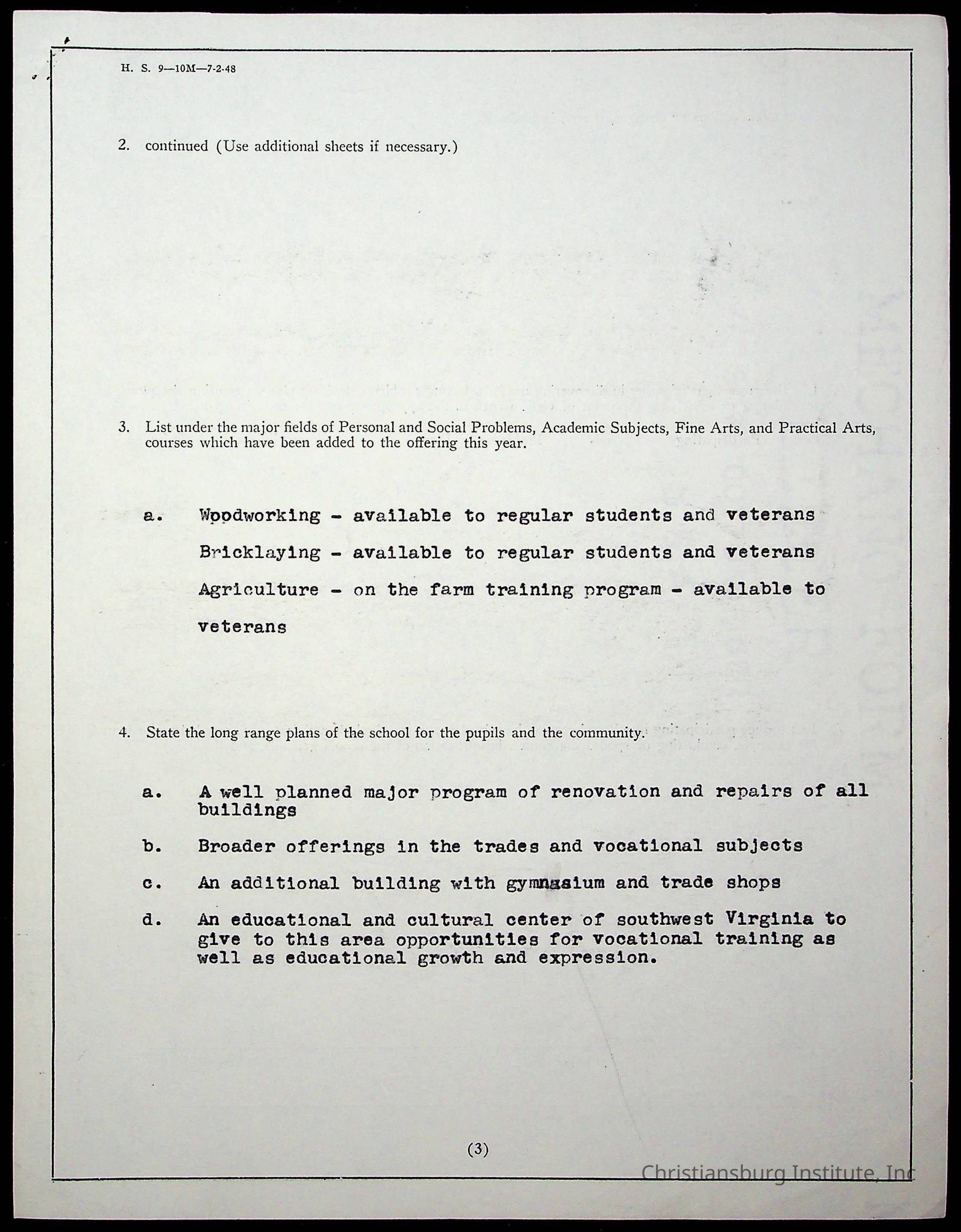 The second folder of an archive of preliminary reports to the Commonwealth of Virginia Department of Education for Christiansburg Institute from 1925 through 1952.