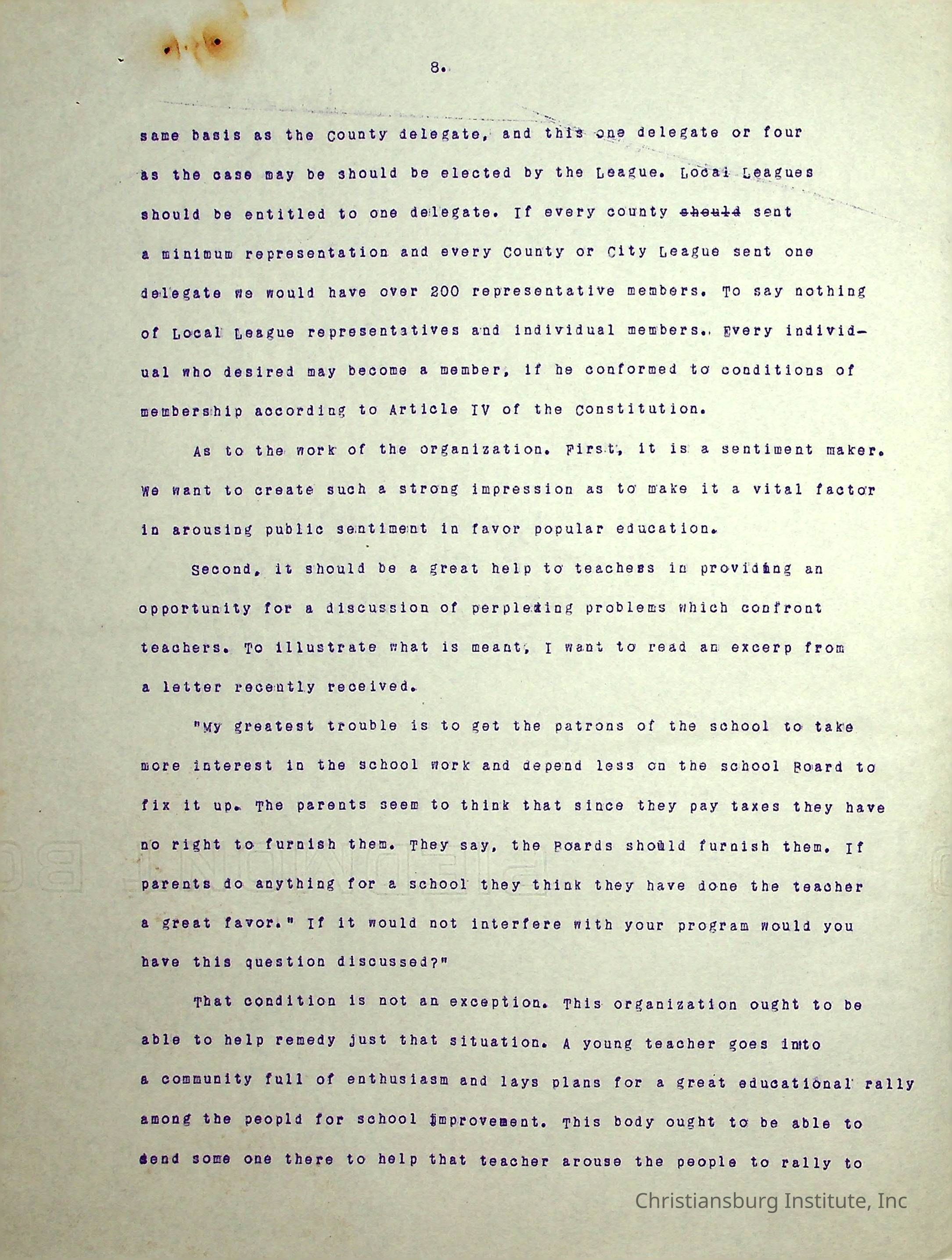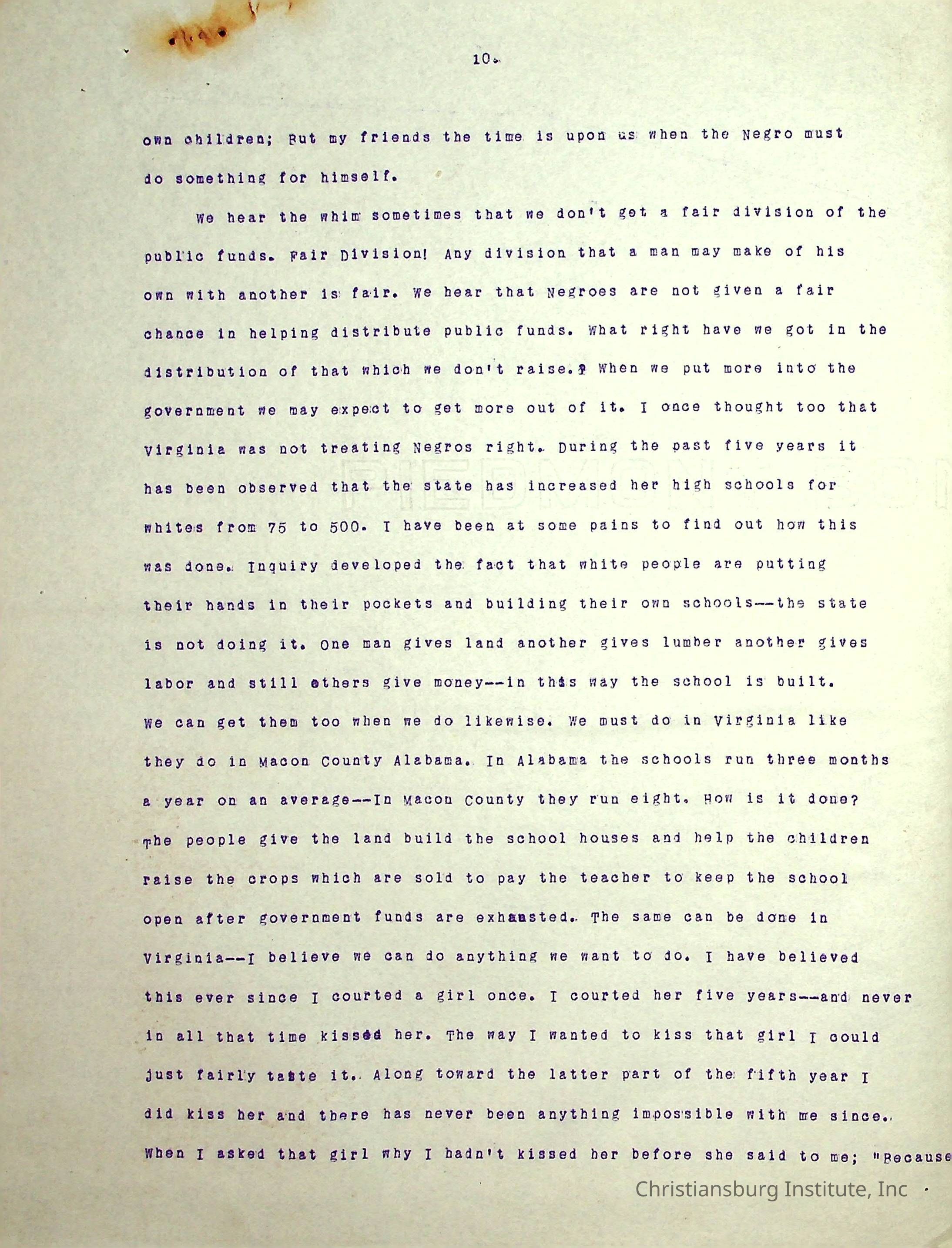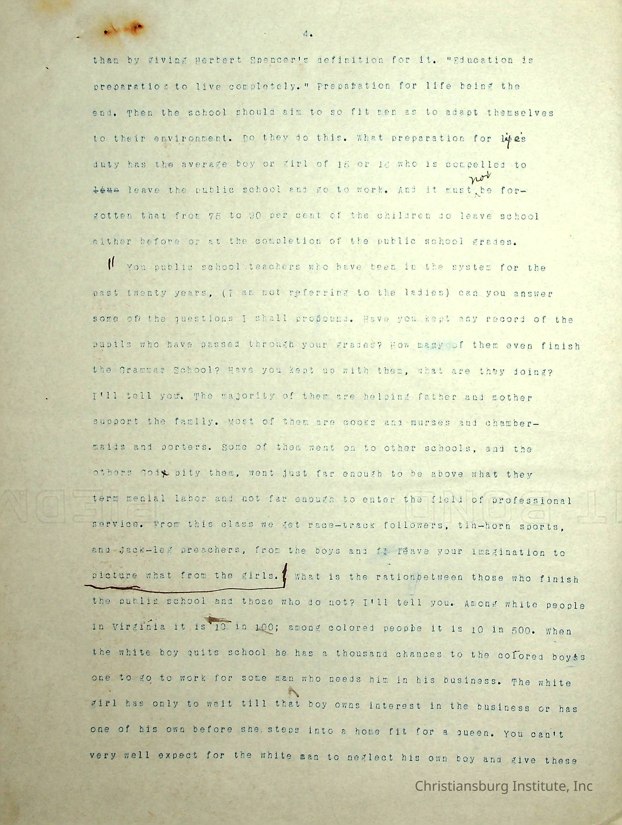 A typed speech written by Edgar A. Long titled 'President's Annual Report/ Negro Teachers' spoken at the State Teachers Association in 1912. Gifted by Carlton Banks in 2001.Creator