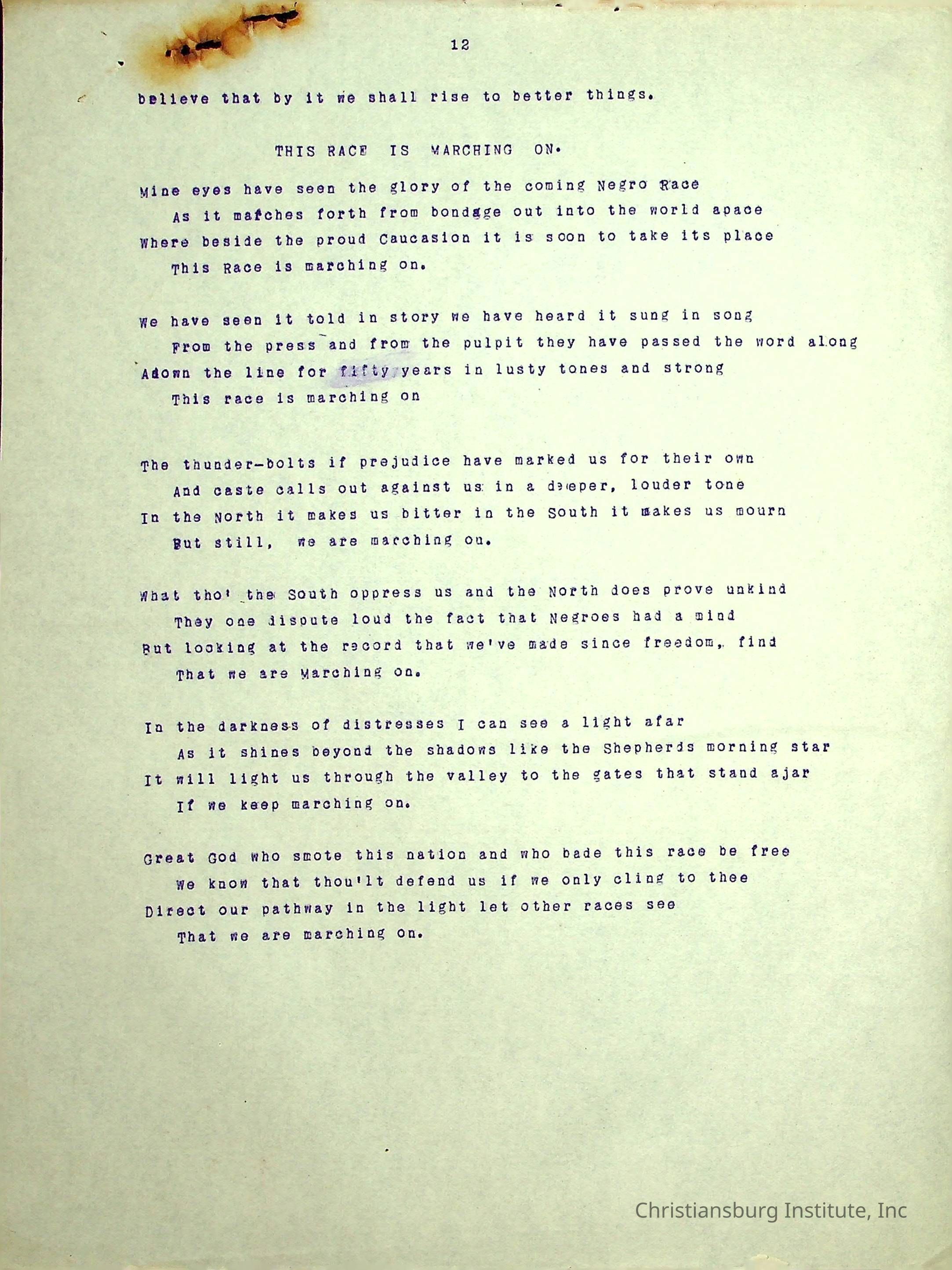 "President's Annual Report/ Negro Teachers'", 1912Scope and Content