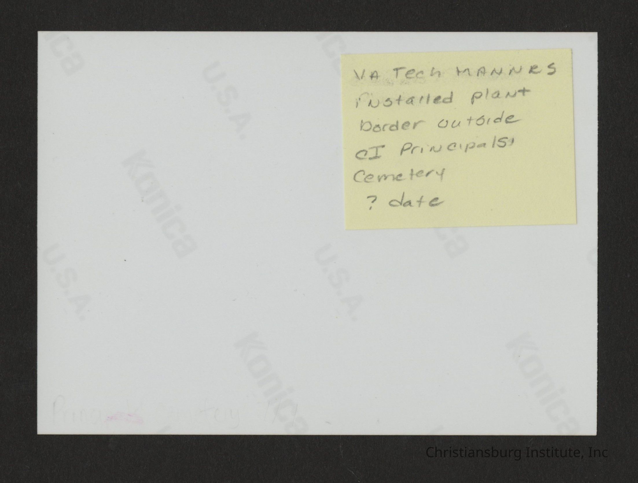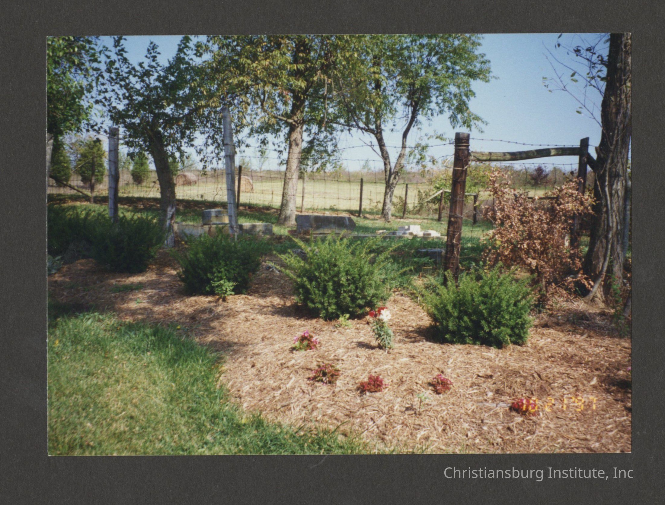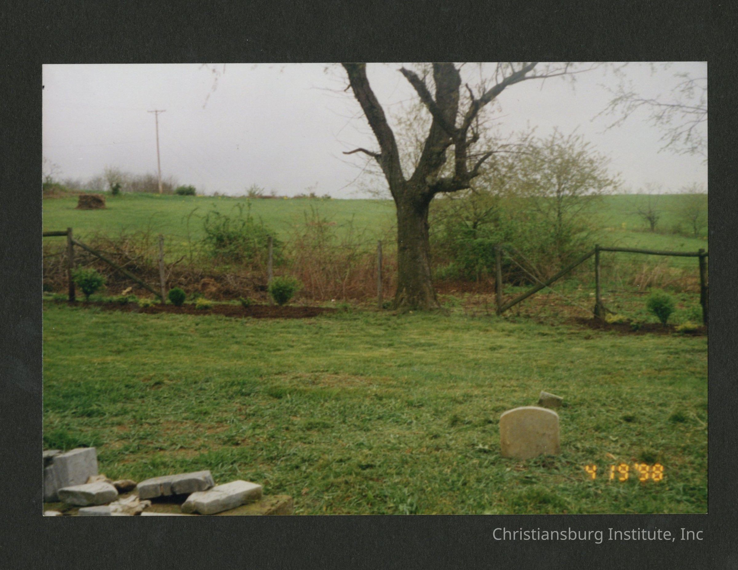A series of photographs of the Christiansburg Institute principal cemetery formally on the Christiansburg Institute campus dated 1997.