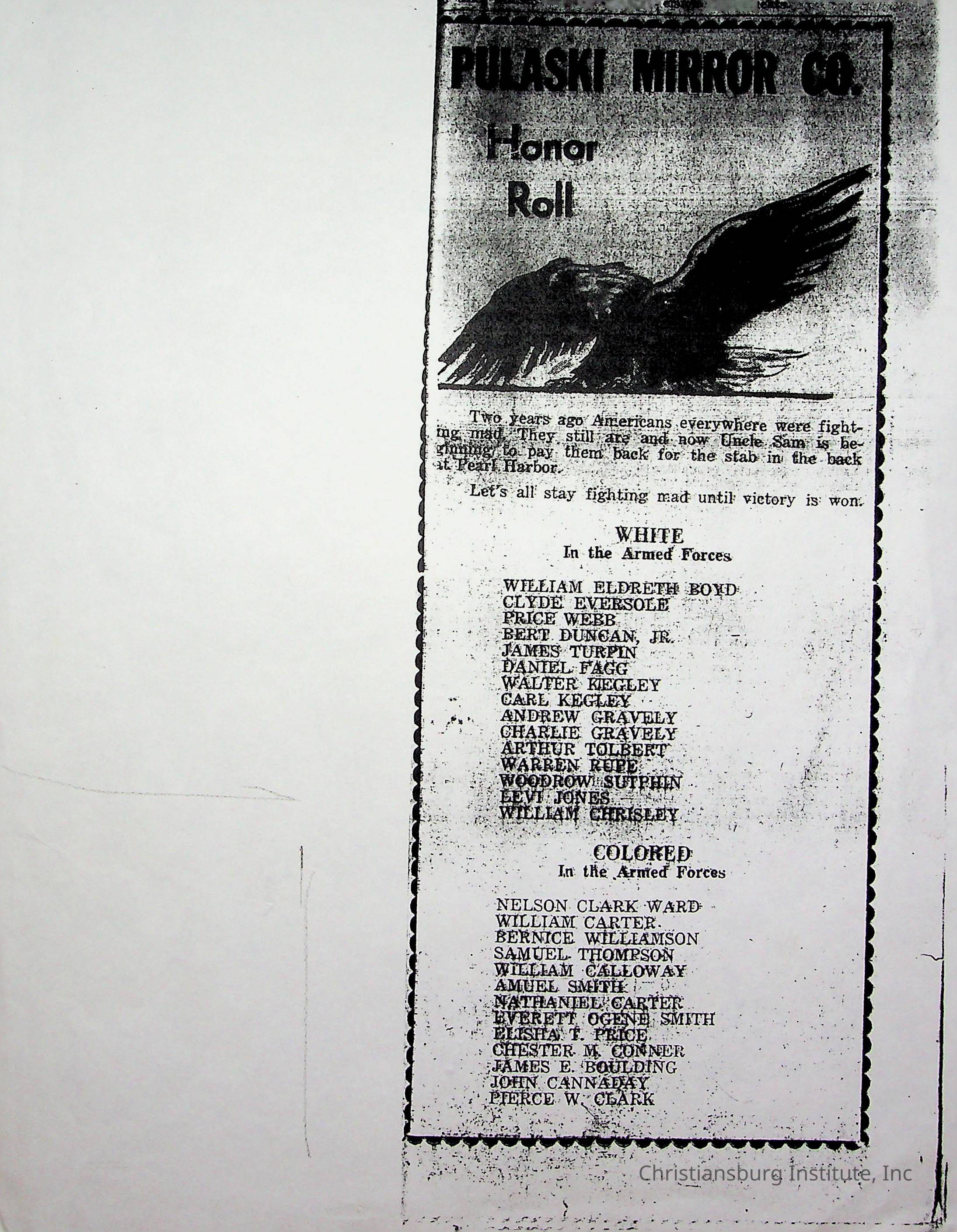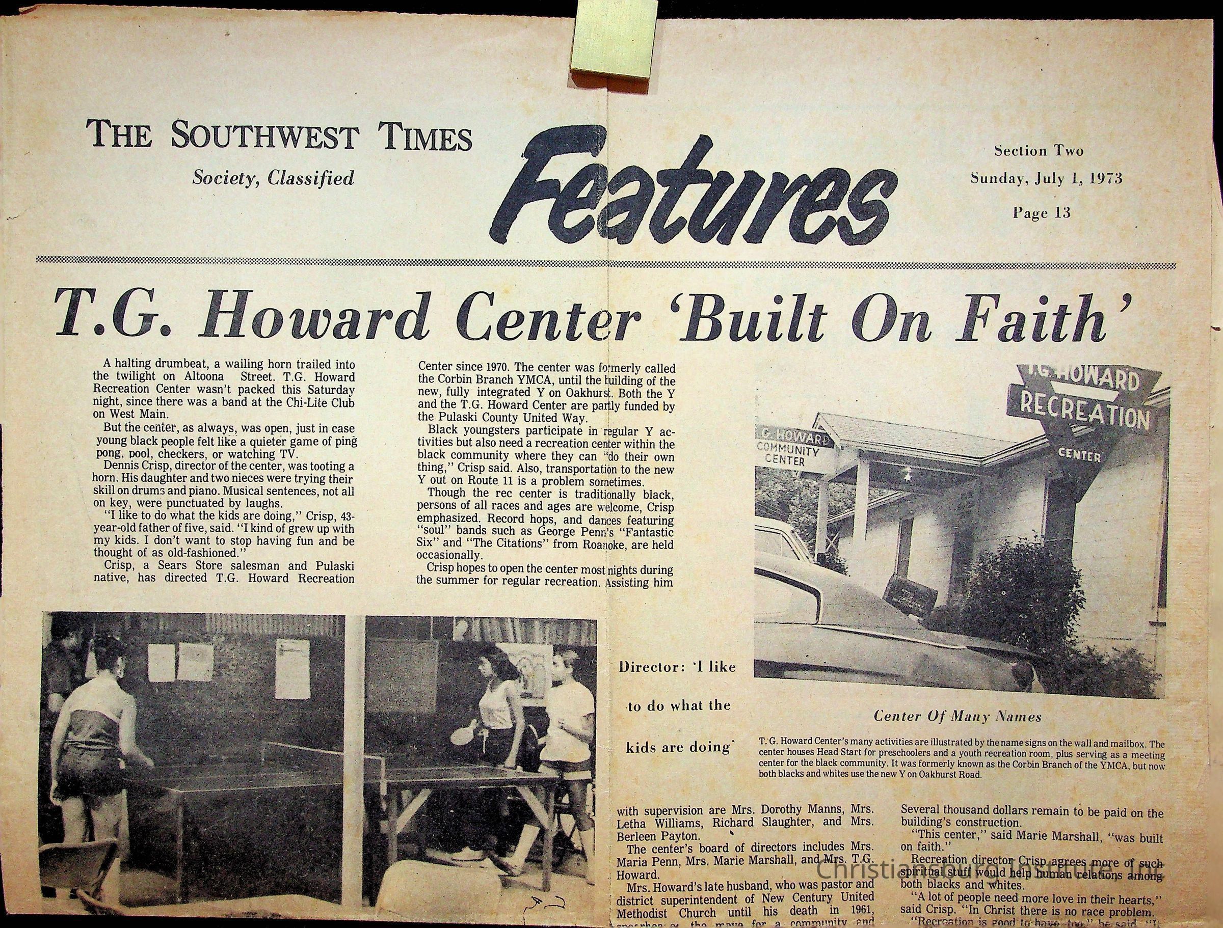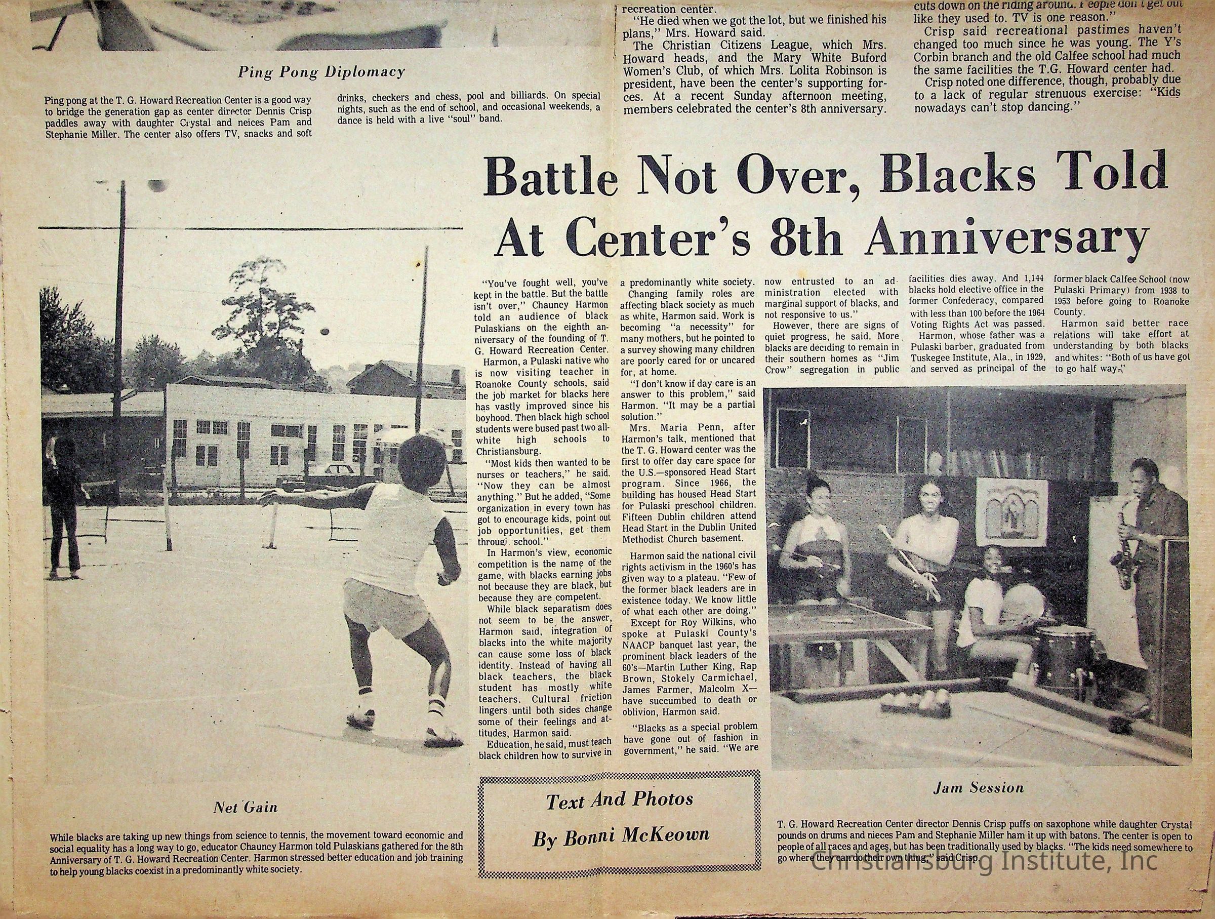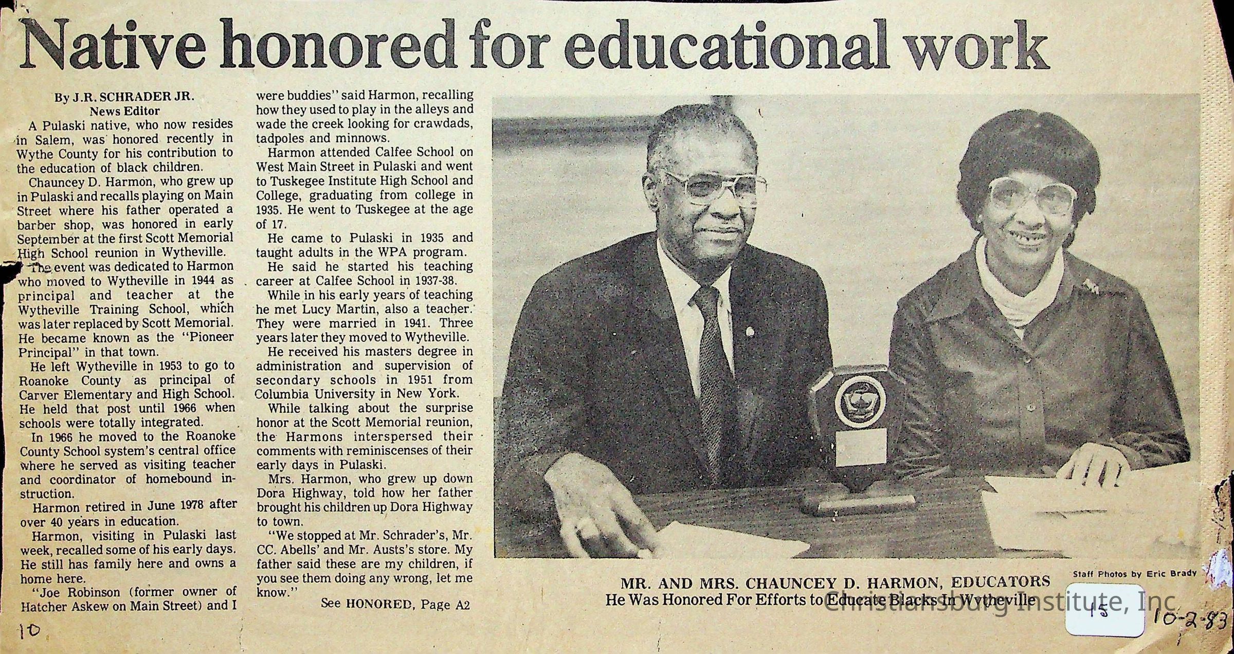 An archive of newspaper articles from Pulaski, Virginia about notable Pulaski Black history figures, dated 1921-1990.Collection