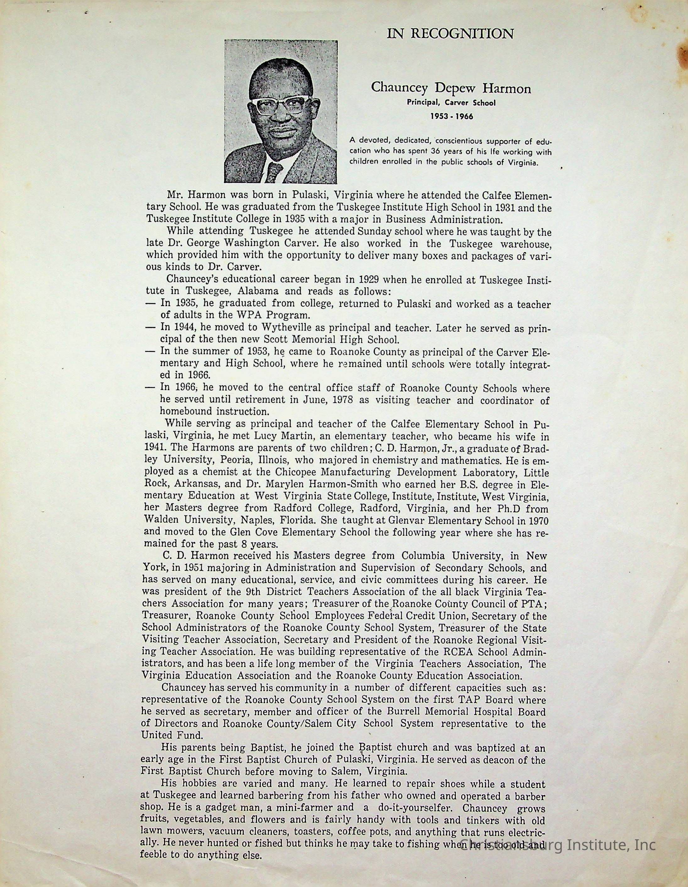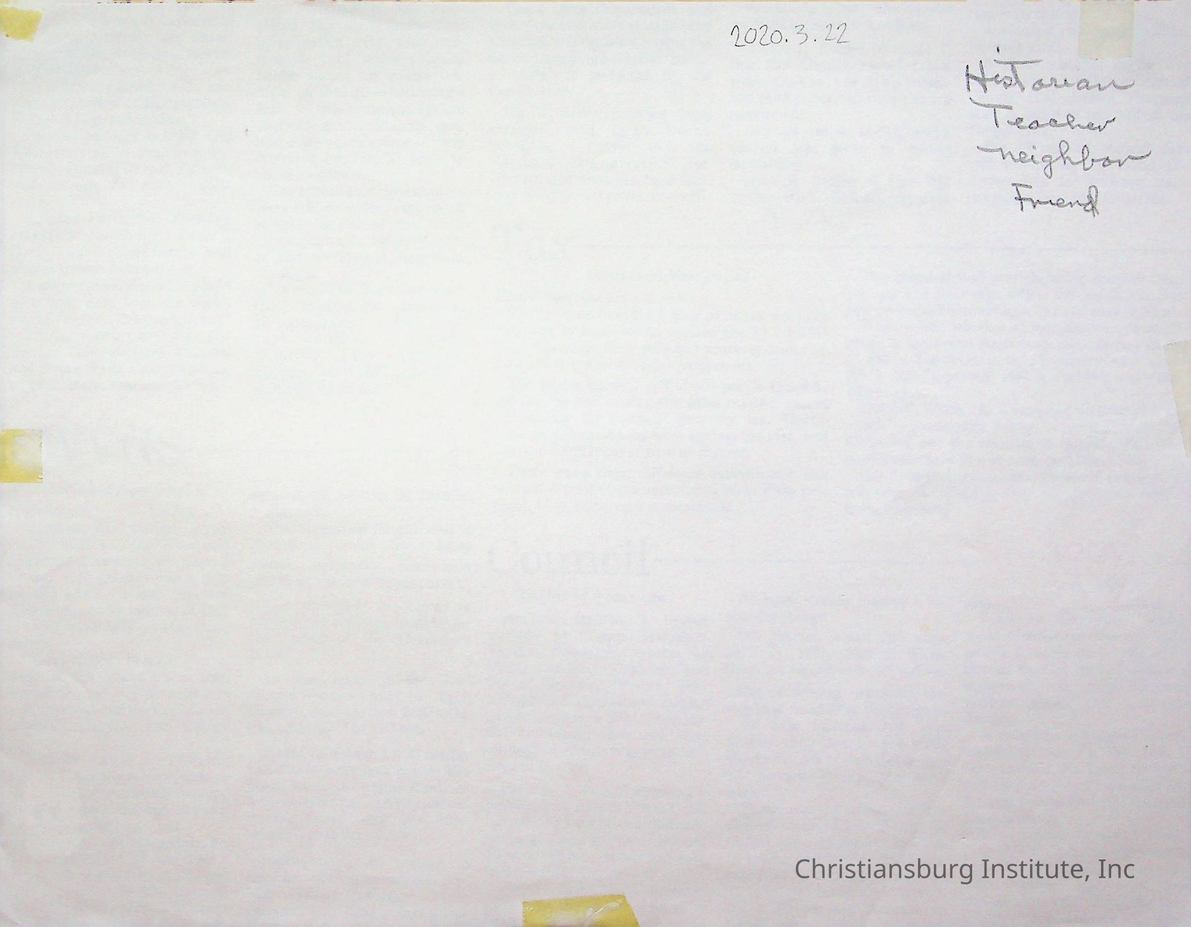Copyright has been assigned to Christiansburg Institute Museum & Archives by Amanda DeHart. For permission to publish materials created by the donor, contact CIMA@christiansburginstitute.com. Materials not created by Amanda DeHart may still be under copyright.