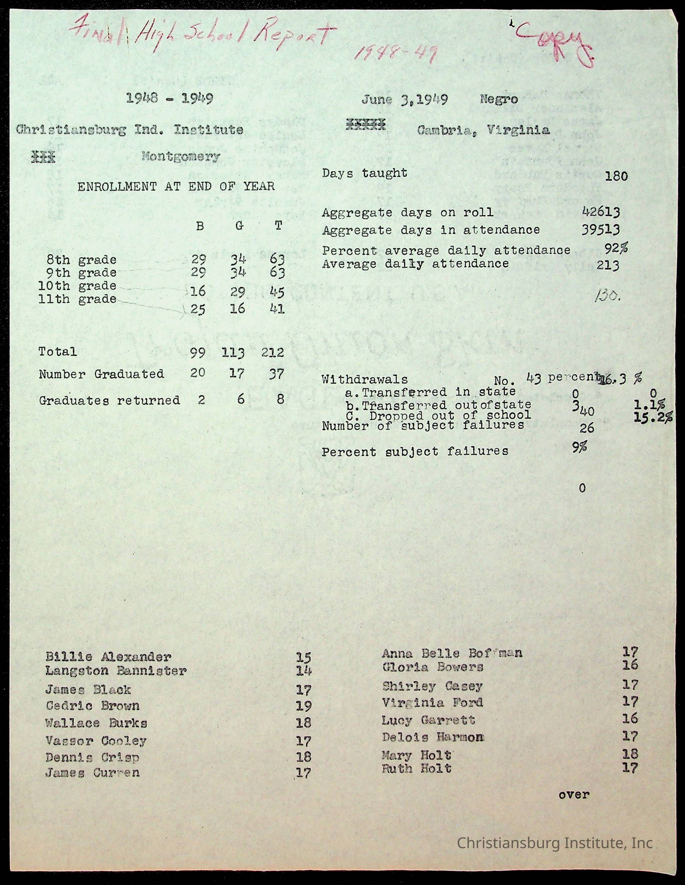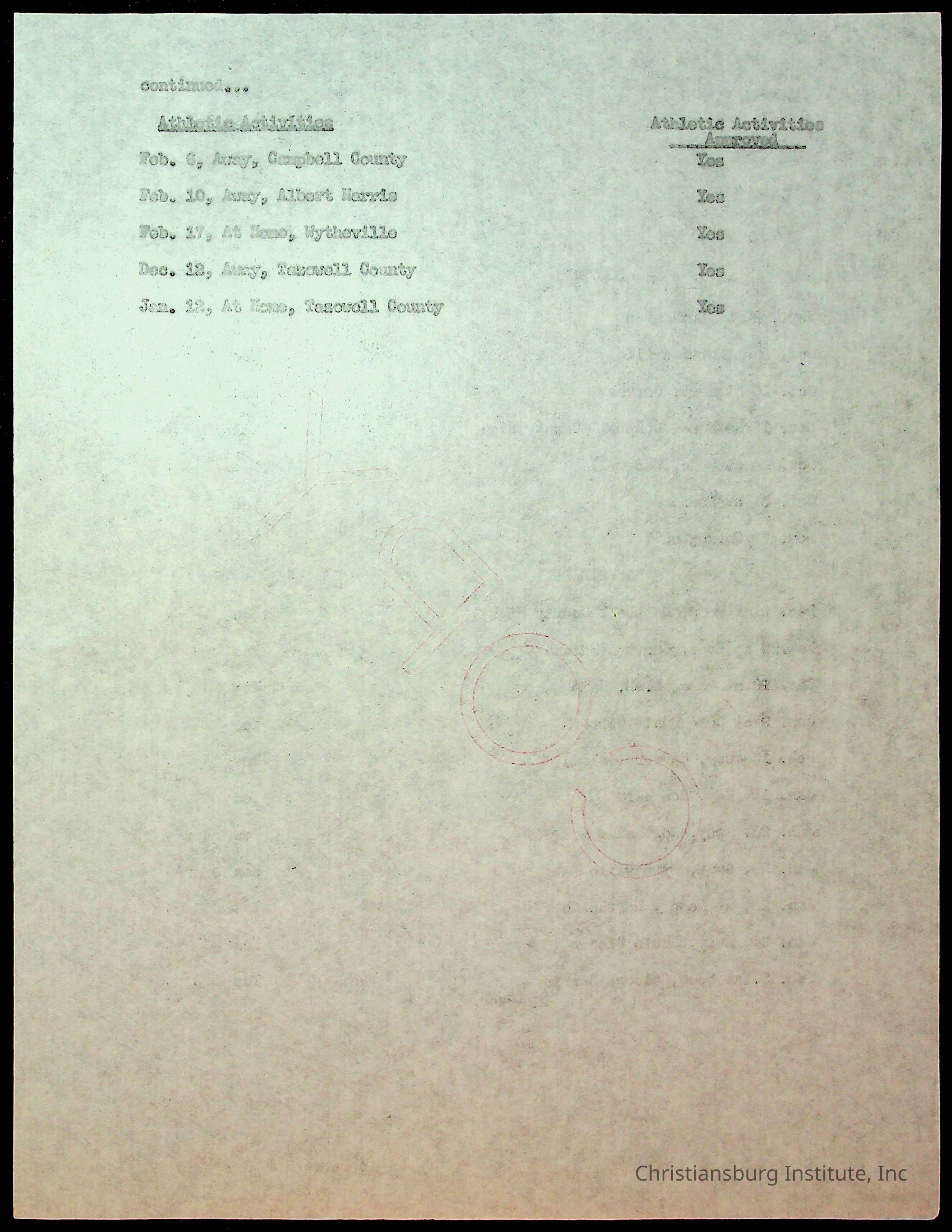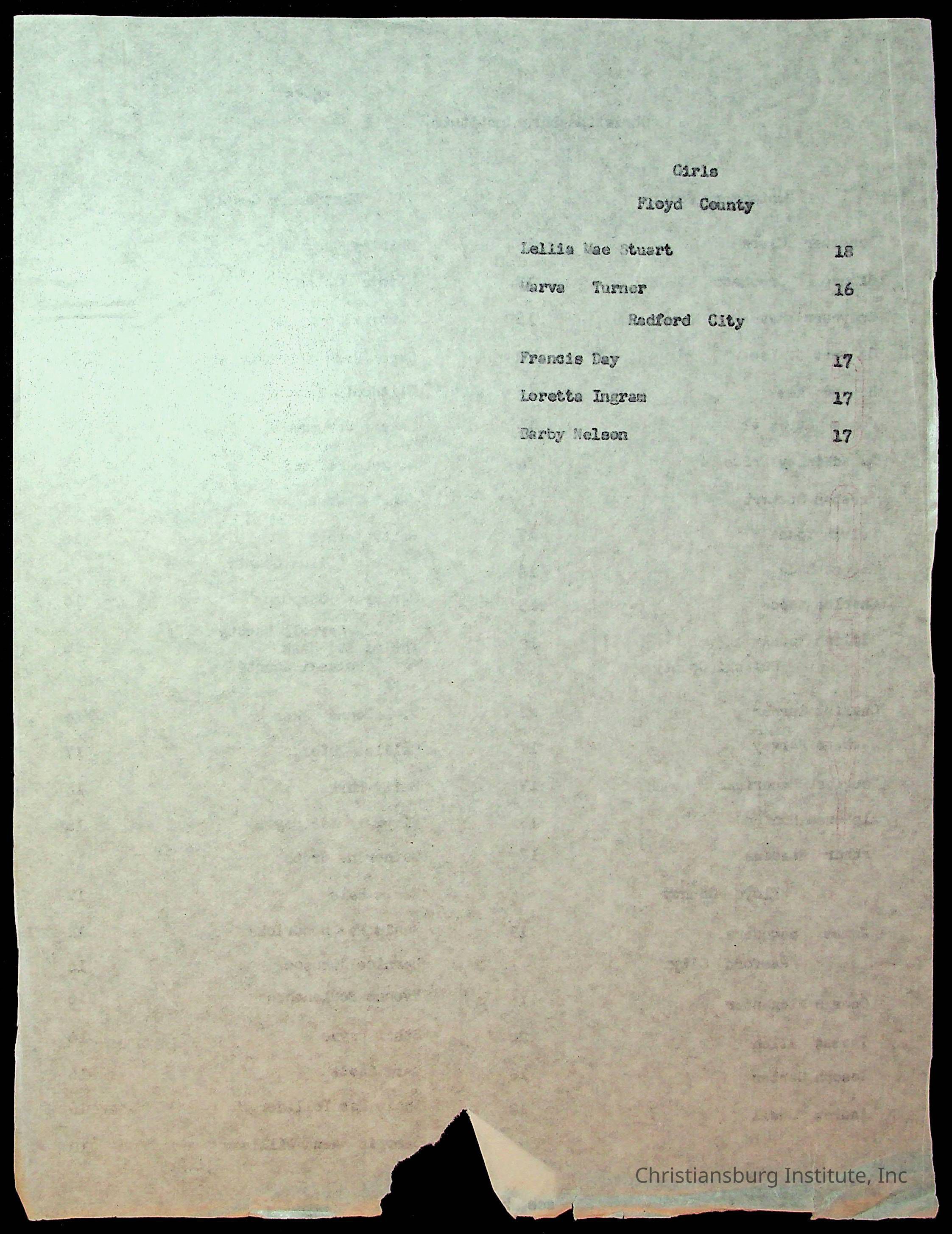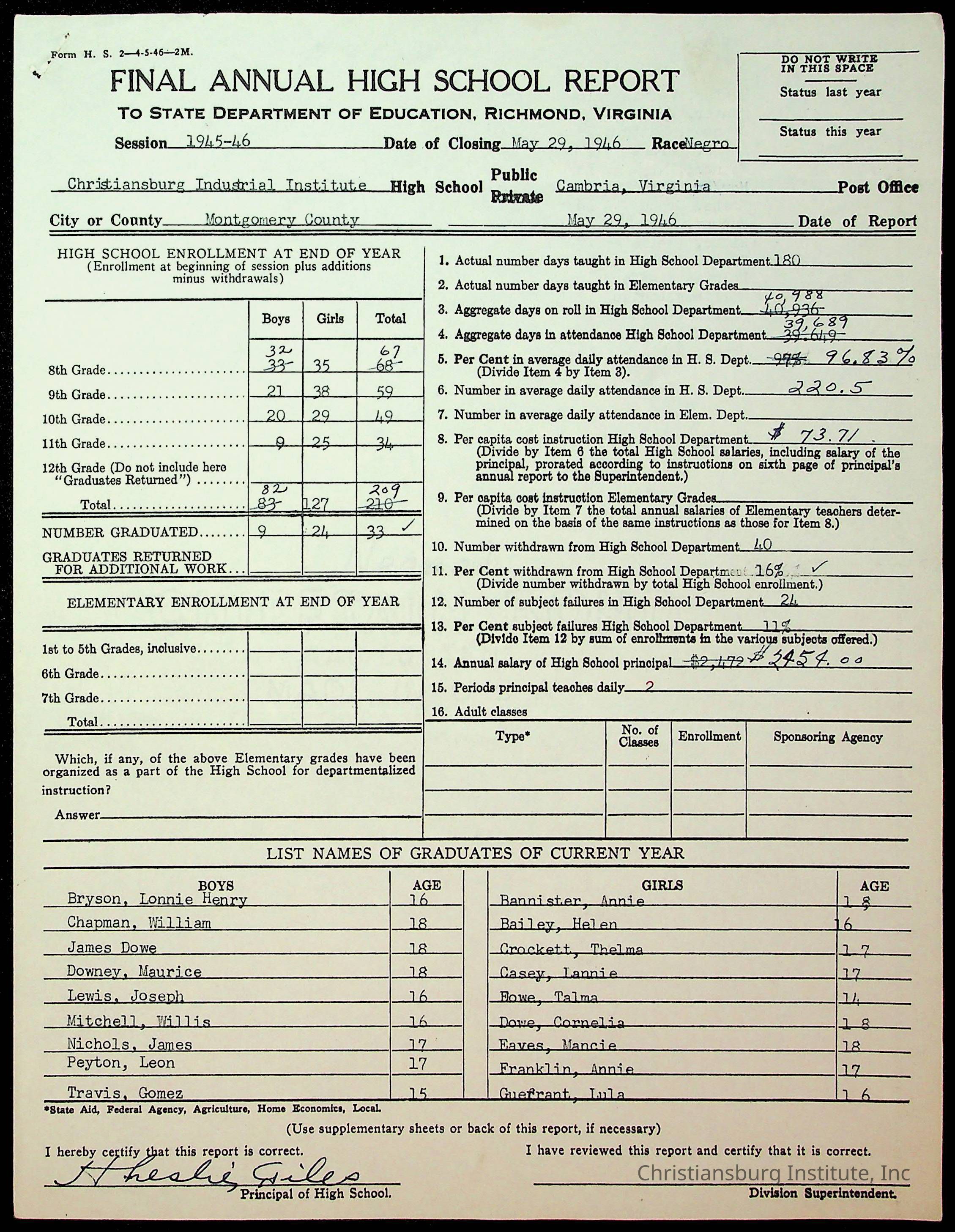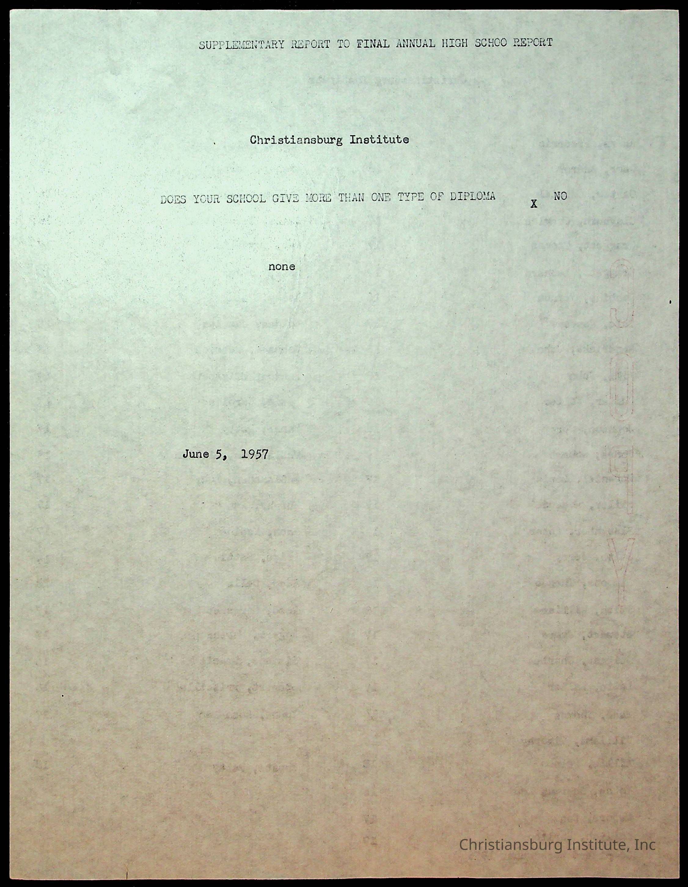 Copyright has been assigned to Christiansburg Institute Museum & Archives by Montgomery County Public Schools. For permission to publish materials created by the donor, contact CIMA@christiansburginstitute.com. Materials not created by Christiansburg Industrial Institute may still be under copyright.