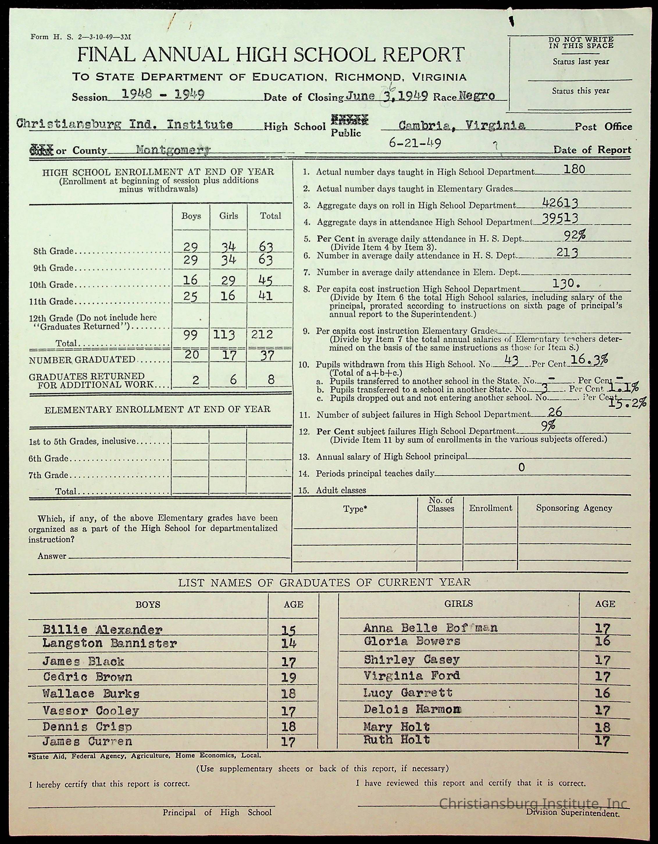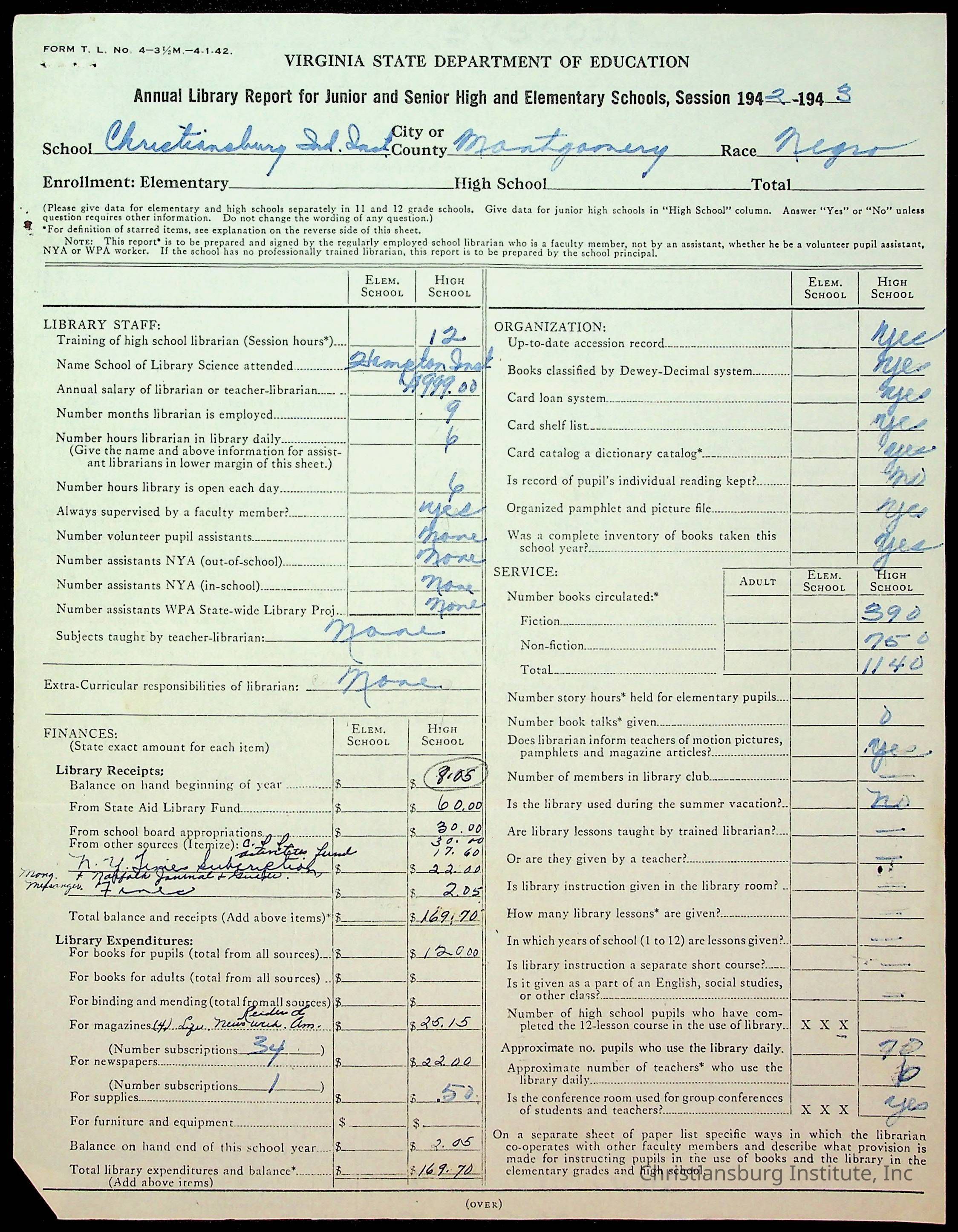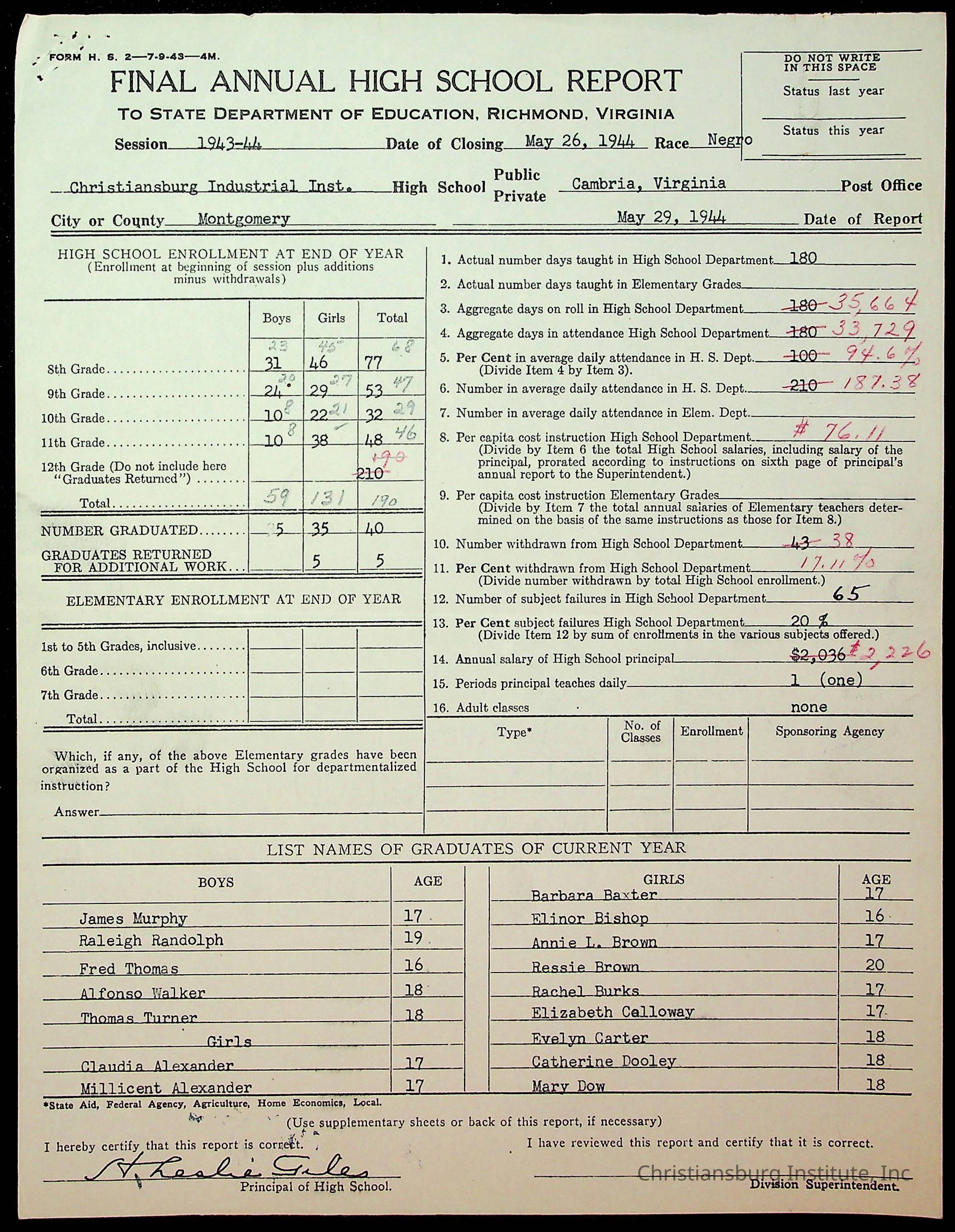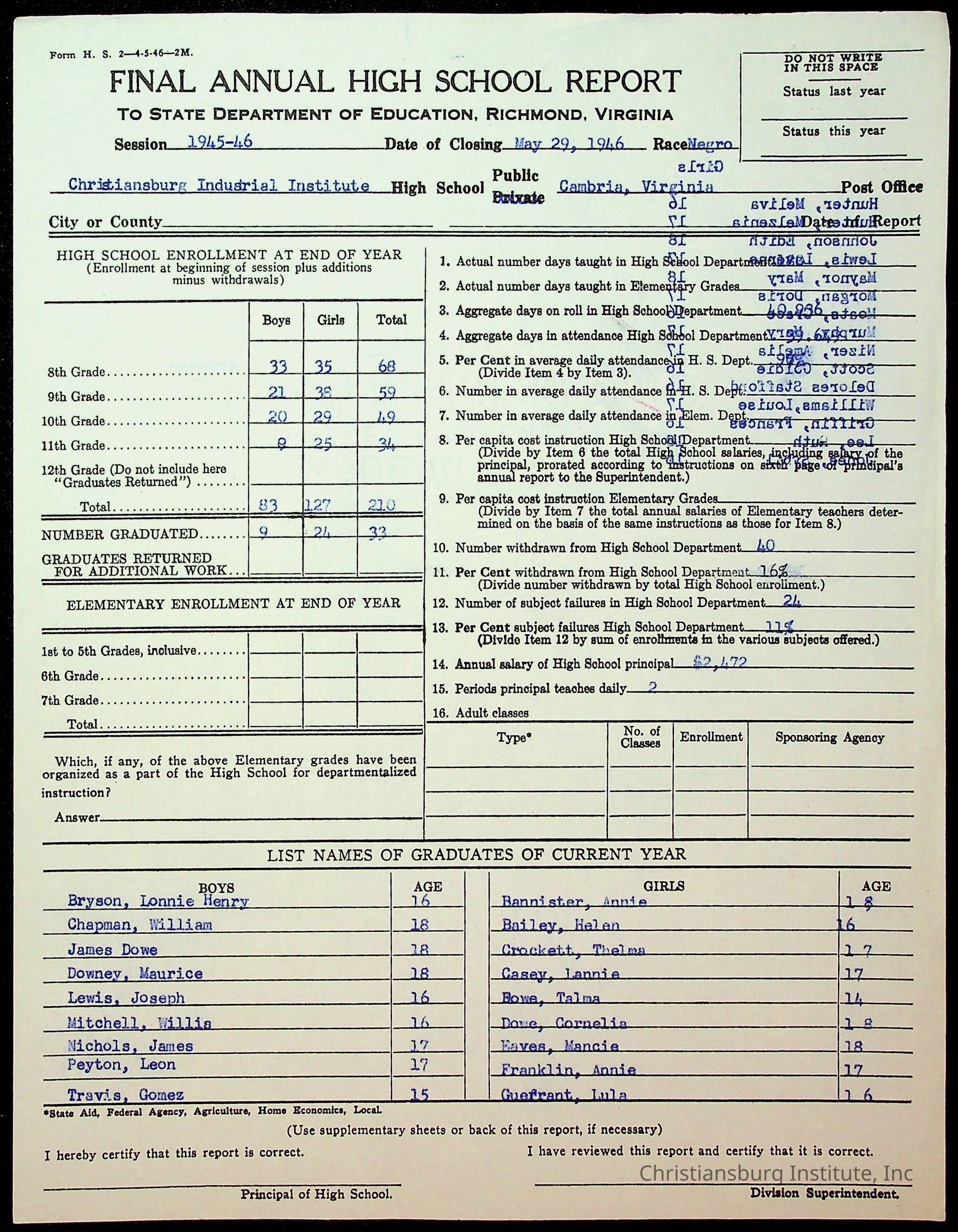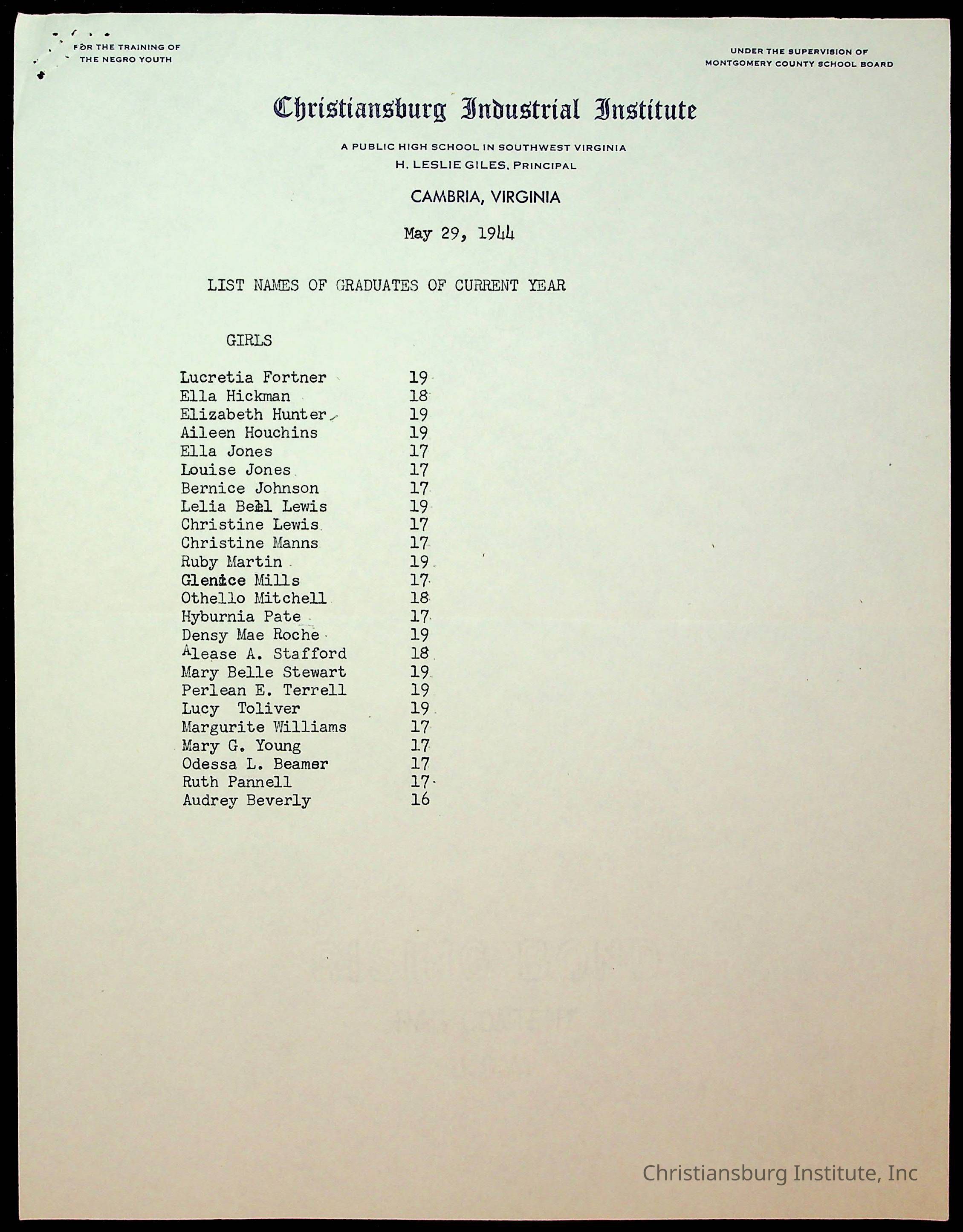 Copyright has been assigned to Christiansburg Institute Museum & Archives by Montgomery County Public Schools. For permission to publish materials created by the donor, contact CIMA@christiansburginstitute.com. Materials not created by Christiansburg Industrial Institute may still be under copyright.
