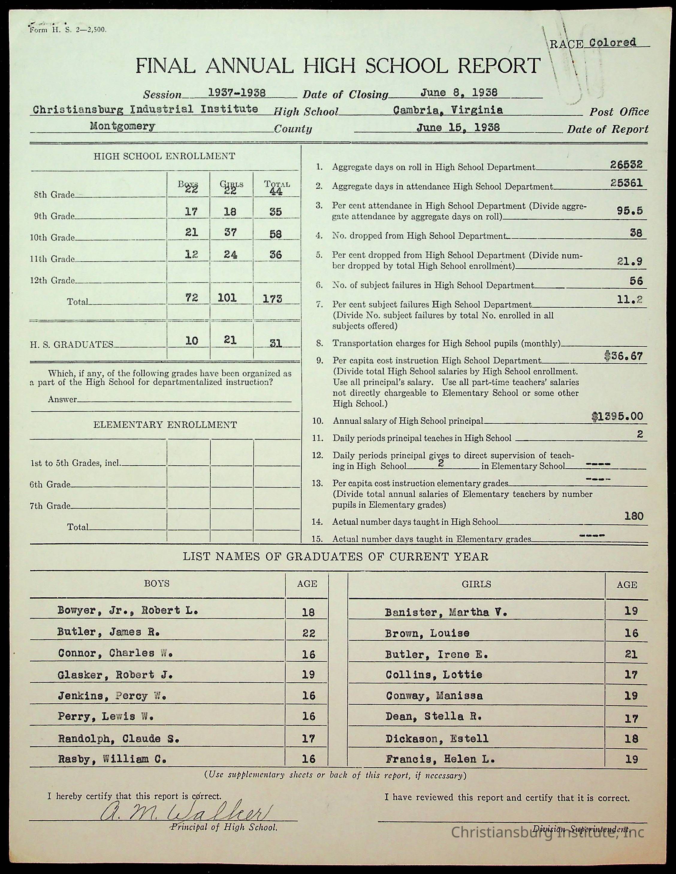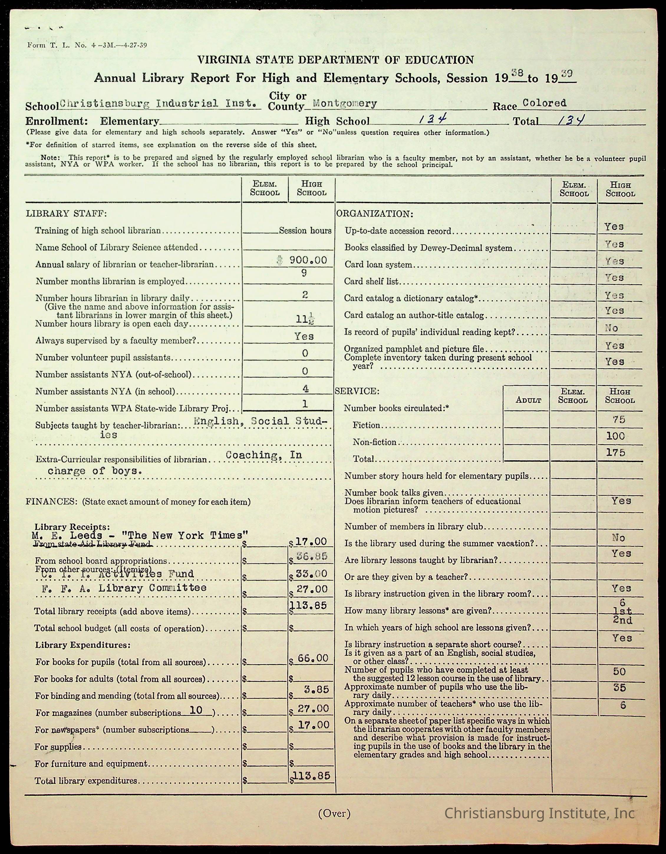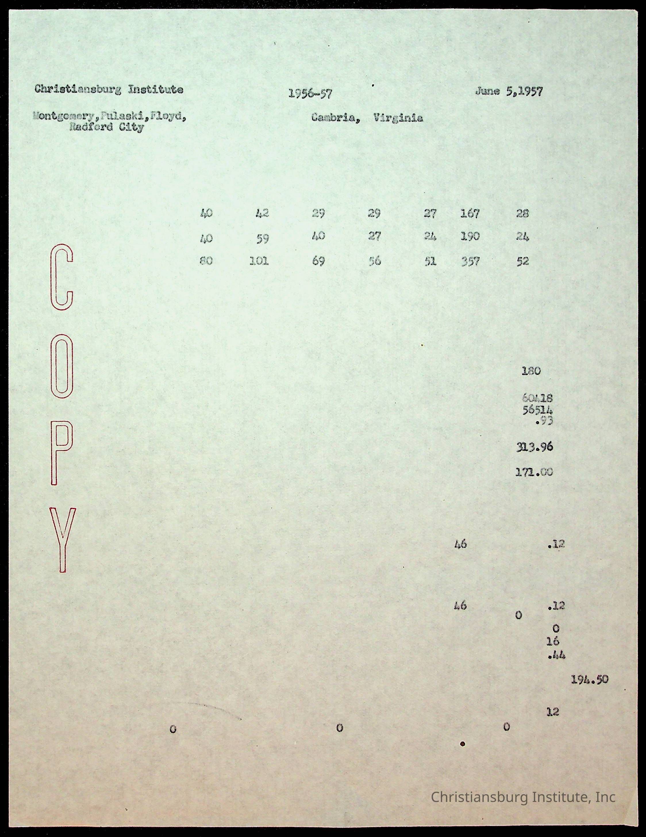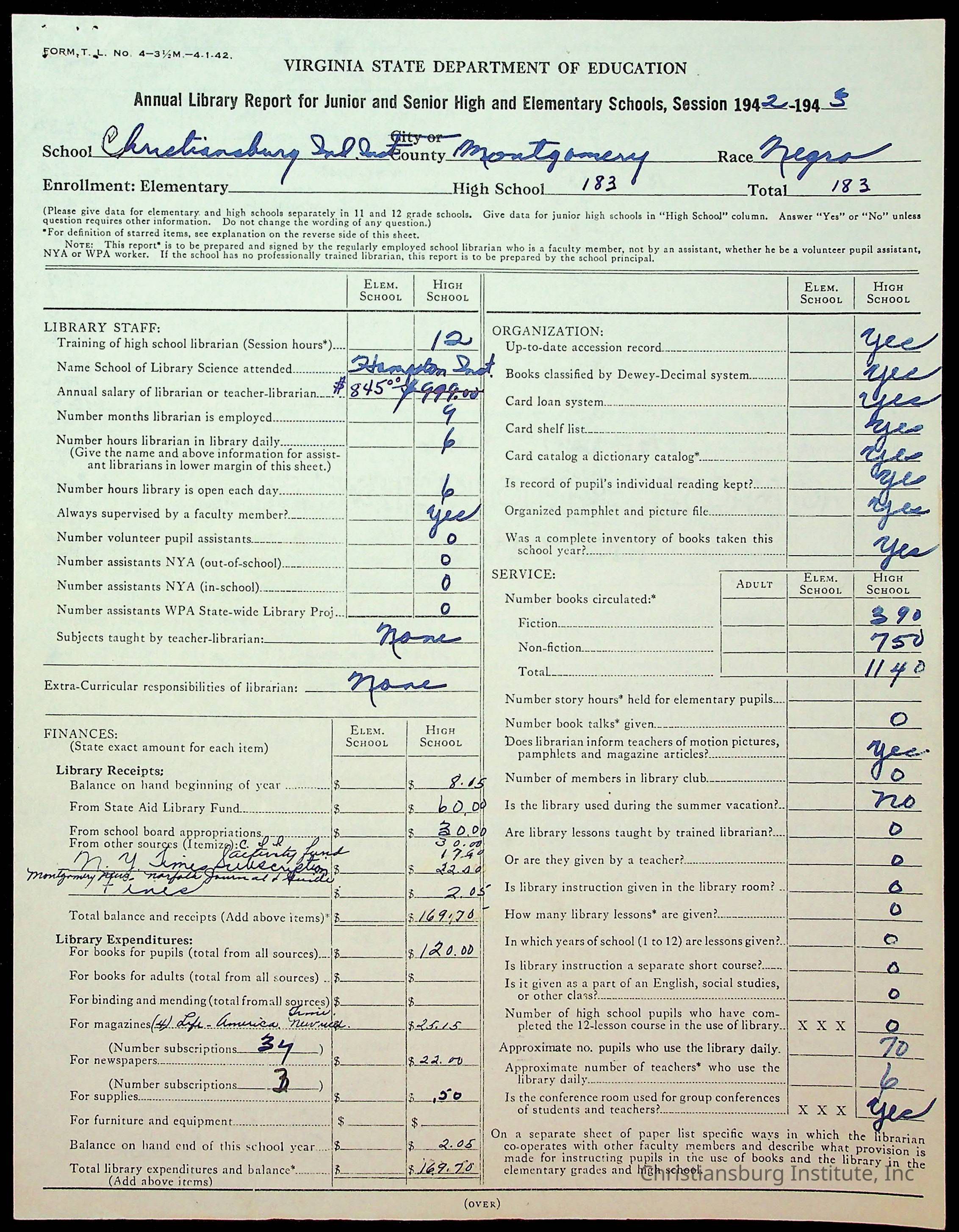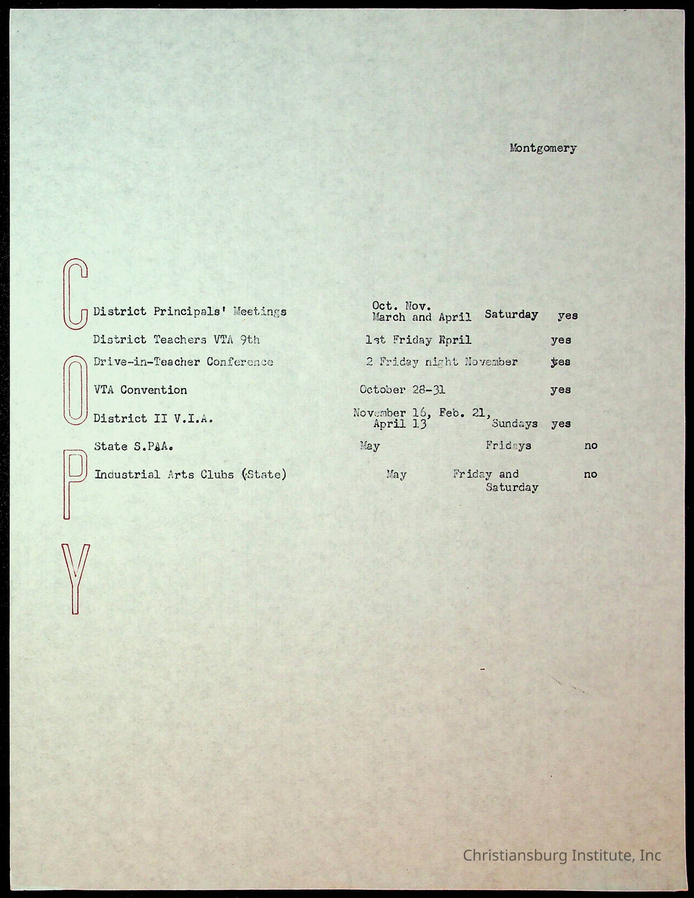 Copyright has been assigned to Christiansburg Institute Museum & Archives by Montgomery County Public Schools. For permission to publish materials created by the donor, contact CIMA@christiansburginstitute.com. Materials not created by Christiansburg Industrial Institute may still be under copyright.