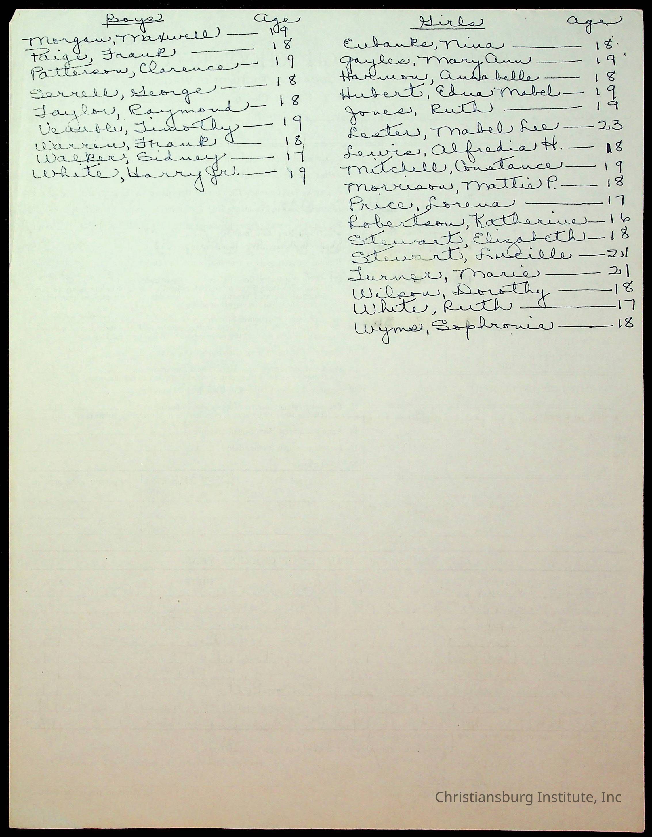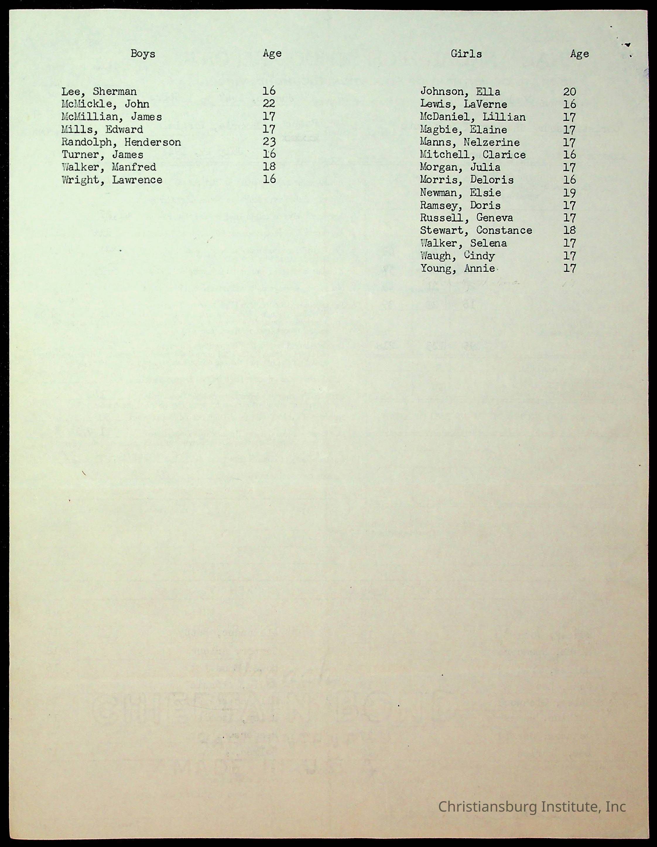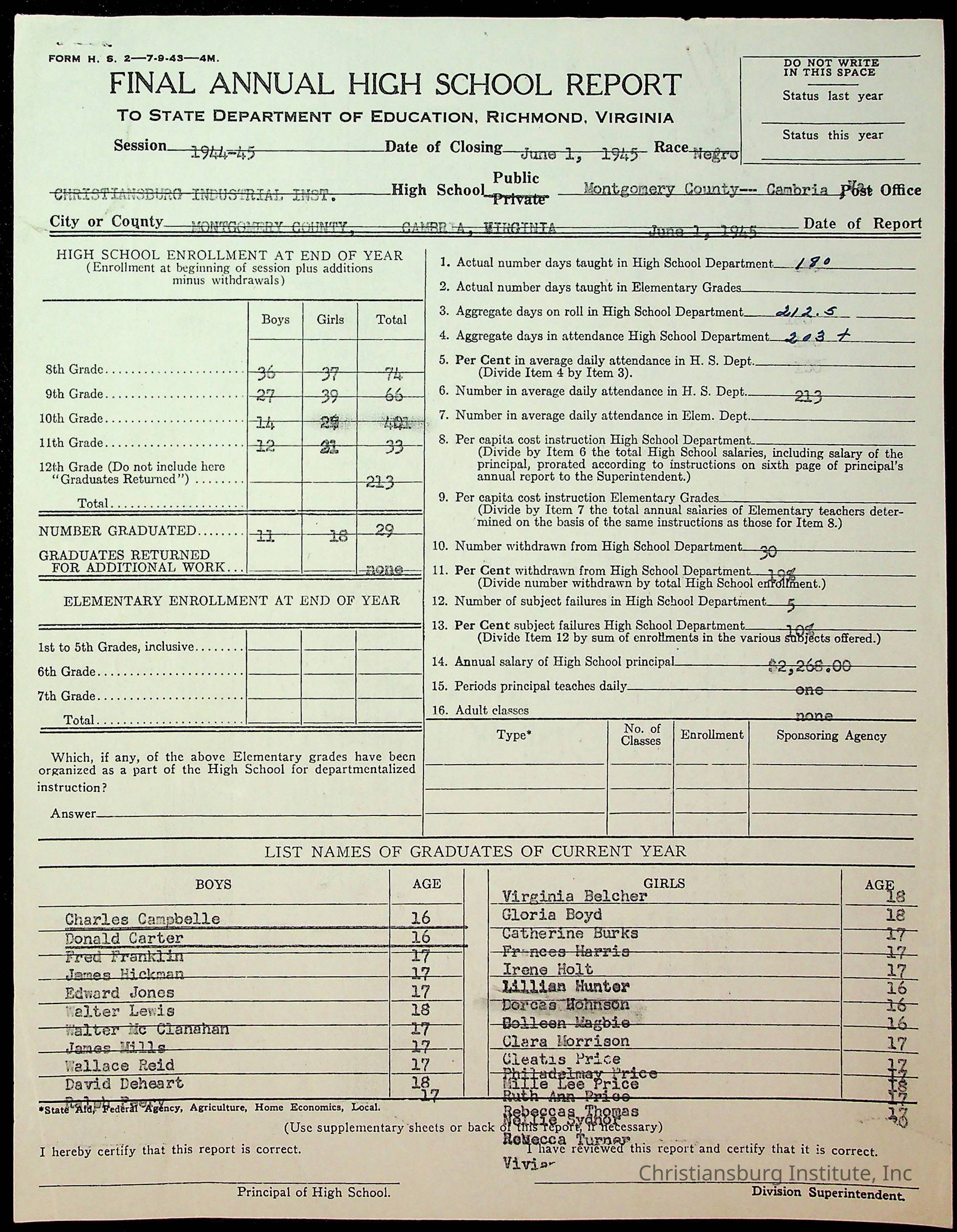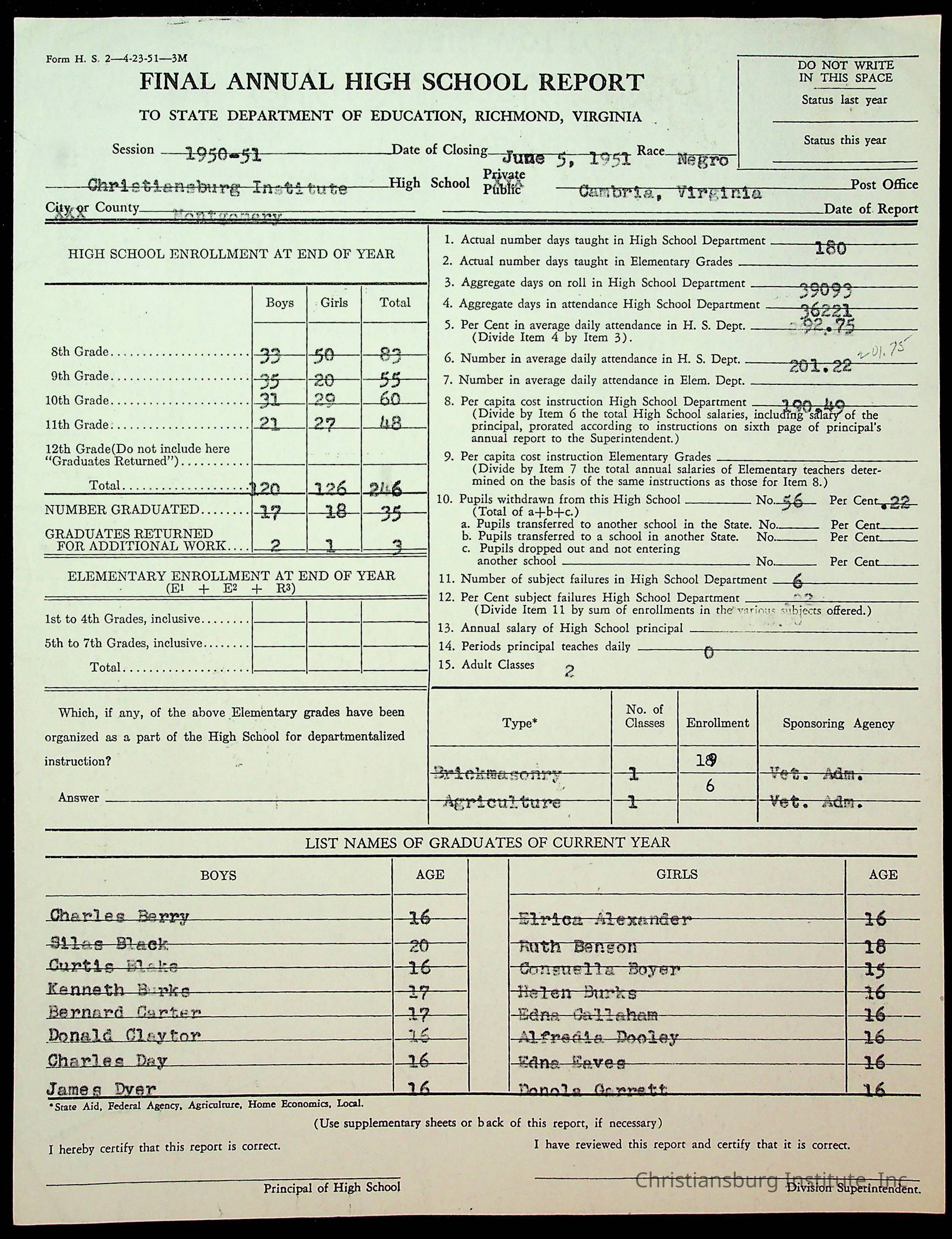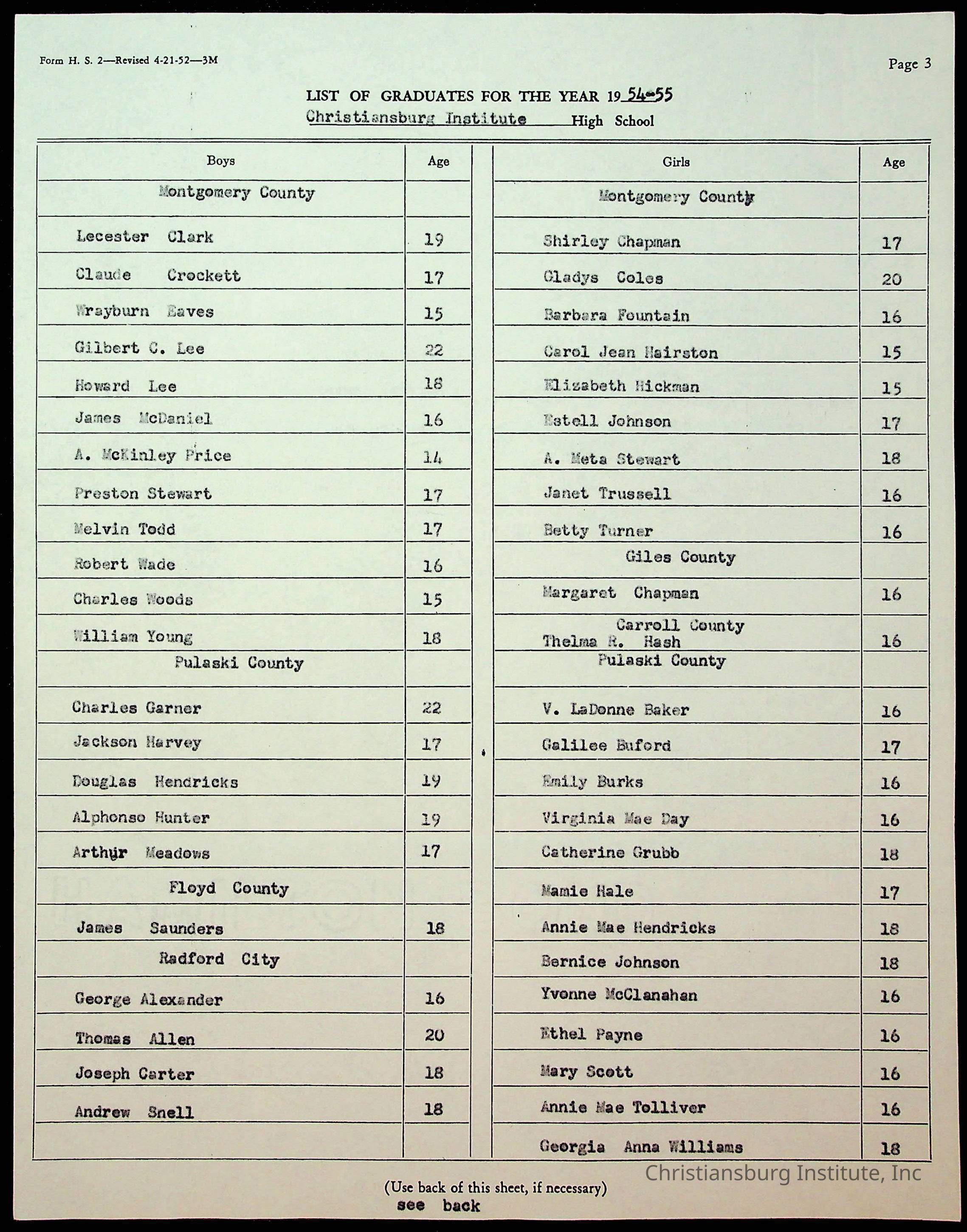 Copyright has been assigned to Christiansburg Institute Museum & Archives by Montgomery County Public Schools. For permission to publish materials created by the donor, contact CIMA@christiansburginstitute.com. Materials not created by Christiansburg Industrial Institute may still be under copyright.