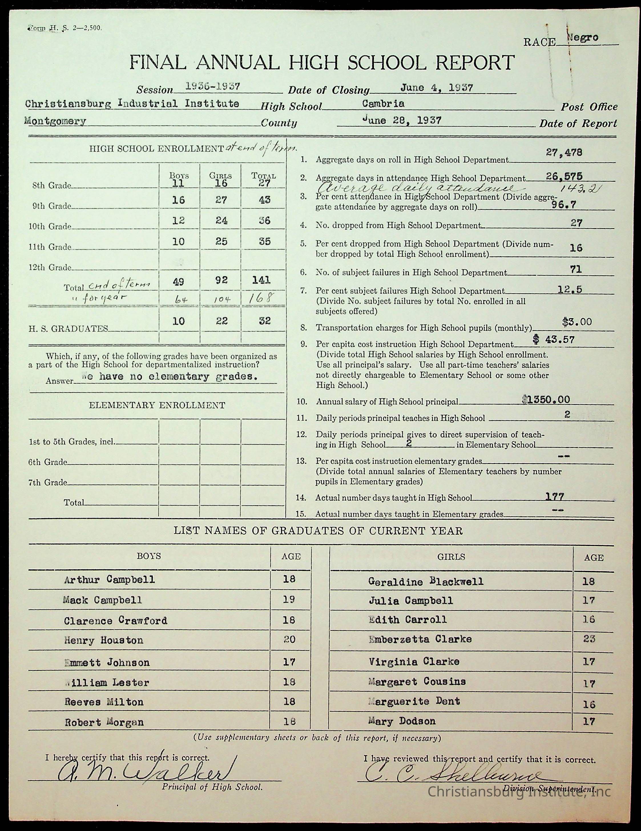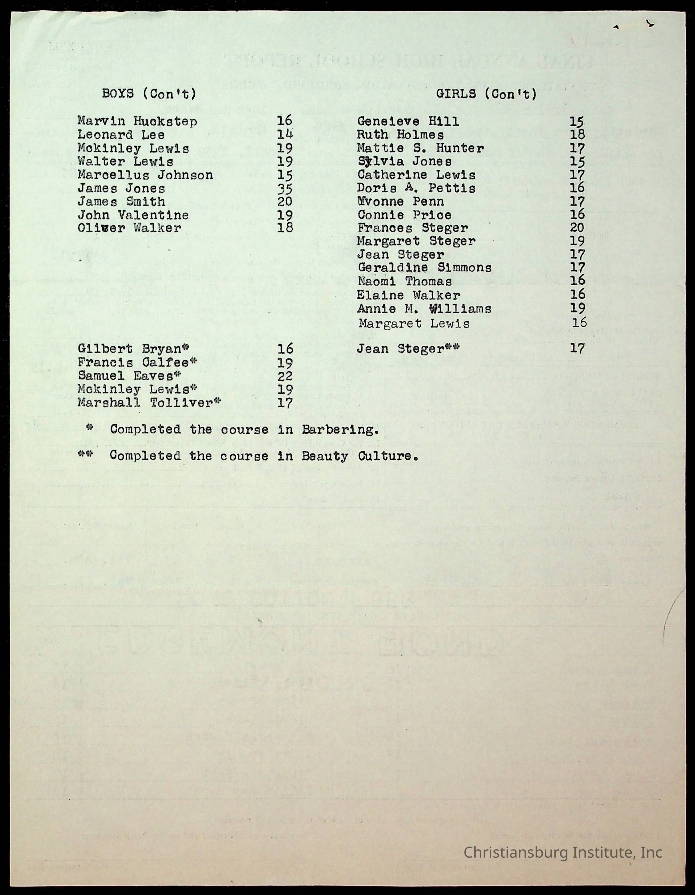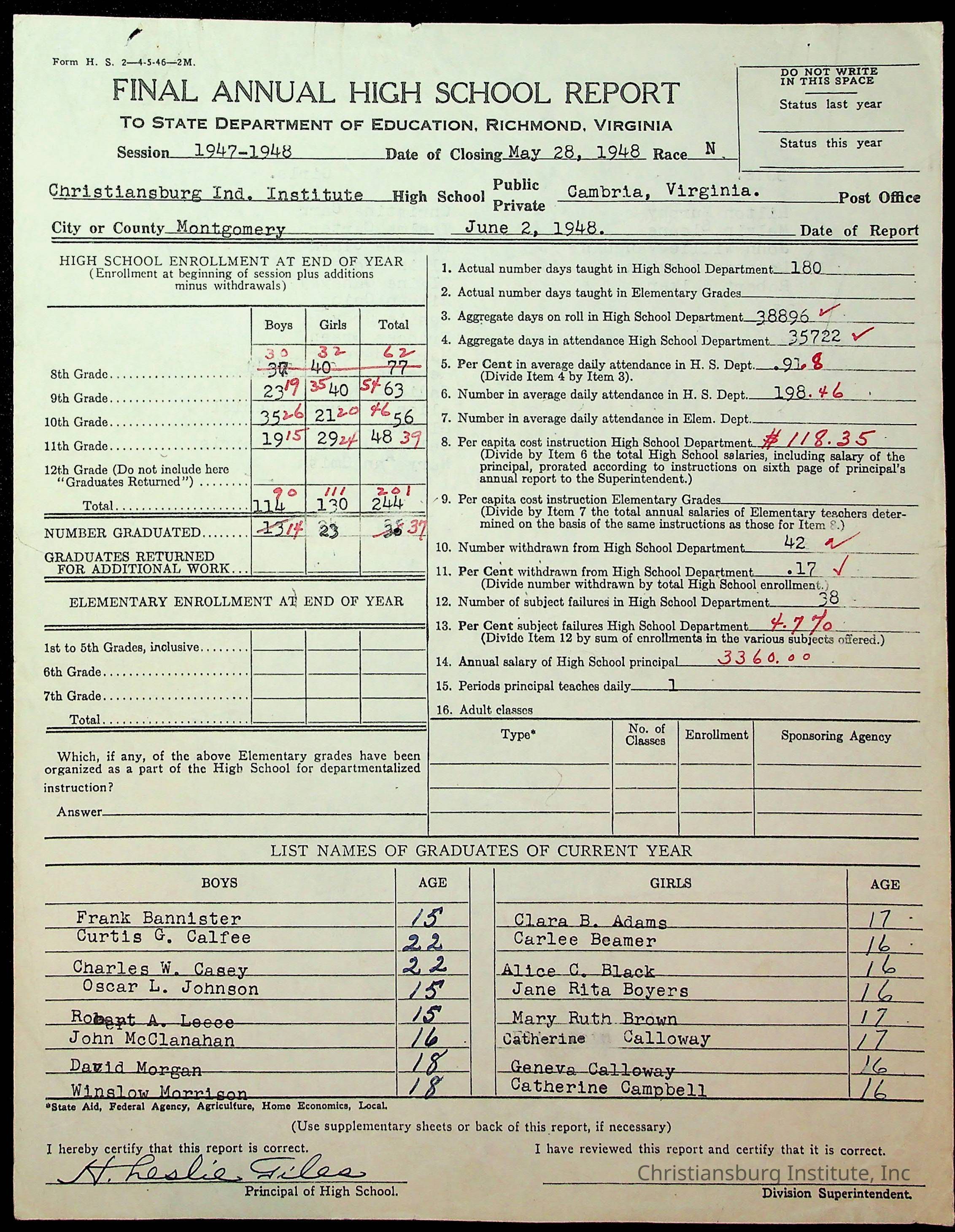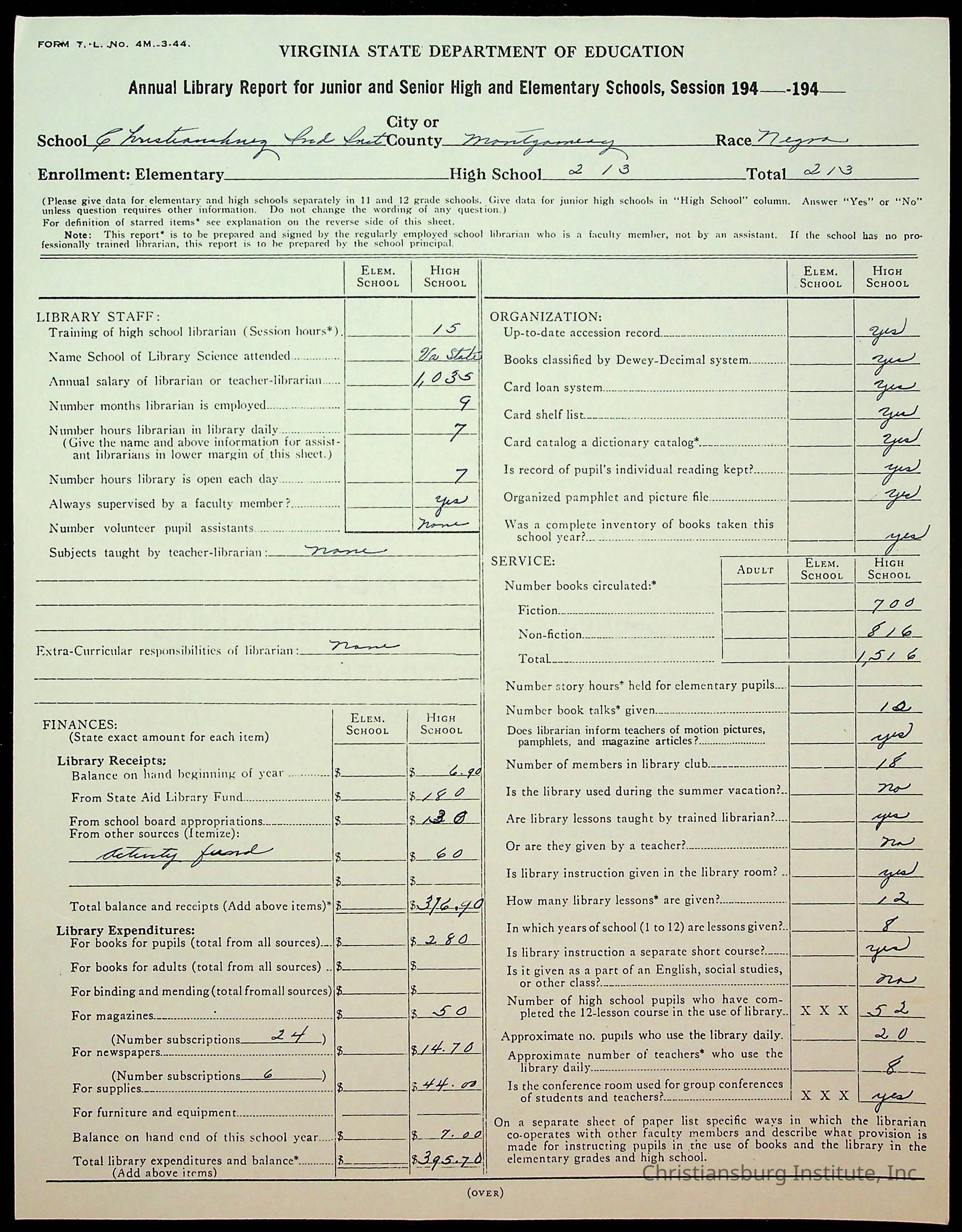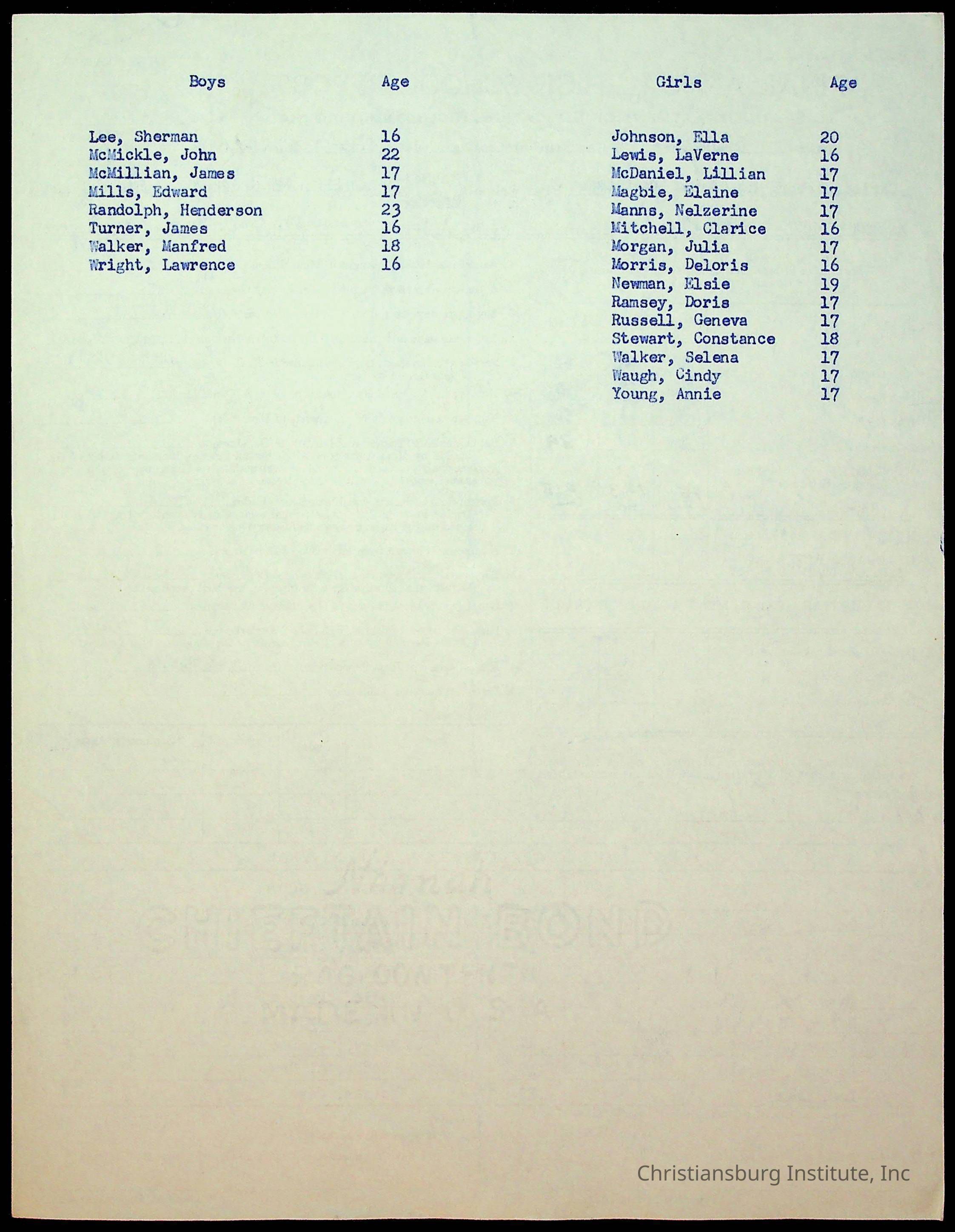 Copyright has been assigned to Christiansburg Institute Museum & Archives by Montgomery County Public Schools. For permission to publish materials created by the donor, contact CIMA@christiansburginstitute.com. Materials not created by Christiansburg Industrial Institute may still be under copyright.