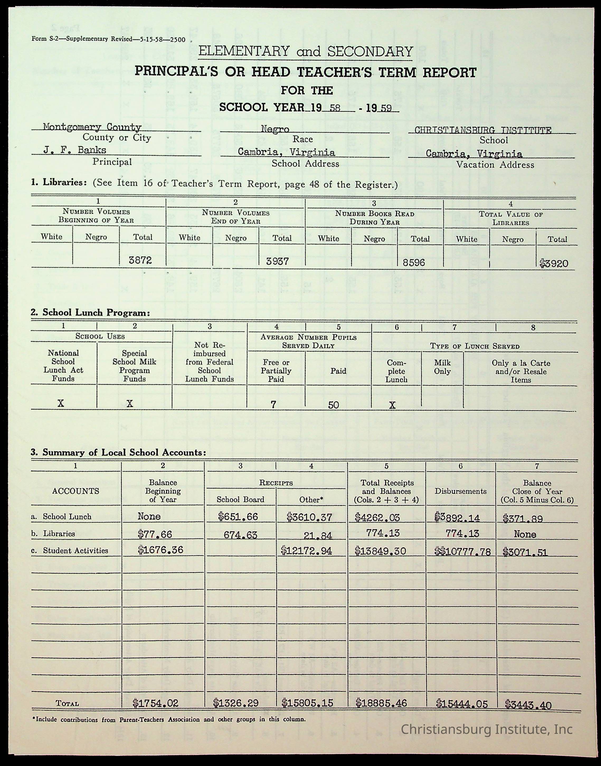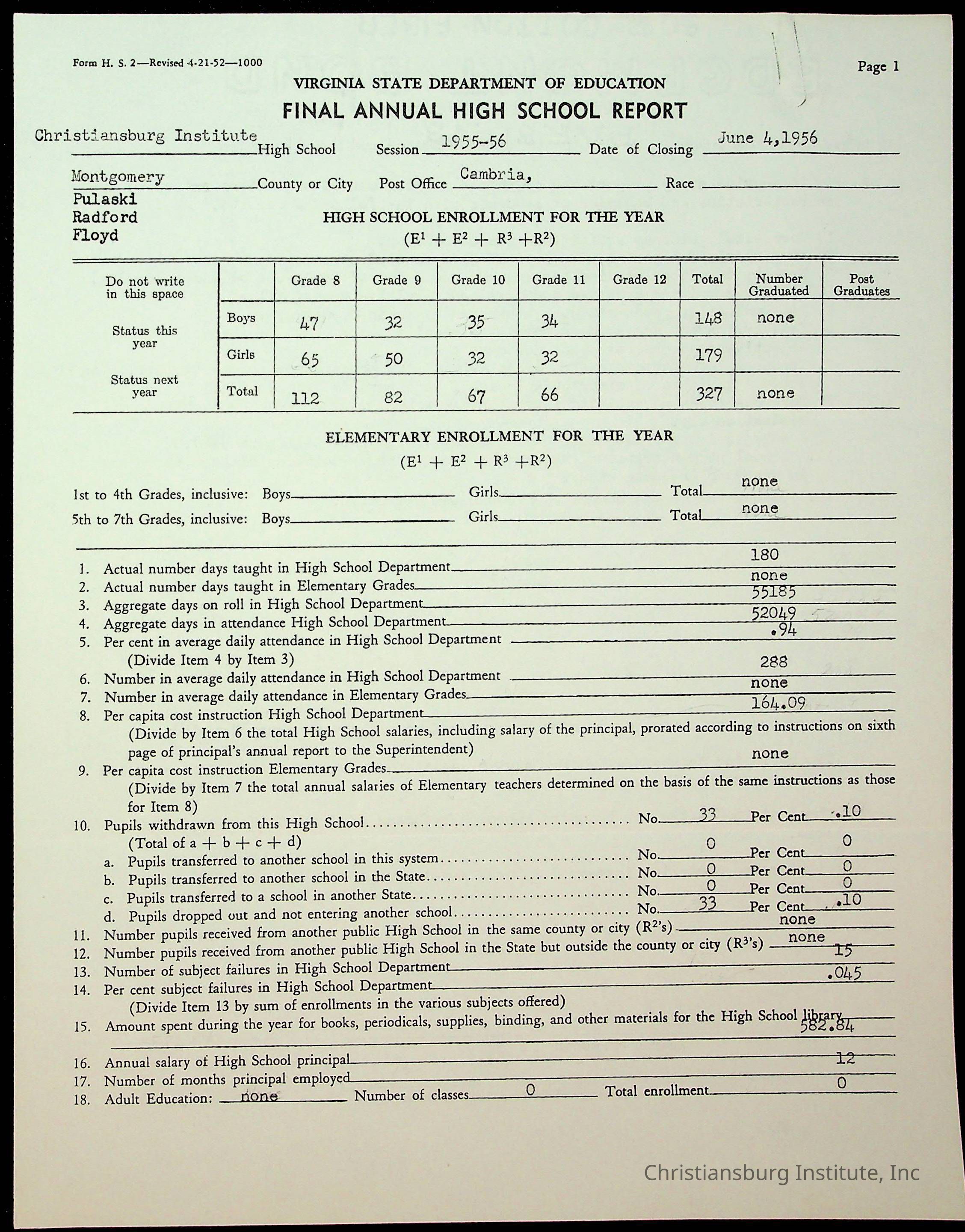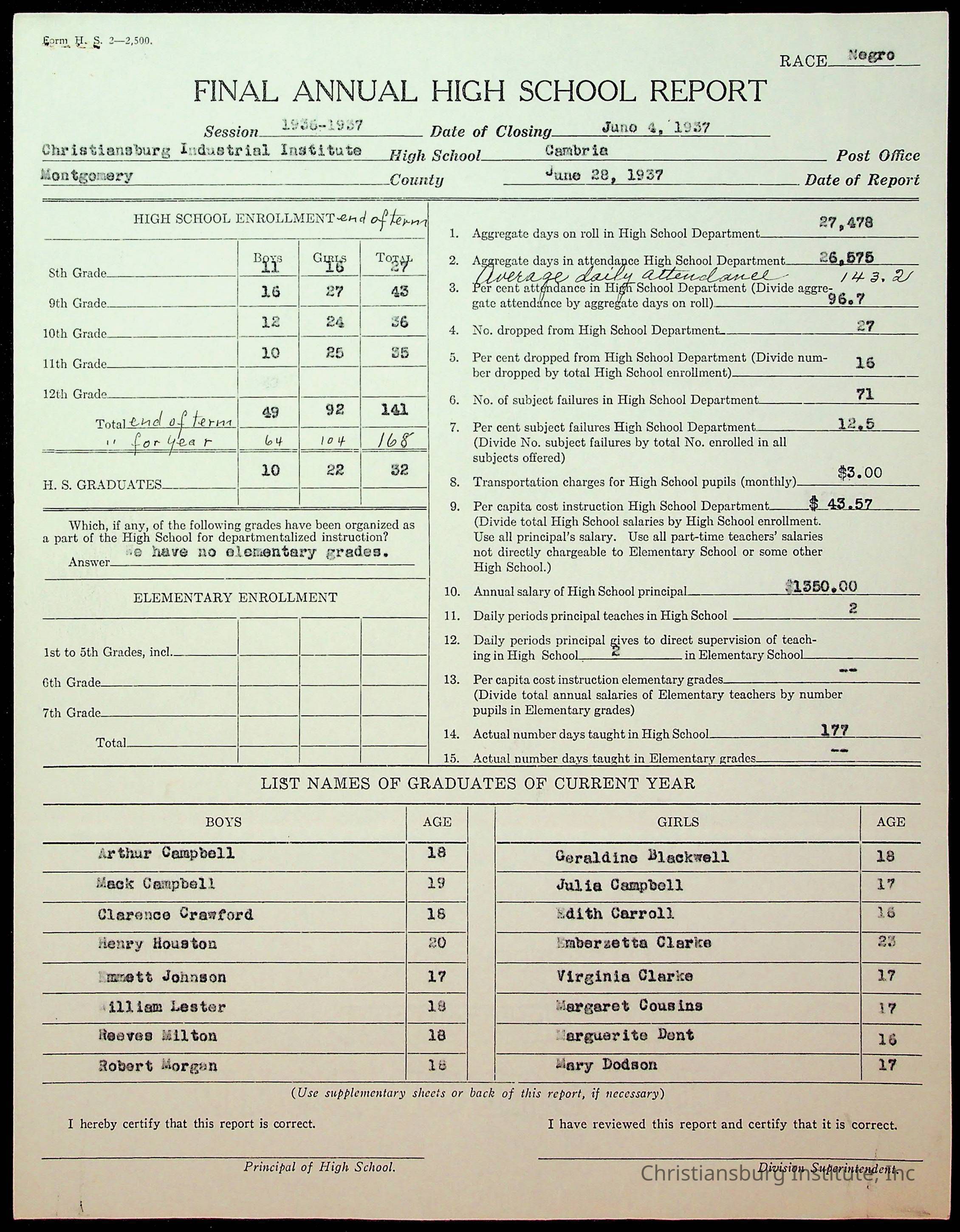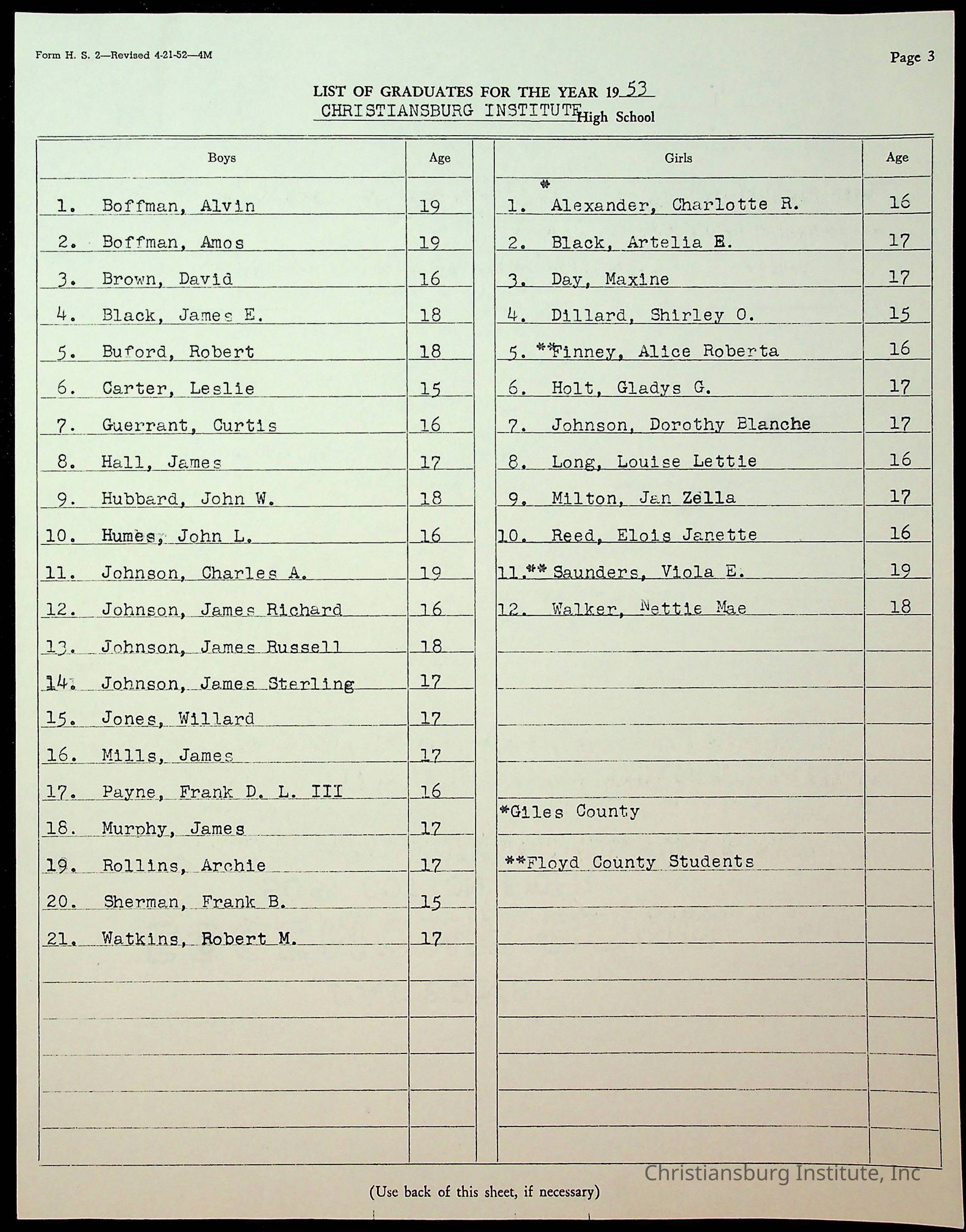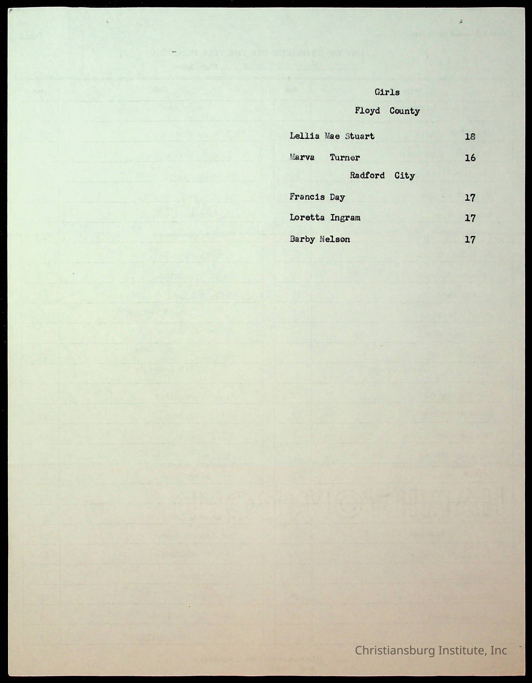 Copyright has been assigned to Christiansburg Institute Museum & Archives by Montgomery County Public Schools. For permission to publish materials created by the donor, contact CIMA@christiansburginstitute.com. Materials not created by Christiansburg Industrial Institute may still be under copyright.