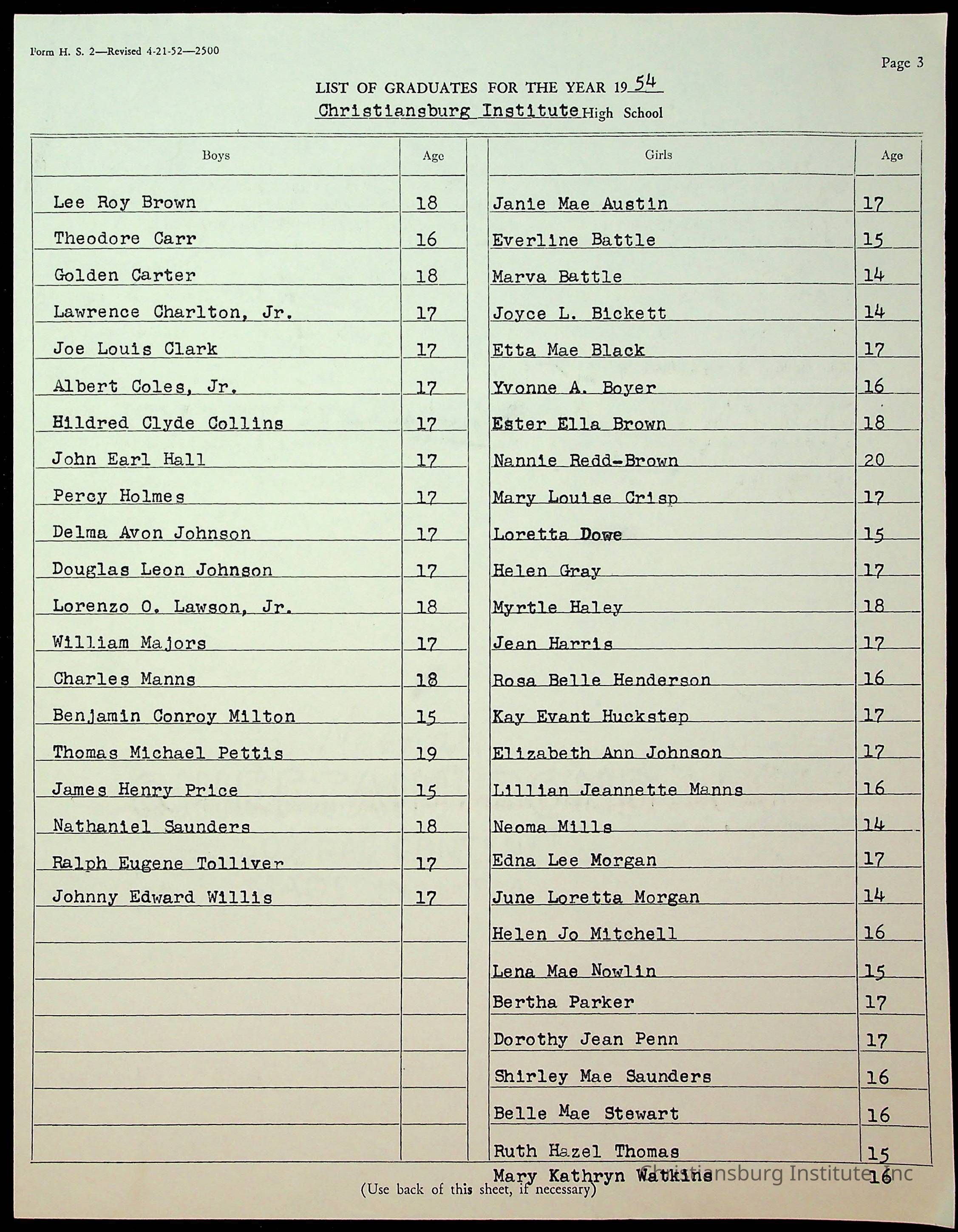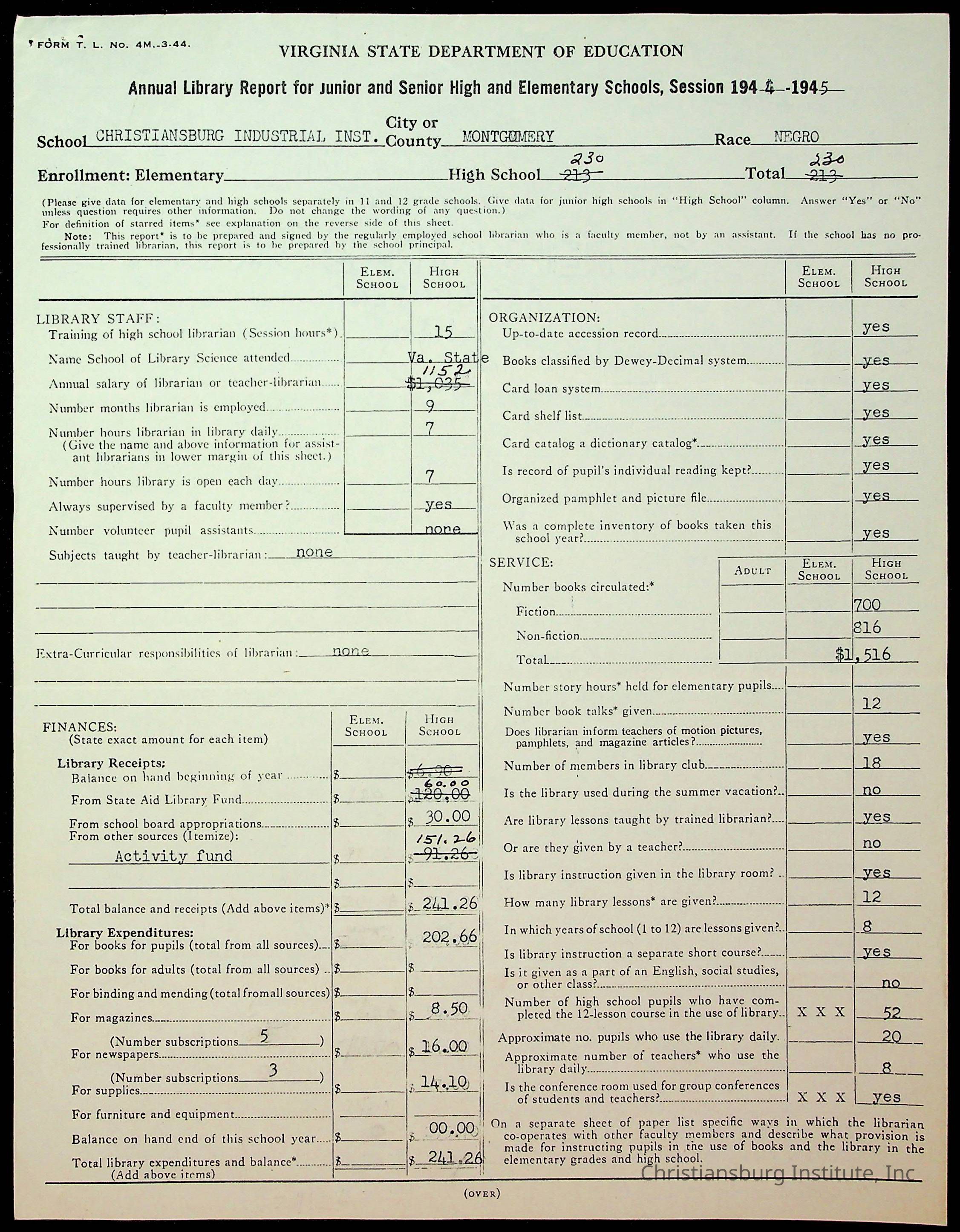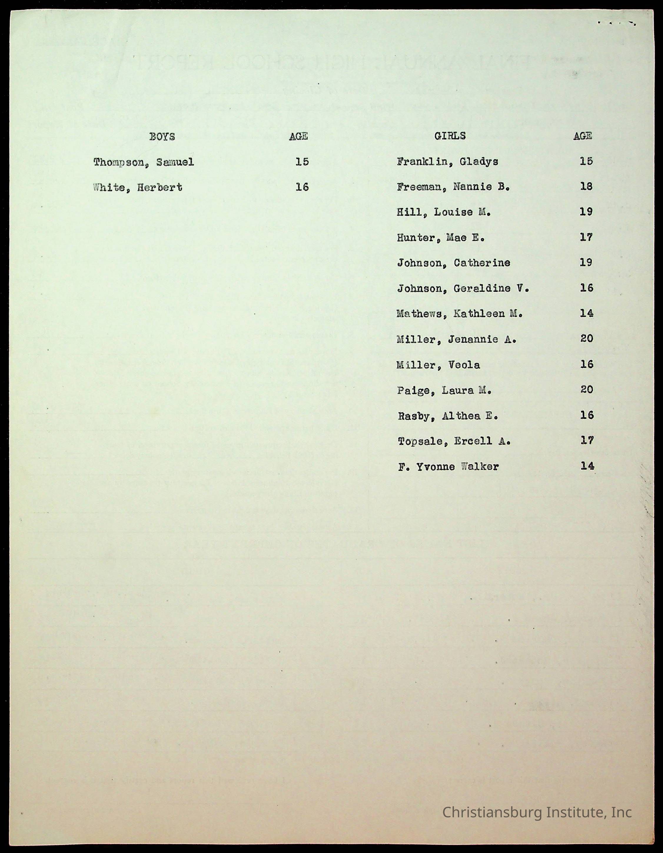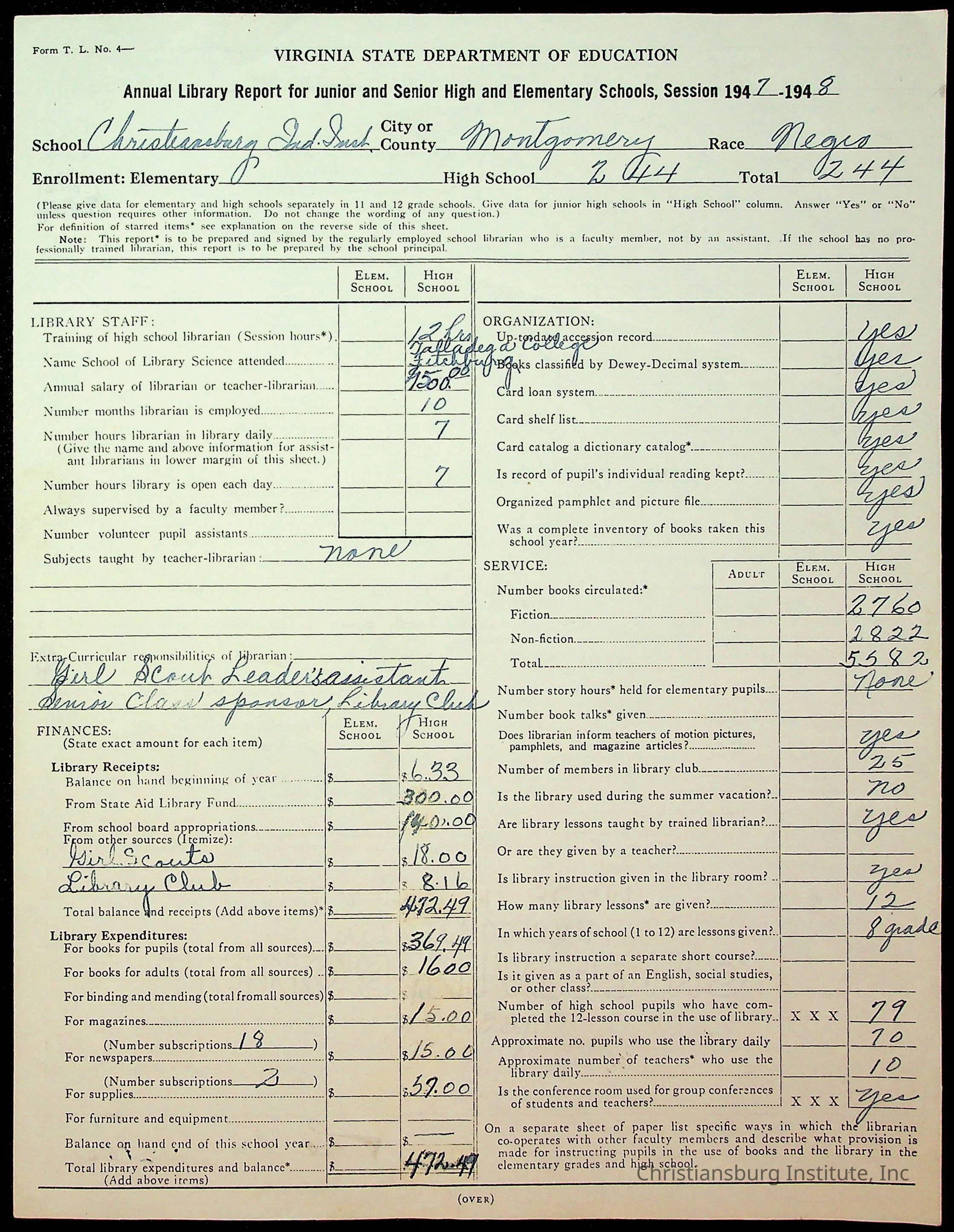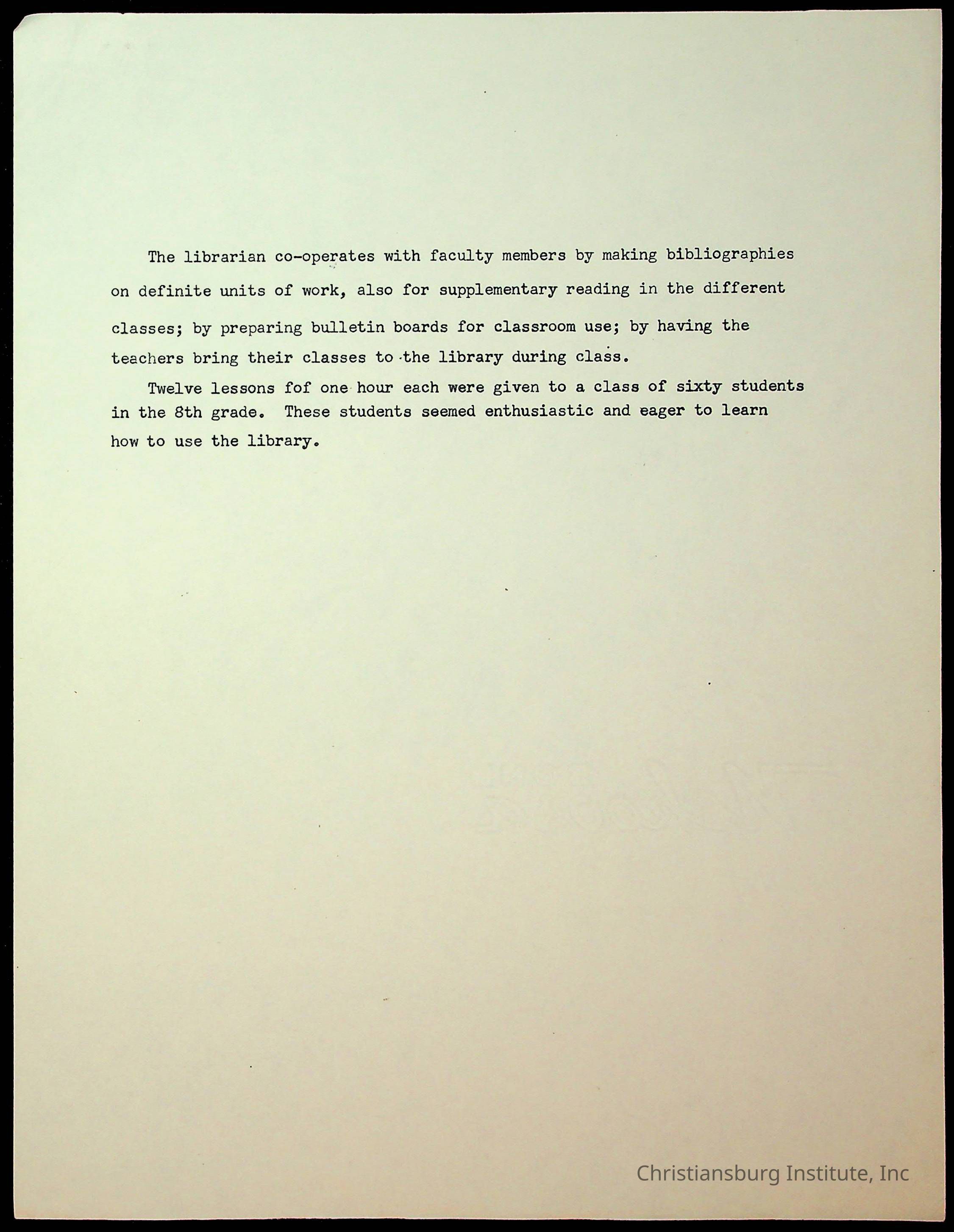 Copyright has been assigned to Christiansburg Institute Museum & Archives by Montgomery County Public Schools. For permission to publish materials created by the donor, contact CIMA@christiansburginstitute.com. Materials not created by Christiansburg Industrial Institute may still be under copyright.