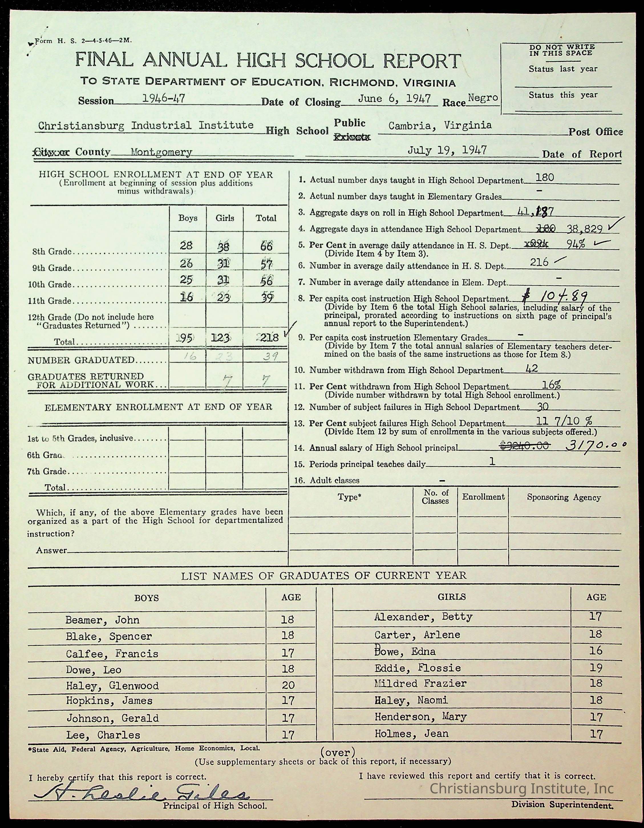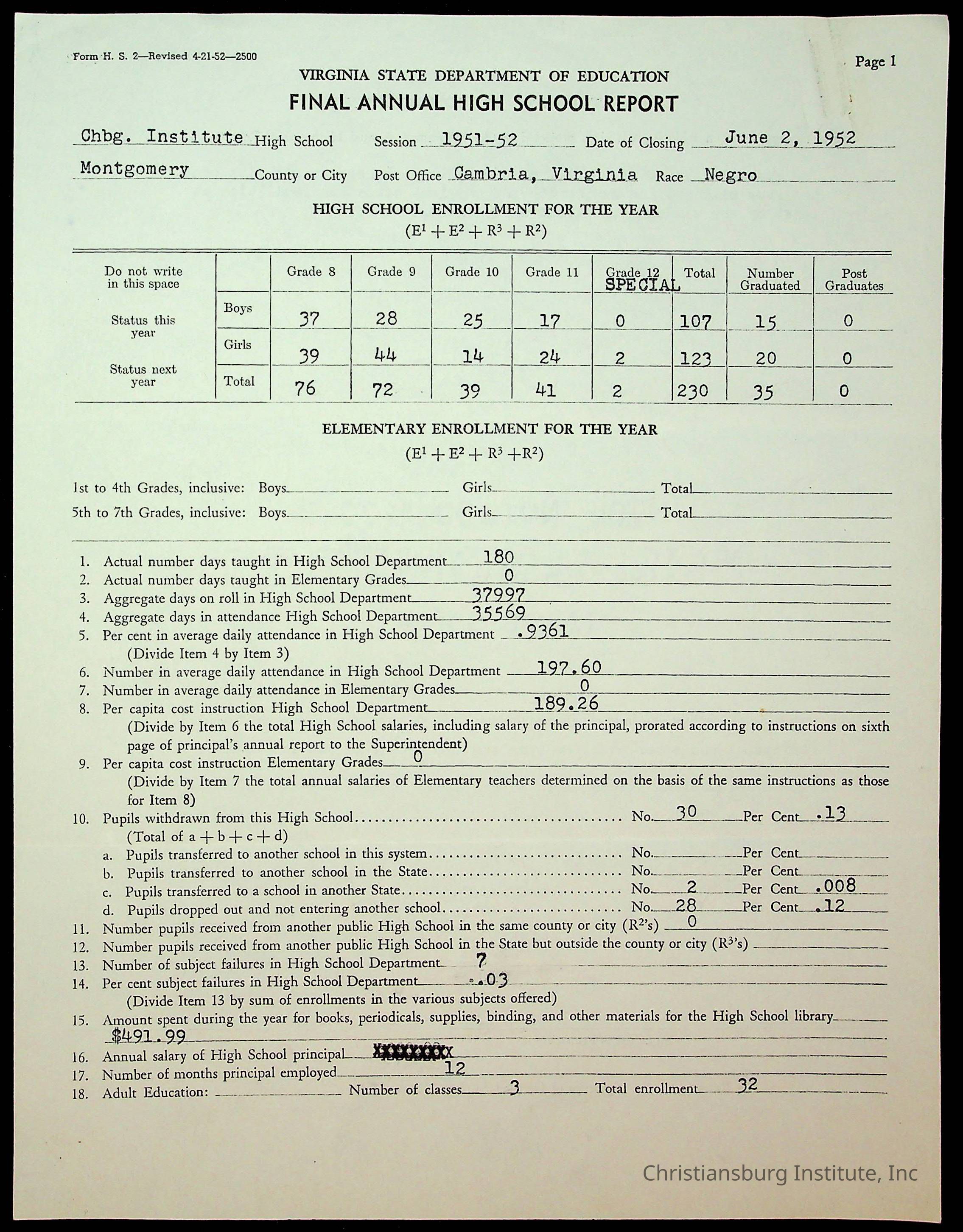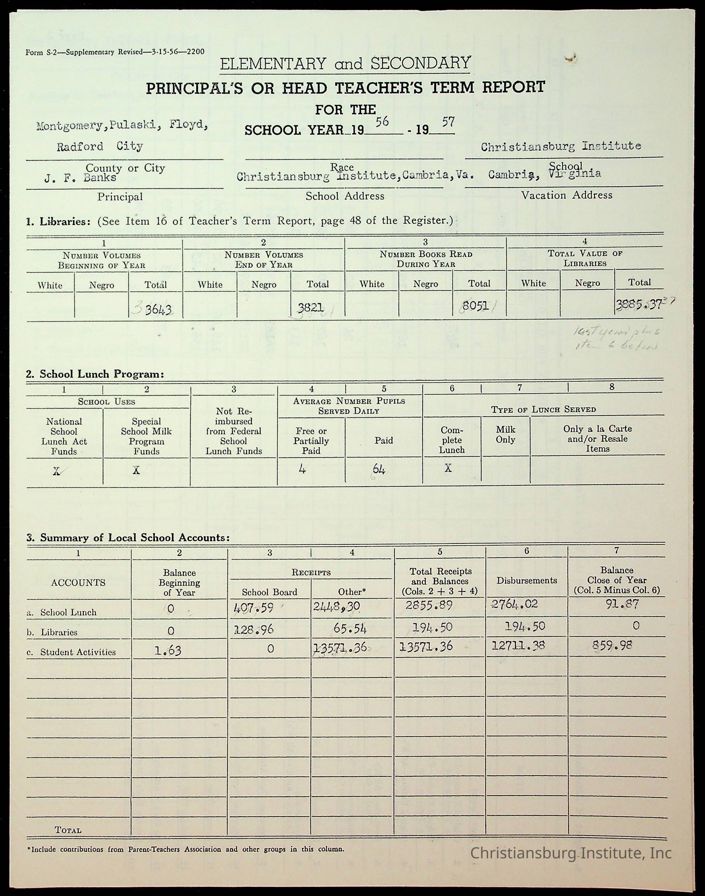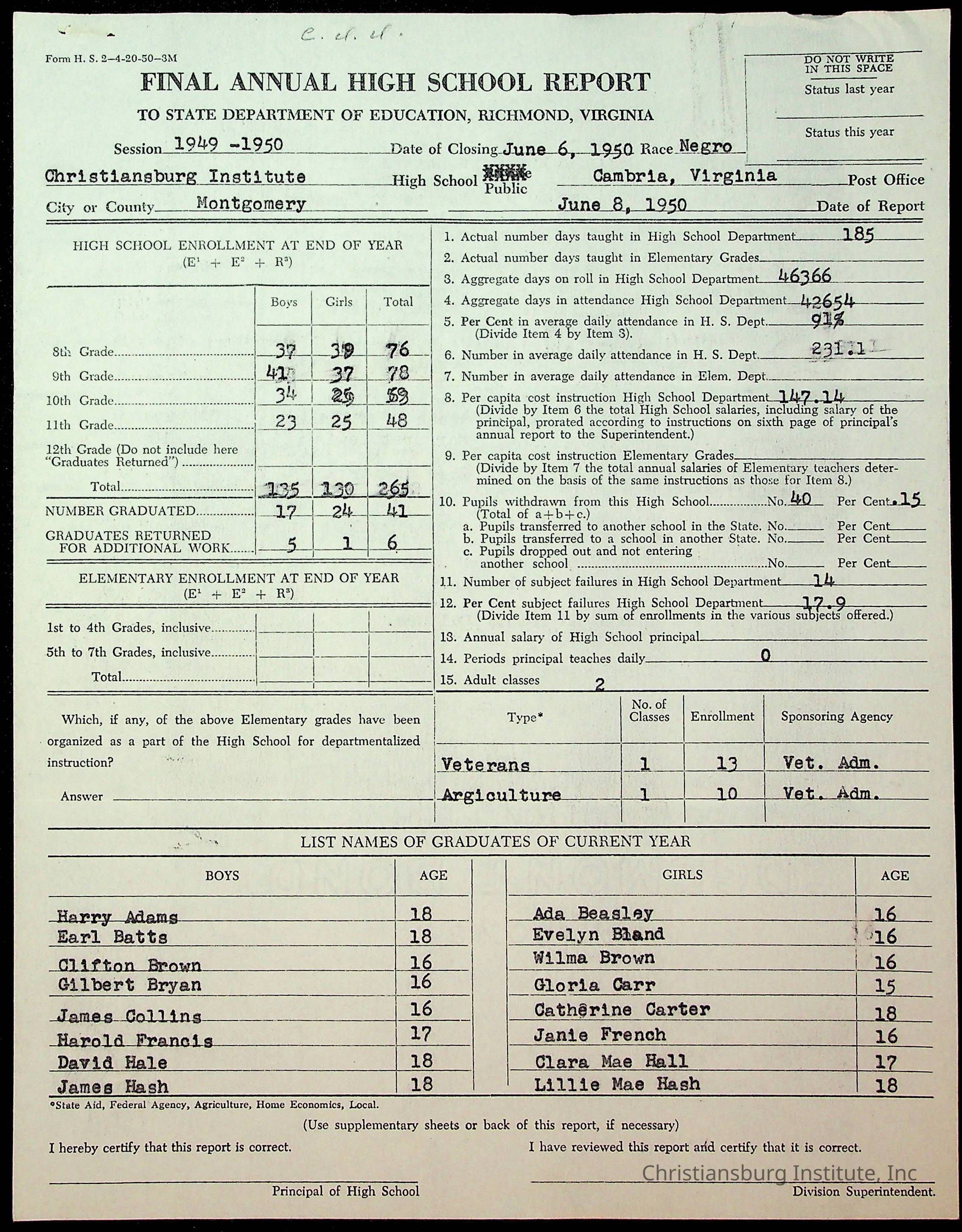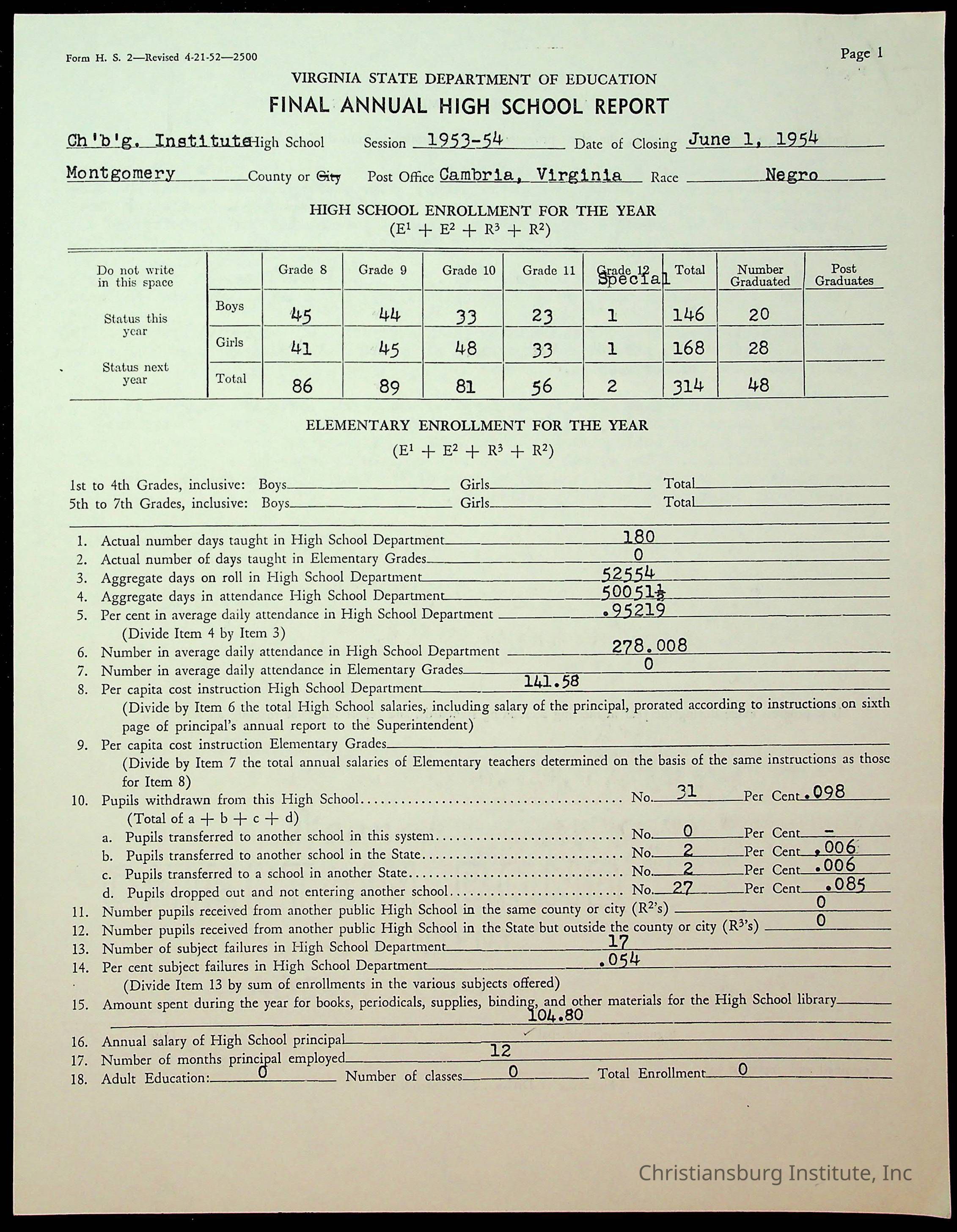 Copyright has been assigned to Christiansburg Institute Museum & Archives by Montgomery County Public Schools. For permission to publish materials created by the donor, contact CIMA@christiansburginstitute.com. Materials not created by Christiansburg Industrial Institute may still be under copyright.
