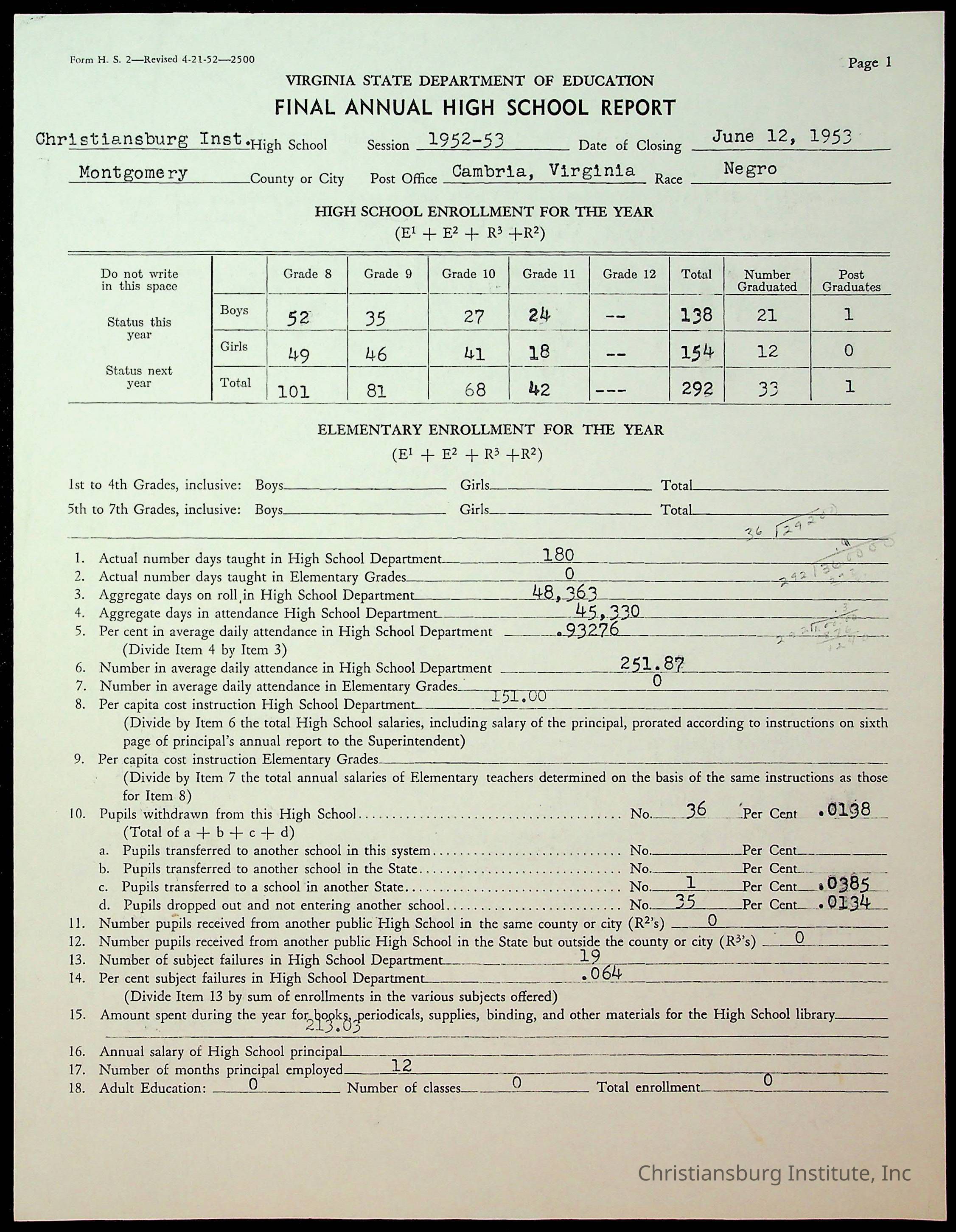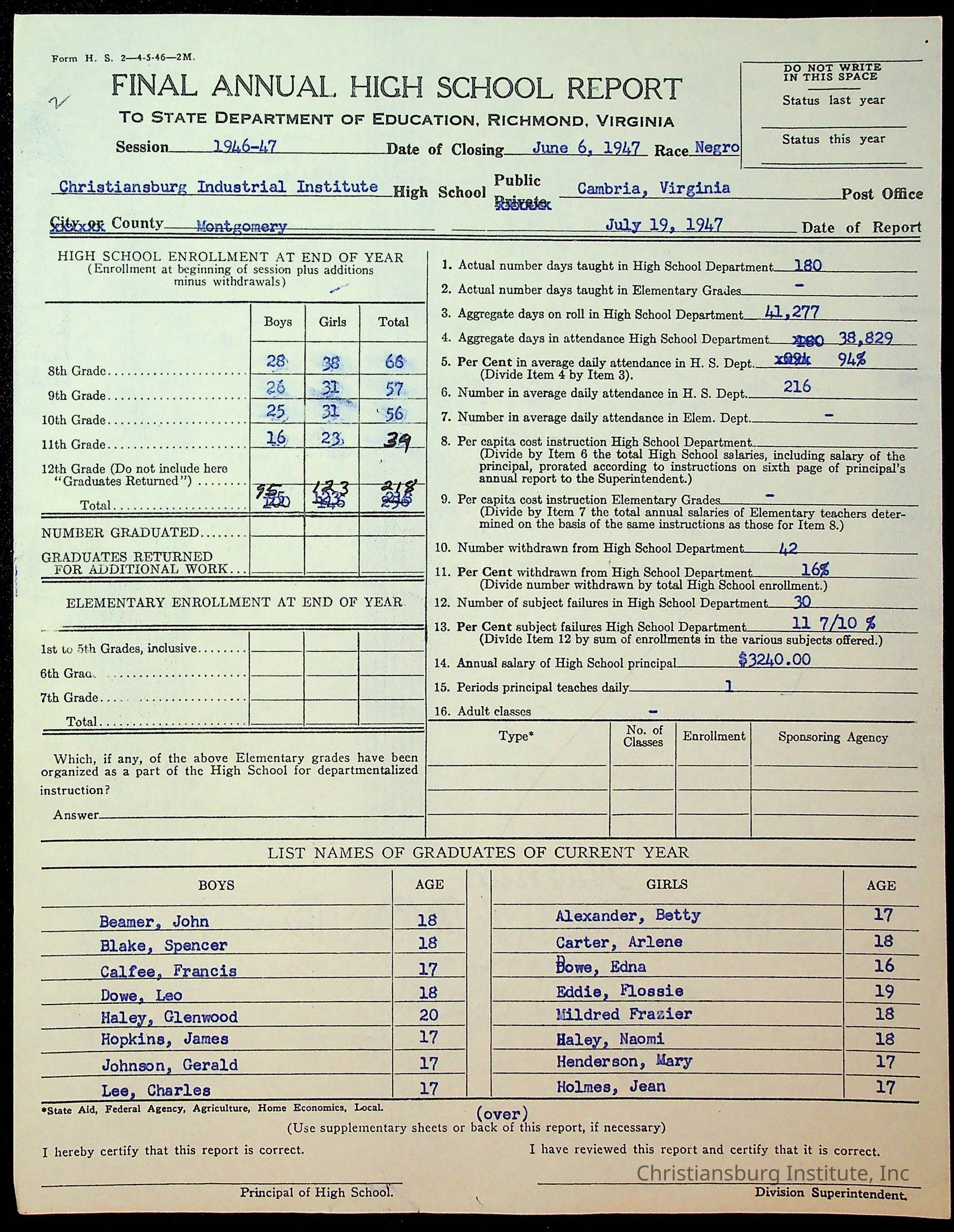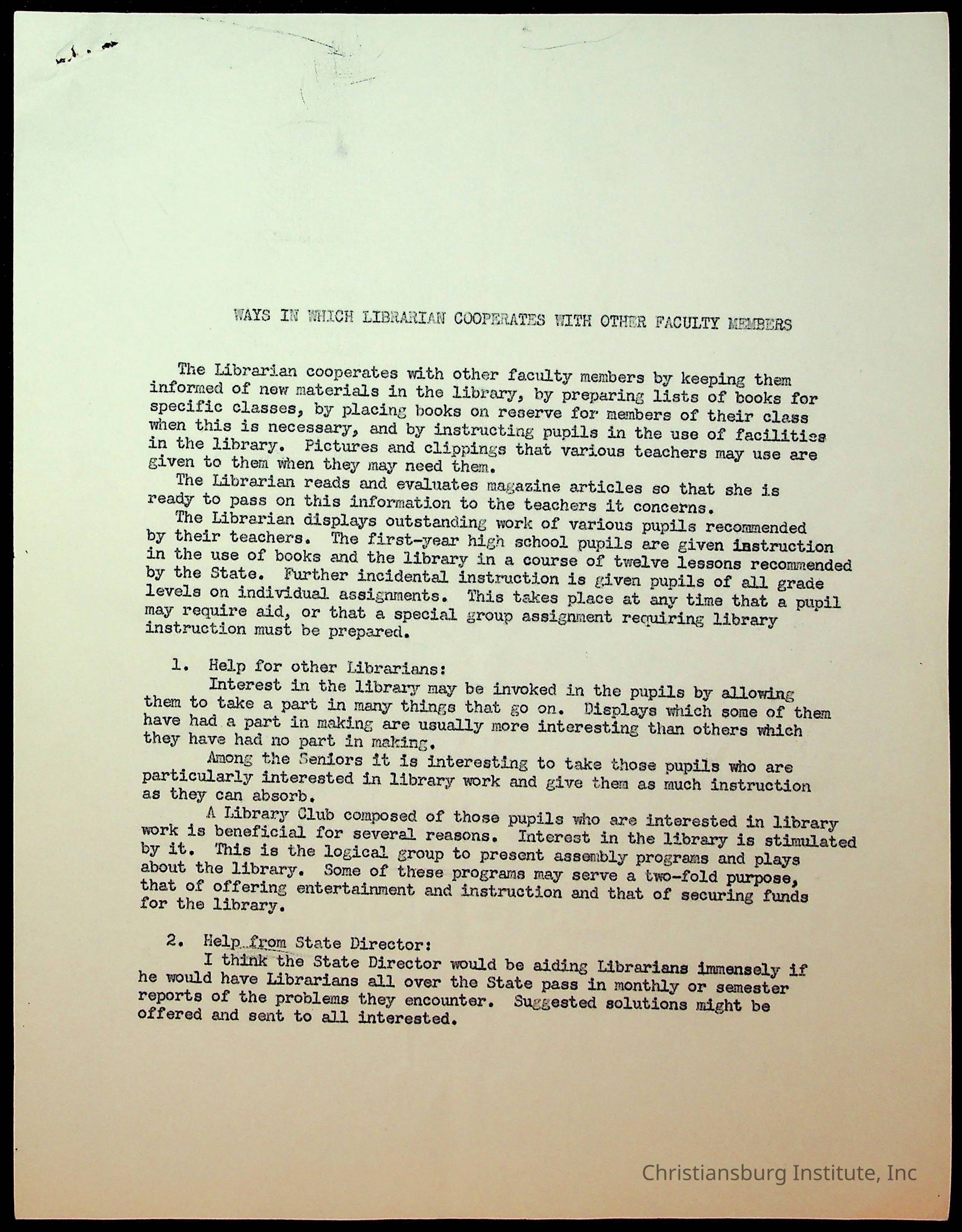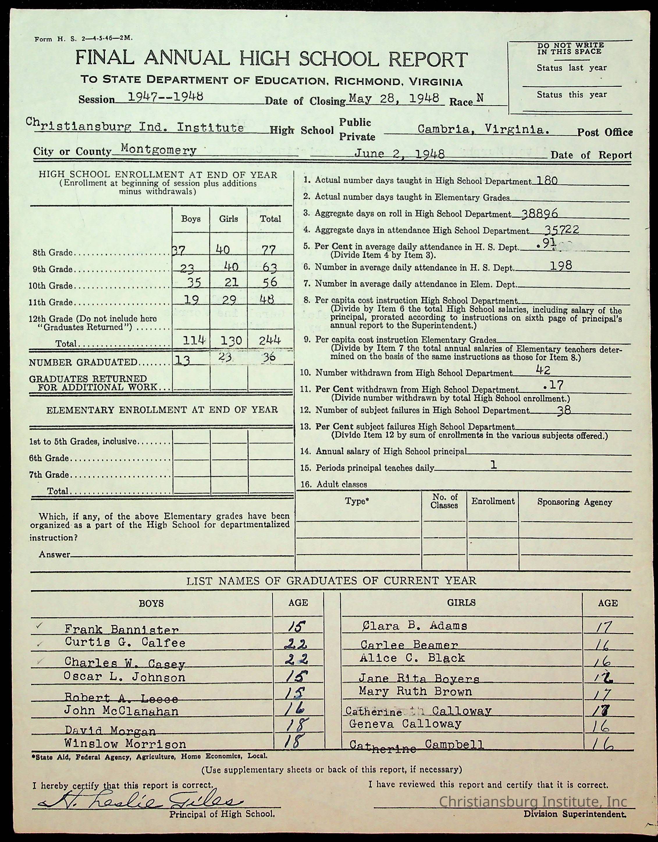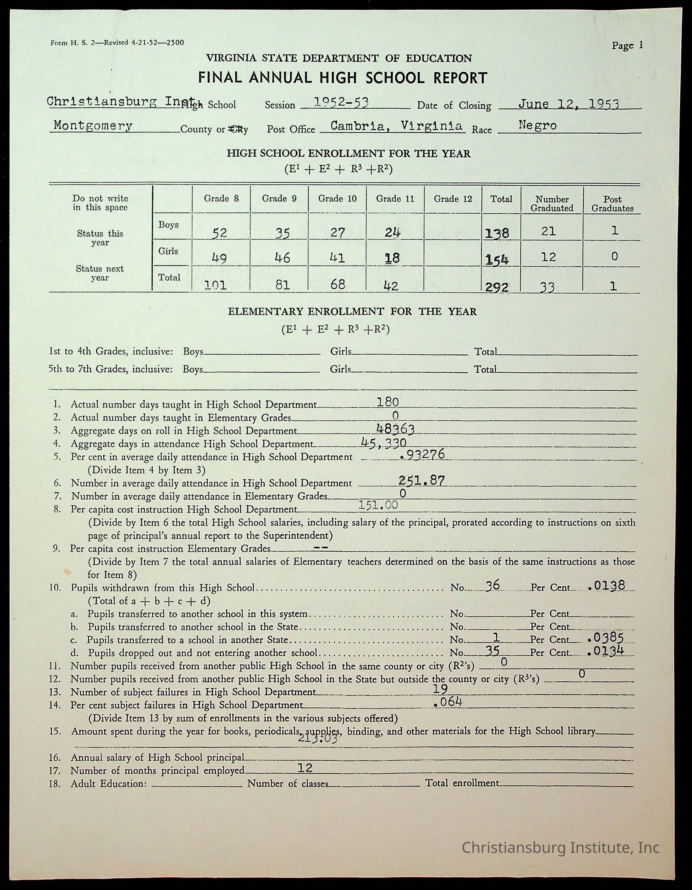 Copyright has been assigned to Christiansburg Institute Museum & Archives by Montgomery County Public Schools. For permission to publish materials created by the donor, contact CIMA@christiansburginstitute.com. Materials not created by Christiansburg Industrial Institute may still be under copyright.