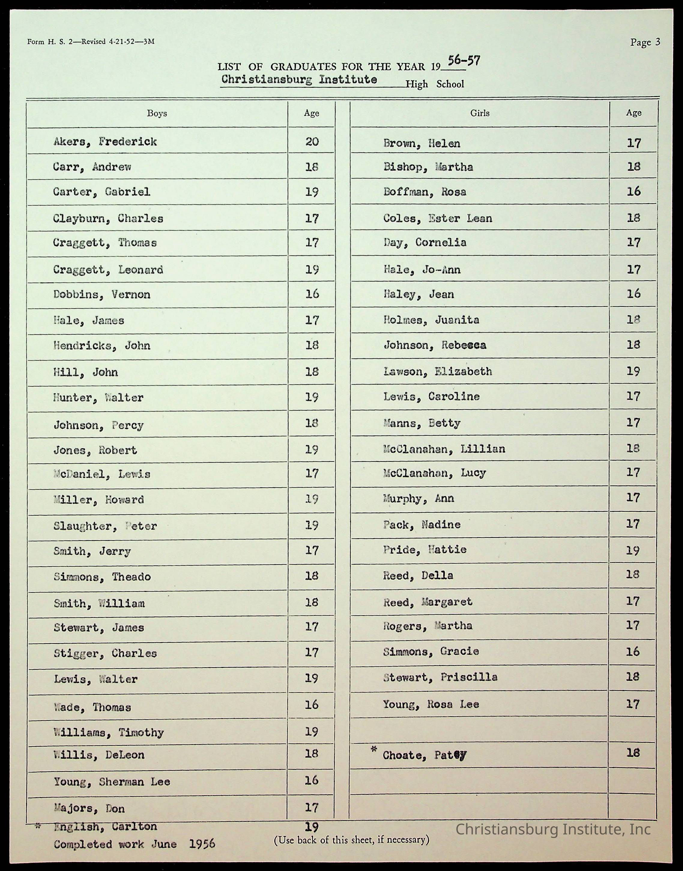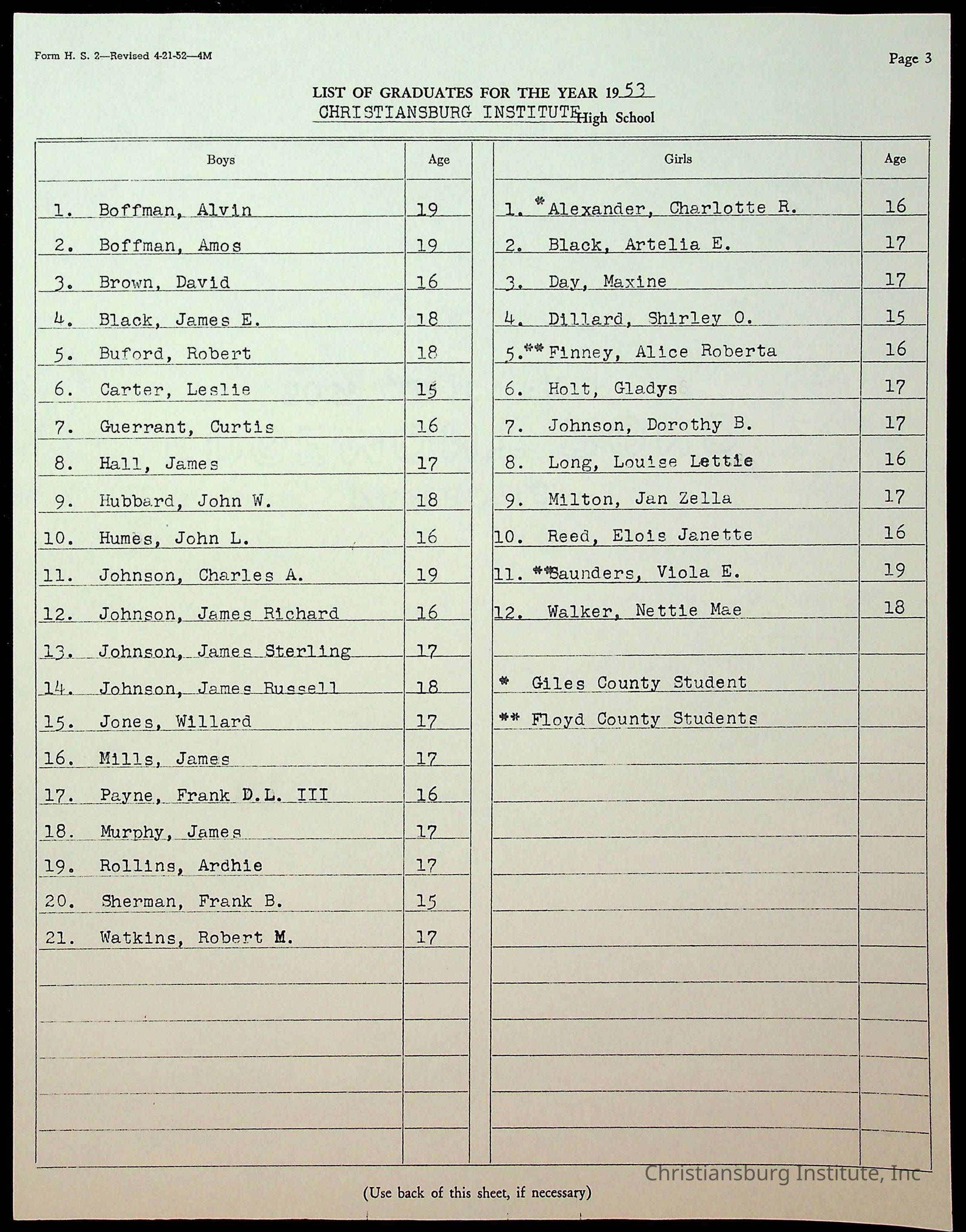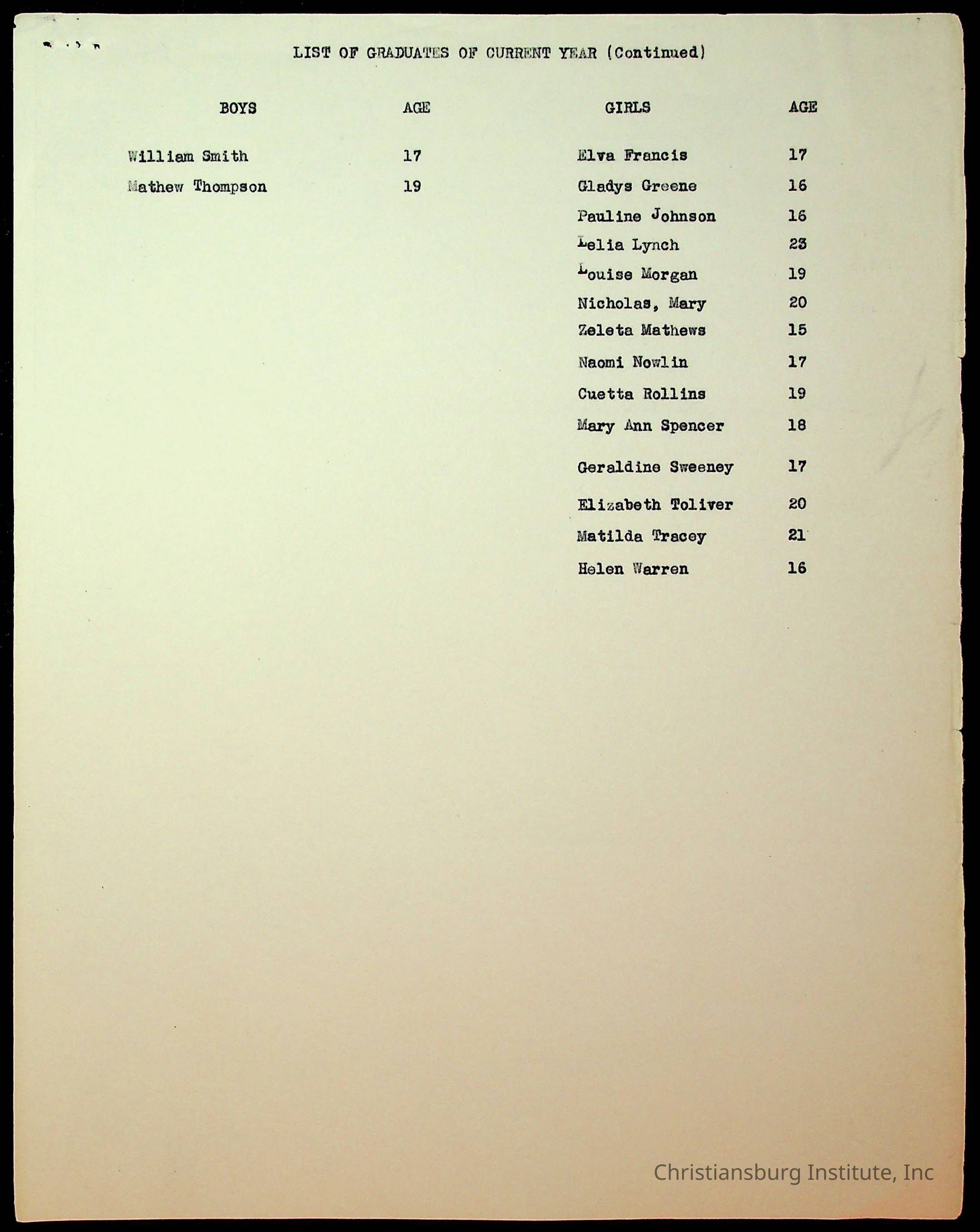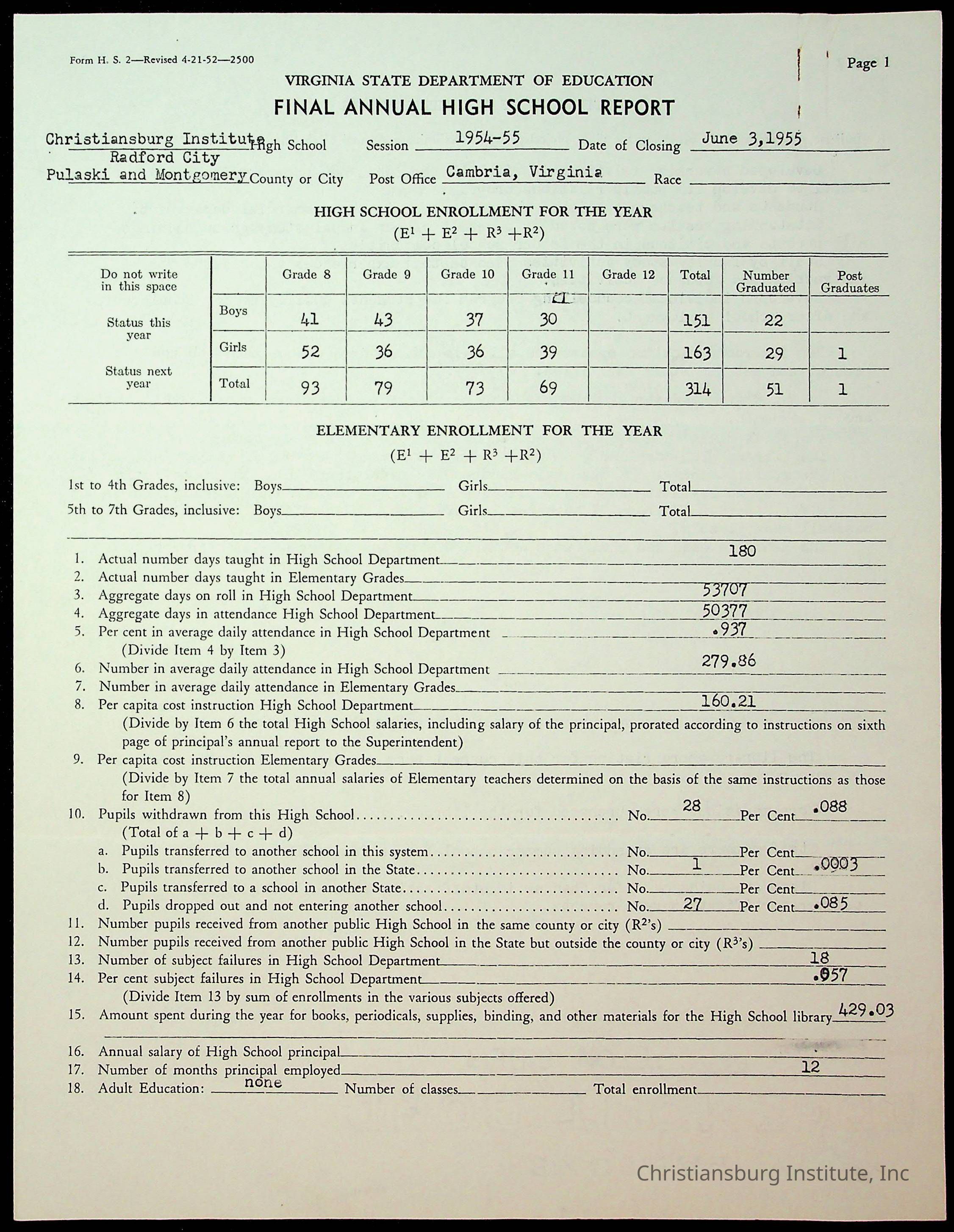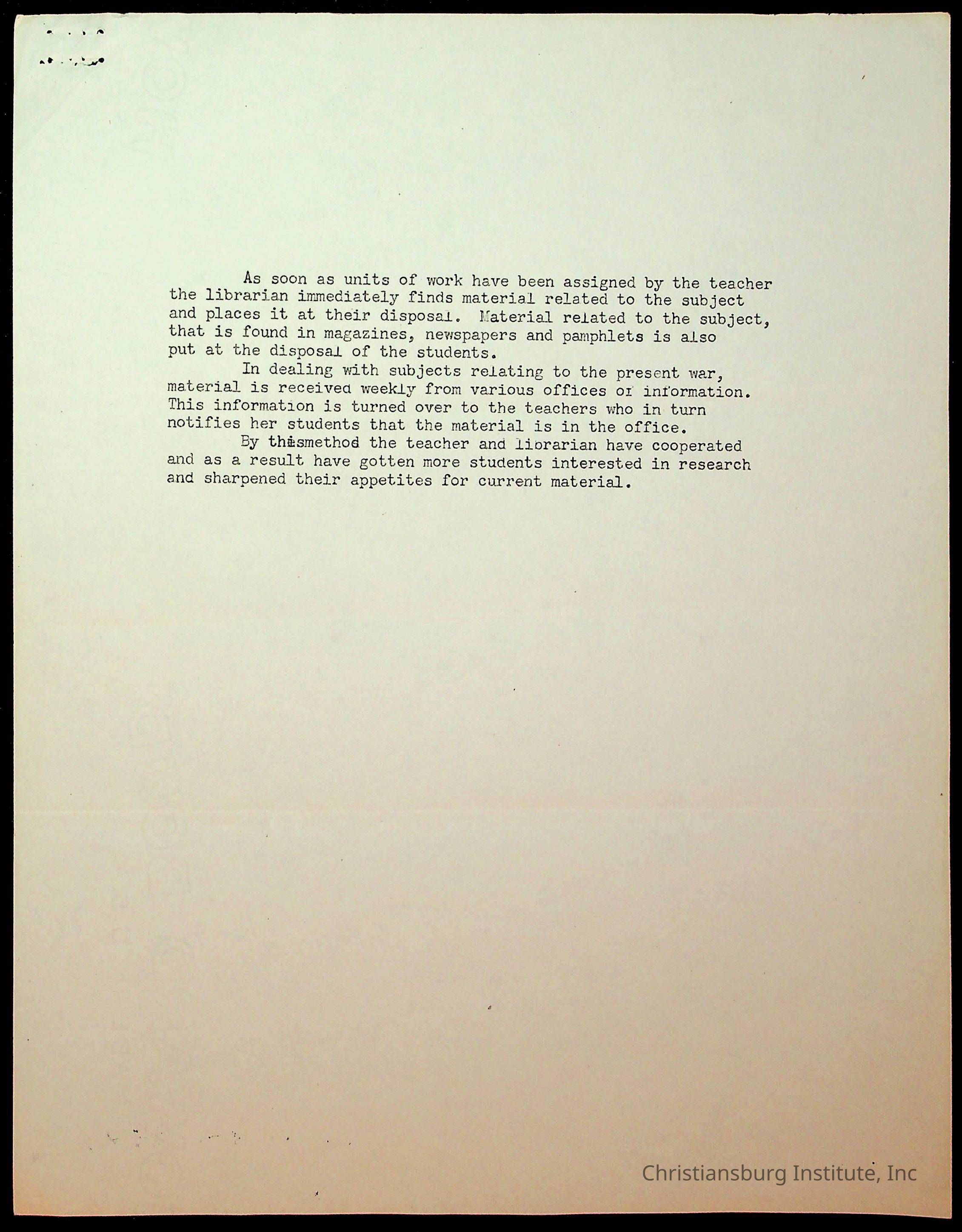 Copyright has been assigned to Christiansburg Institute Museum & Archives by Montgomery County Public Schools. For permission to publish materials created by the donor, contact CIMA@christiansburginstitute.com. Materials not created by Christiansburg Industrial Institute may still be under copyright.