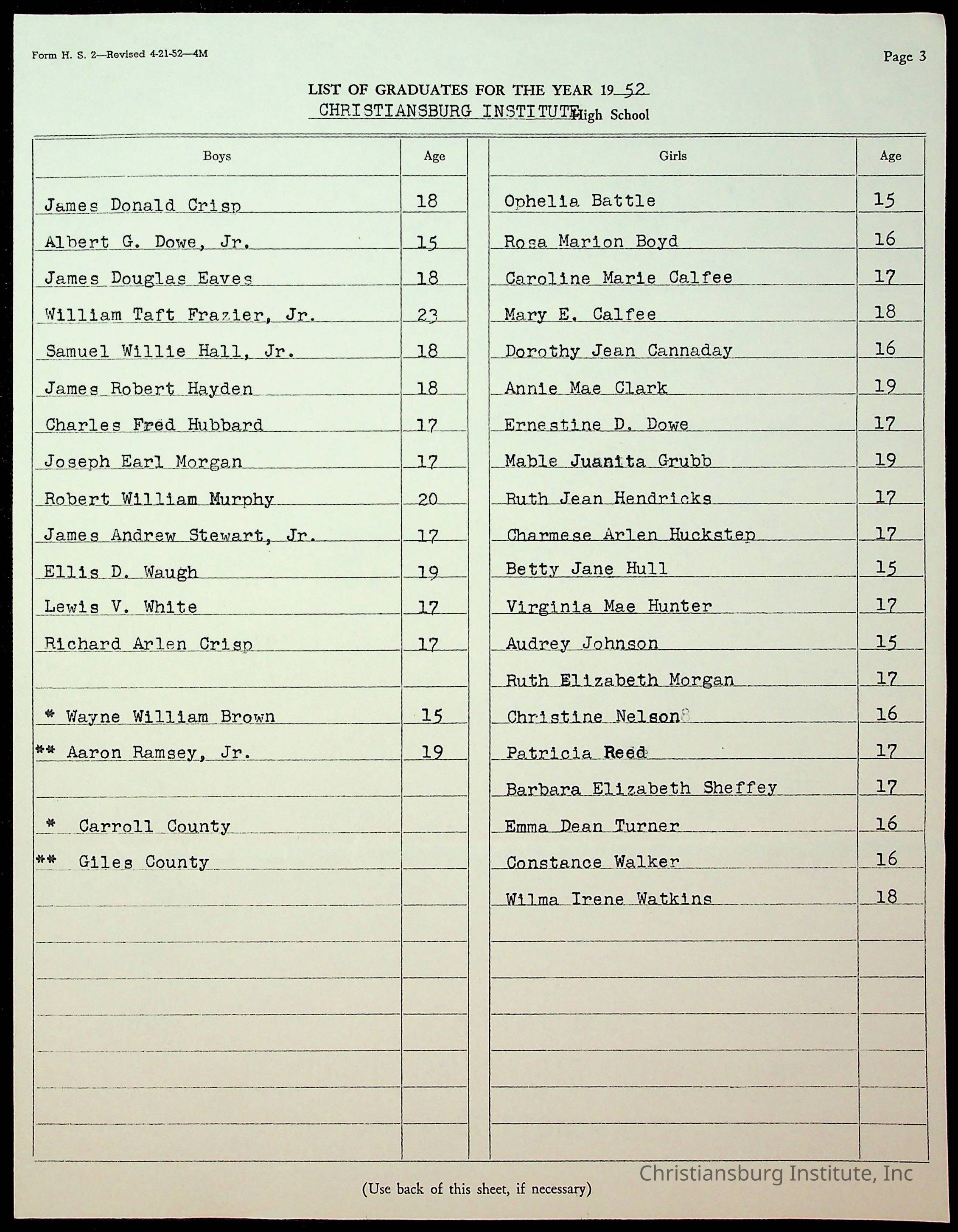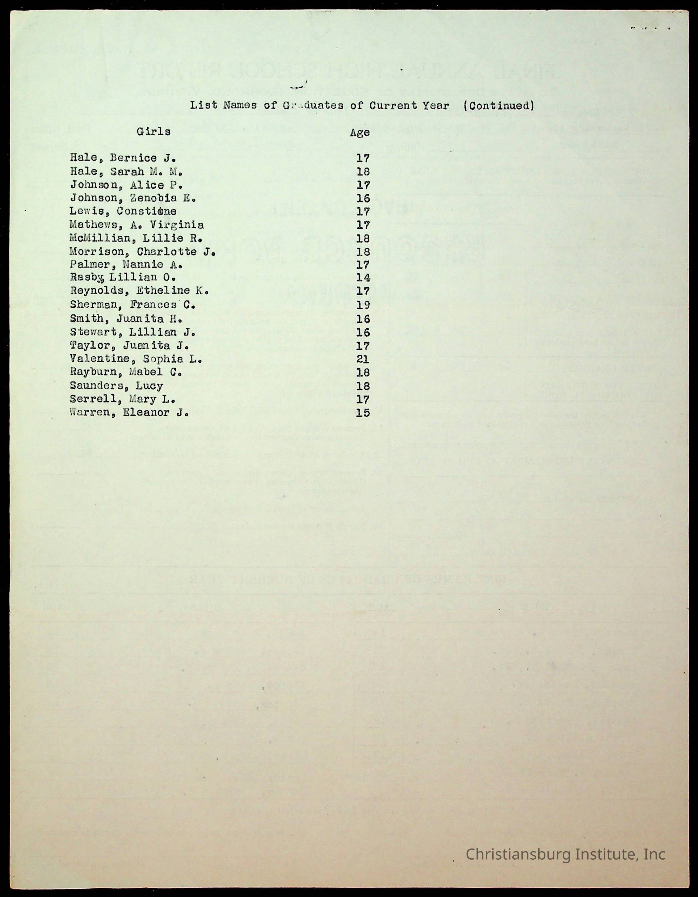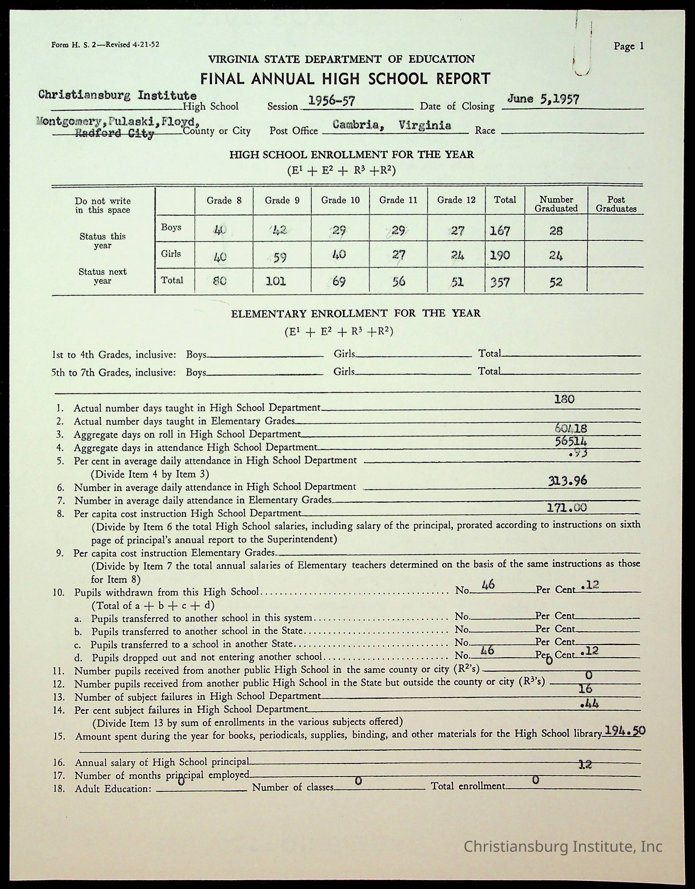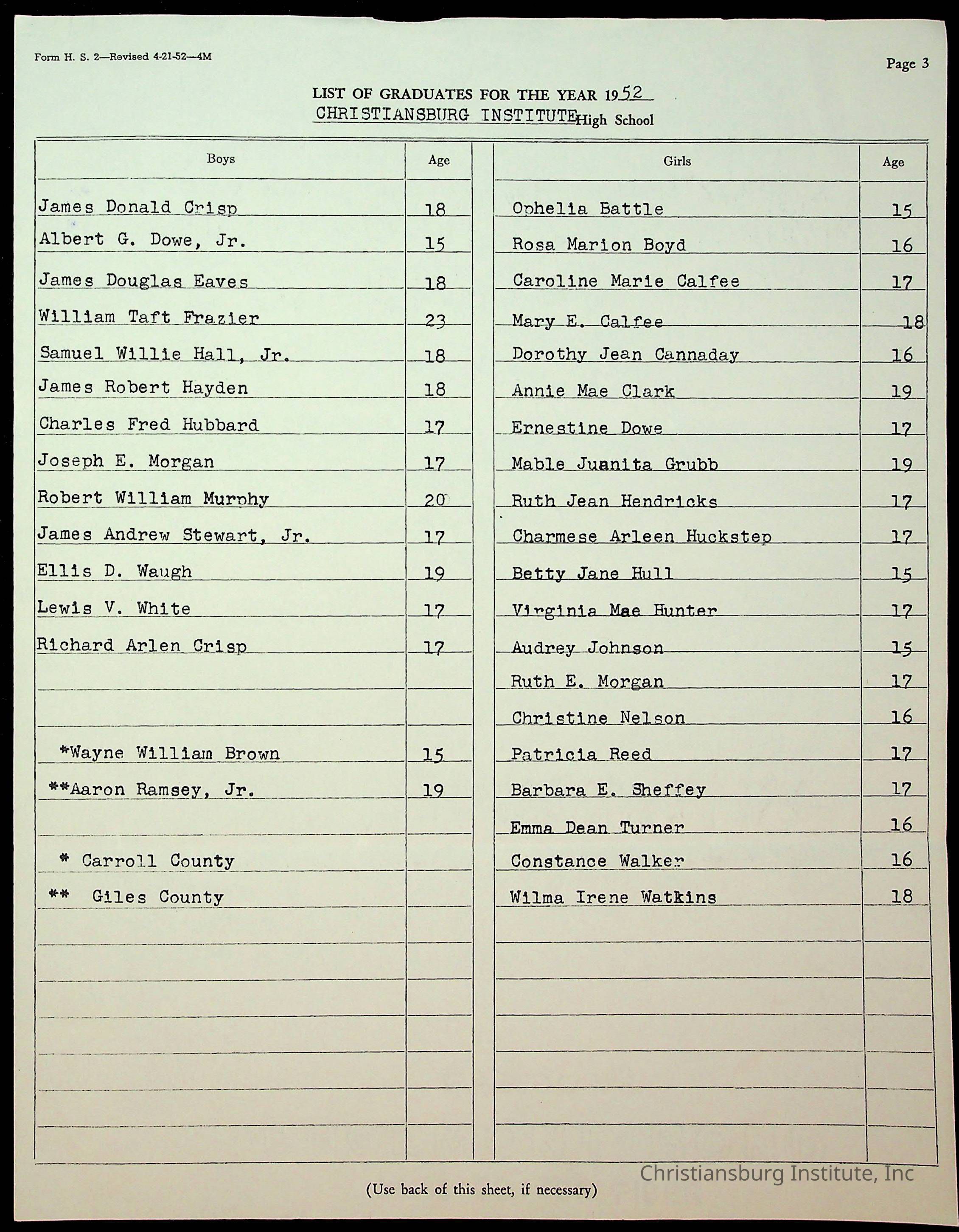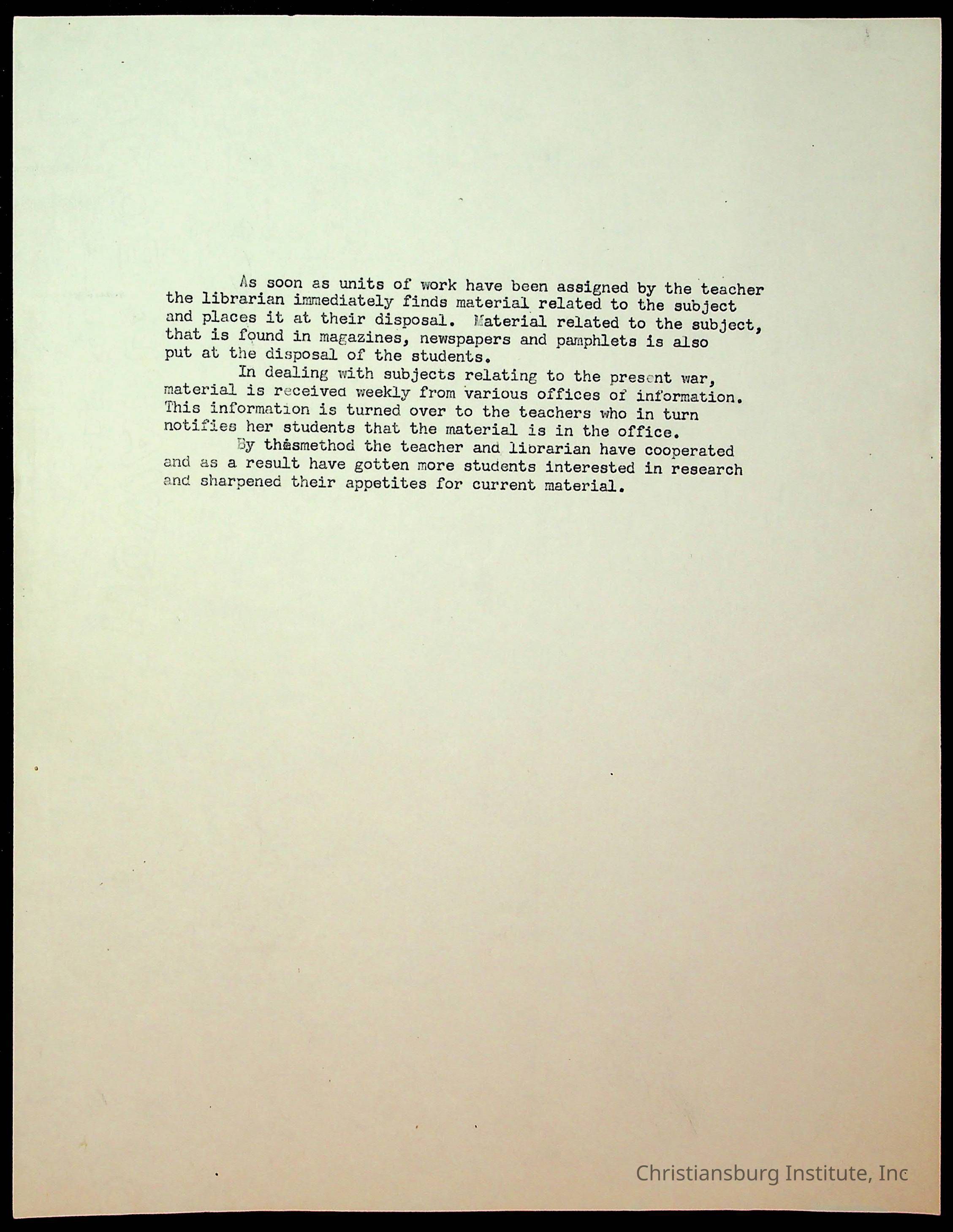 Copyright has been assigned to Christiansburg Institute Museum & Archives by Montgomery County Public Schools. For permission to publish materials created by the donor, contact CIMA@christiansburginstitute.com. Materials not created by Christiansburg Industrial Institute may still be under copyright.