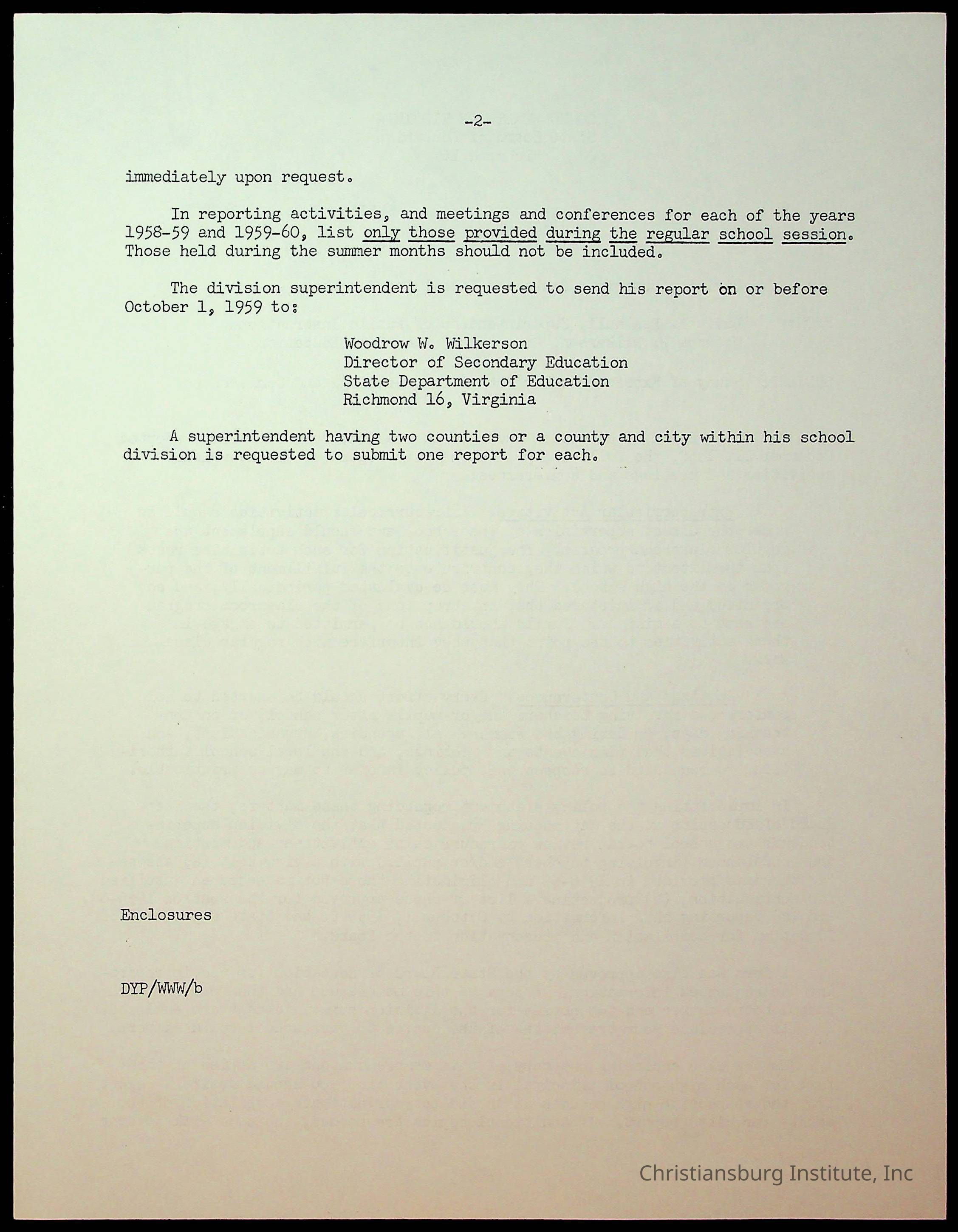The first folder of an archive of reports to the Commonwealth of Virginia Department of Education for Christiansburg Institute during the 1930s through the 1950s.