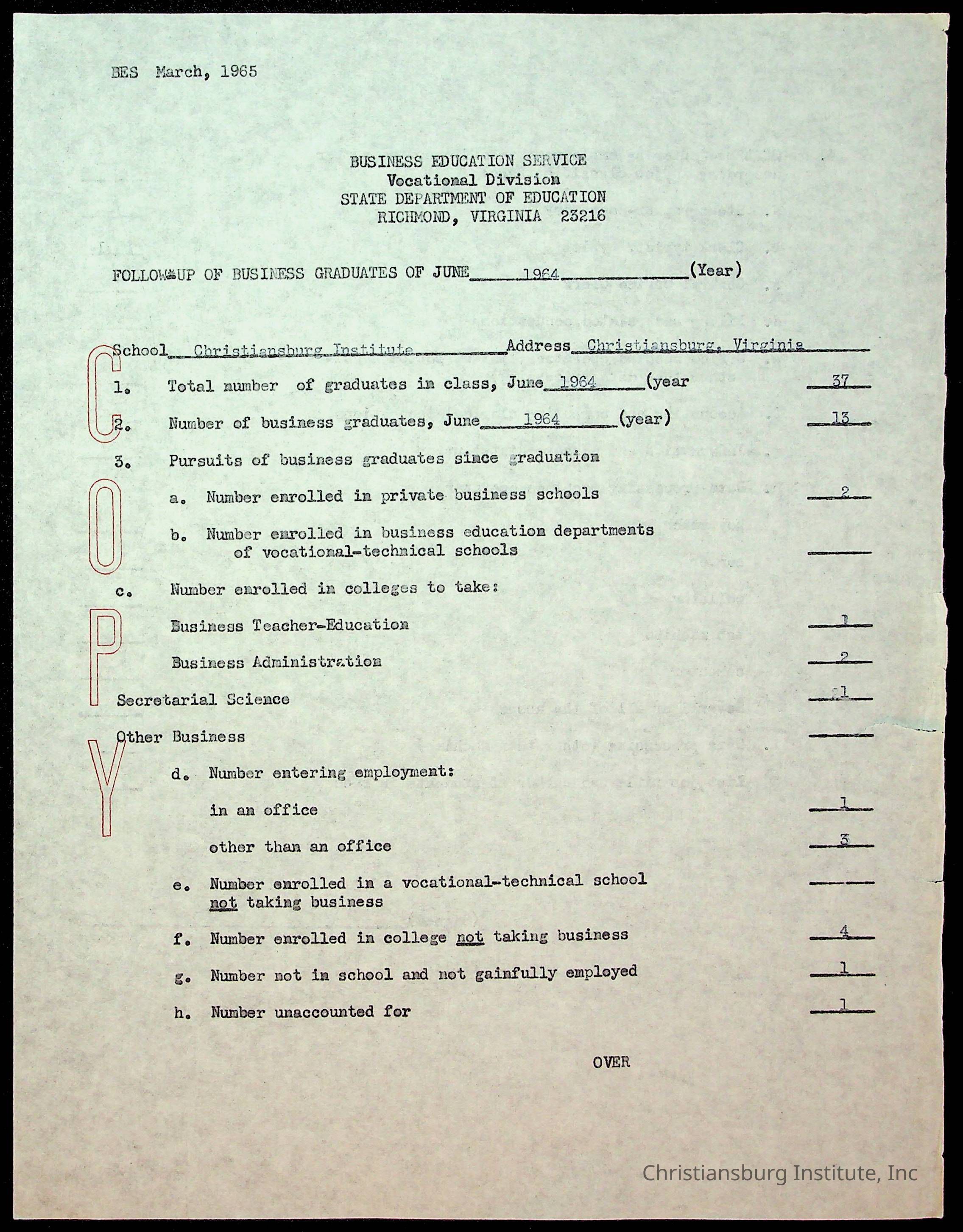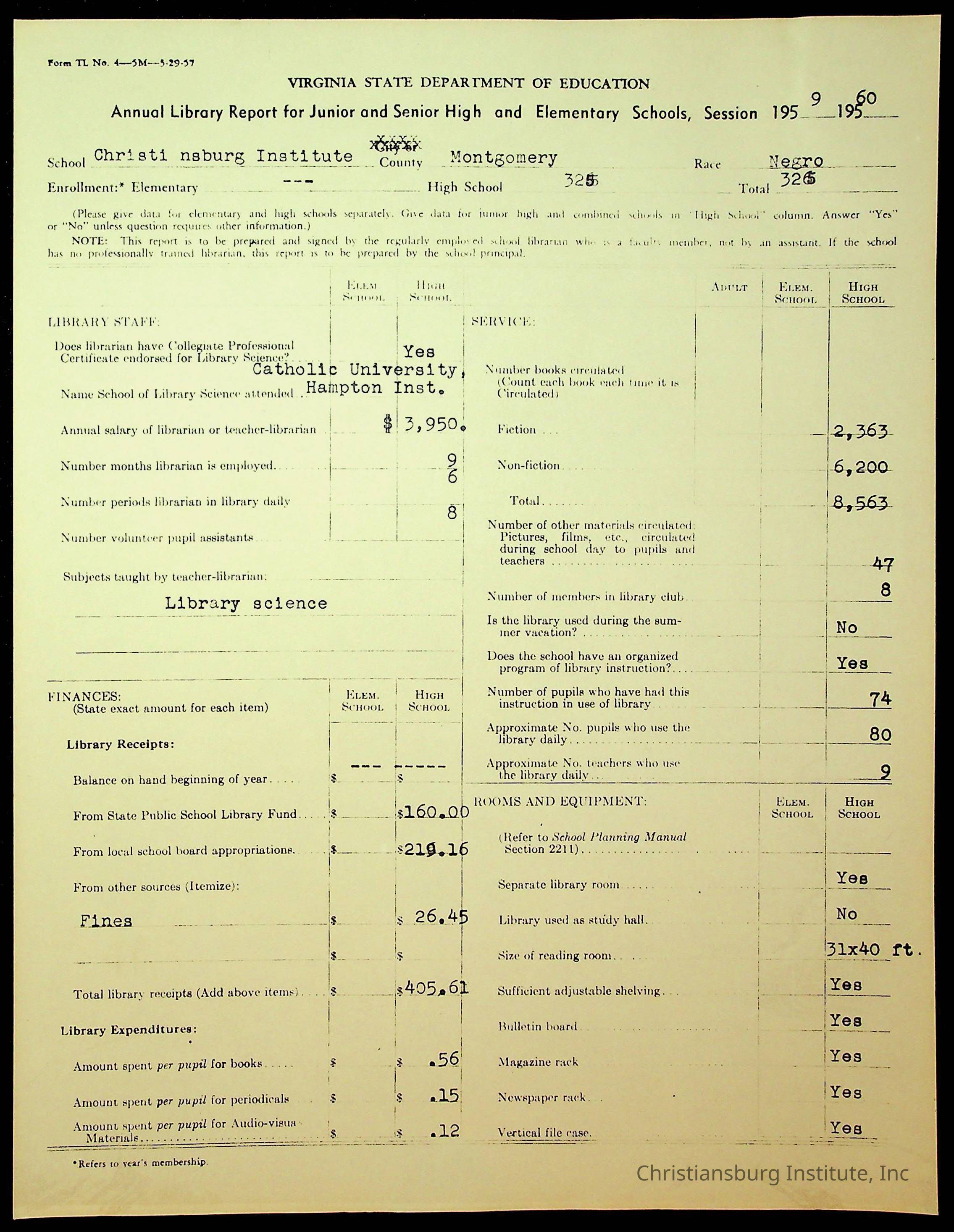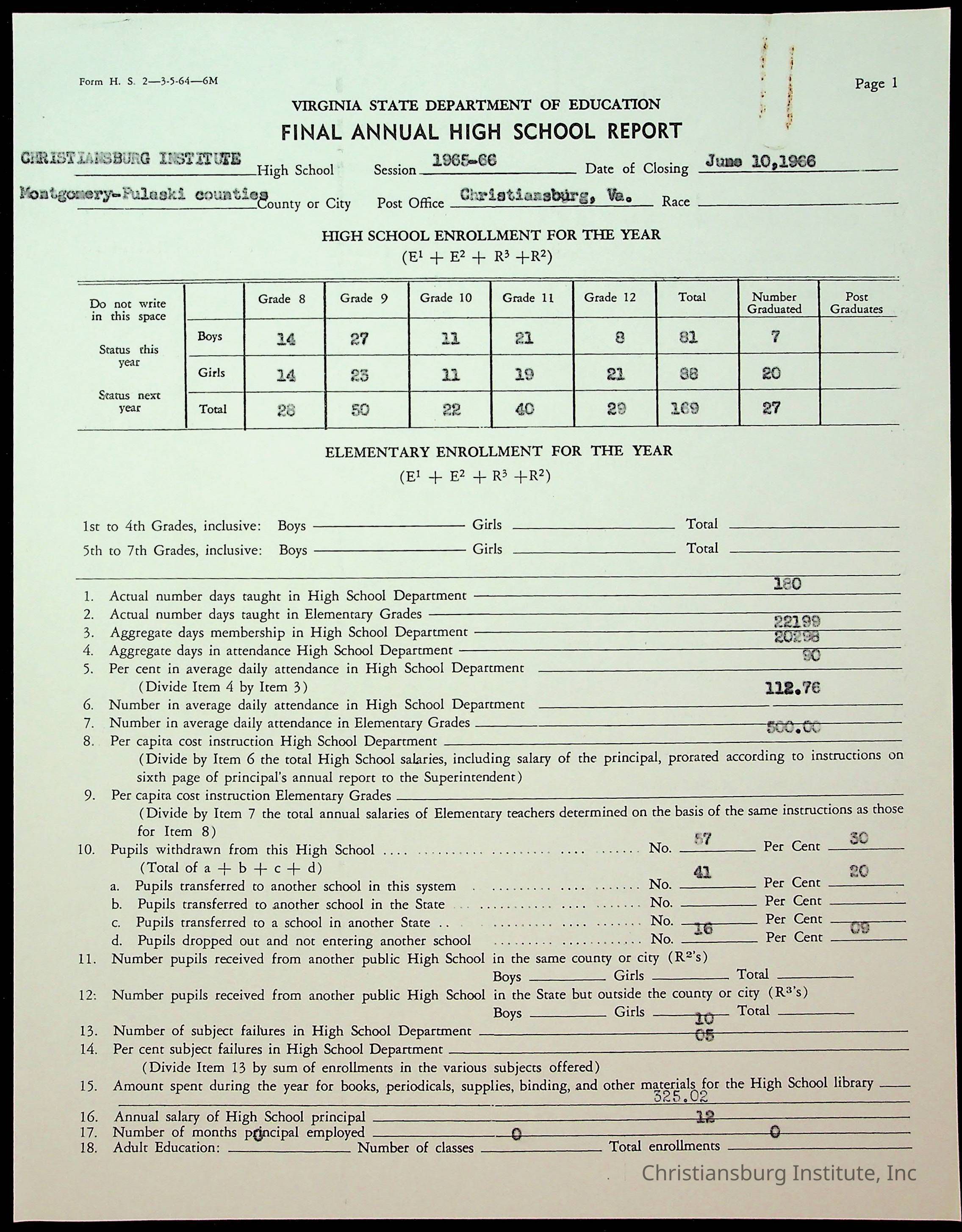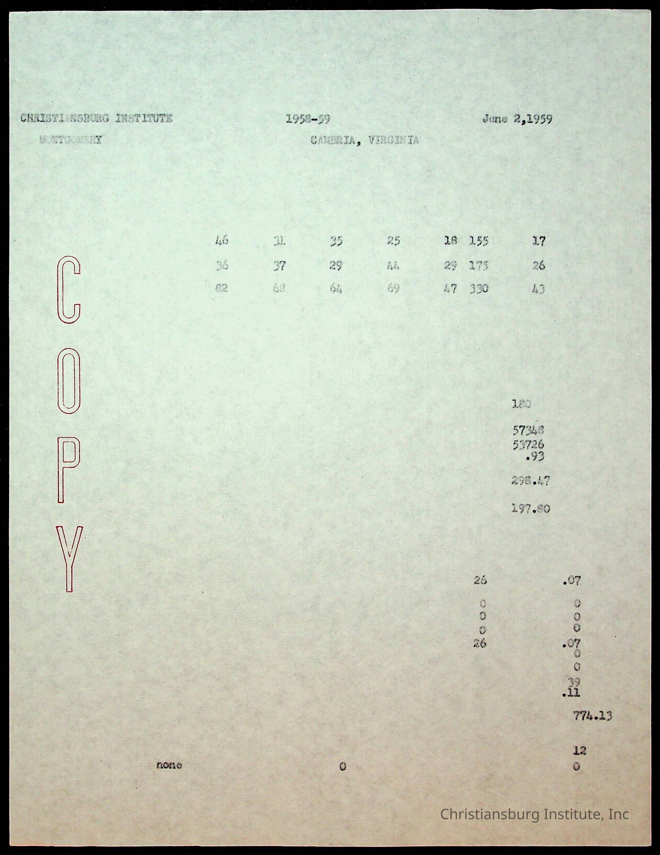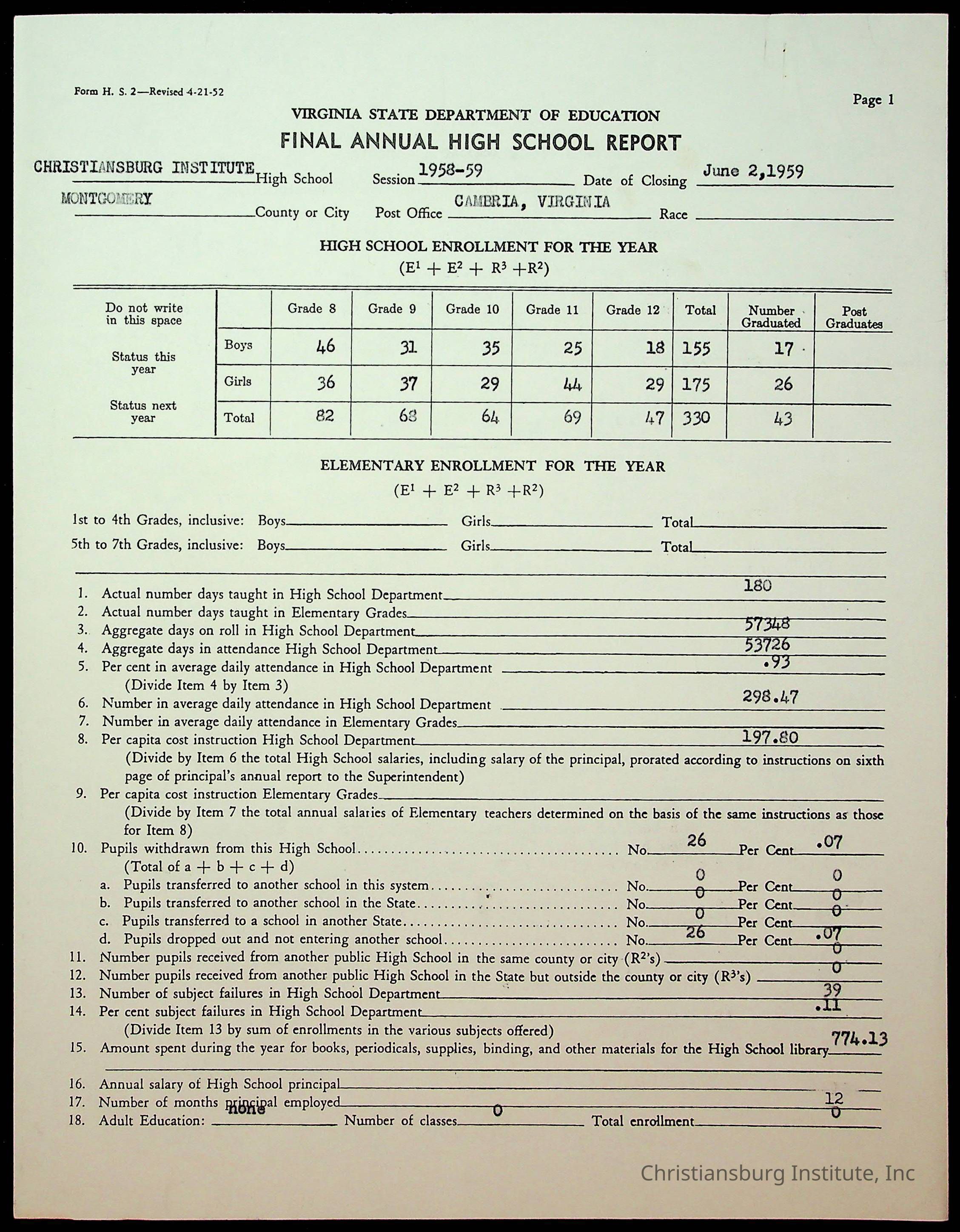 Copyright has been assigned to Christiansburg Institute Museum & Archives by Montgomery County Public Schools. For permission to publish materials created by the donor, contact CIMA@christiansburginstitute.com. Materials not created by Christiansburg Industrial Institute may still be under copyright.