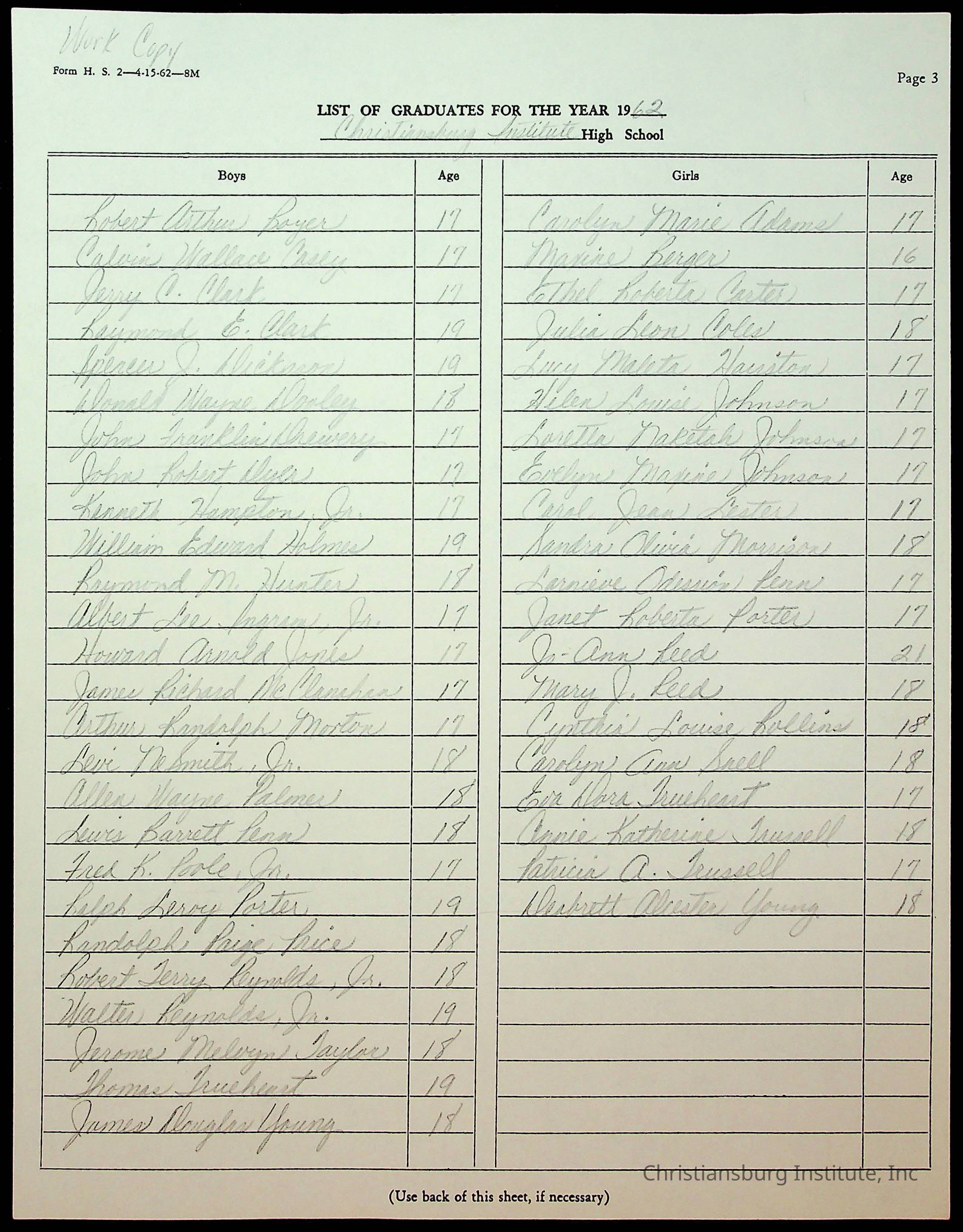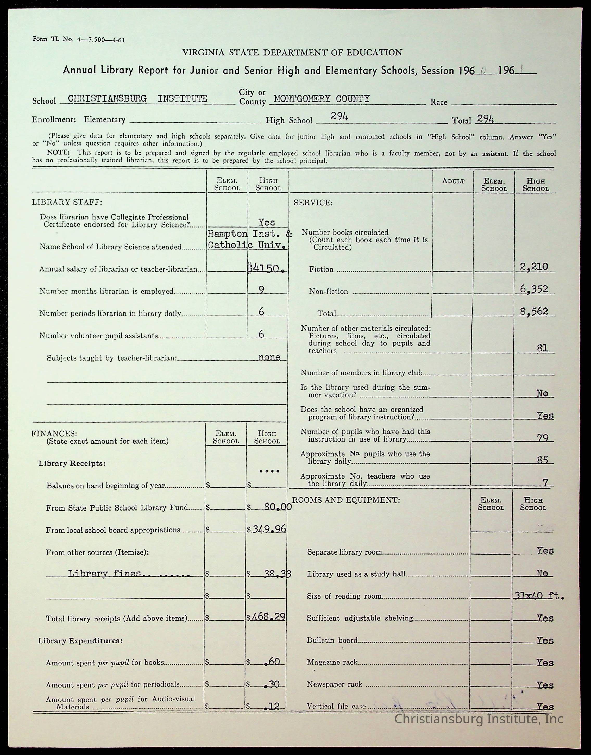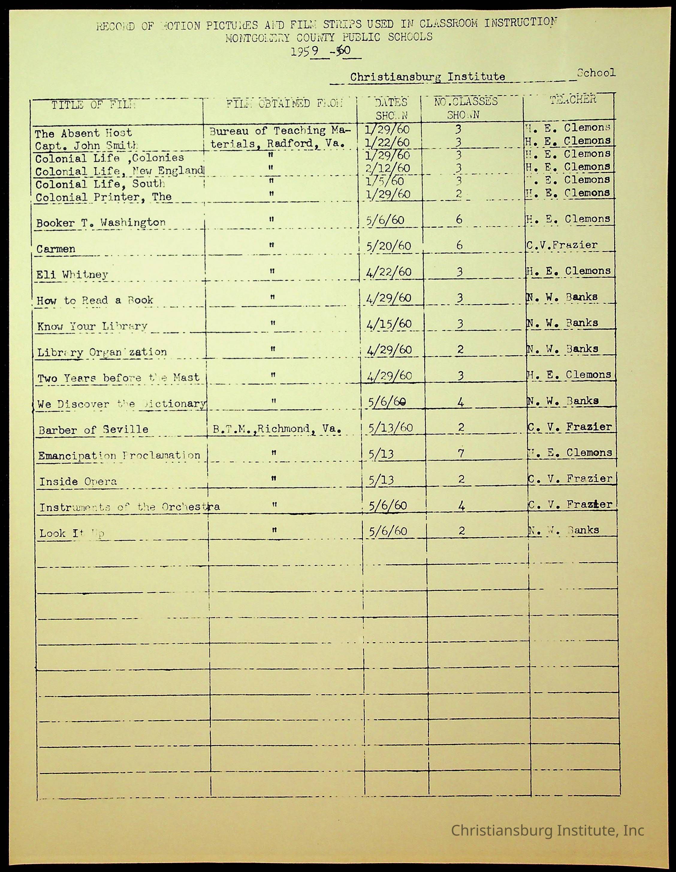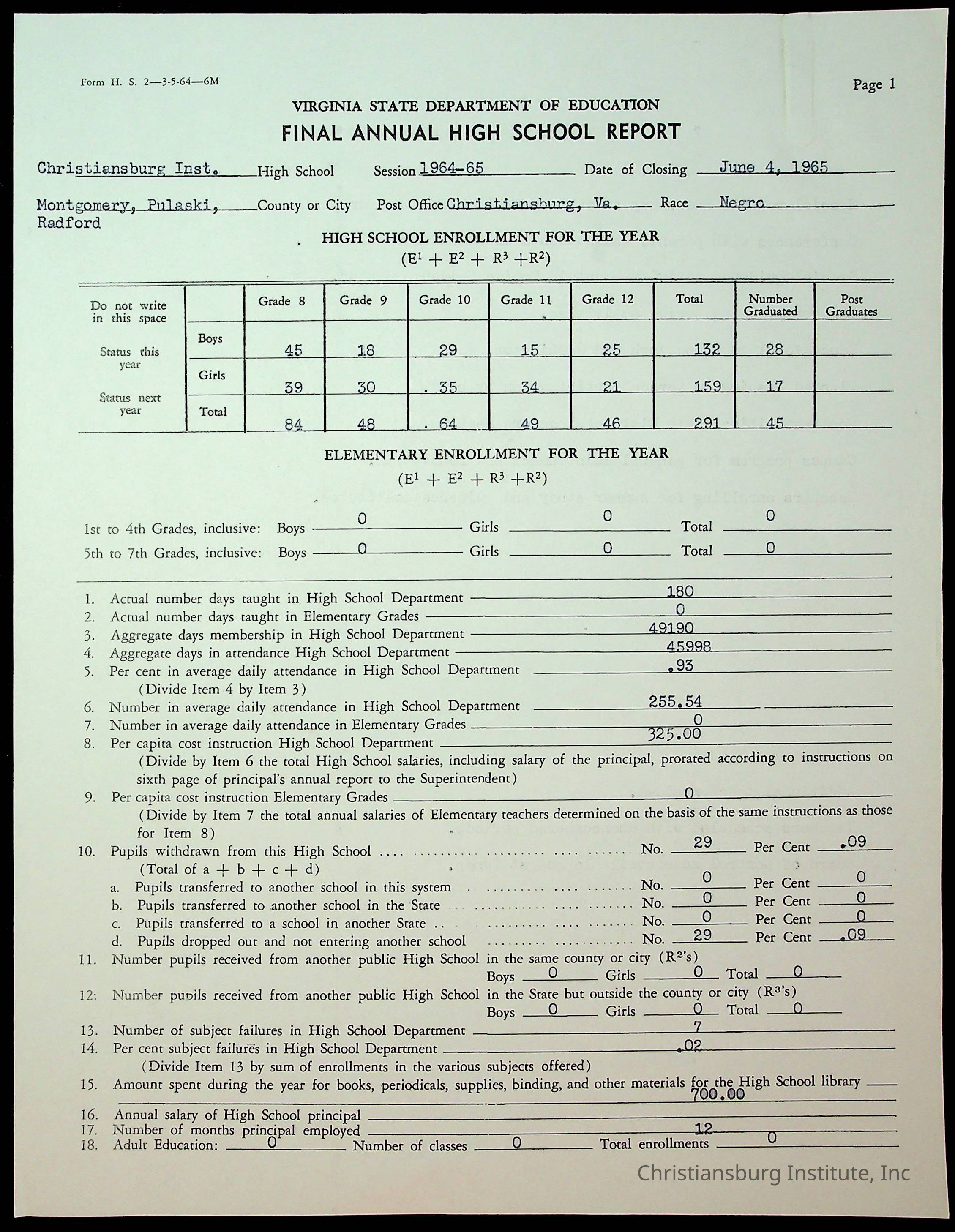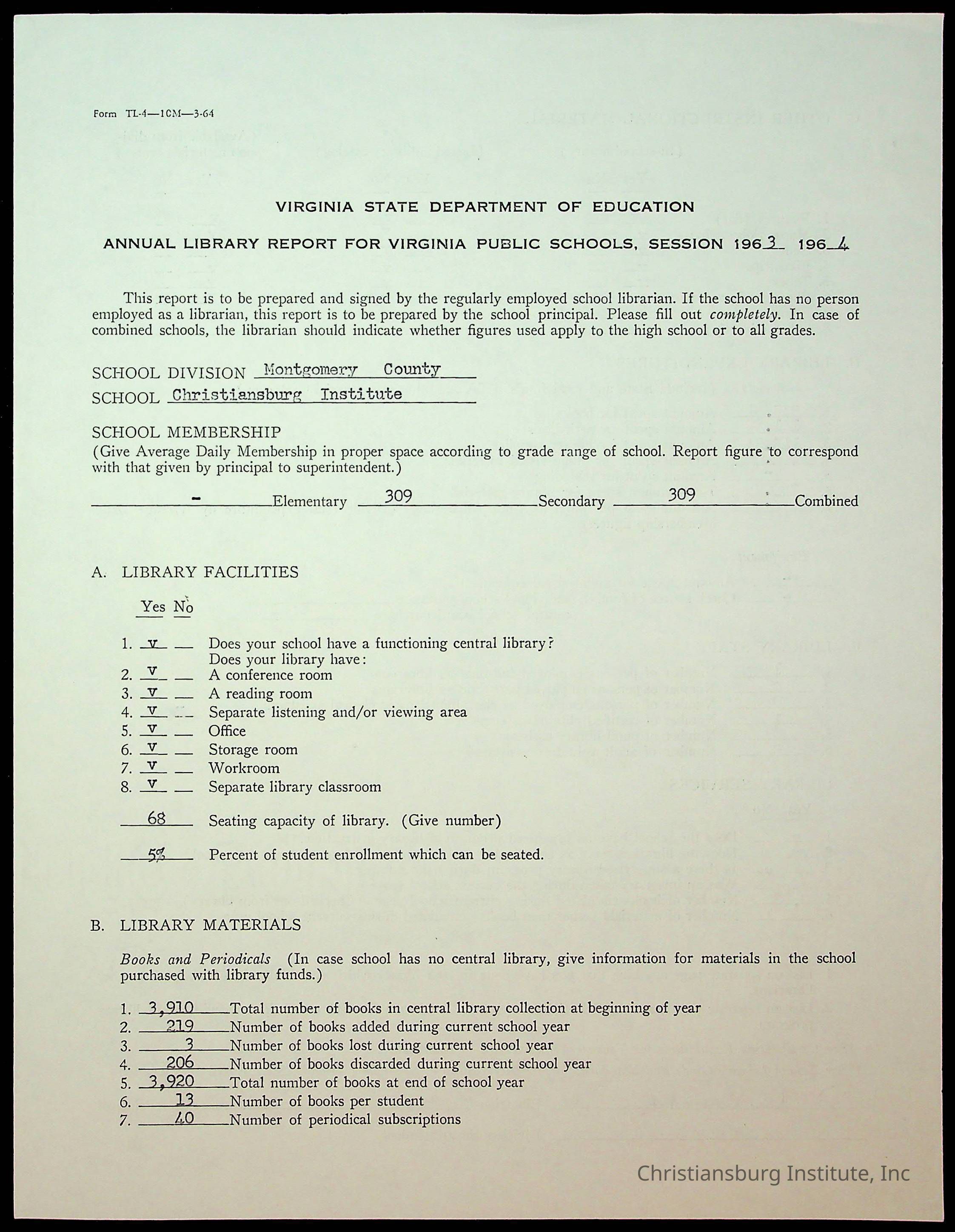 Copyright has been assigned to Christiansburg Institute Museum & Archives by Montgomery County Public Schools. For permission to publish materials created by the donor, contact CIMA@christiansburginstitute.com. Materials not created by Christiansburg Industrial Institute may still be under copyright.