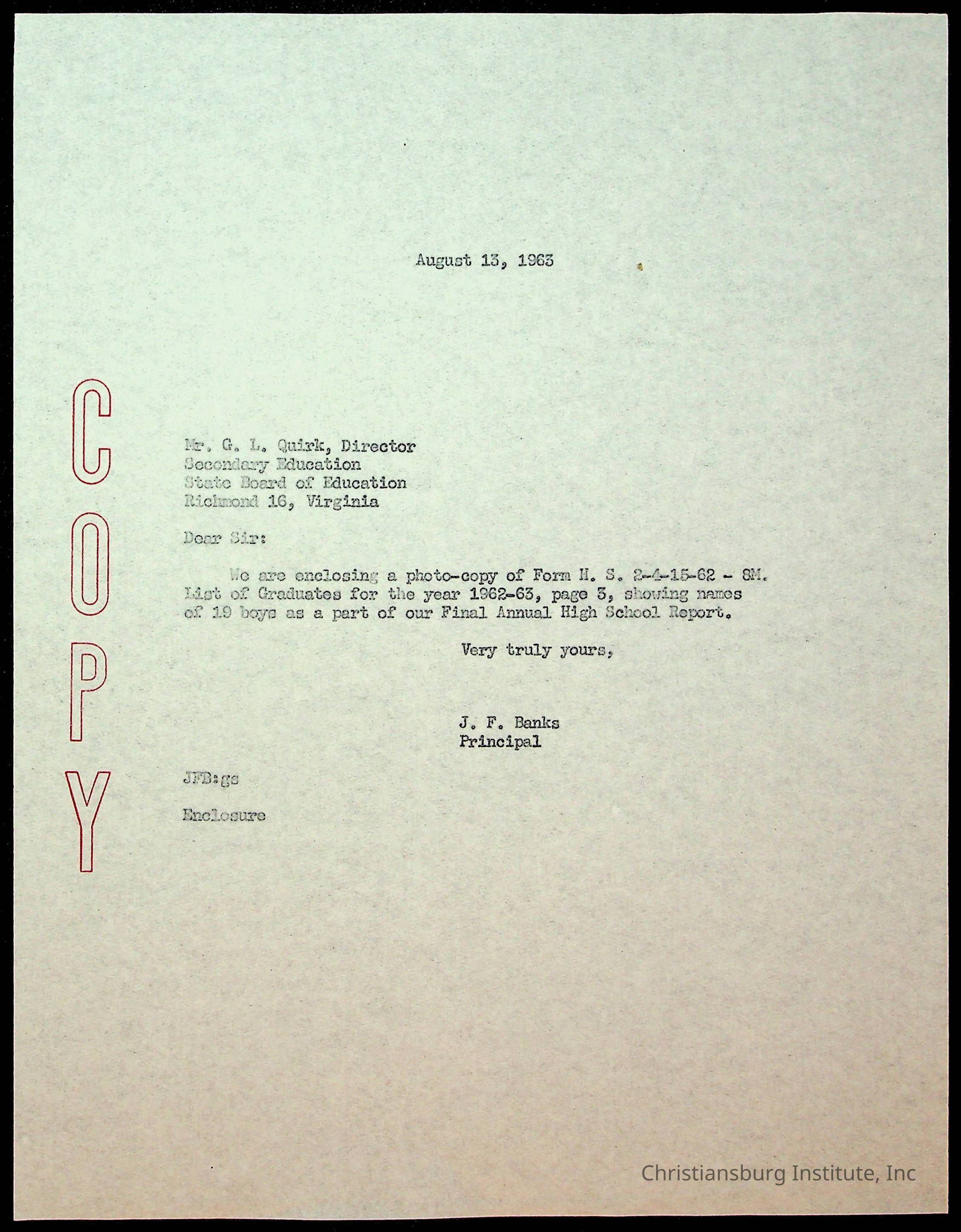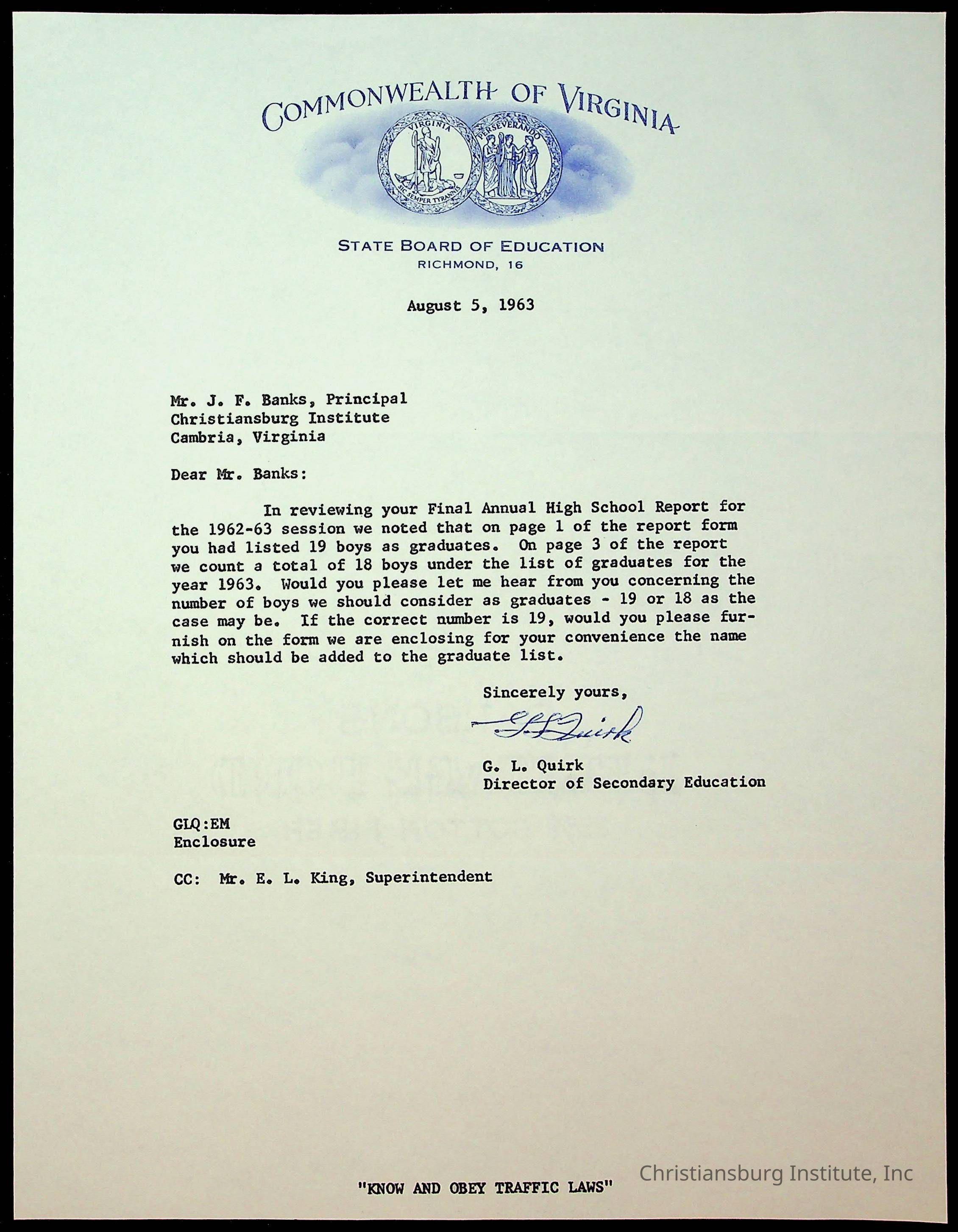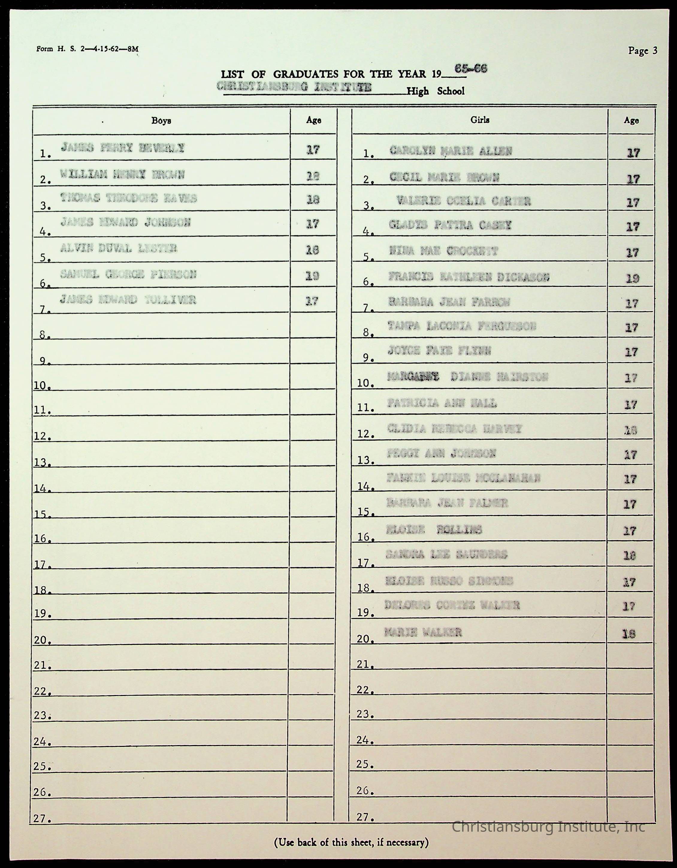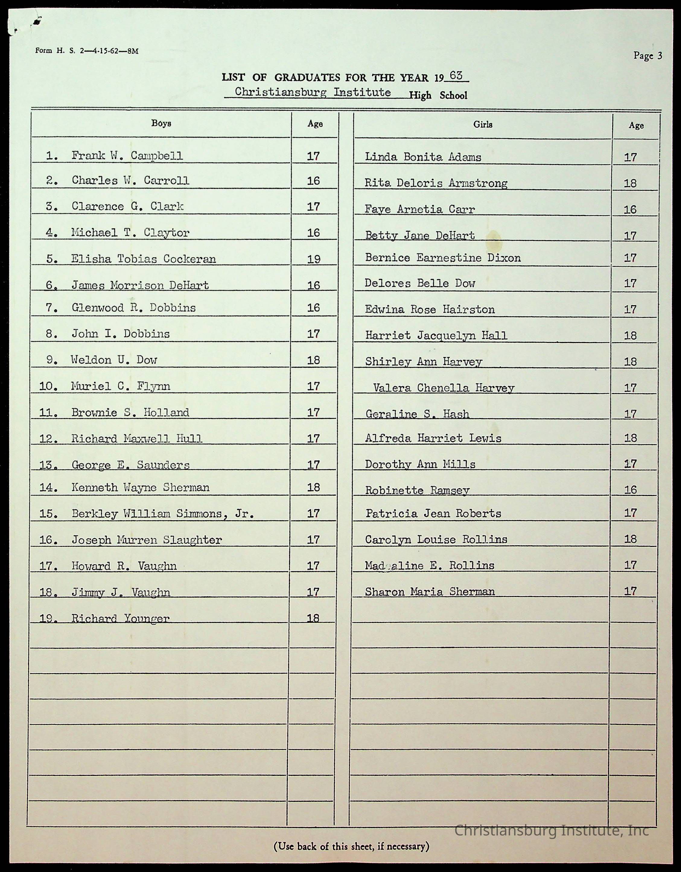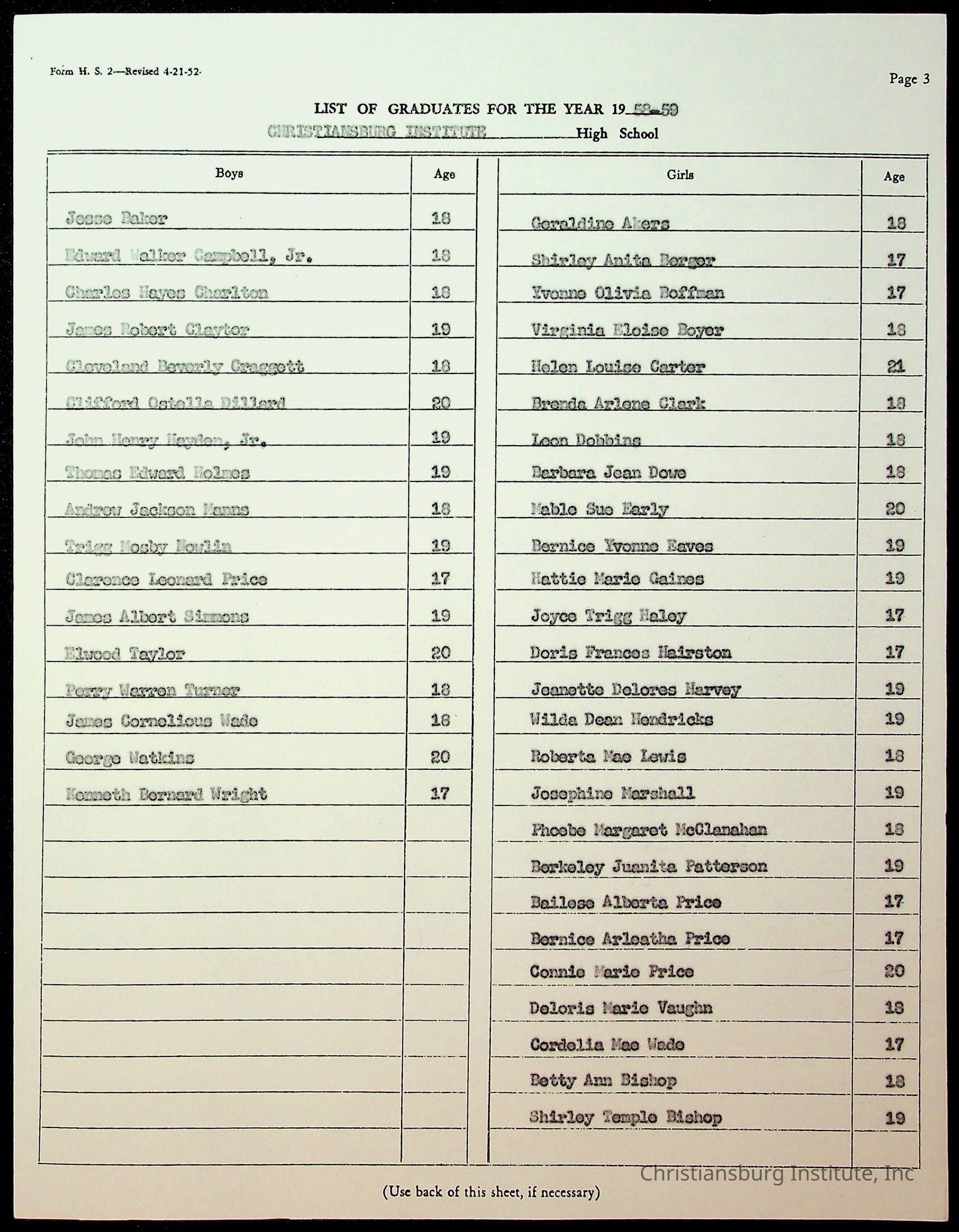 Copyright has been assigned to Christiansburg Institute Museum & Archives by Montgomery County Public Schools. For permission to publish materials created by the donor, contact CIMA@christiansburginstitute.com. Materials not created by Christiansburg Industrial Institute may still be under copyright.
