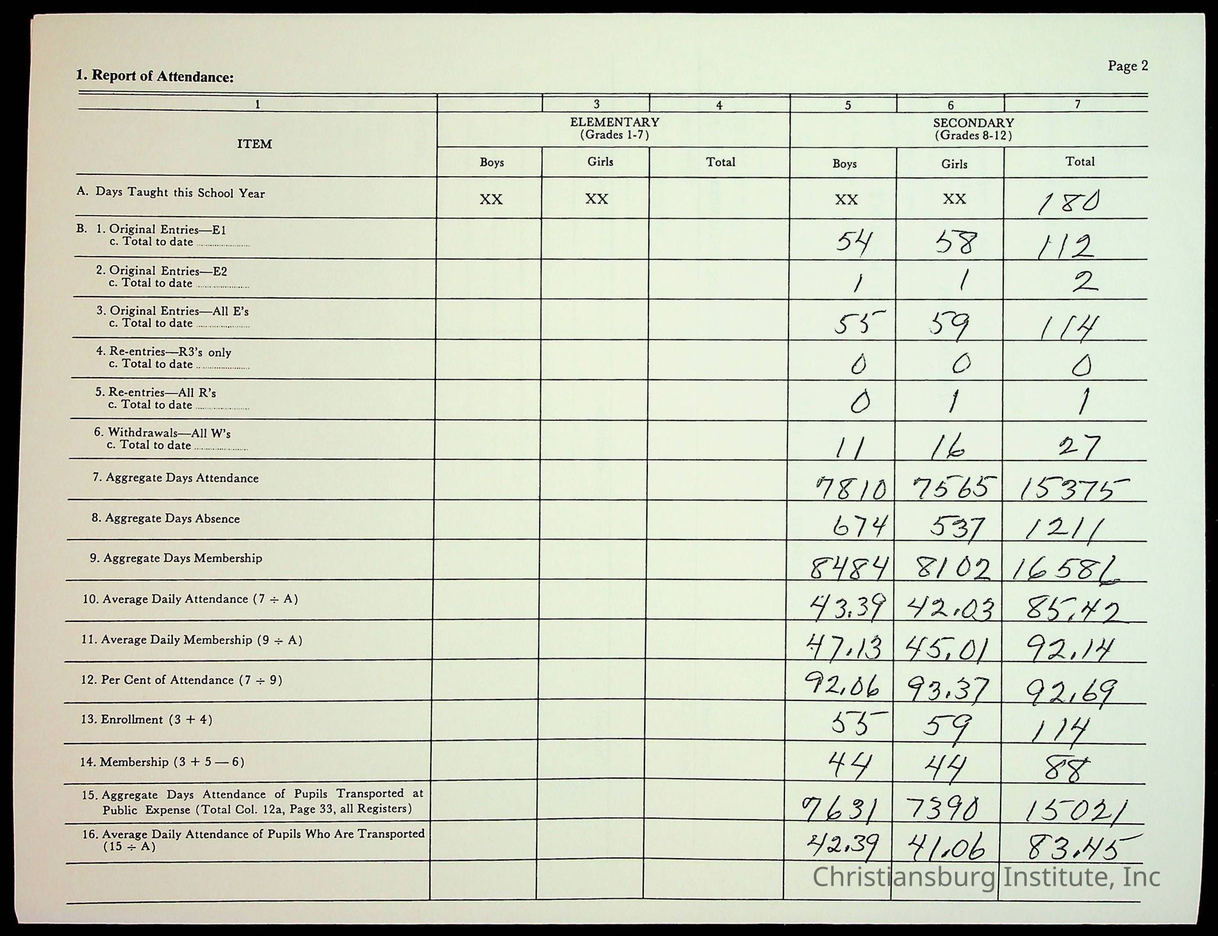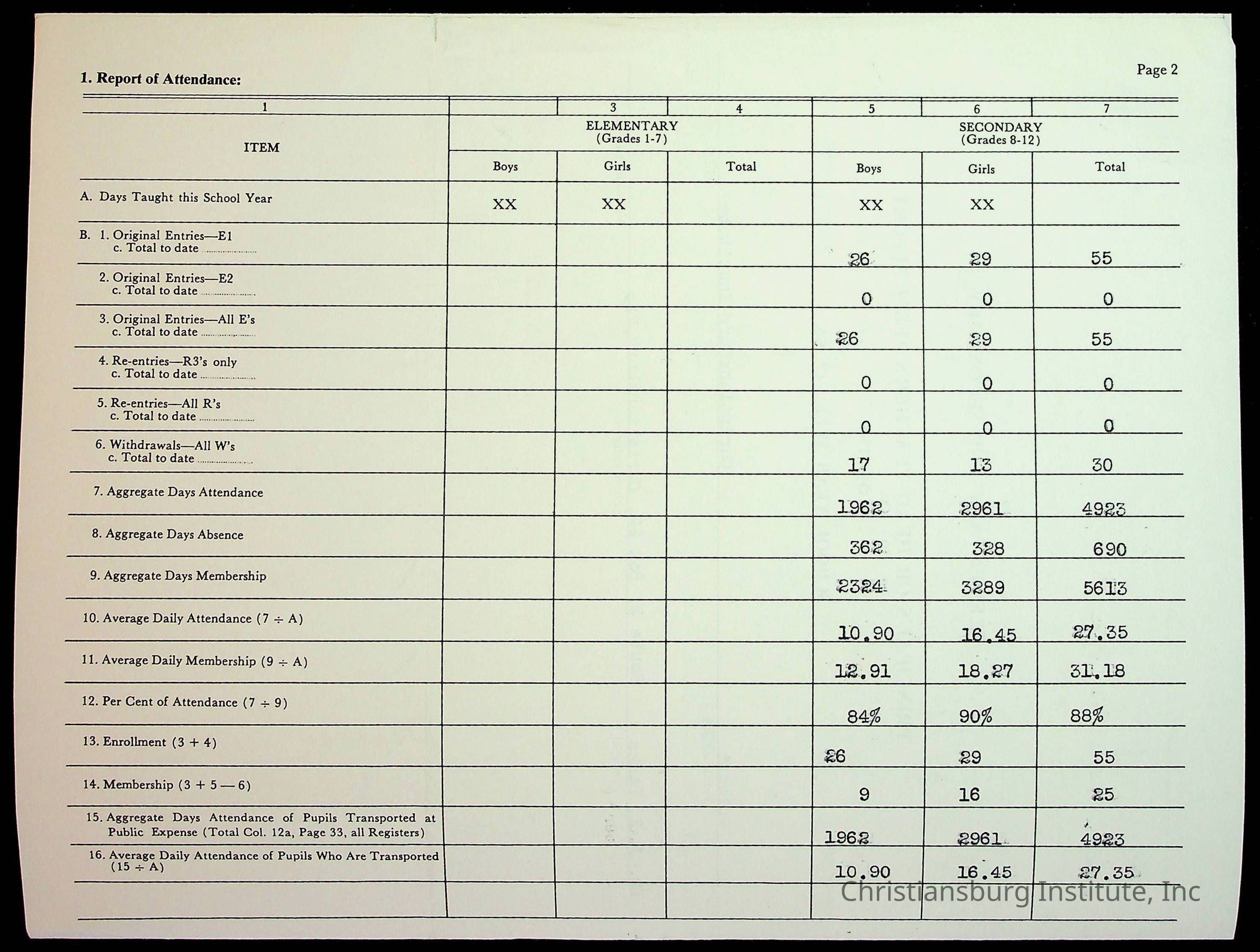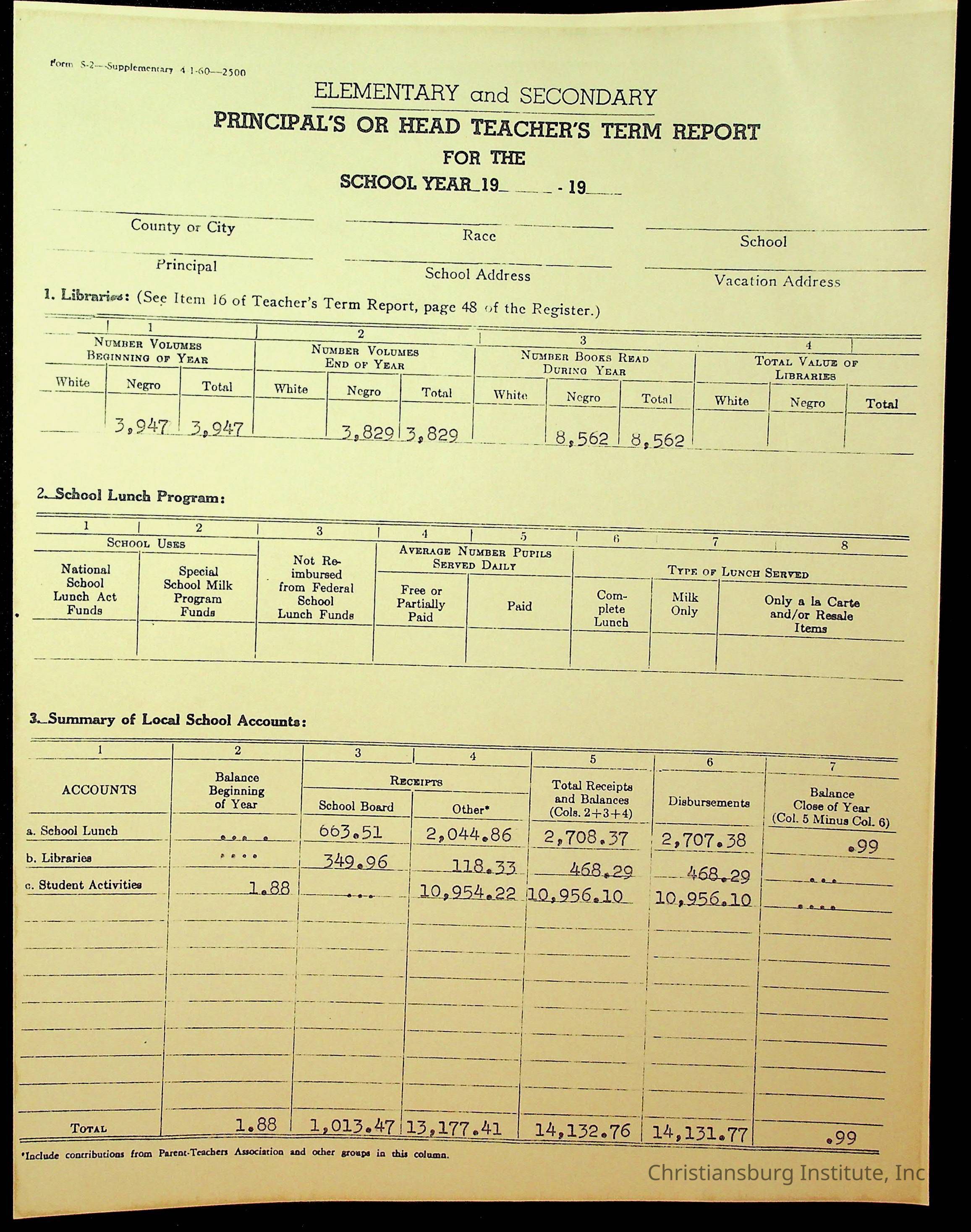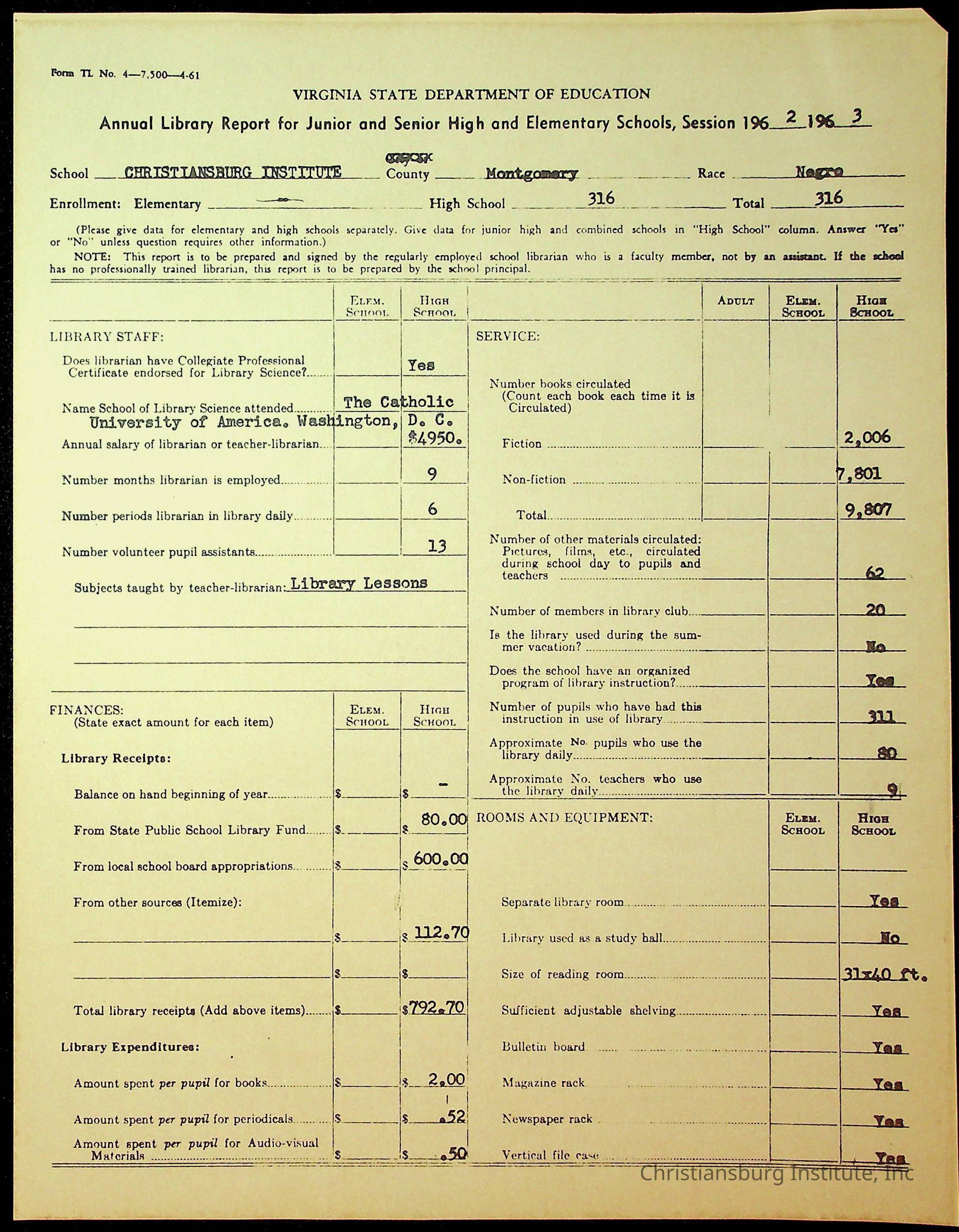 The second folder of an archive of reports to the Commonwealth of Virginia Department of Education for Christiansburg Institute from 1959 through 1966 to when Christiansburg Institute closed.