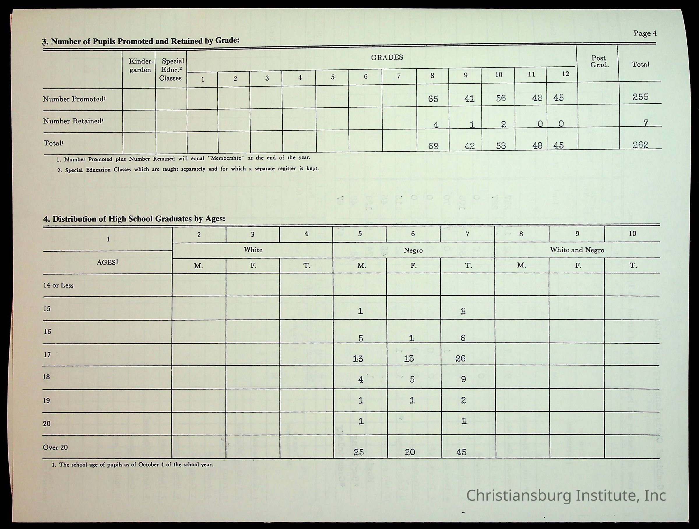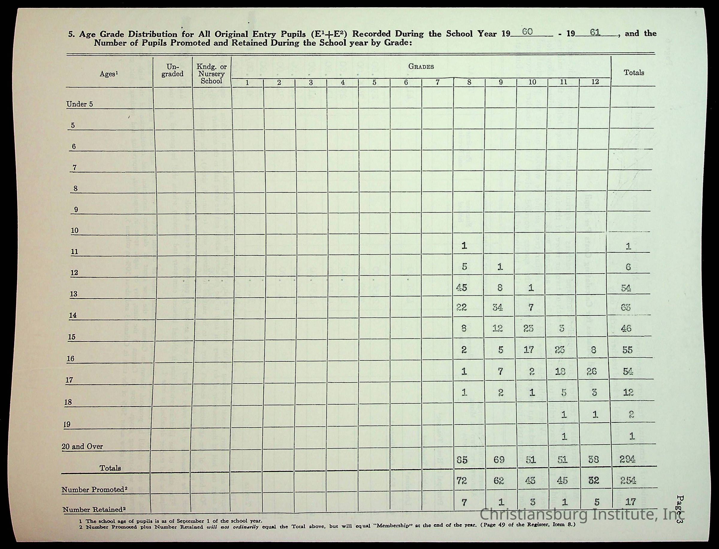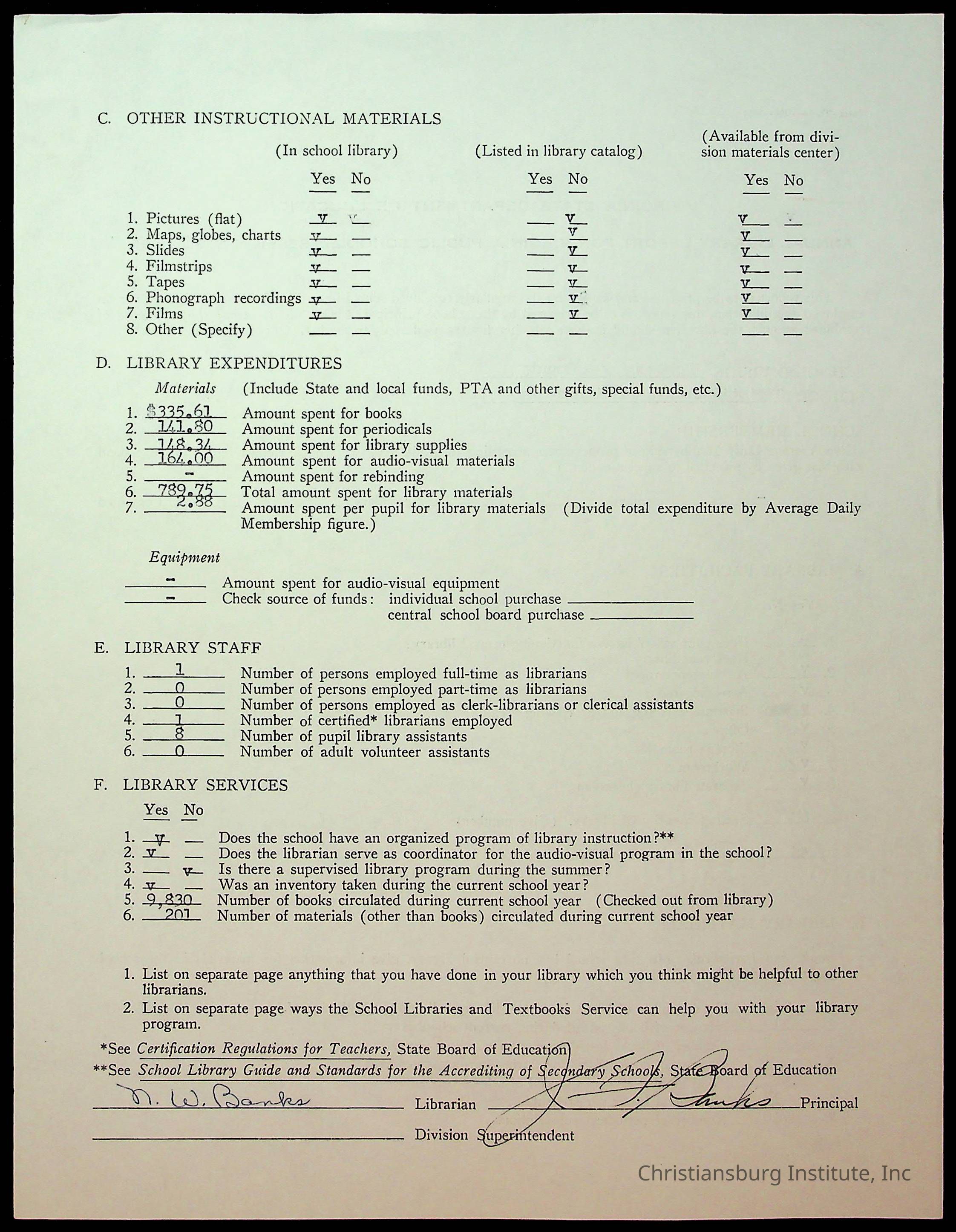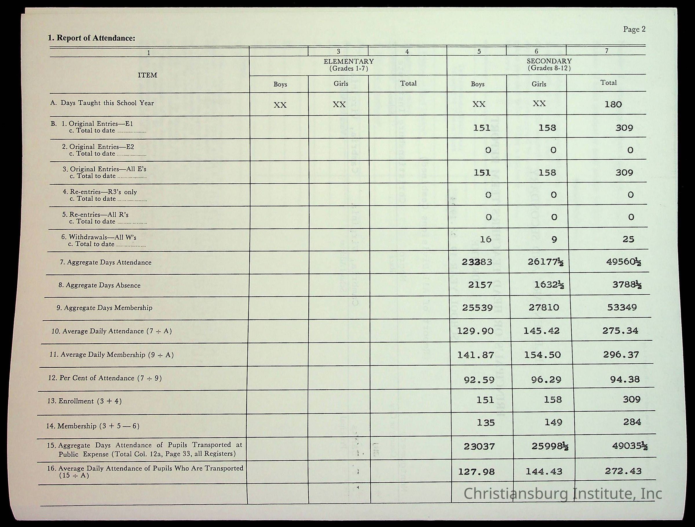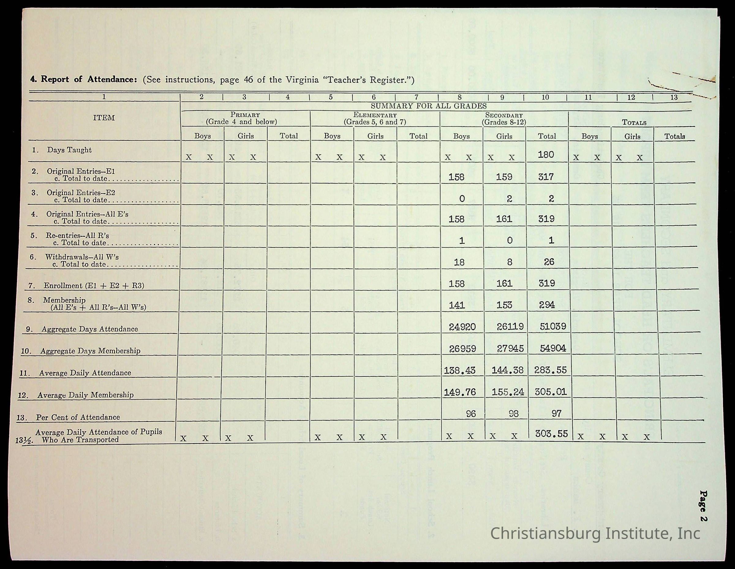 The second folder of an archive of reports to the Commonwealth of Virginia Department of Education for Christiansburg Institute from 1959 through 1966 to when Christiansburg Institute closed.
