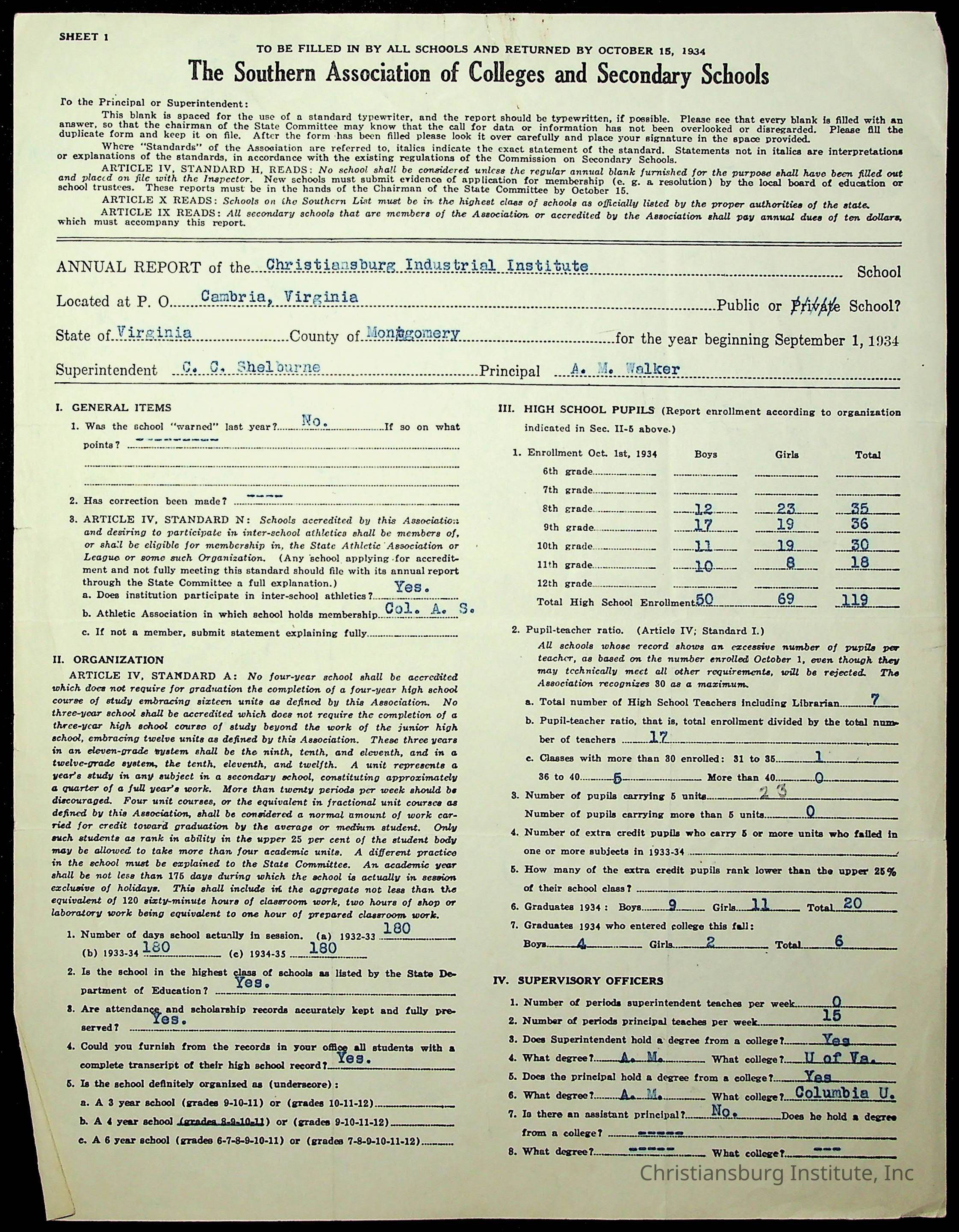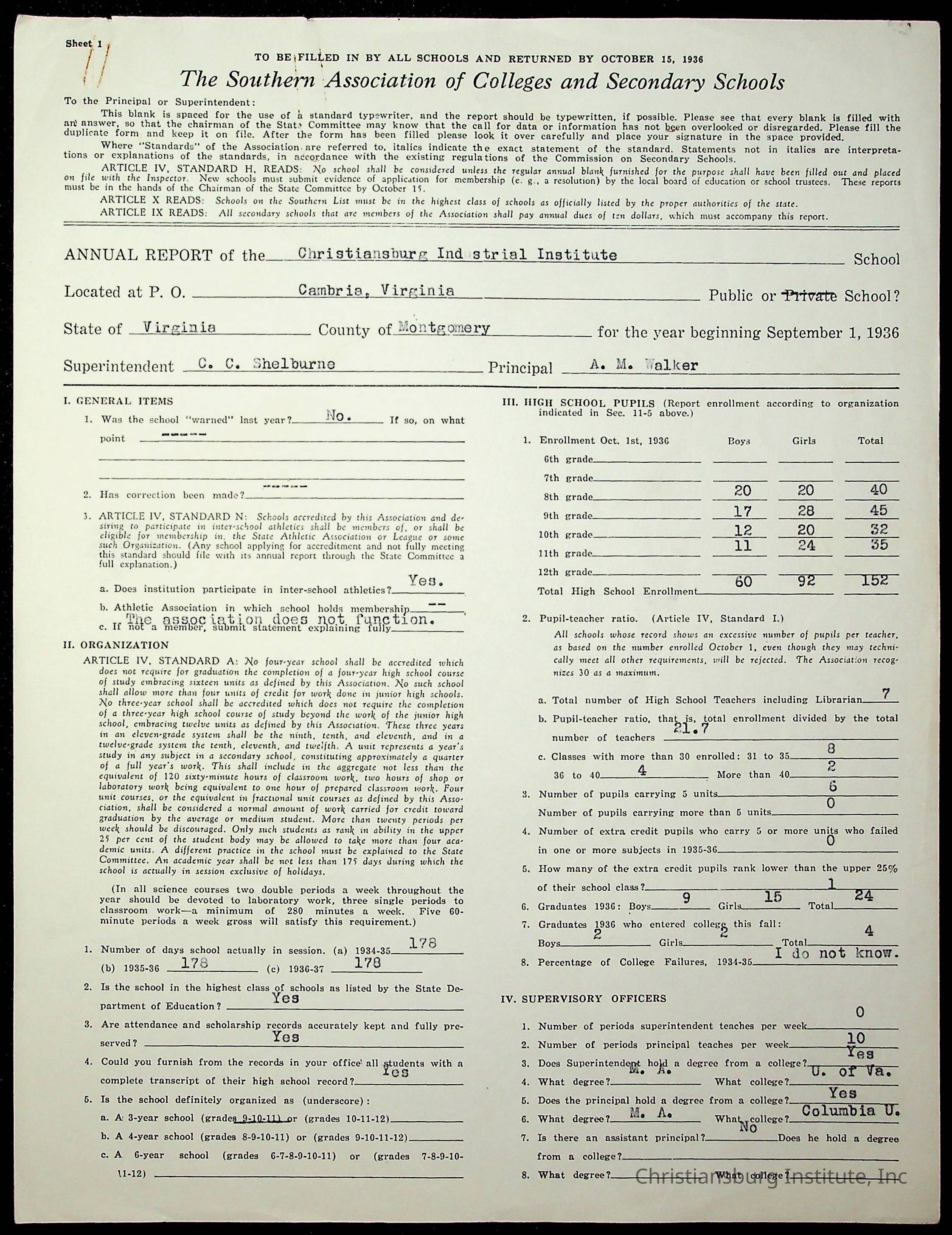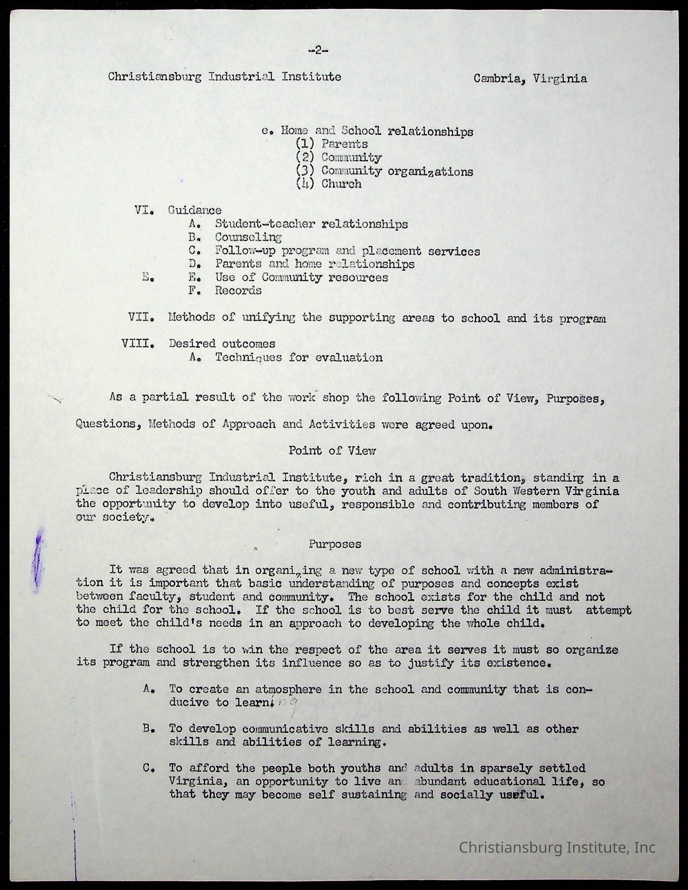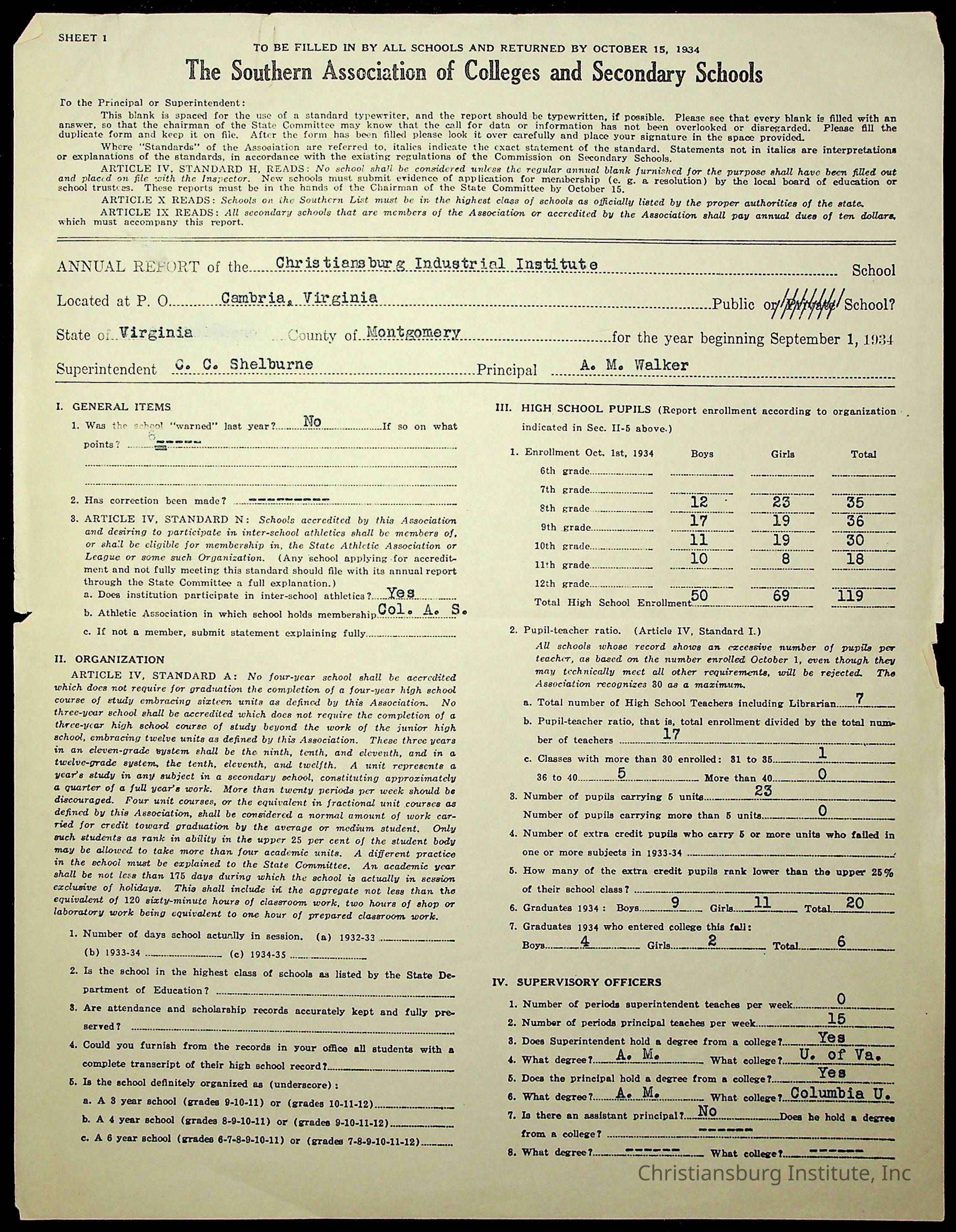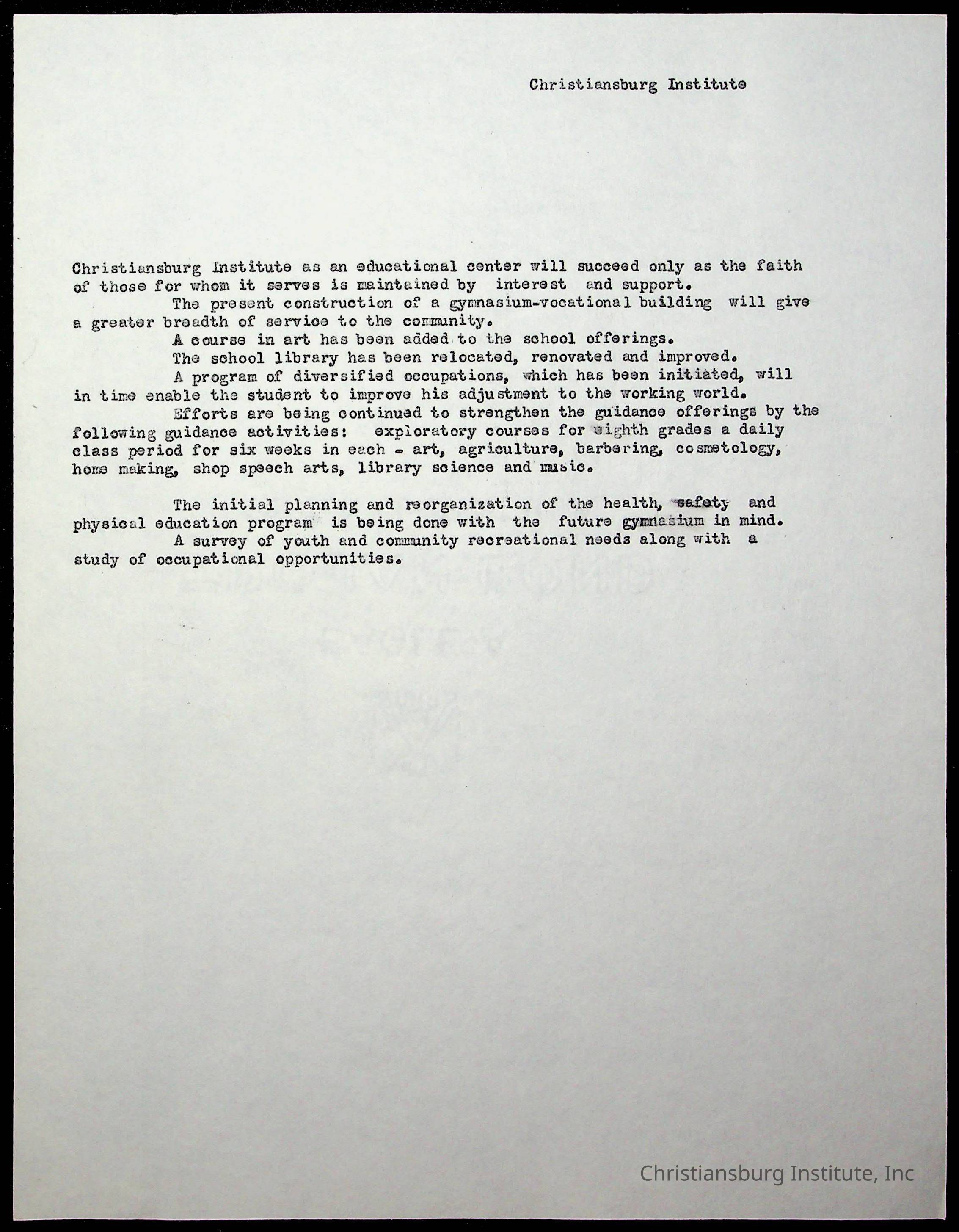 Copyright has been assigned to Christiansburg Institute Museum & Archives by Montgomery County Public Schools. For permission to publish materials created by the donor, contact CIMA@christiansburginstitute.com. Materials not created by Christiansburg Industrial Institute may still be under copyright.
