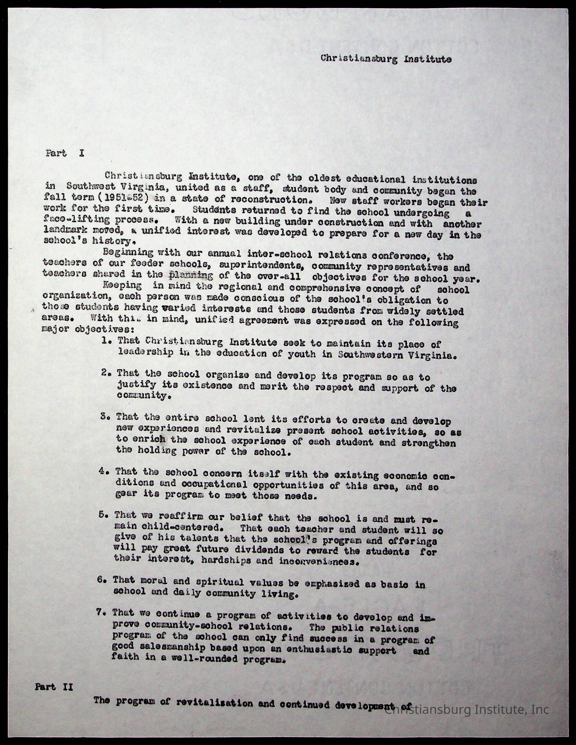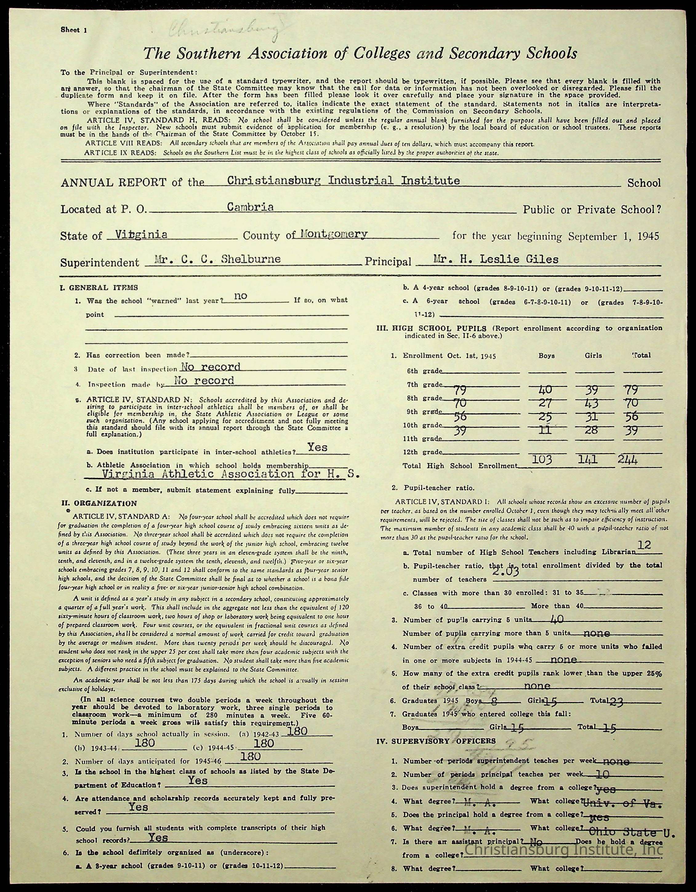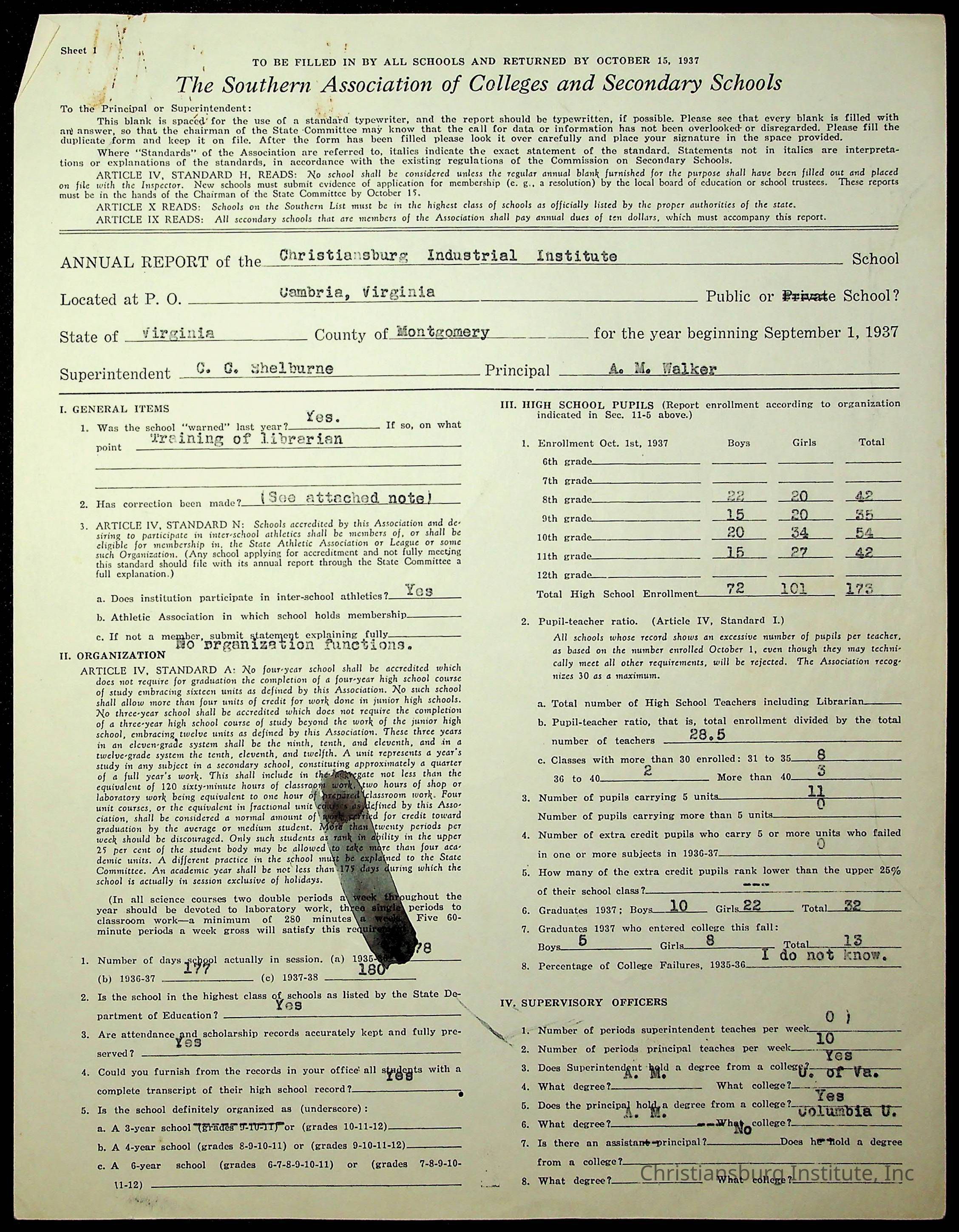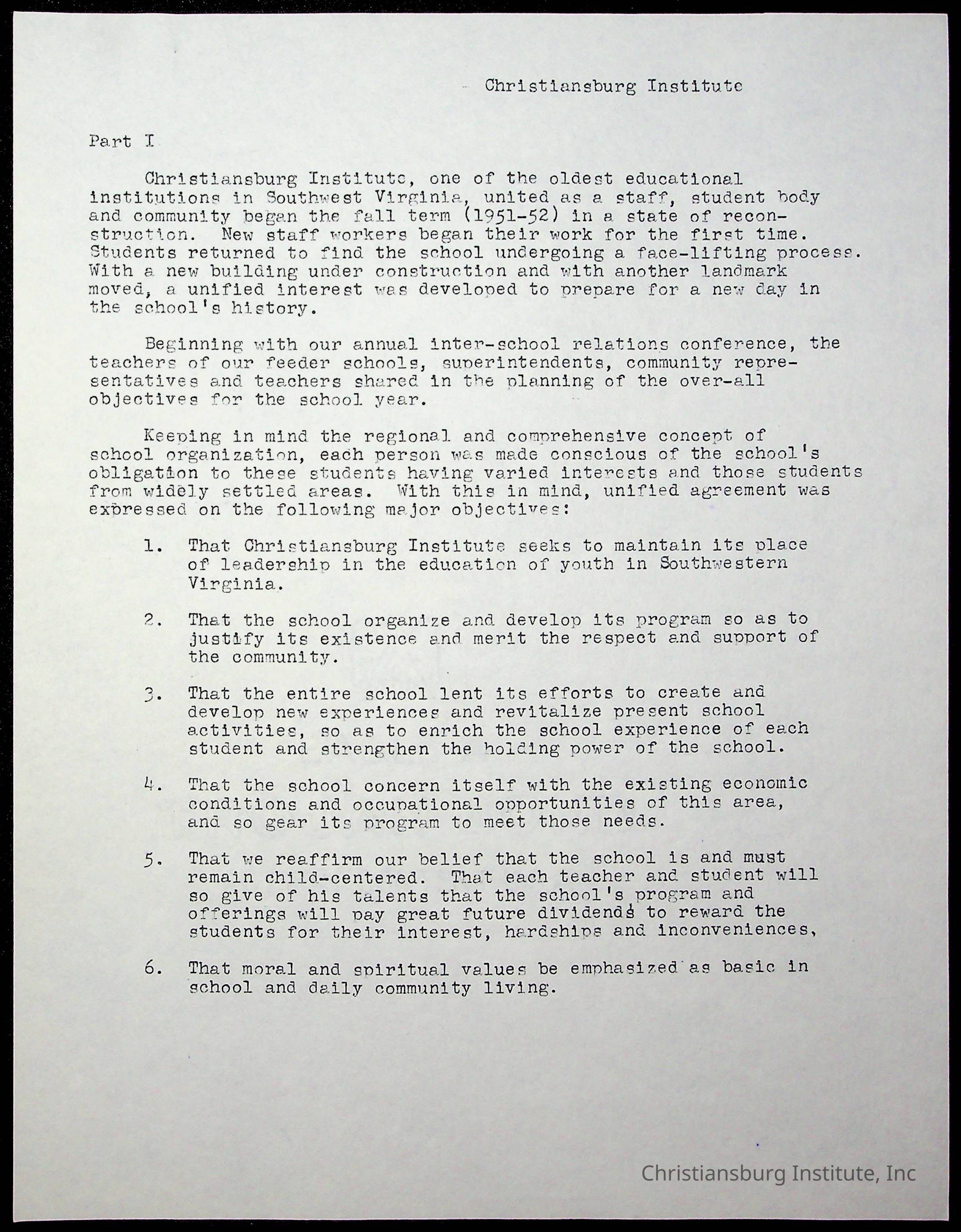 Copyright has been assigned to Christiansburg Institute Museum & Archives by Montgomery County Public Schools. For permission to publish materials created by the donor, contact CIMA@christiansburginstitute.com. Materials not created by Christiansburg Industrial Institute may still be under copyright.