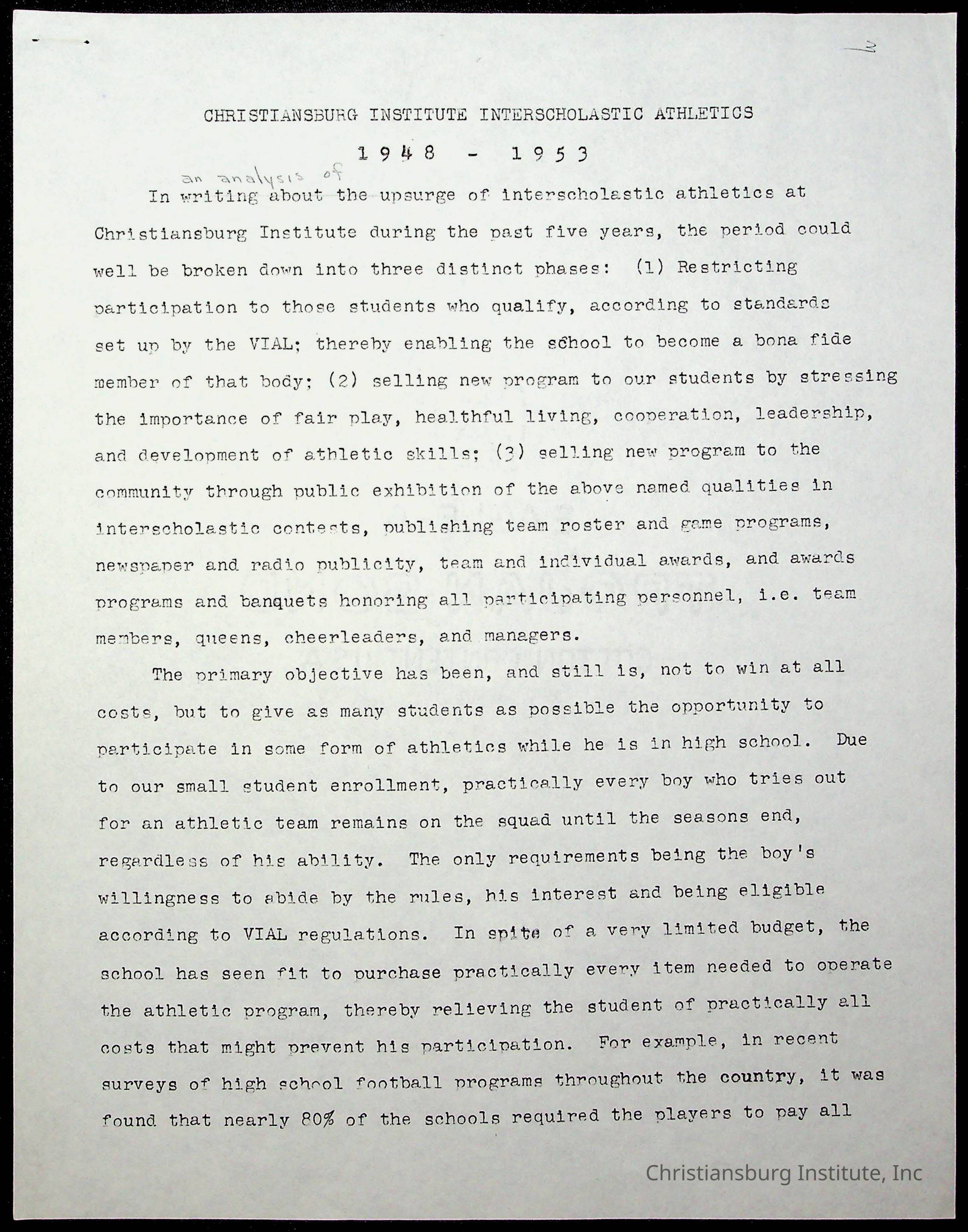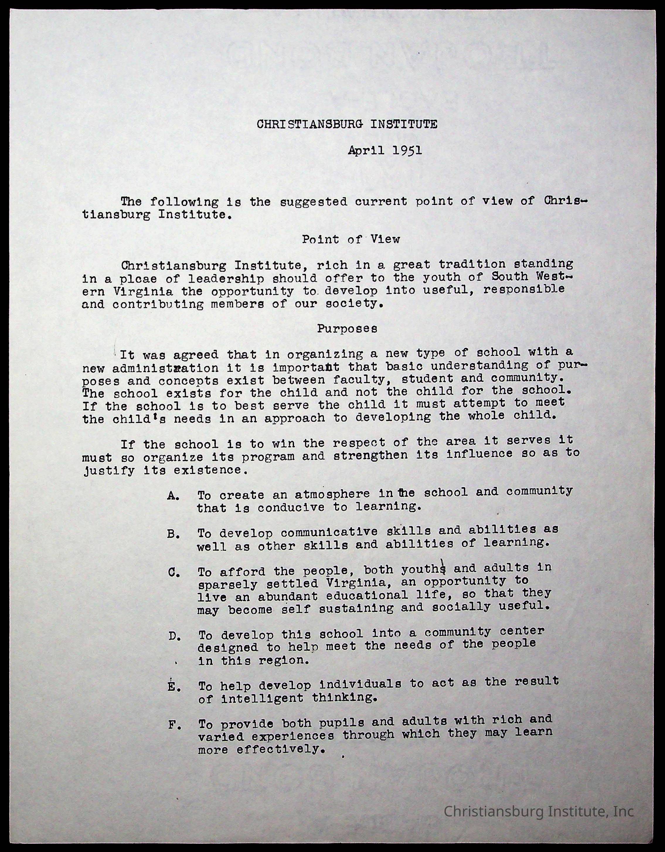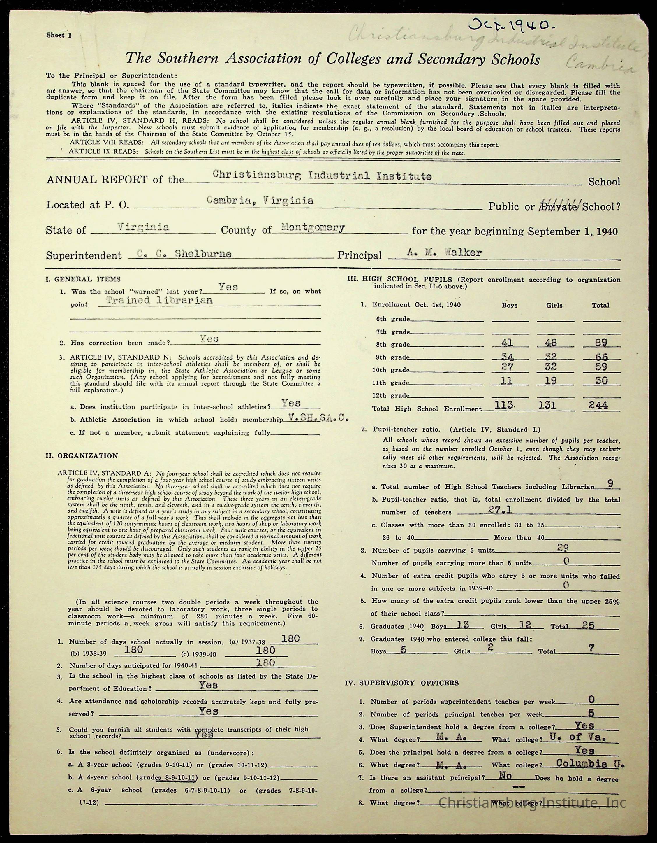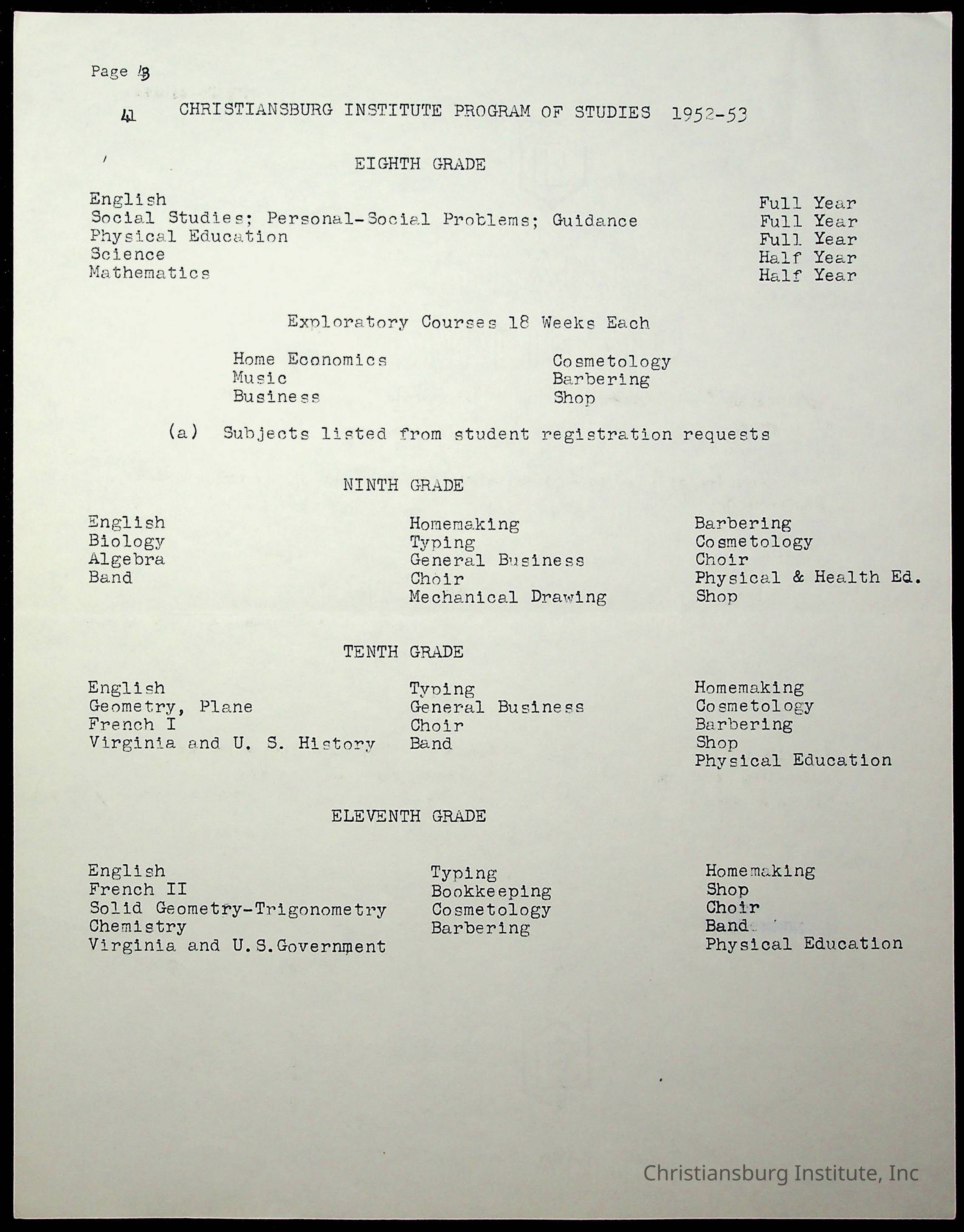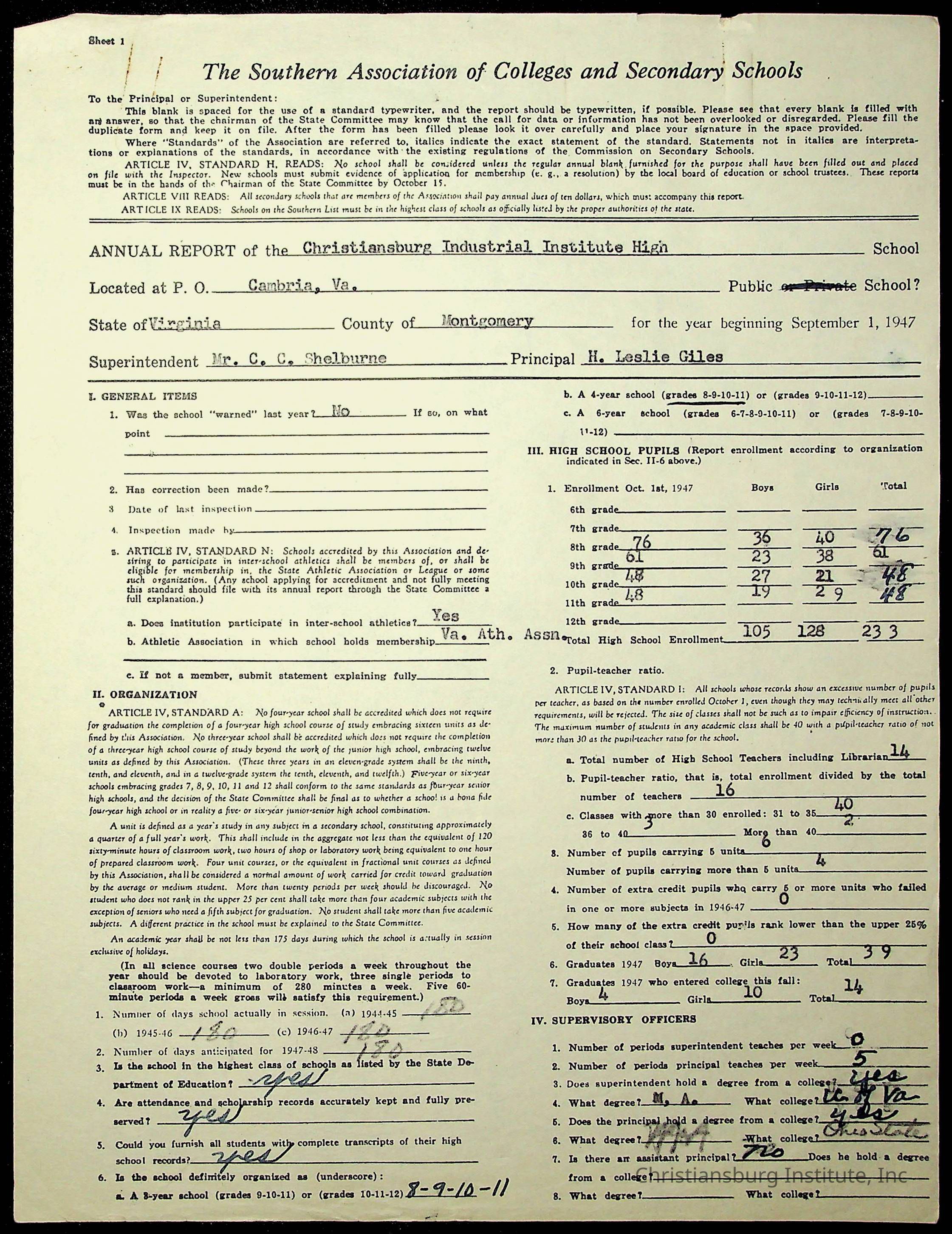 Copyright has been assigned to Christiansburg Institute Museum & Archives by Montgomery County Public Schools. For permission to publish materials created by the donor, contact CIMA@christiansburginstitute.com. Materials not created by Christiansburg Industrial Institute may still be under copyright.
