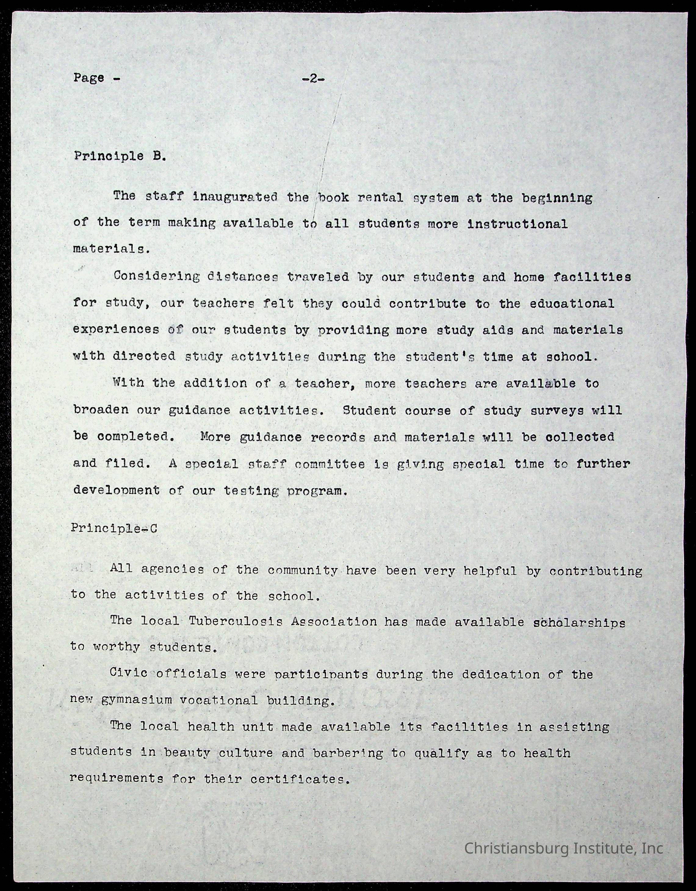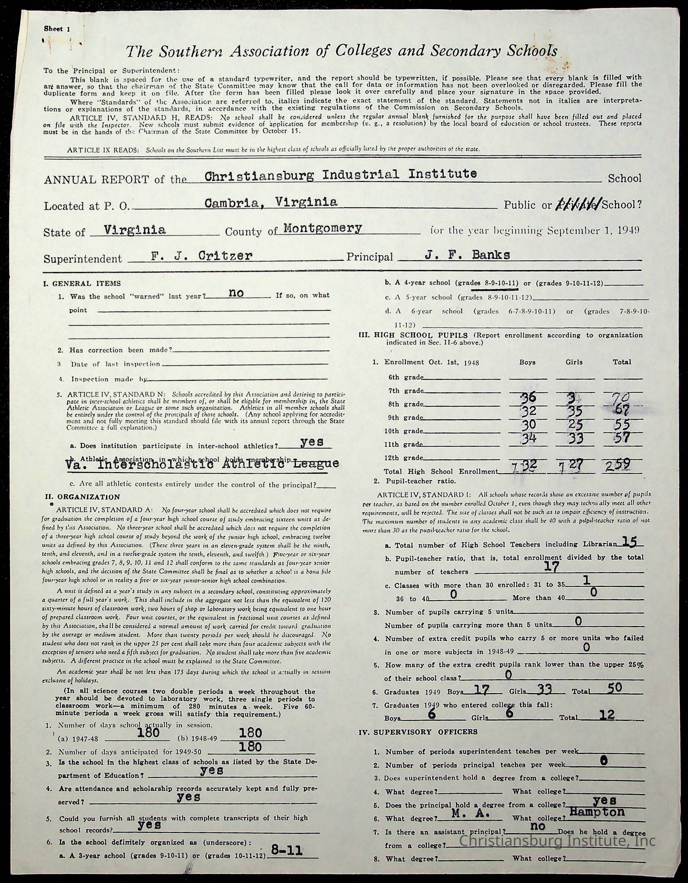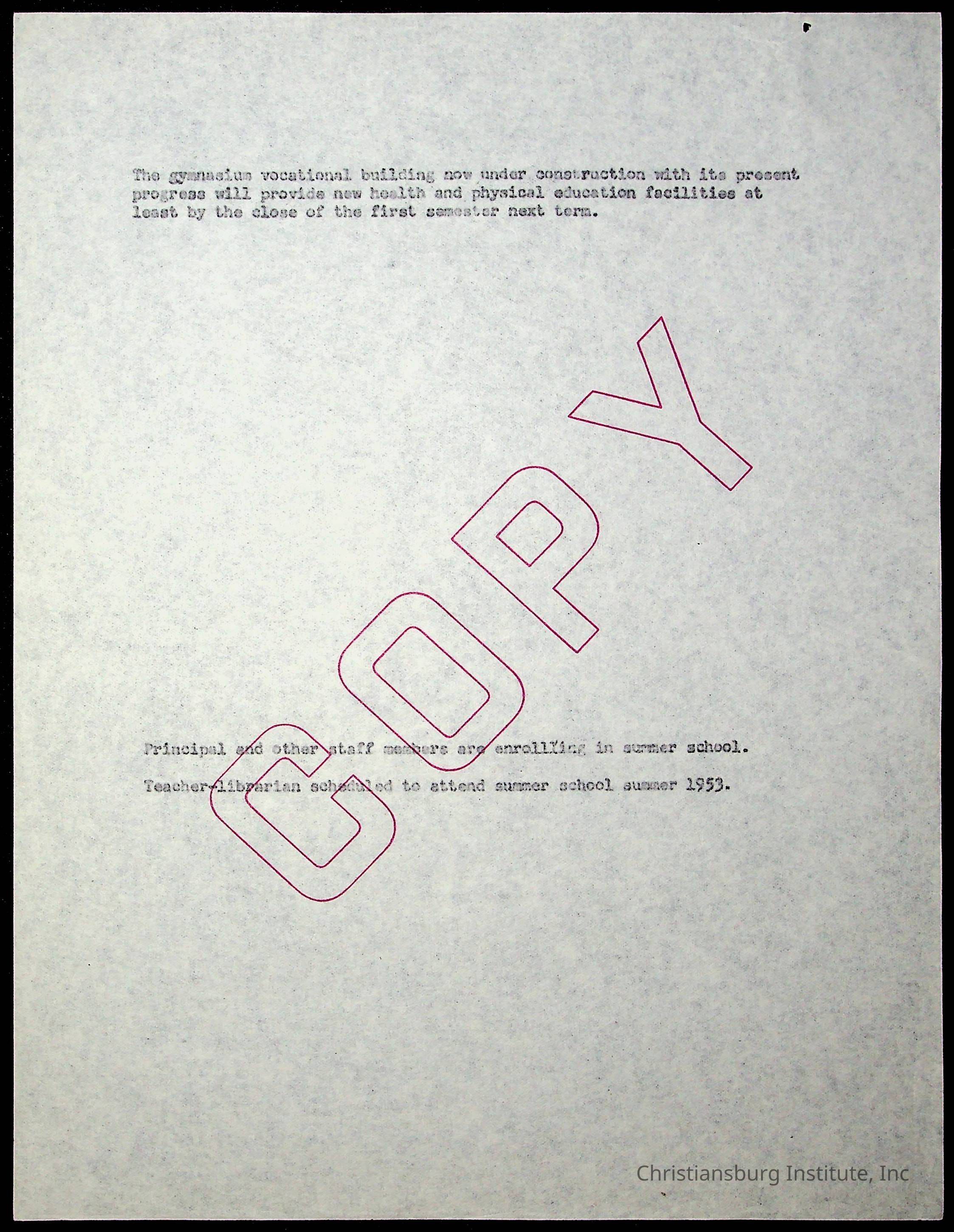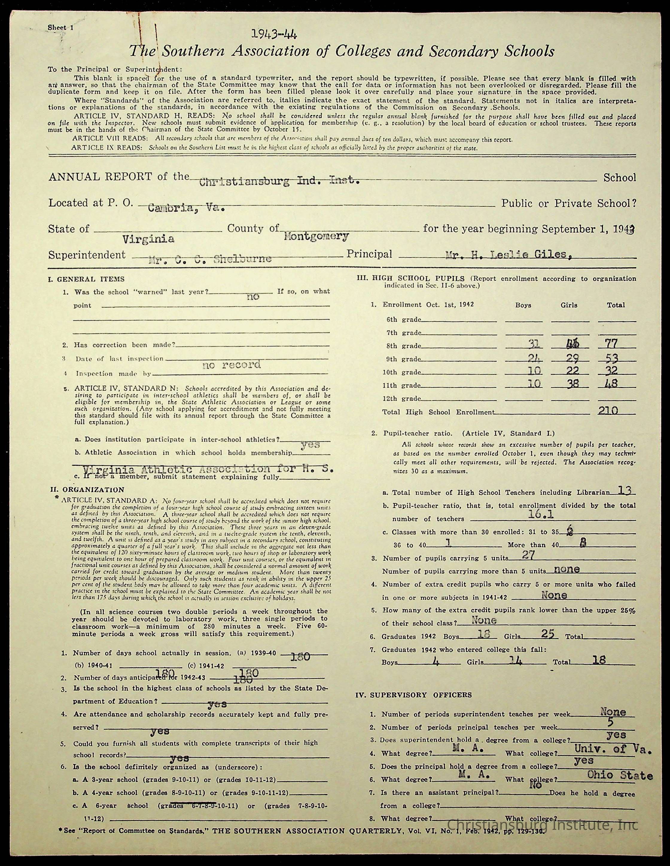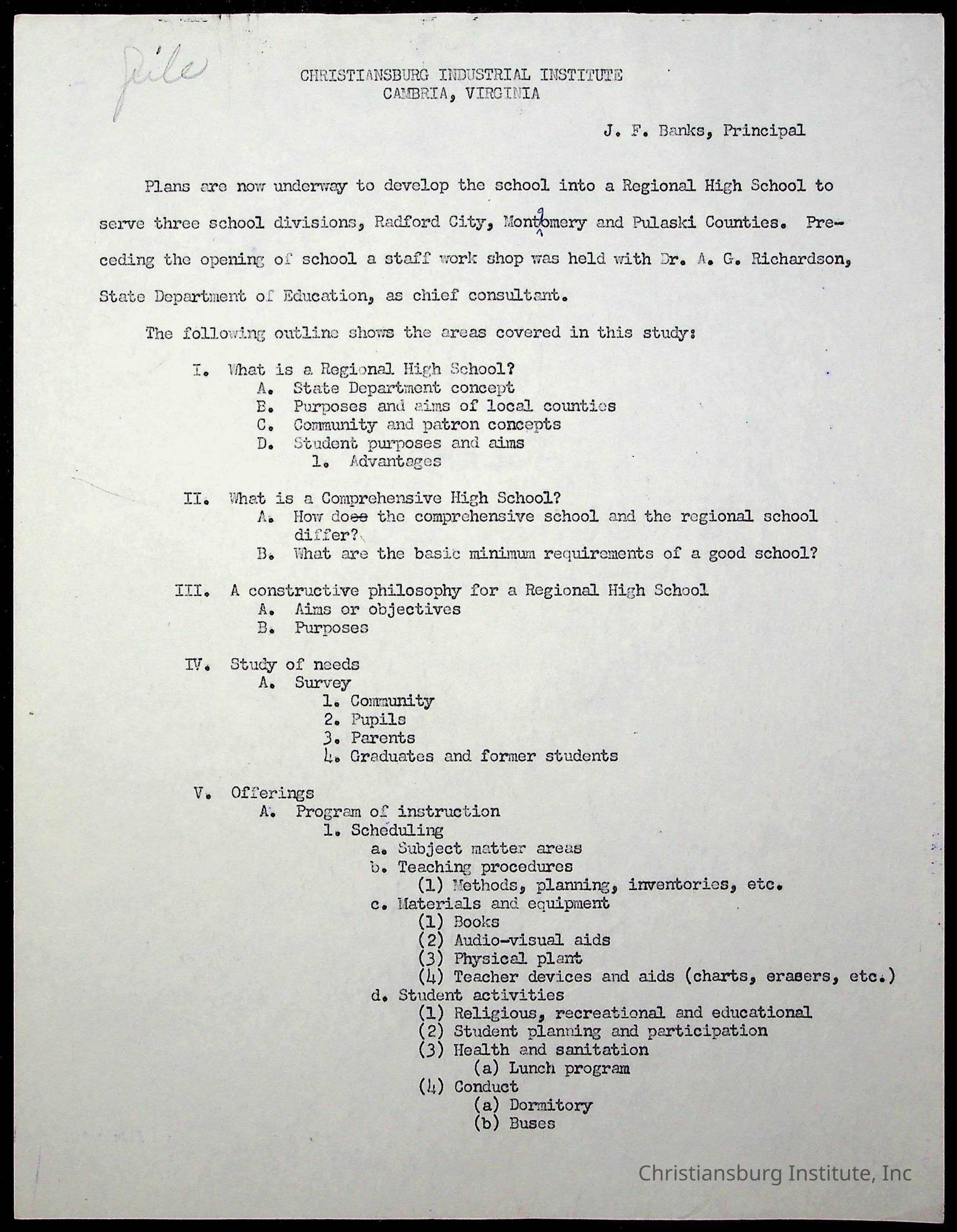 Copyright has been assigned to Christiansburg Institute Museum & Archives by Montgomery County Public Schools. For permission to publish materials created by the donor, contact CIMA@christiansburginstitute.com. Materials not created by Christiansburg Industrial Institute may still be under copyright.