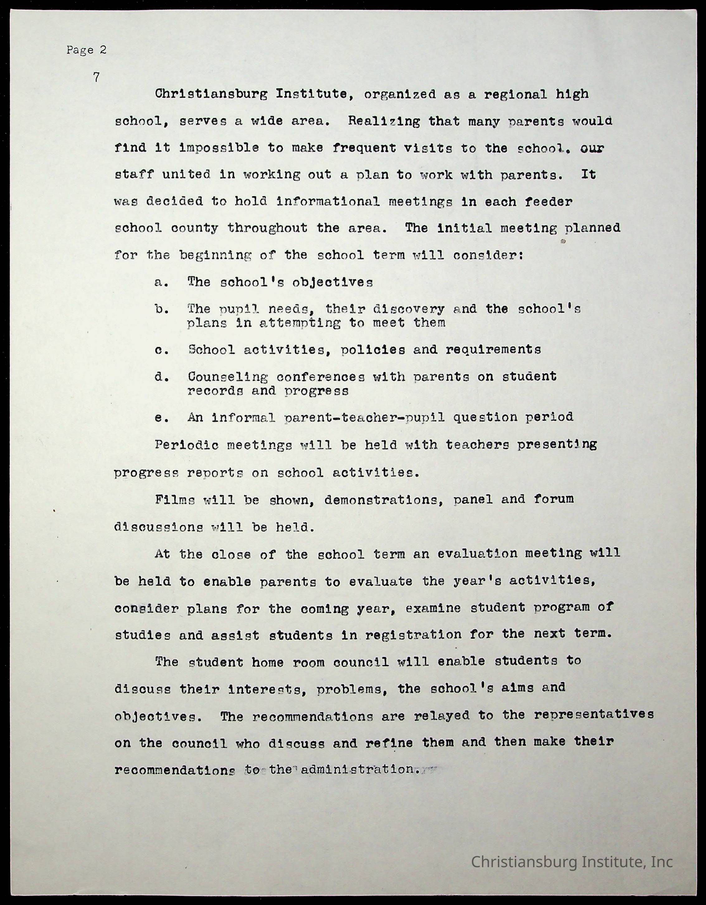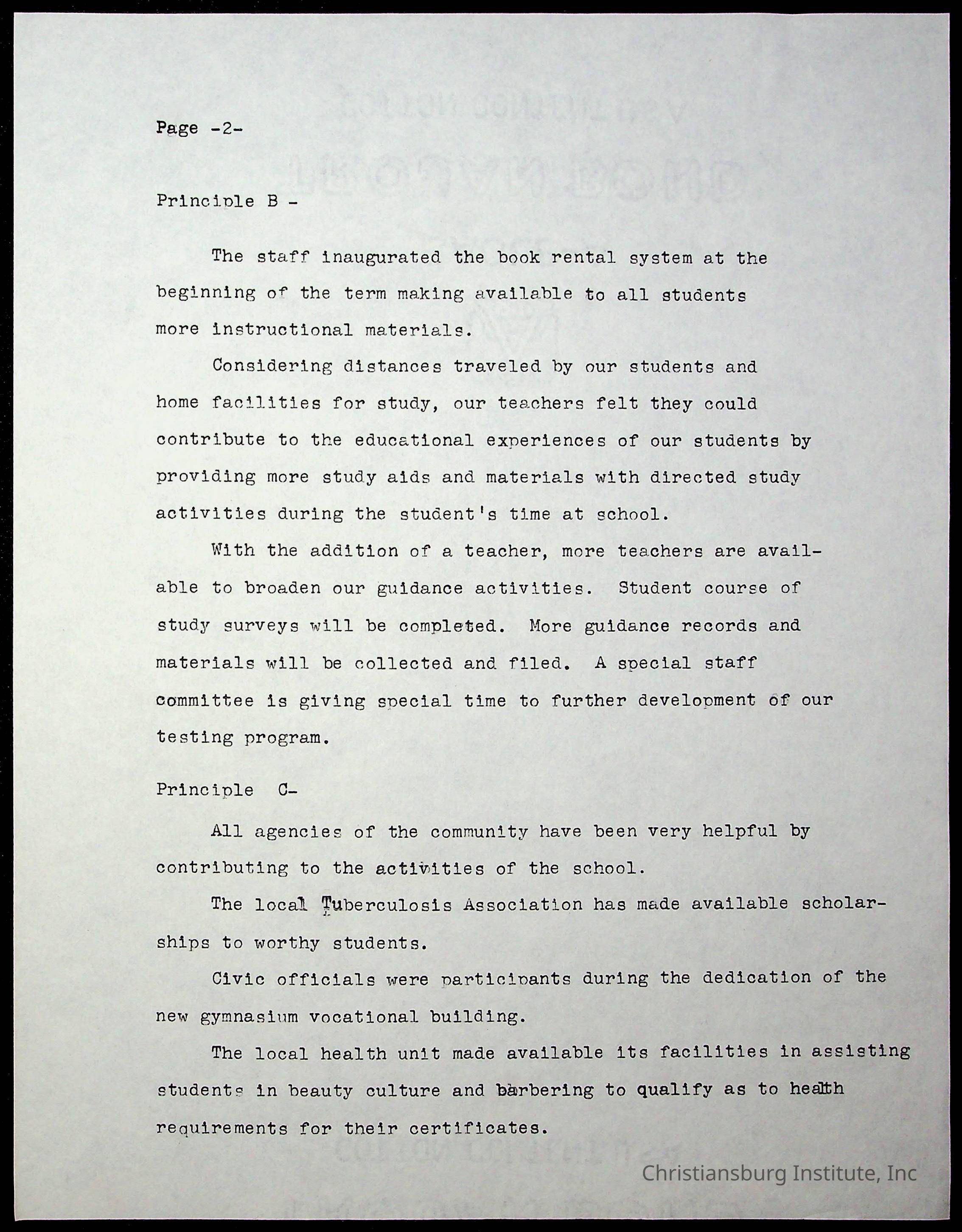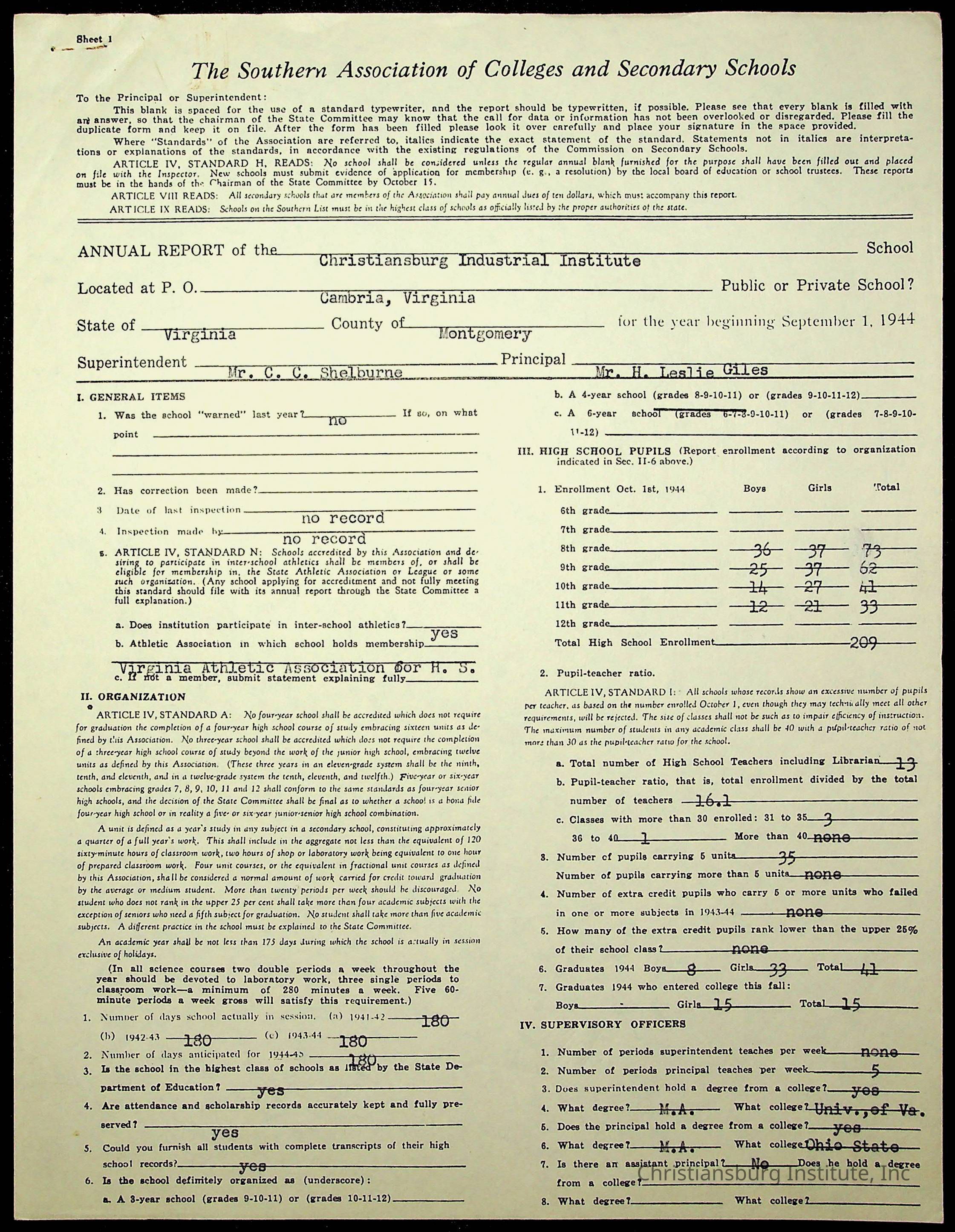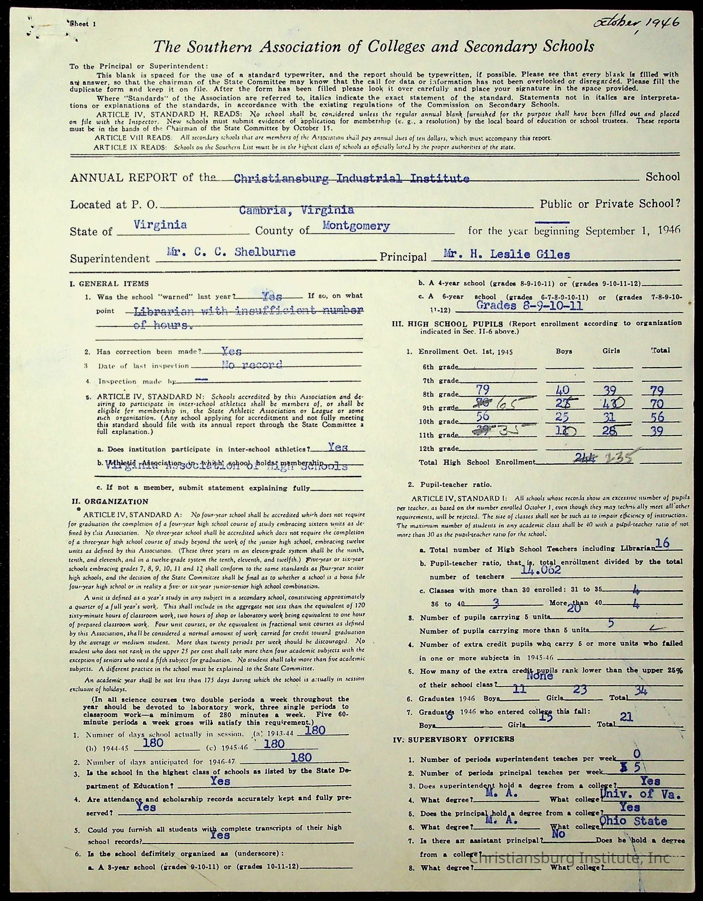 Copyright has been assigned to Christiansburg Institute Museum & Archives by Montgomery County Public Schools. For permission to publish materials created by the donor, contact CIMA@christiansburginstitute.com. Materials not created by Christiansburg Industrial Institute may still be under copyright.