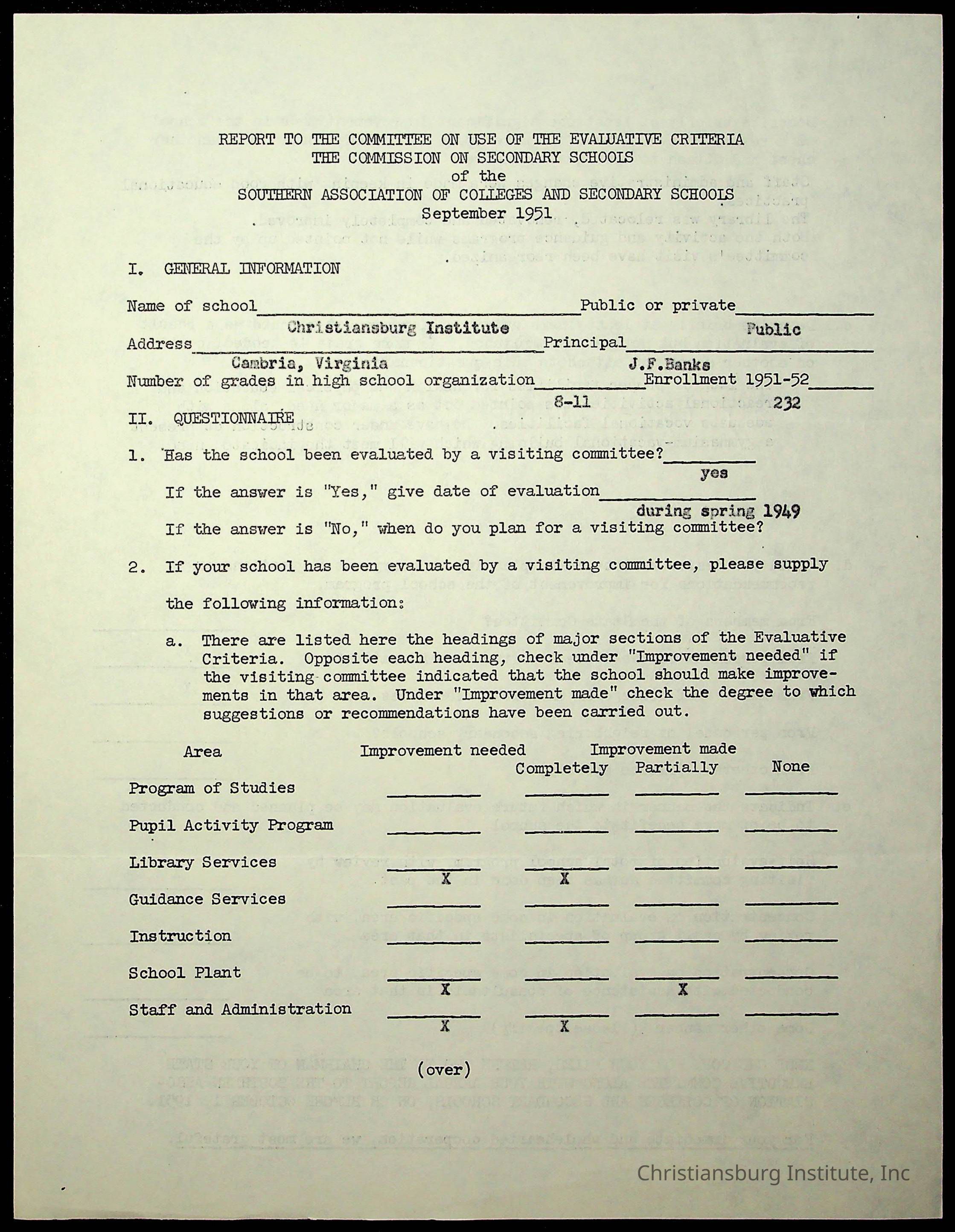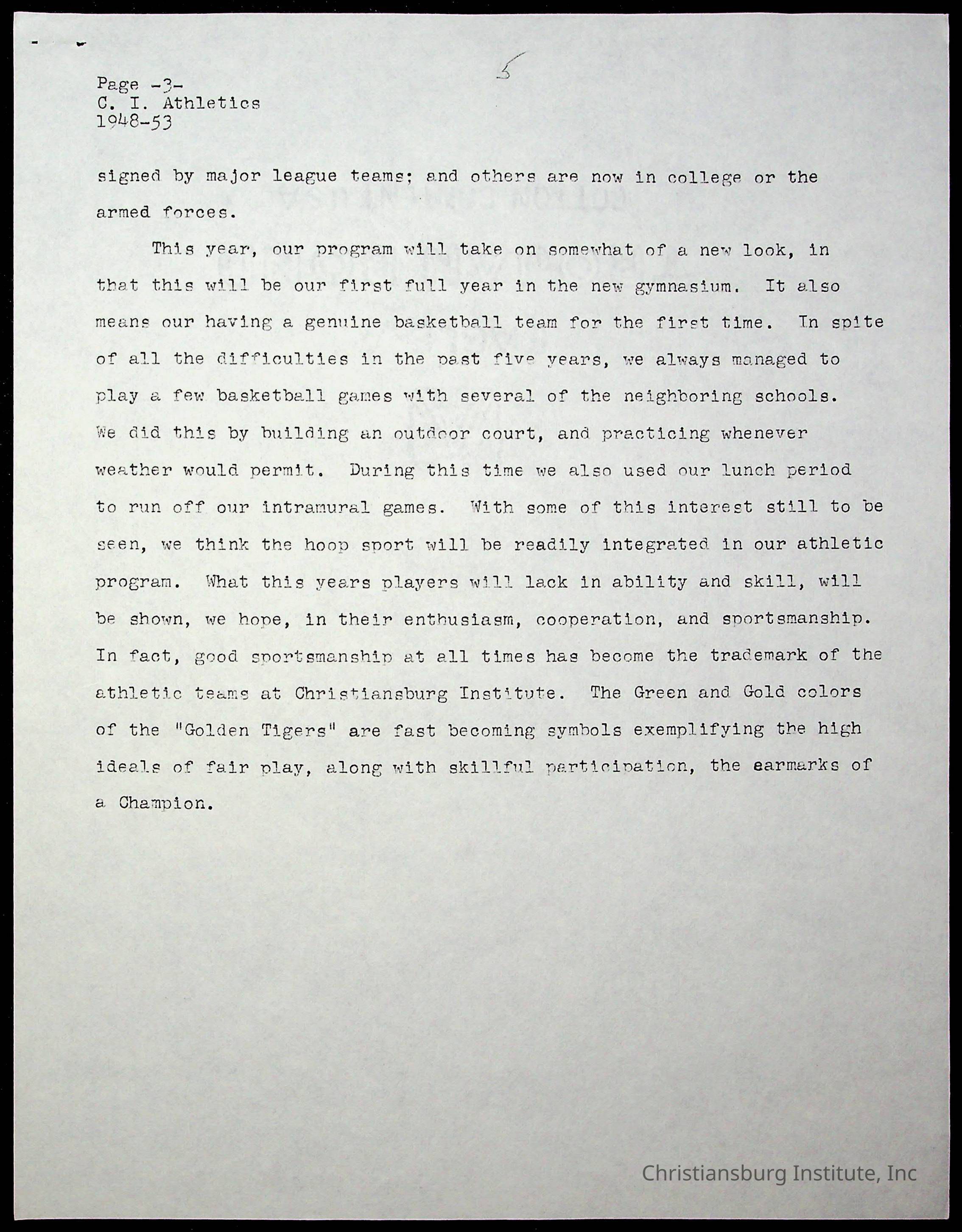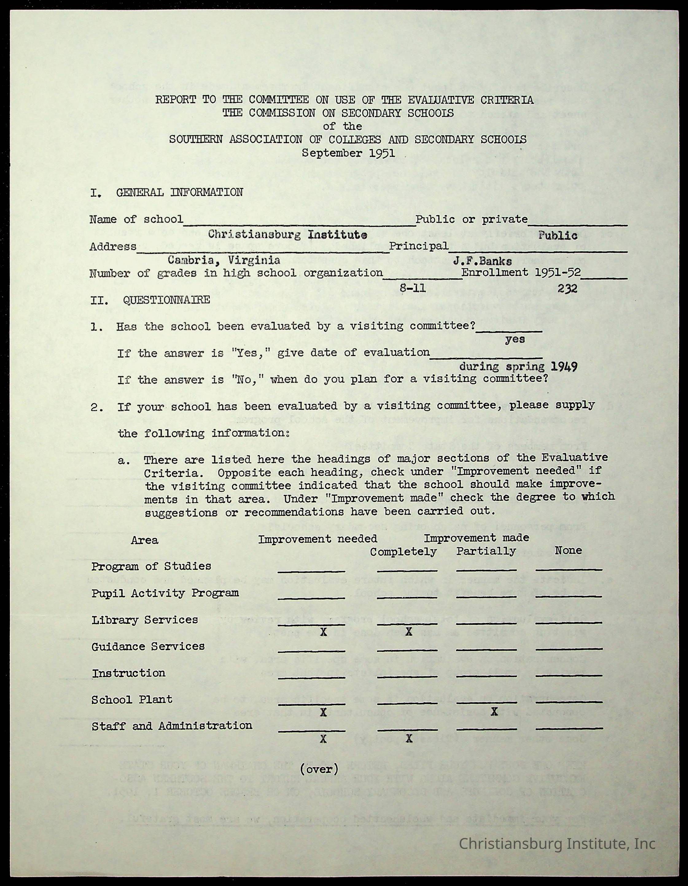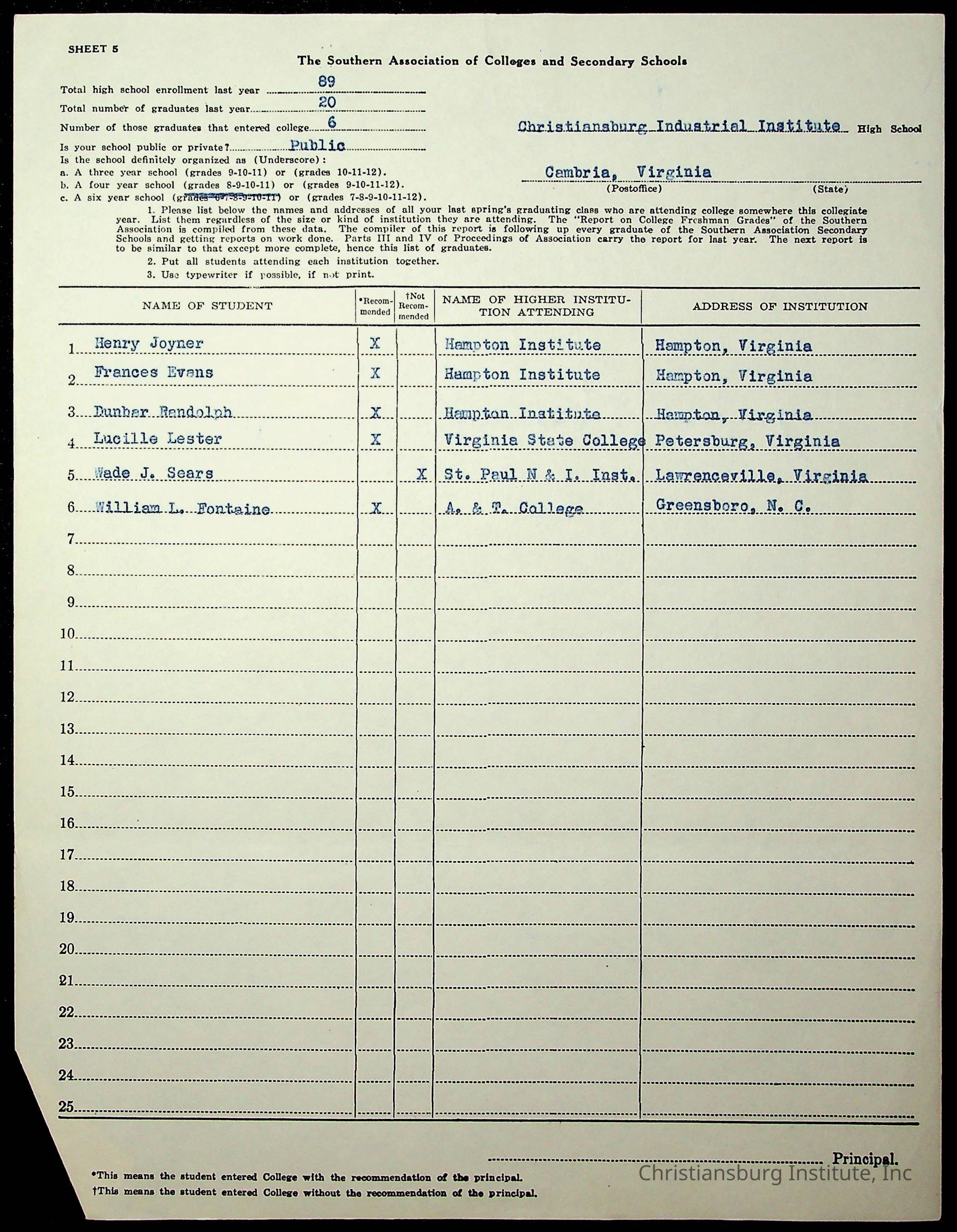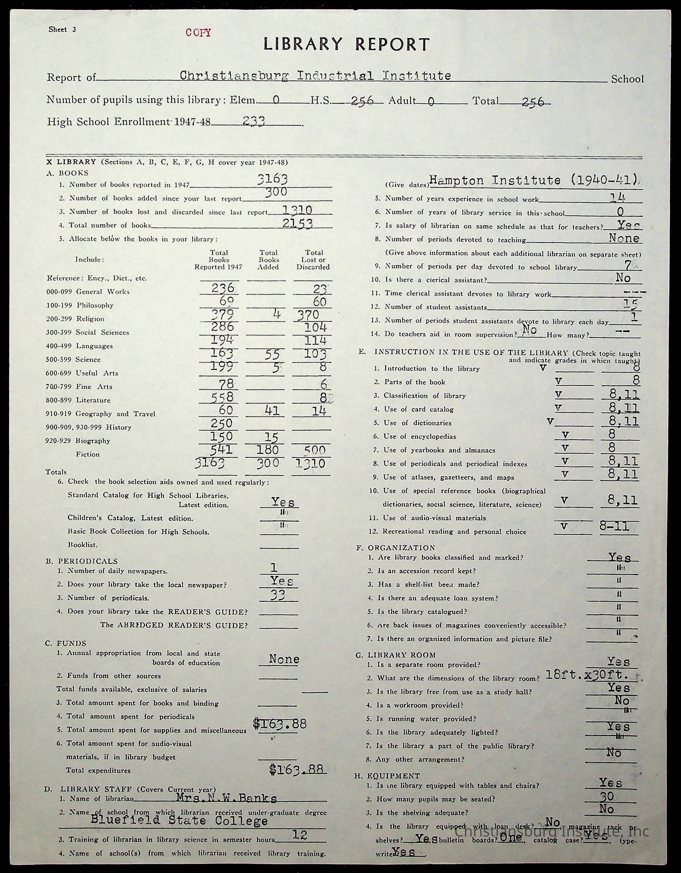 Copyright has been assigned to Christiansburg Institute Museum & Archives by Montgomery County Public Schools. For permission to publish materials created by the donor, contact CIMA@christiansburginstitute.com. Materials not created by Christiansburg Industrial Institute may still be under copyright.